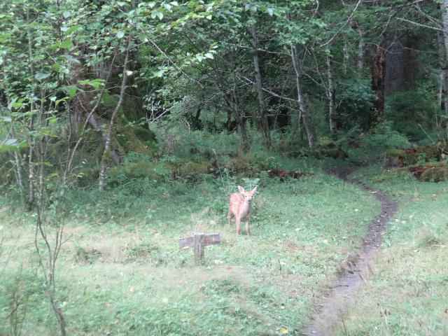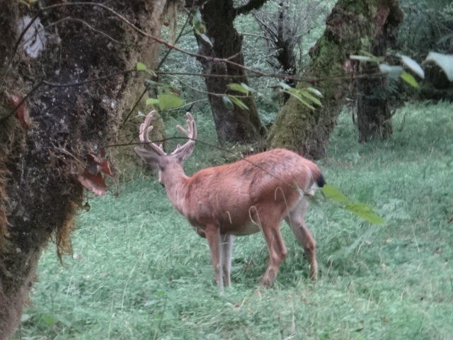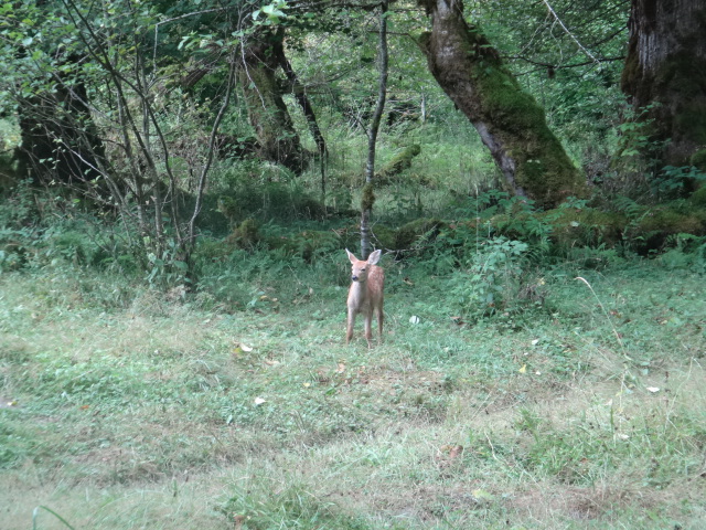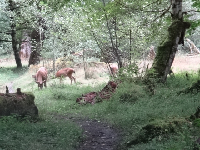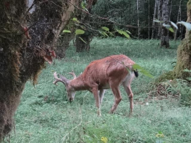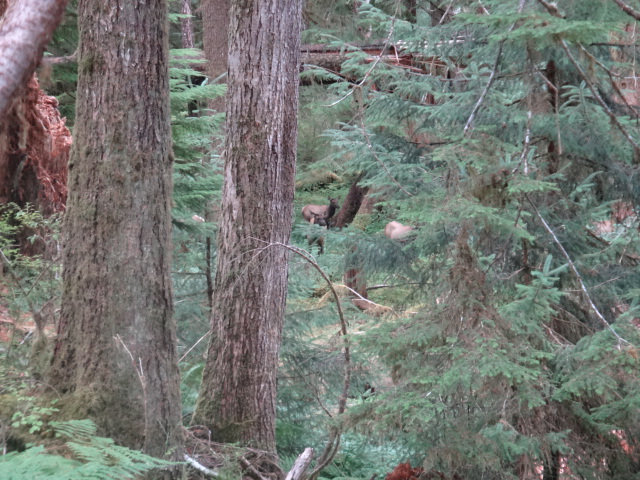 Right before we got to camp, we ran into some of the famous Roosevelt elk. They are native to the Olympic rainforest, but they have been introduced into other climates by humans as well. It’s actually larger than the rocky mountain elk - which was surprising to me, seems like it would be a lot harder to move around in this dense forest.