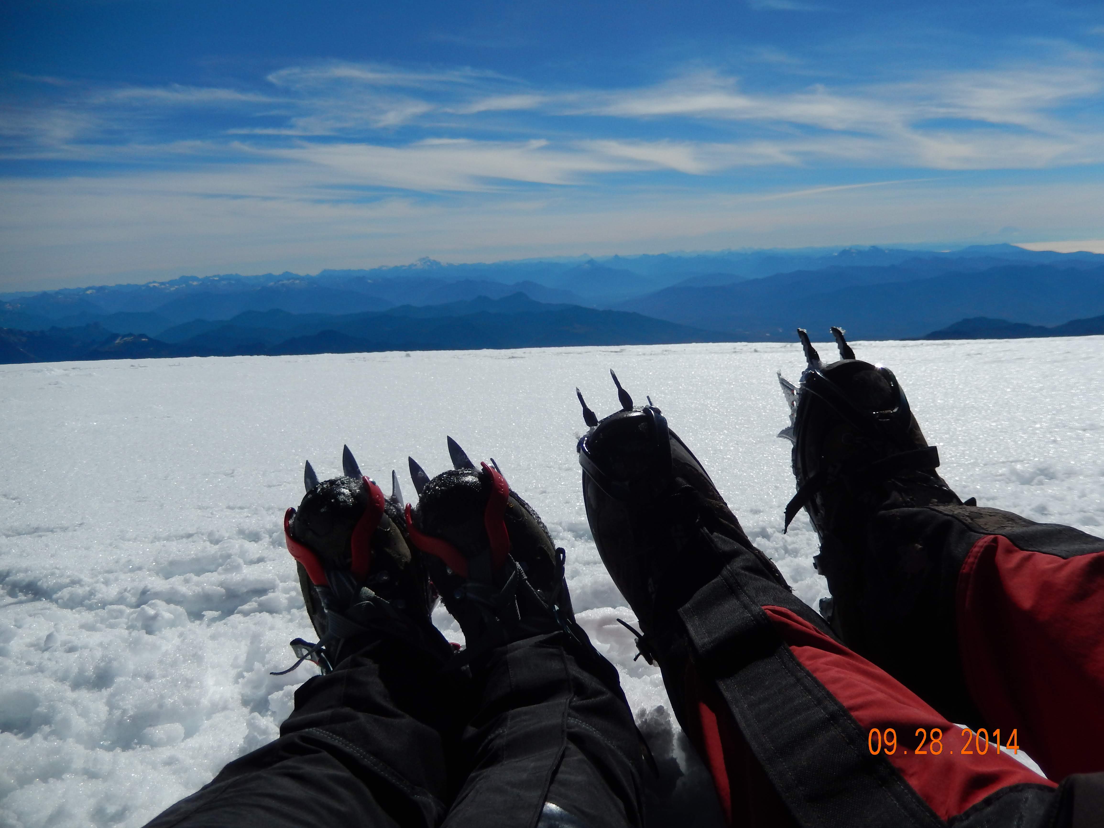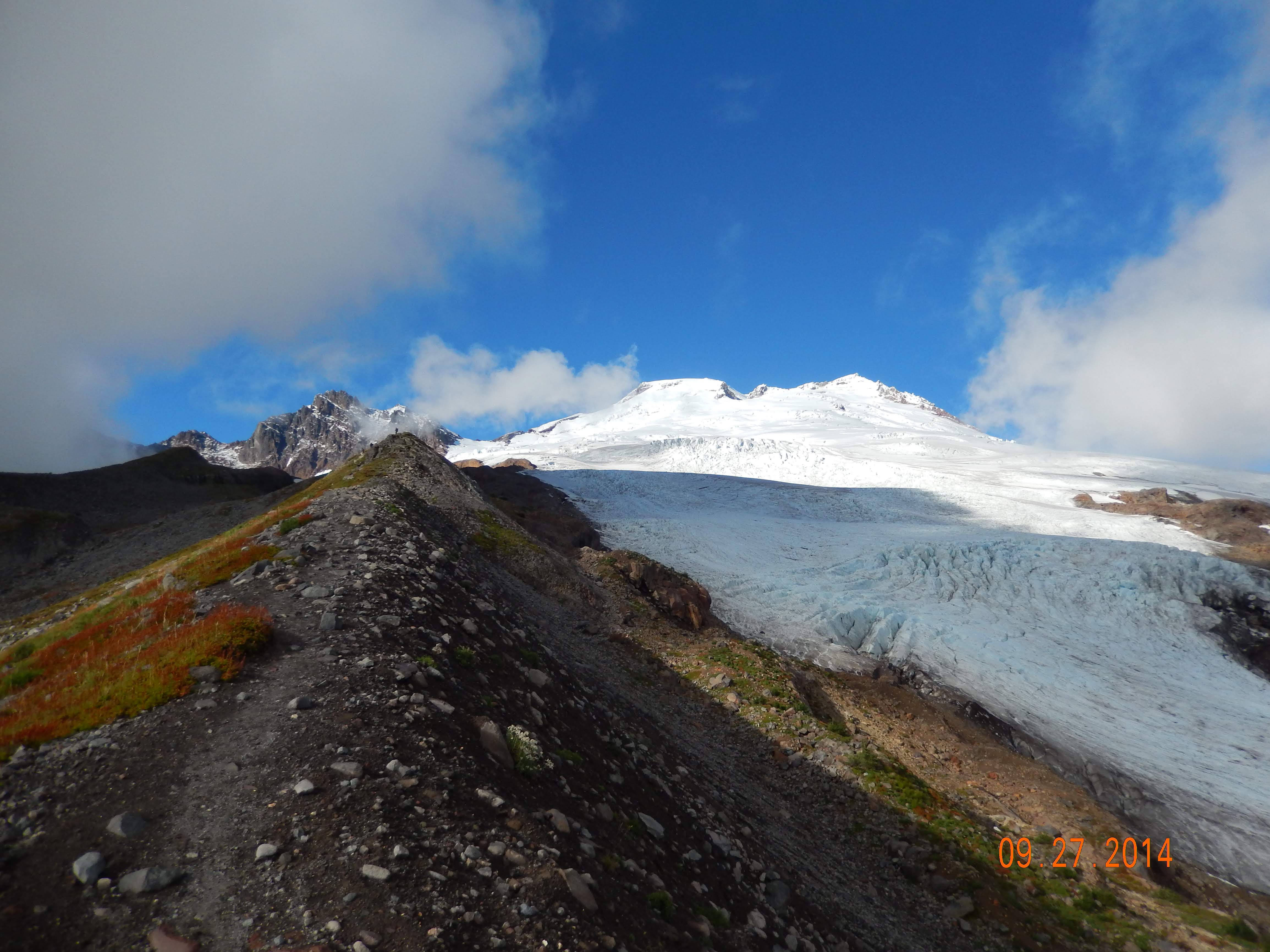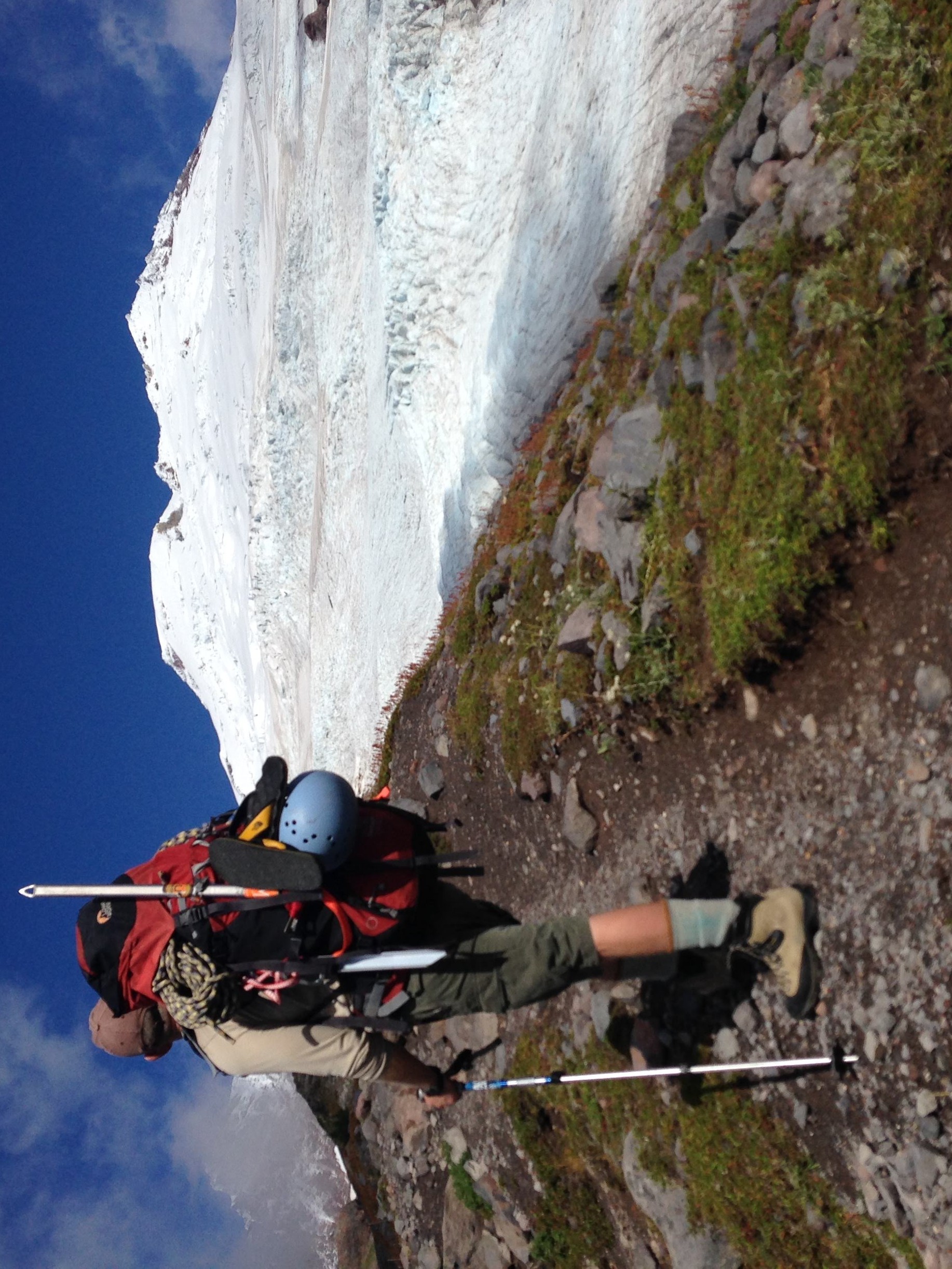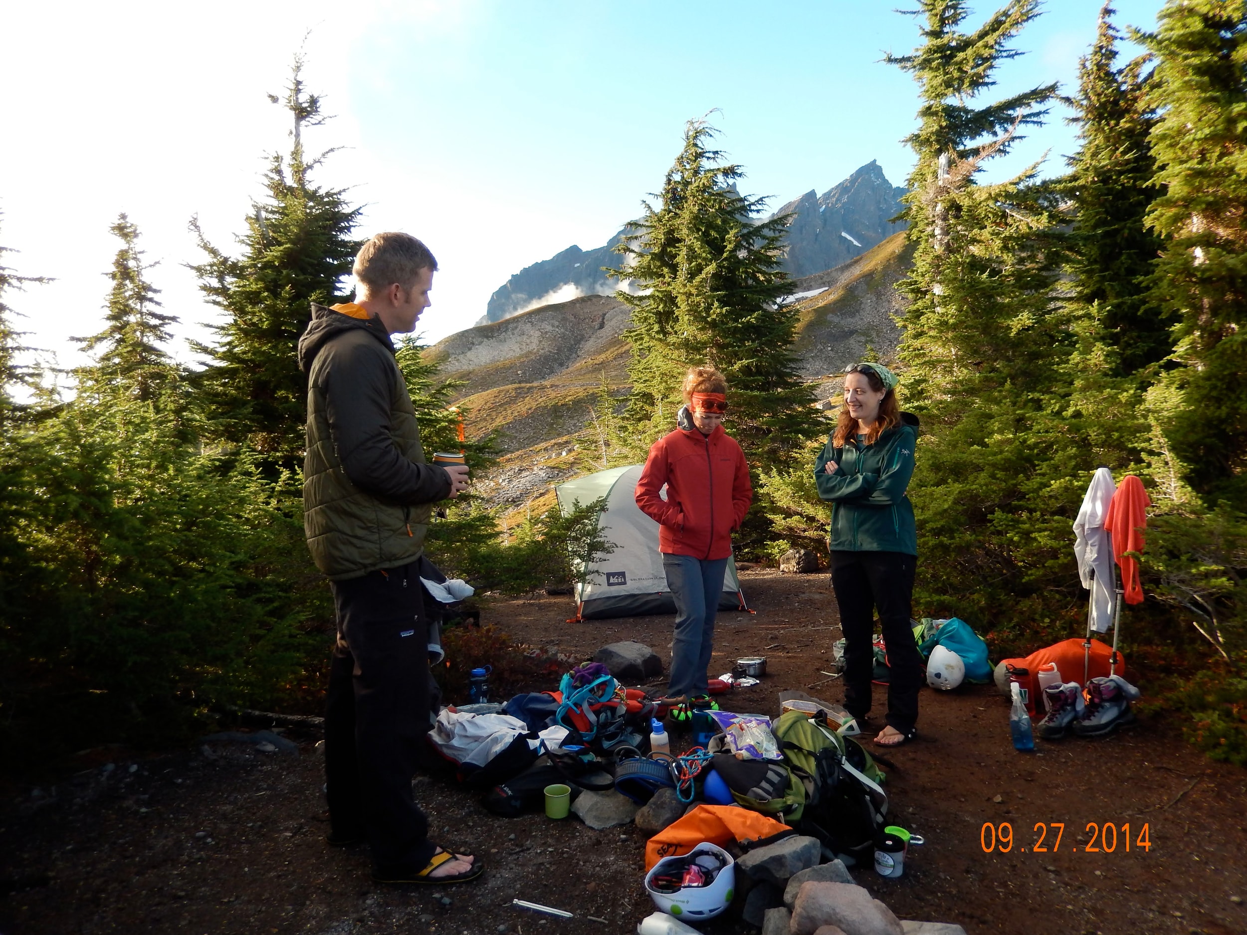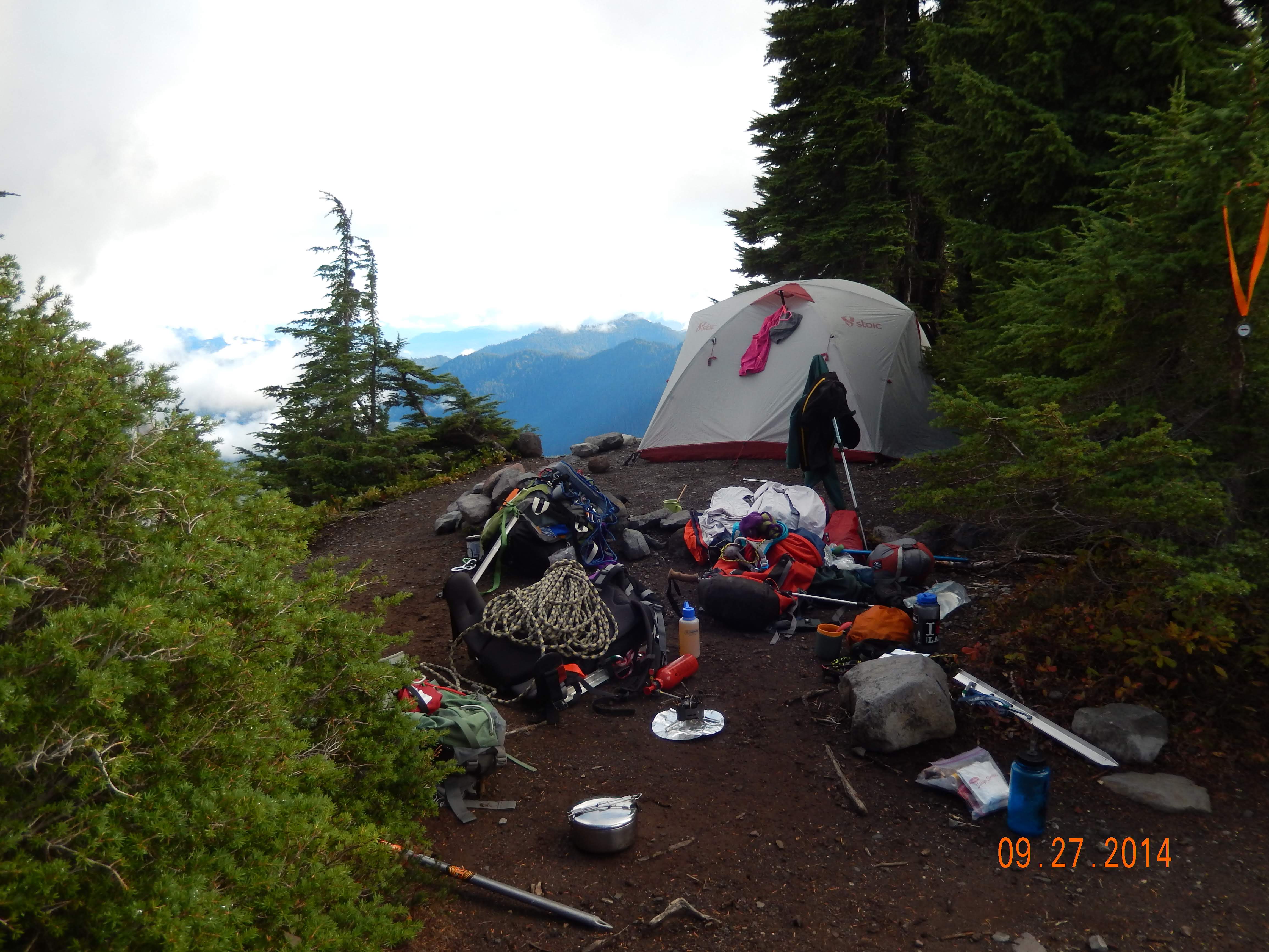 We made camp about a mile from the foot of the glacier - in a great little spot above the treeline with great views. We did a big gear layout (I had brought gear for most of the folks here) and we got everything all setup for tomorrow. We also did a few practice falls and practiced how we would move once we got onto the glacier.