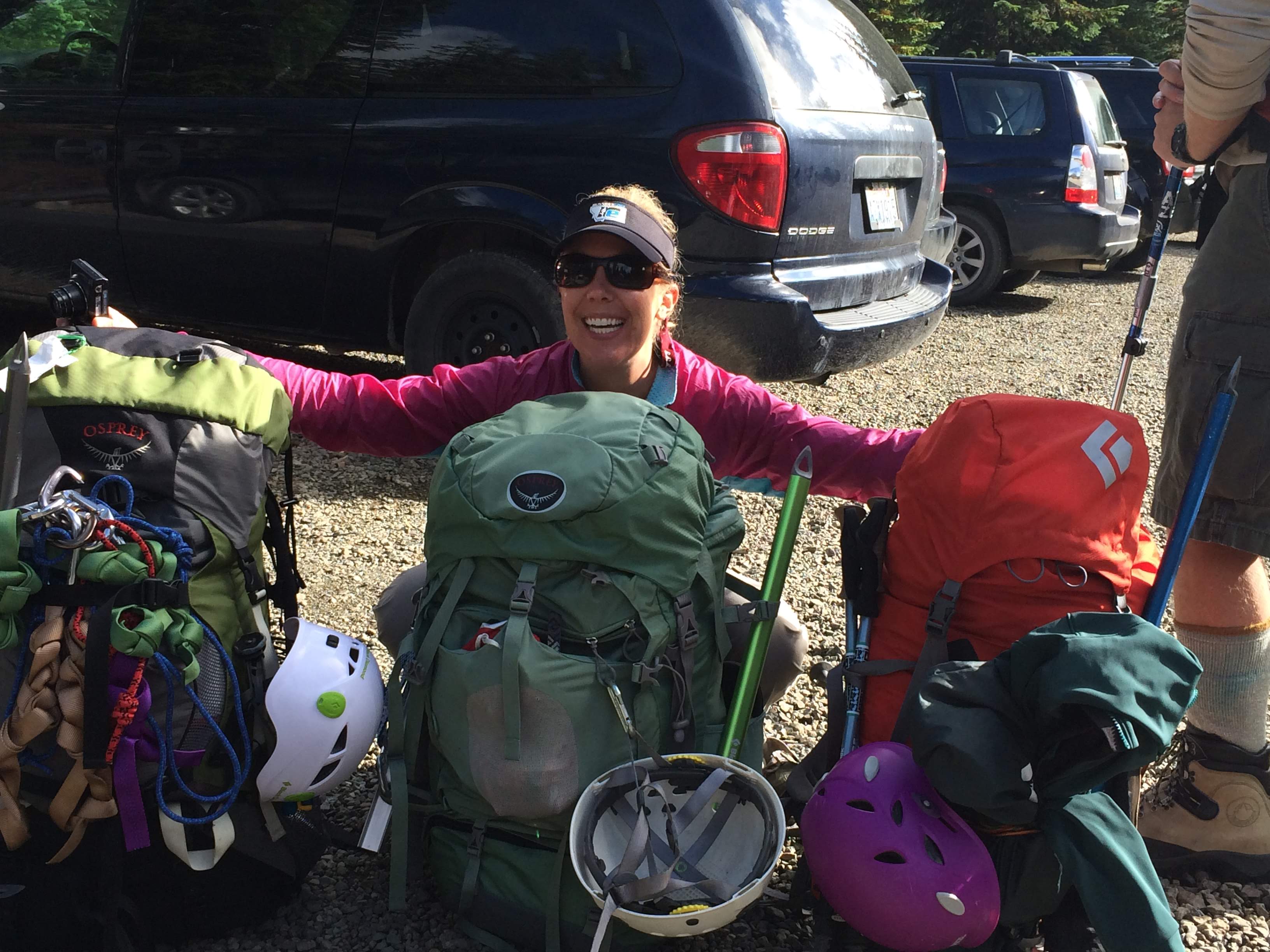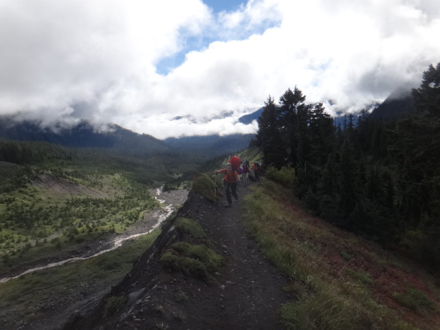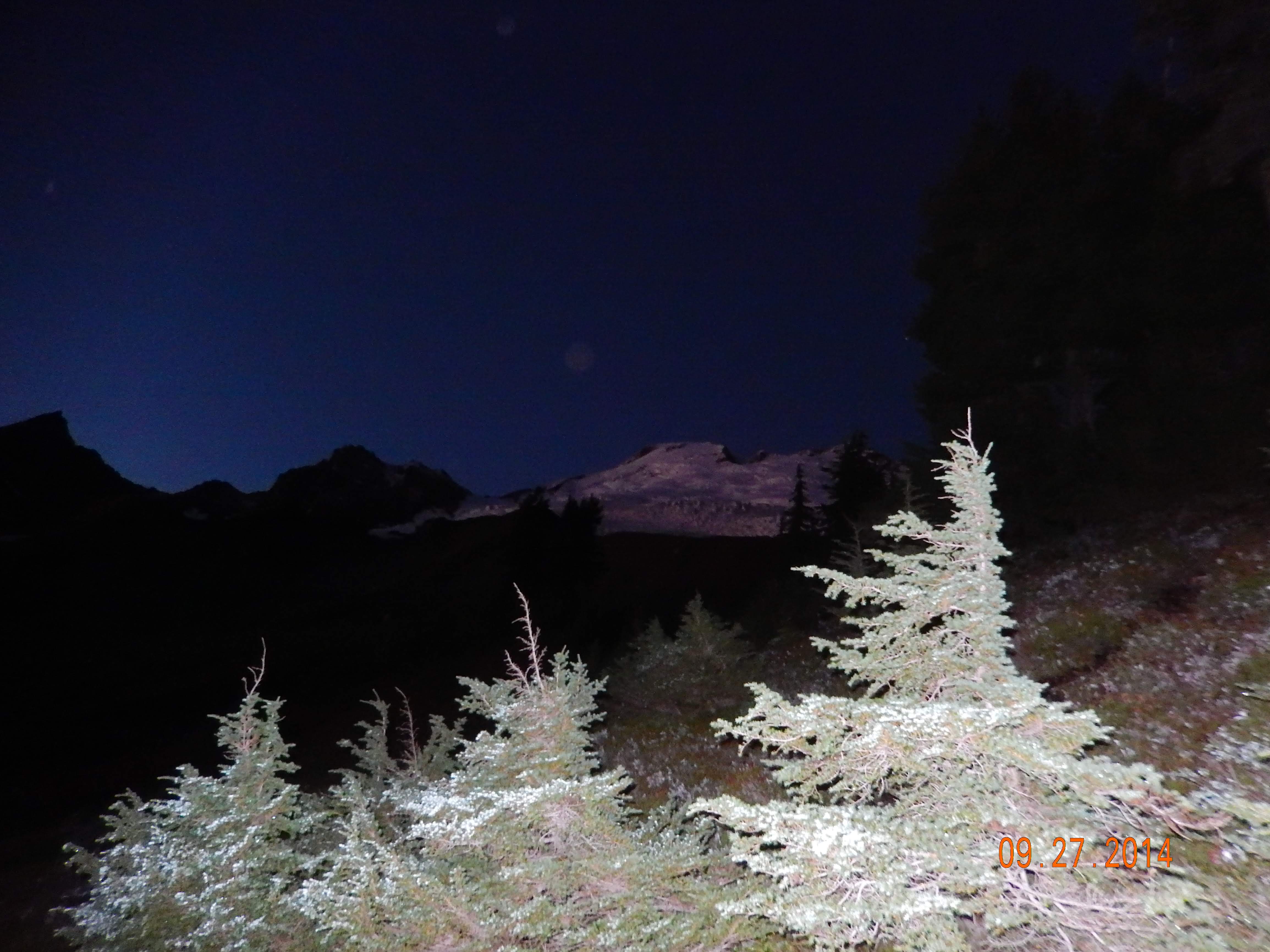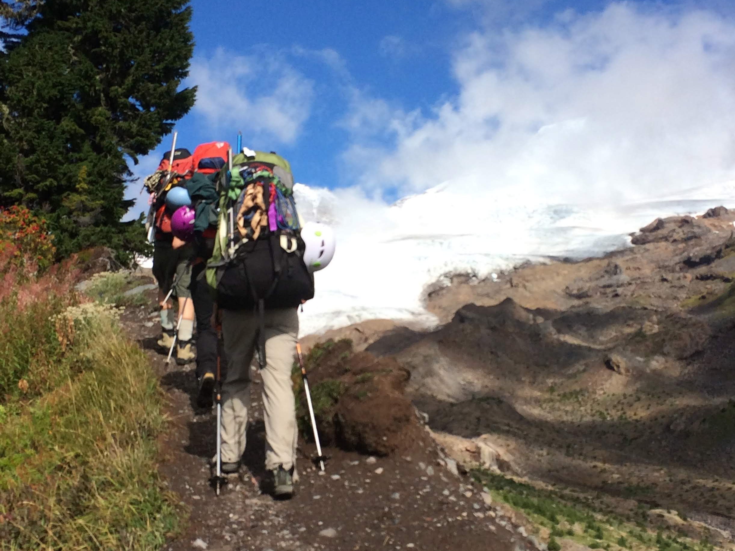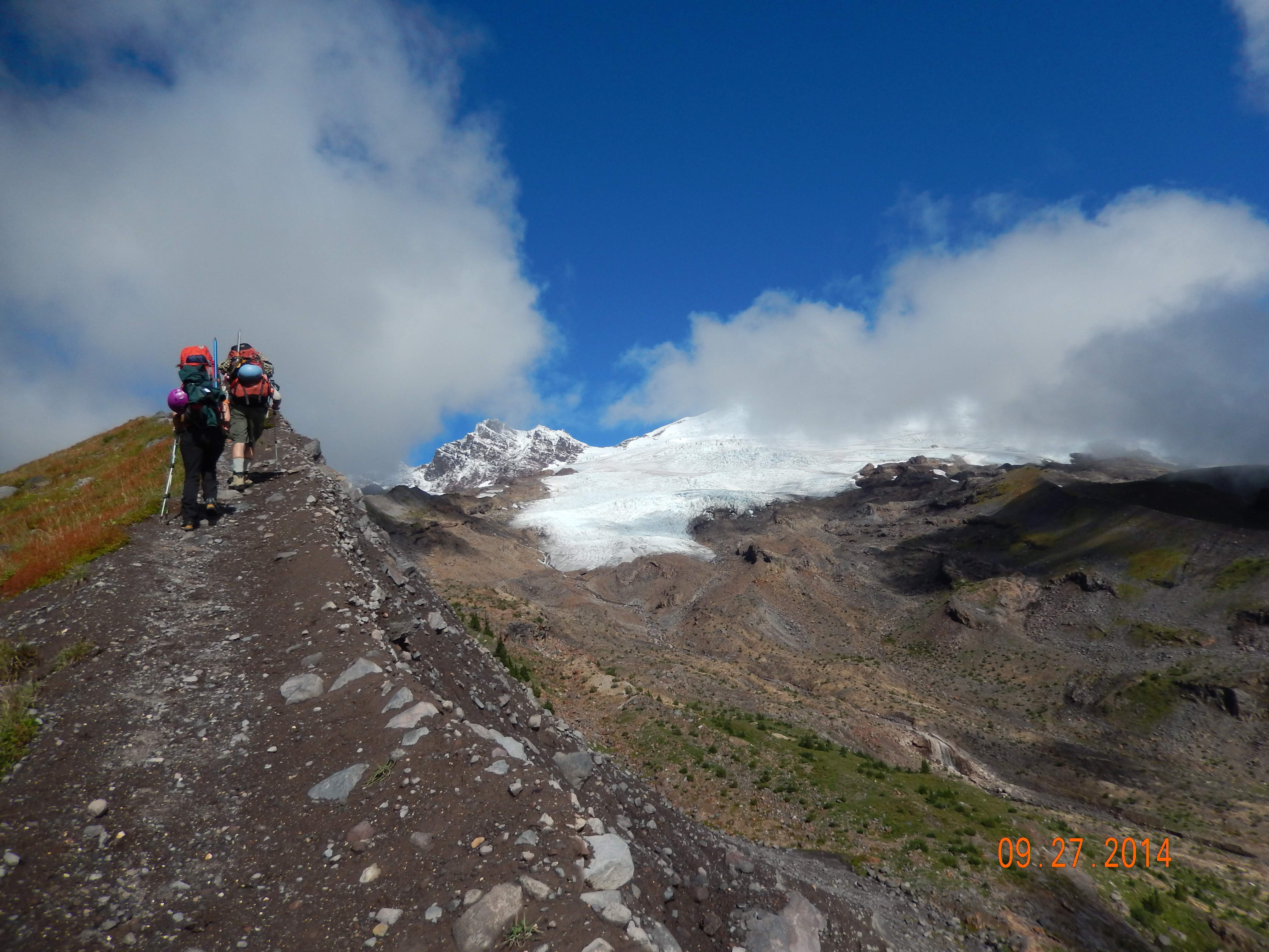 We made camp about a mile from the foot of the glacier - in a great little spot above the treeline with great views. We did a big gear layout (I had brought gear for most of the folks here) and we got everything all setup for tomorrow. We also did a few practice falls and practiced how we would move once we got onto the glacier.