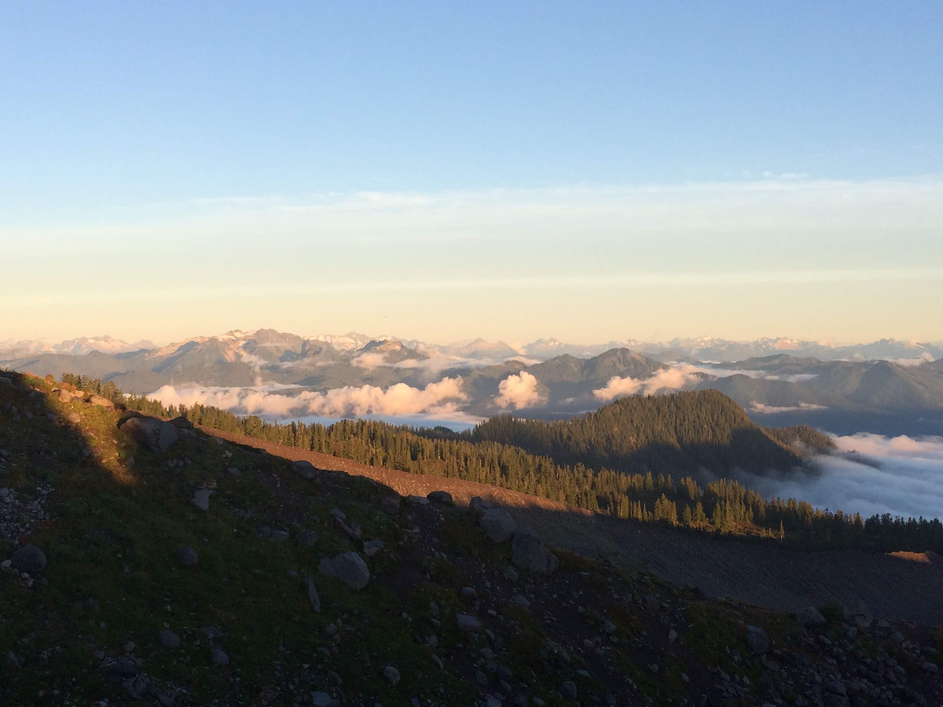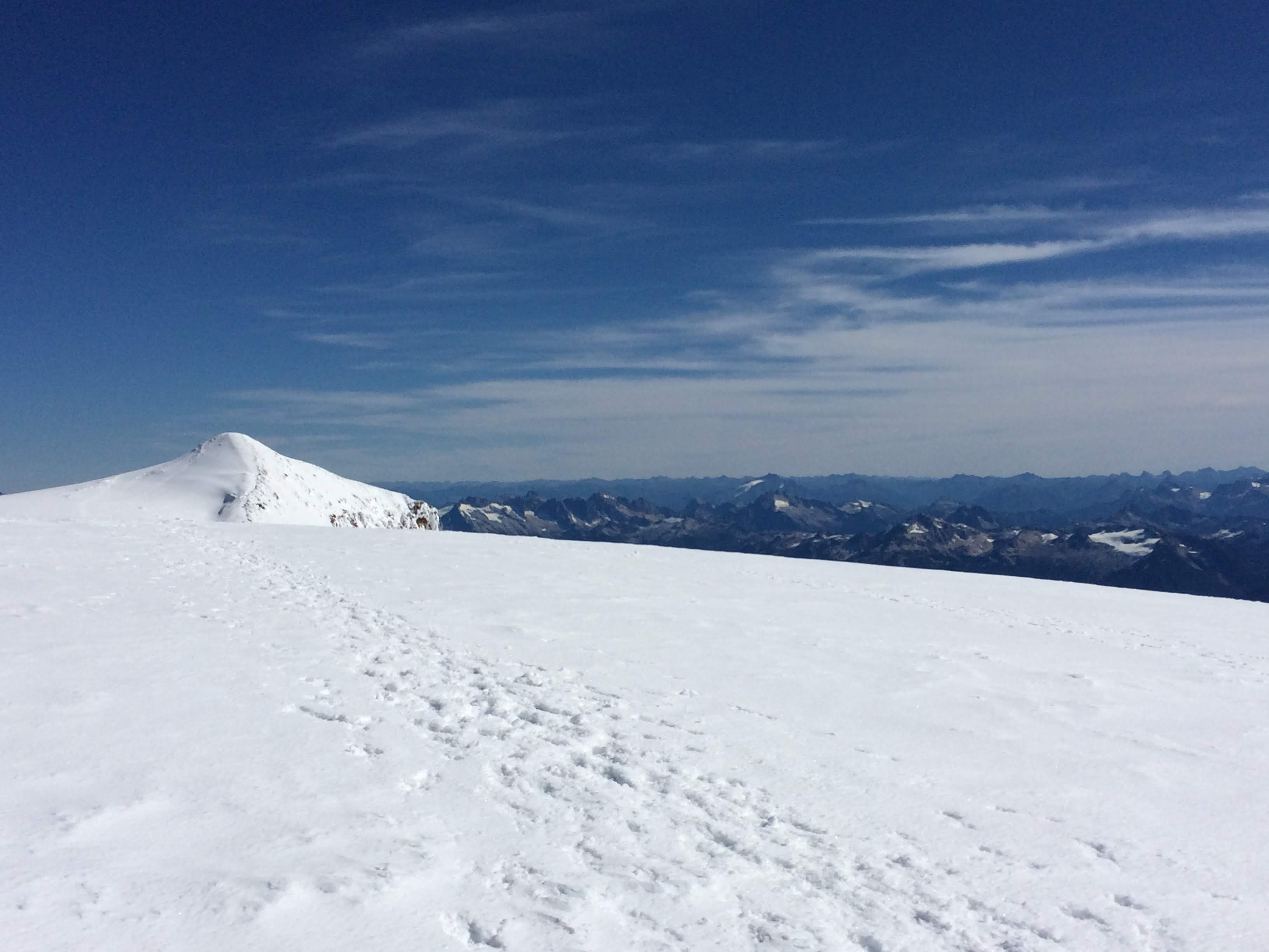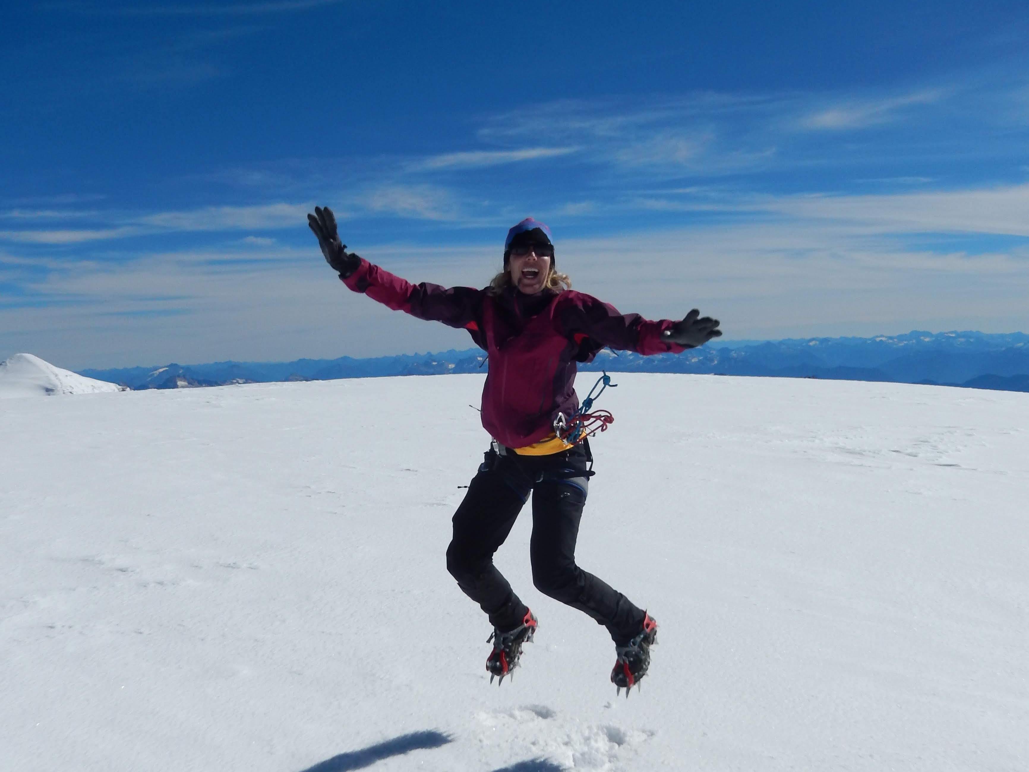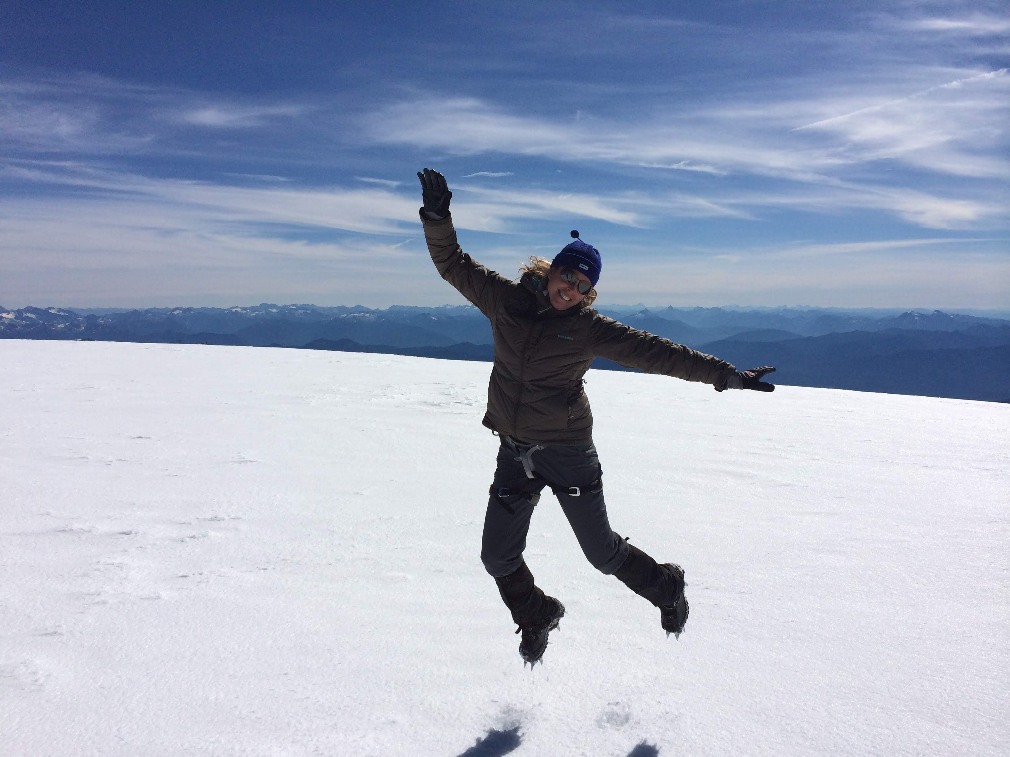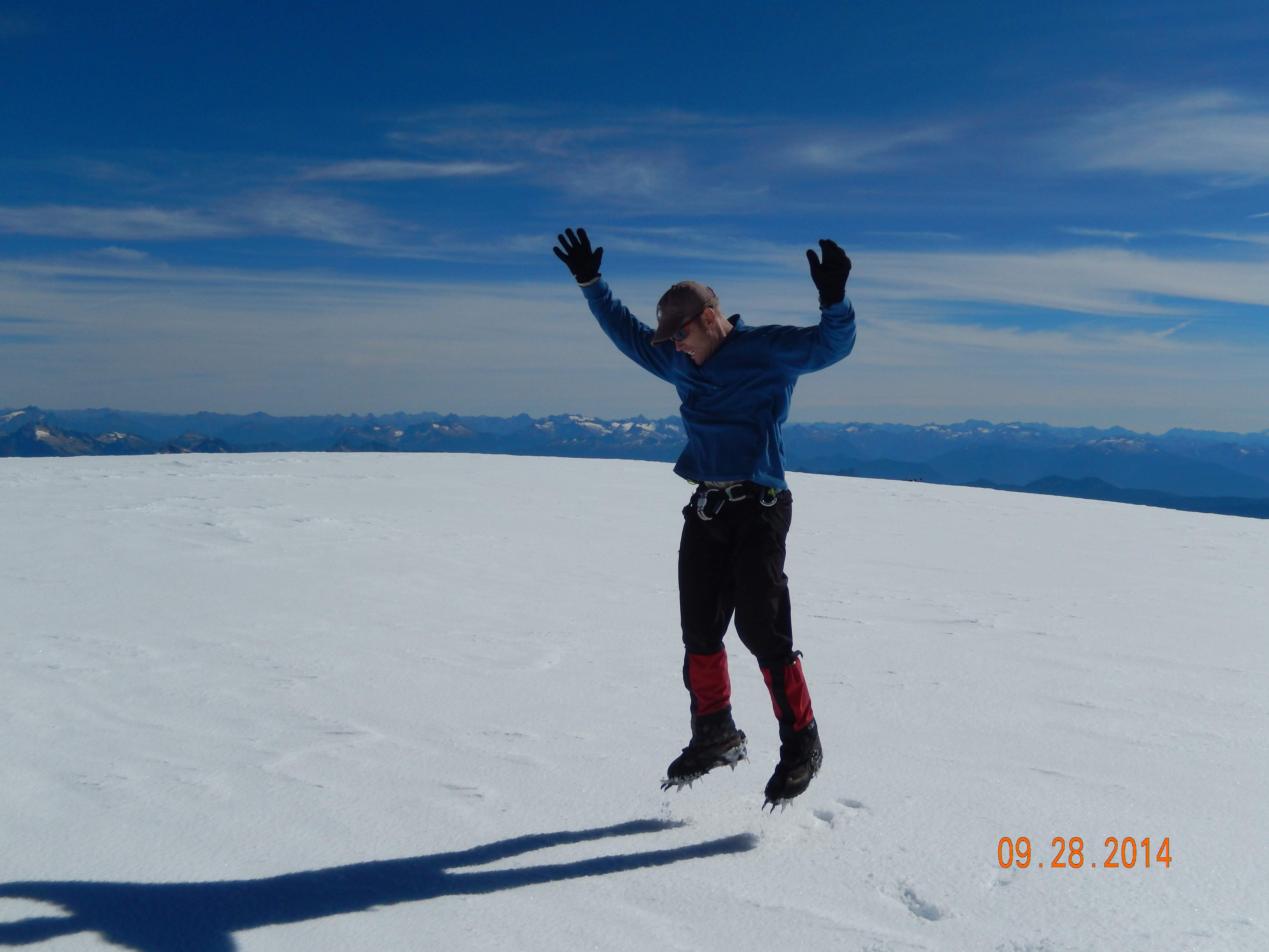 There is a false summit on Baker - when you get to the top of the steap approach slope, you get to this summit, but the real summit requires you to walk down into a saddle and then back up to the summit. It can be demoralizing, but the false summit is a good stop for a break and the final walk to the real summit is easy (and really pretty - it’s basically a big open field where you can see in every direction). We did the last stretch - and then celebrated with some summit jumps!