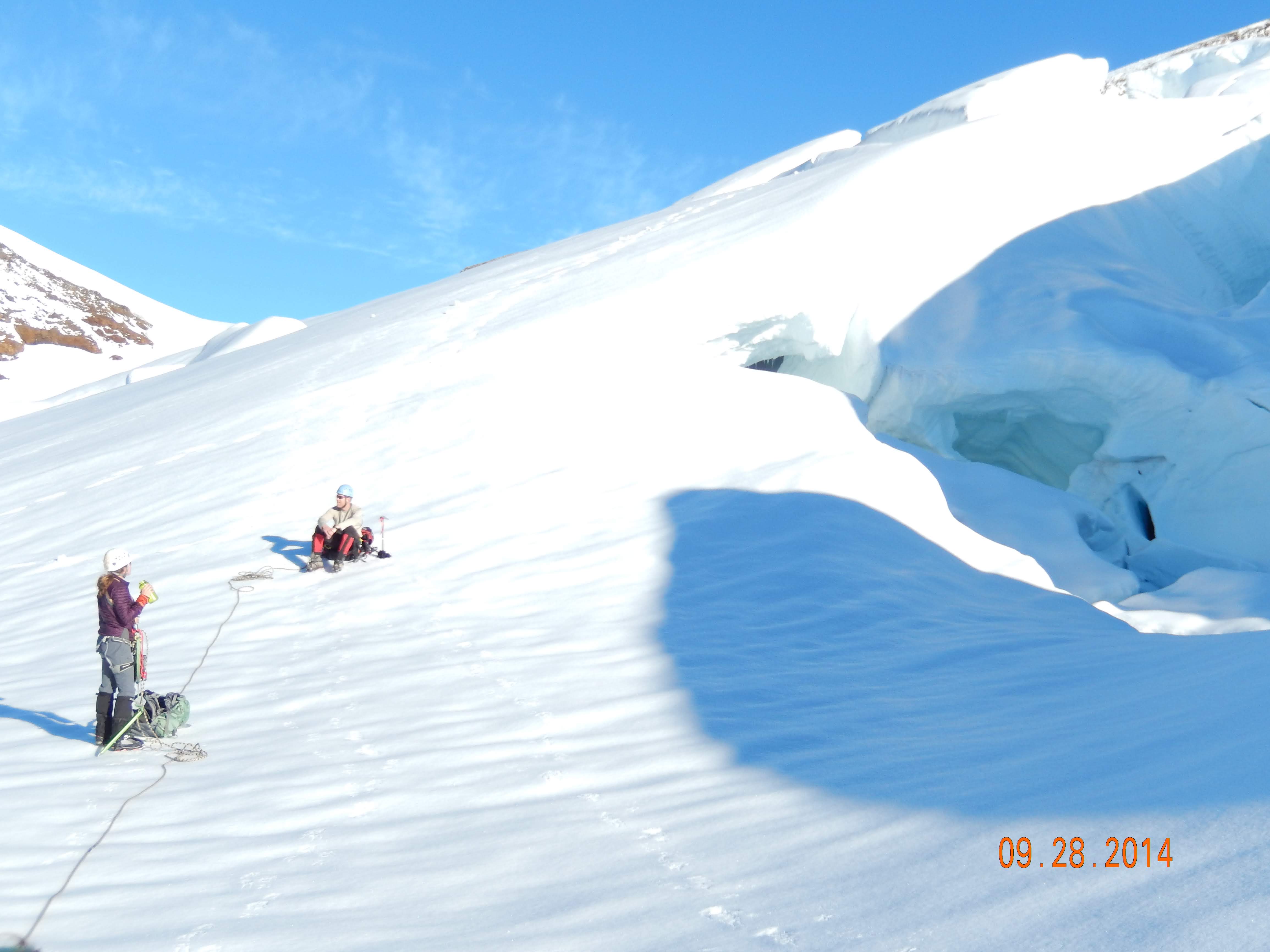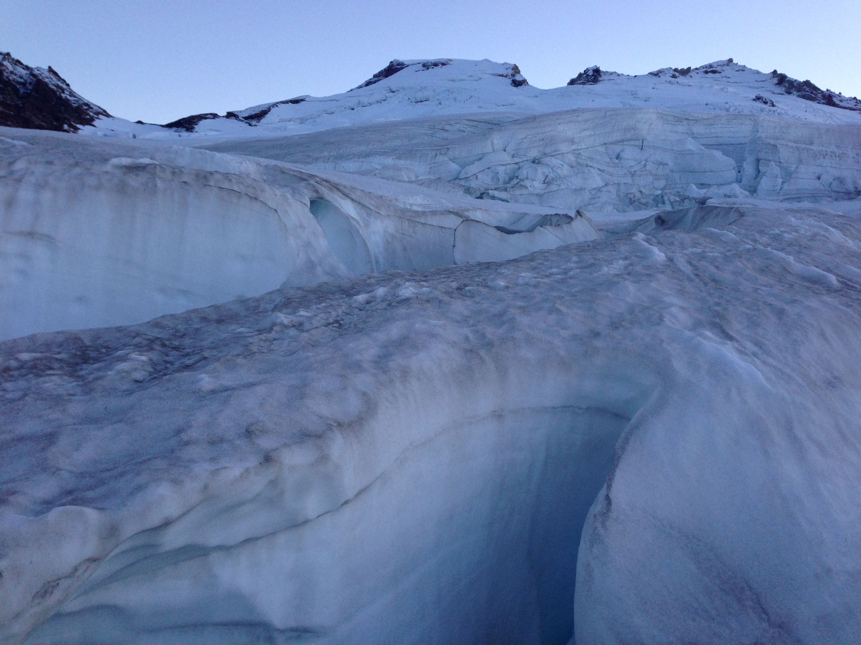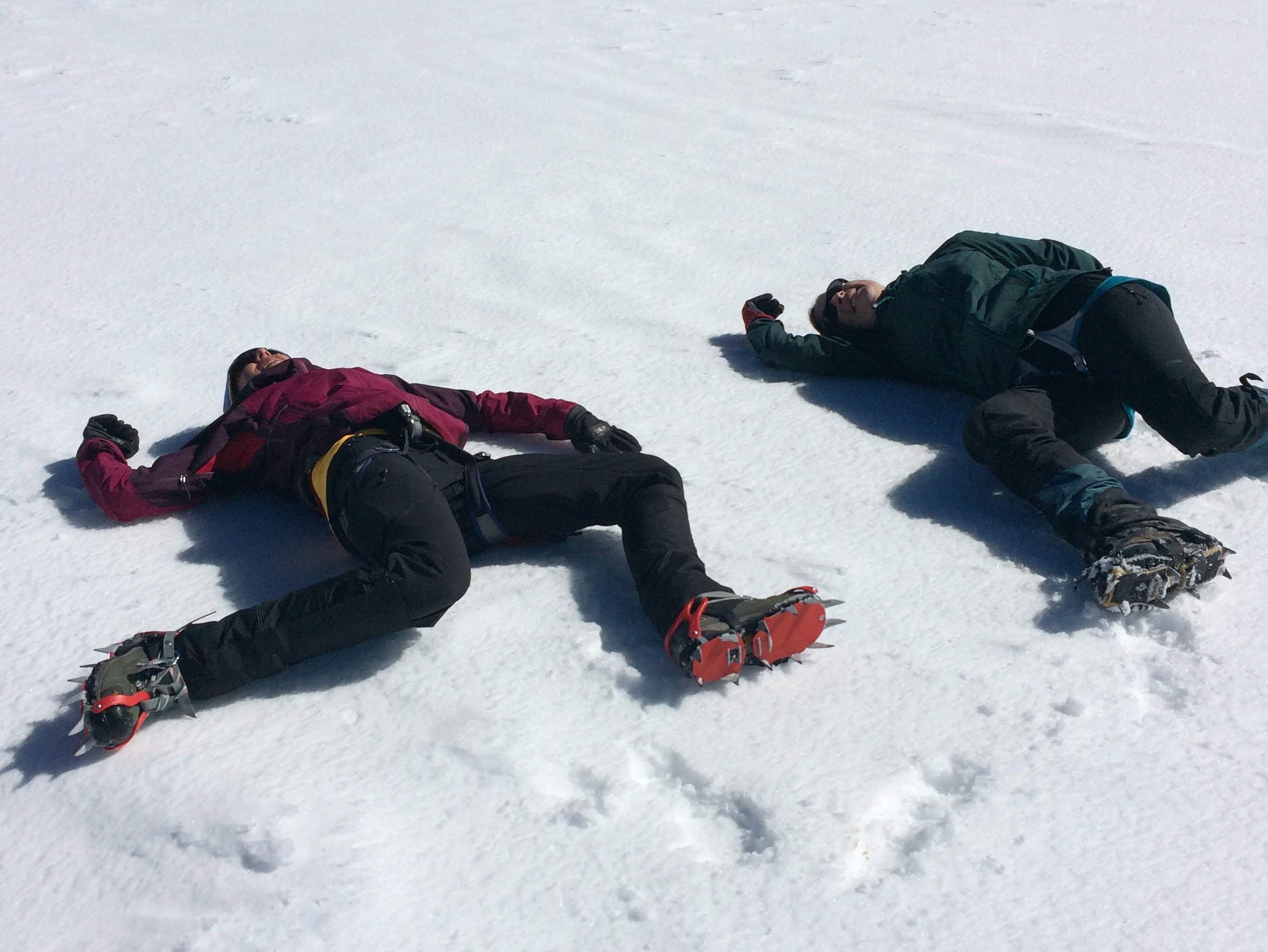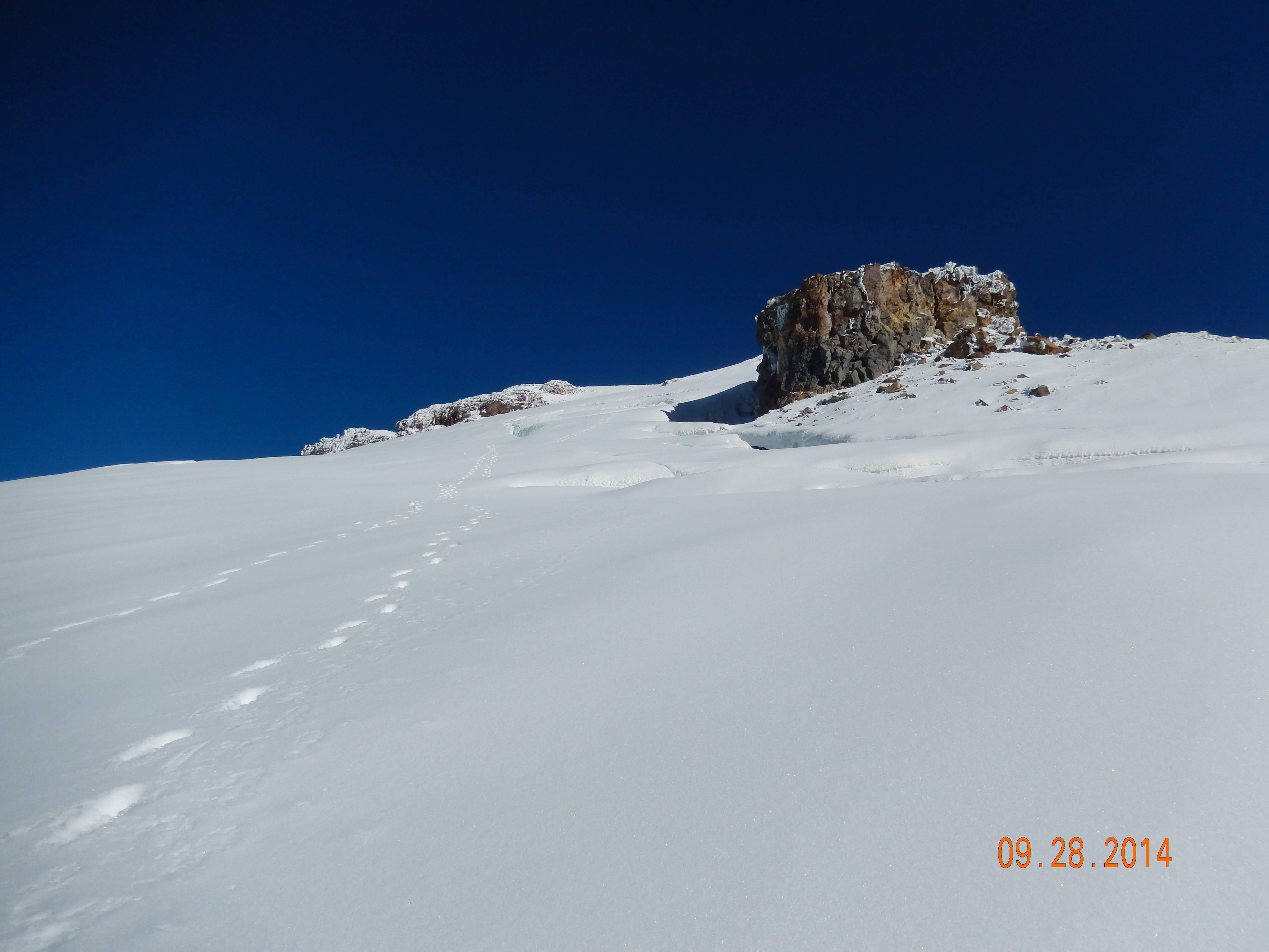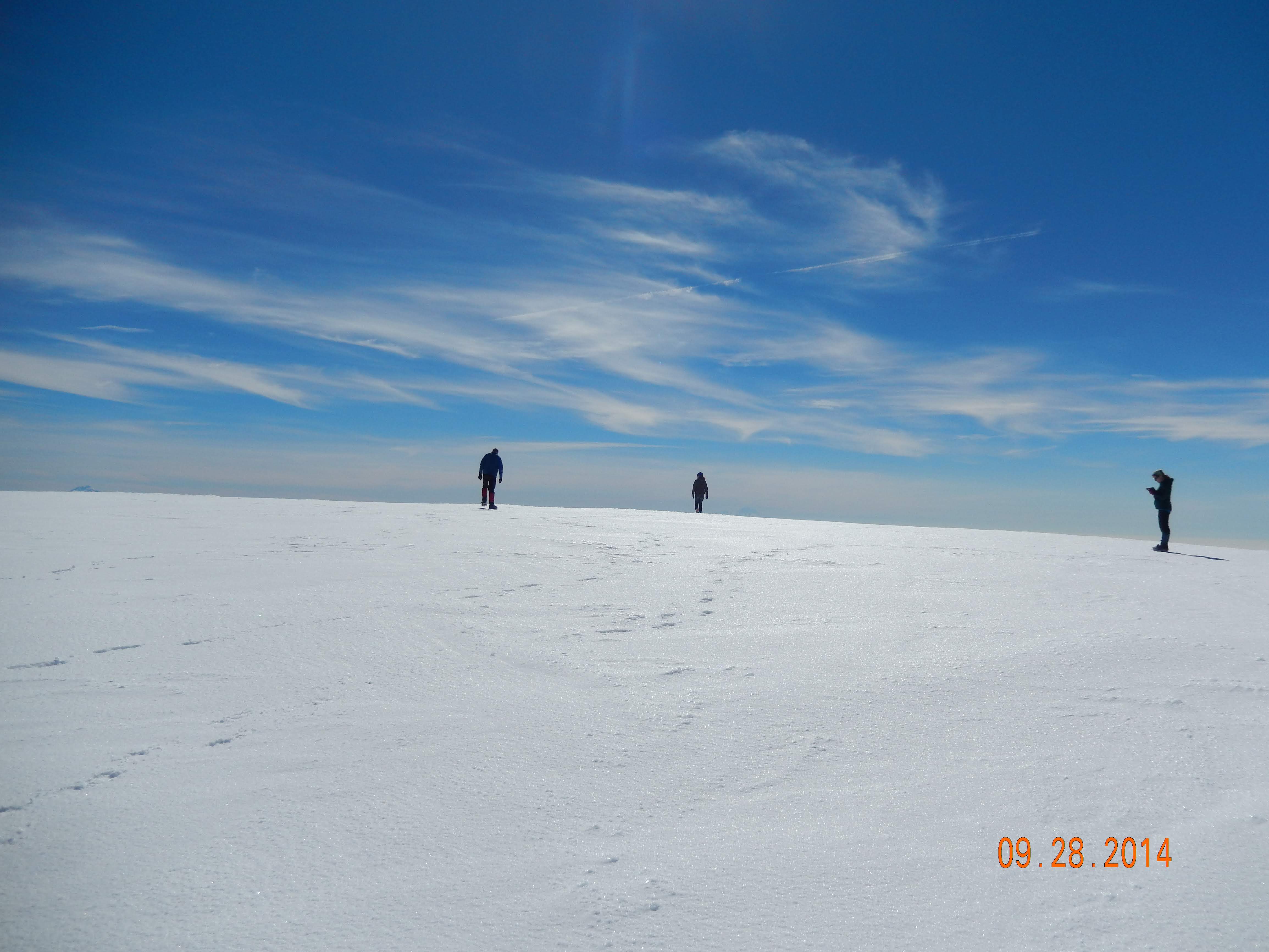 We stumbled out of camp at like 3a and made our way to the glacier. We go to the glacier right around sunrise and got ourselves put together. This is where things got interesting. We had just gotten all of our gear put together and were about to start, when a random guy just walked past us. He gave us a good morning and how do you do, and then just started walking up the glacier by himself. We all did a doubletake and questioned our sanity - did we just see a ghost or a halucination?