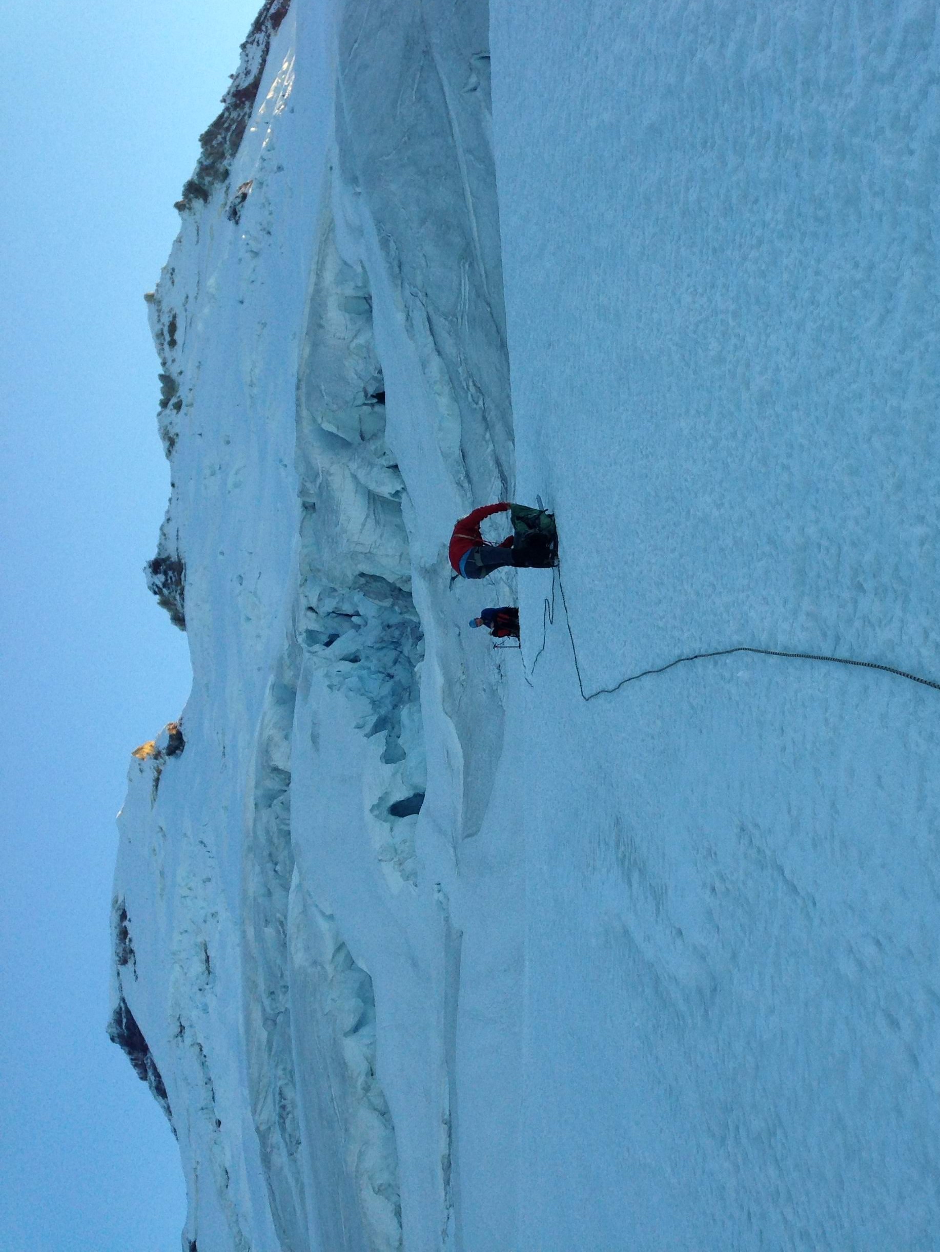 And as soon as the sun had fully risen, the man’s foot steps disappeared. We never saw him again, he must have gone down the other side… We continued to speculate as to what was happening in the universe while we climbed, but as the sun comes up on a climb like this you get an awesome opporunity to see this huge alien world around you - this climb was no different. Everyone was in awe a this amazing scene unfolding around us and we stopped thinking about the ghost quite as much (althouth it continued to be a running joke for the next few weeks).