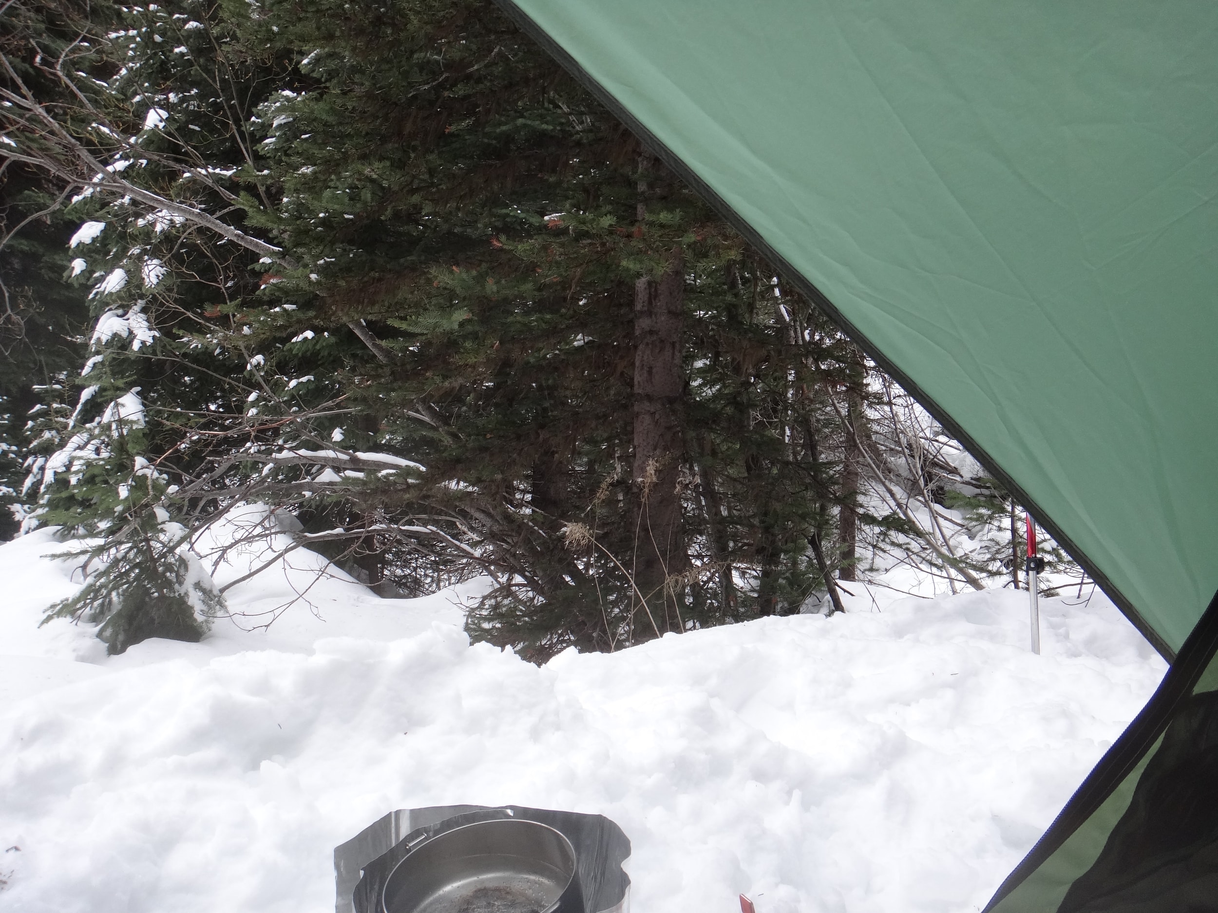 After 2 or so miles, it became obvious that we weren’t going to make it the 6 miles to the lake. About 2 miles in, we called it and setup camp.