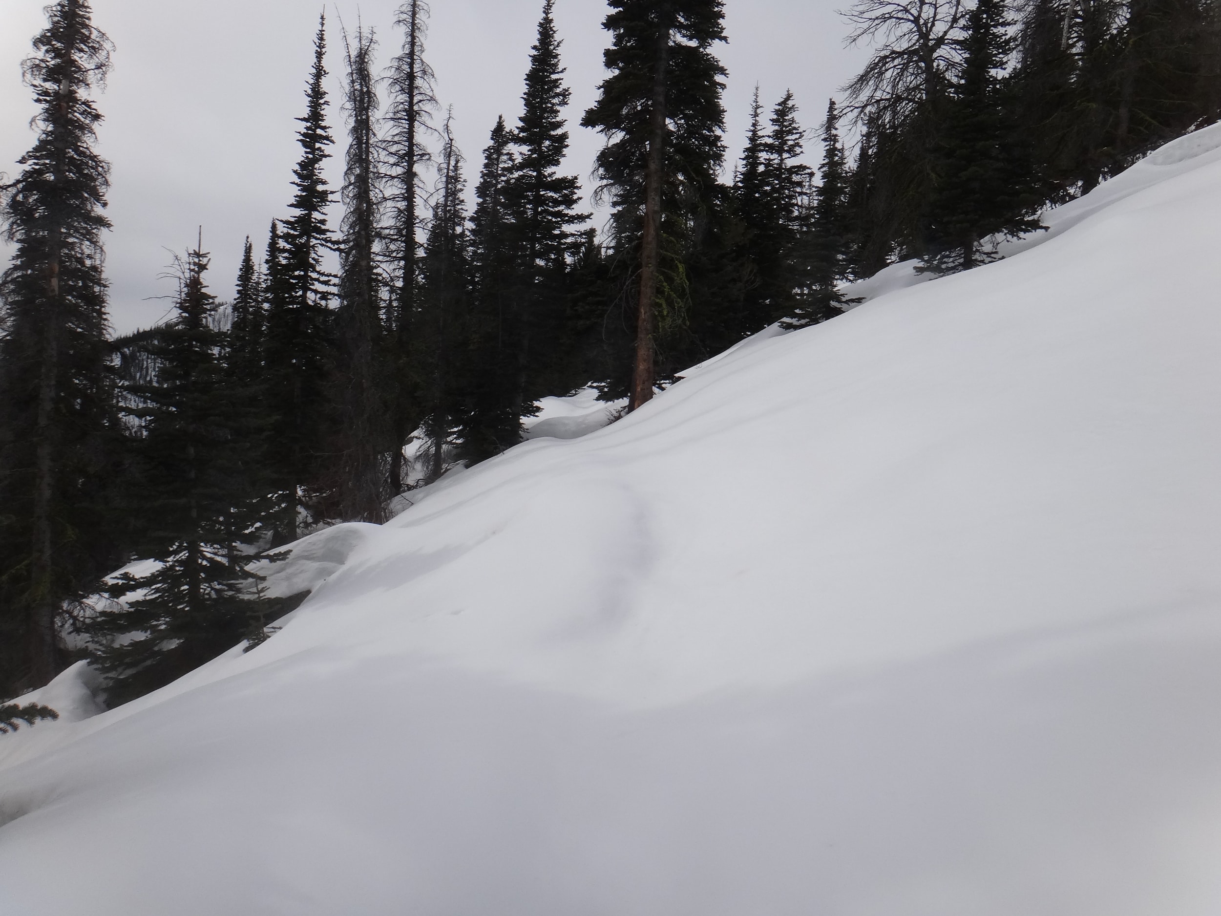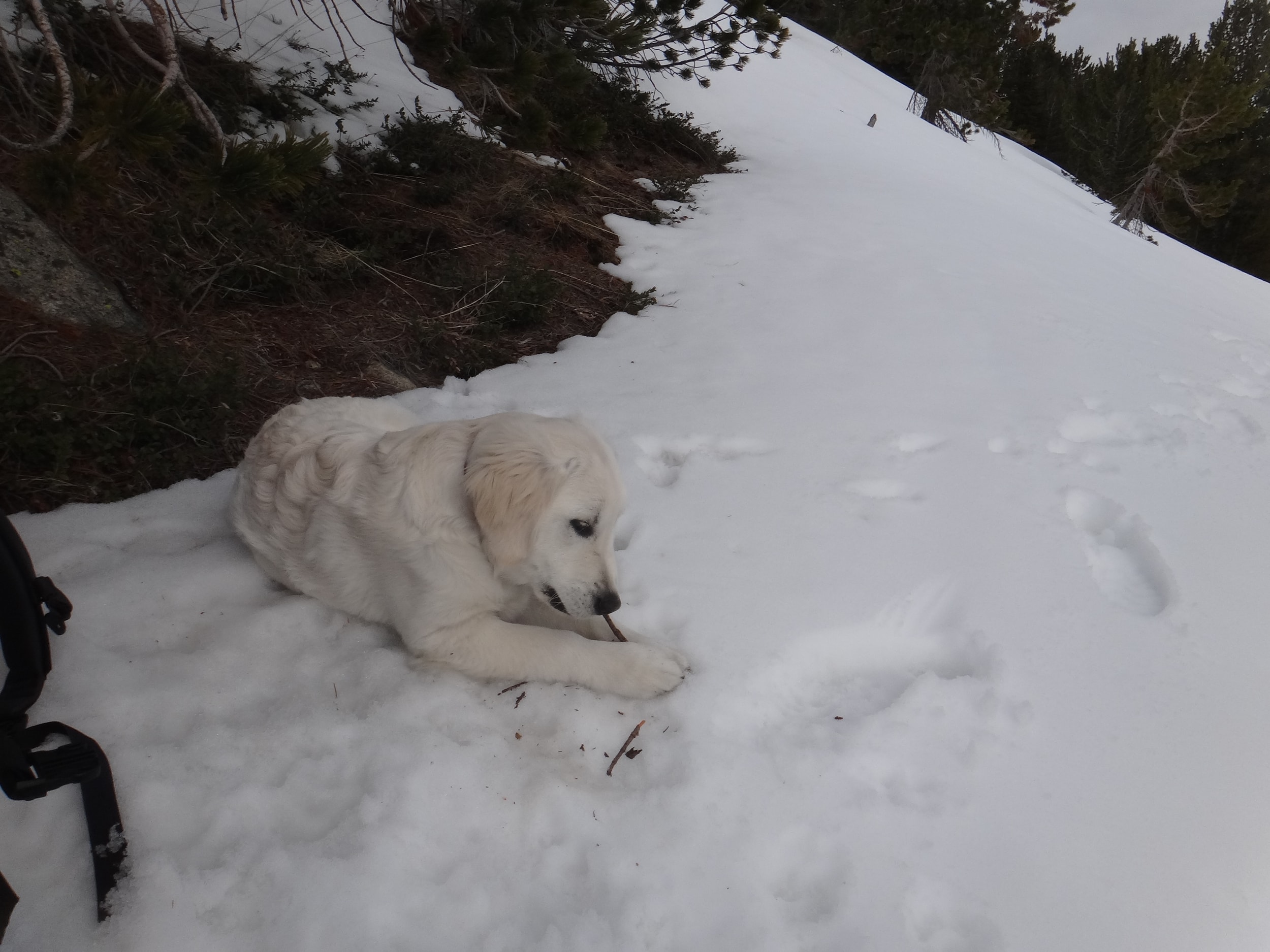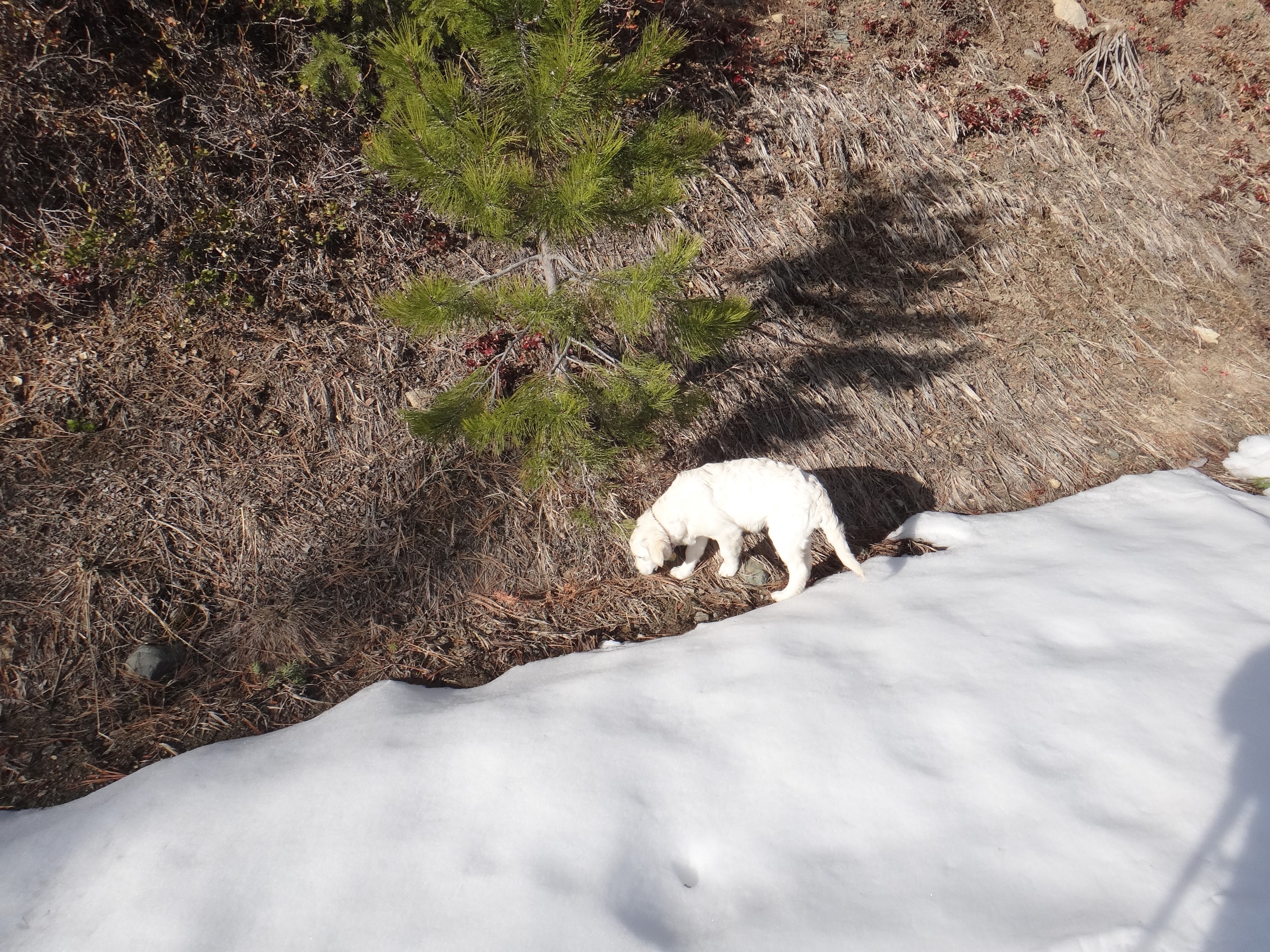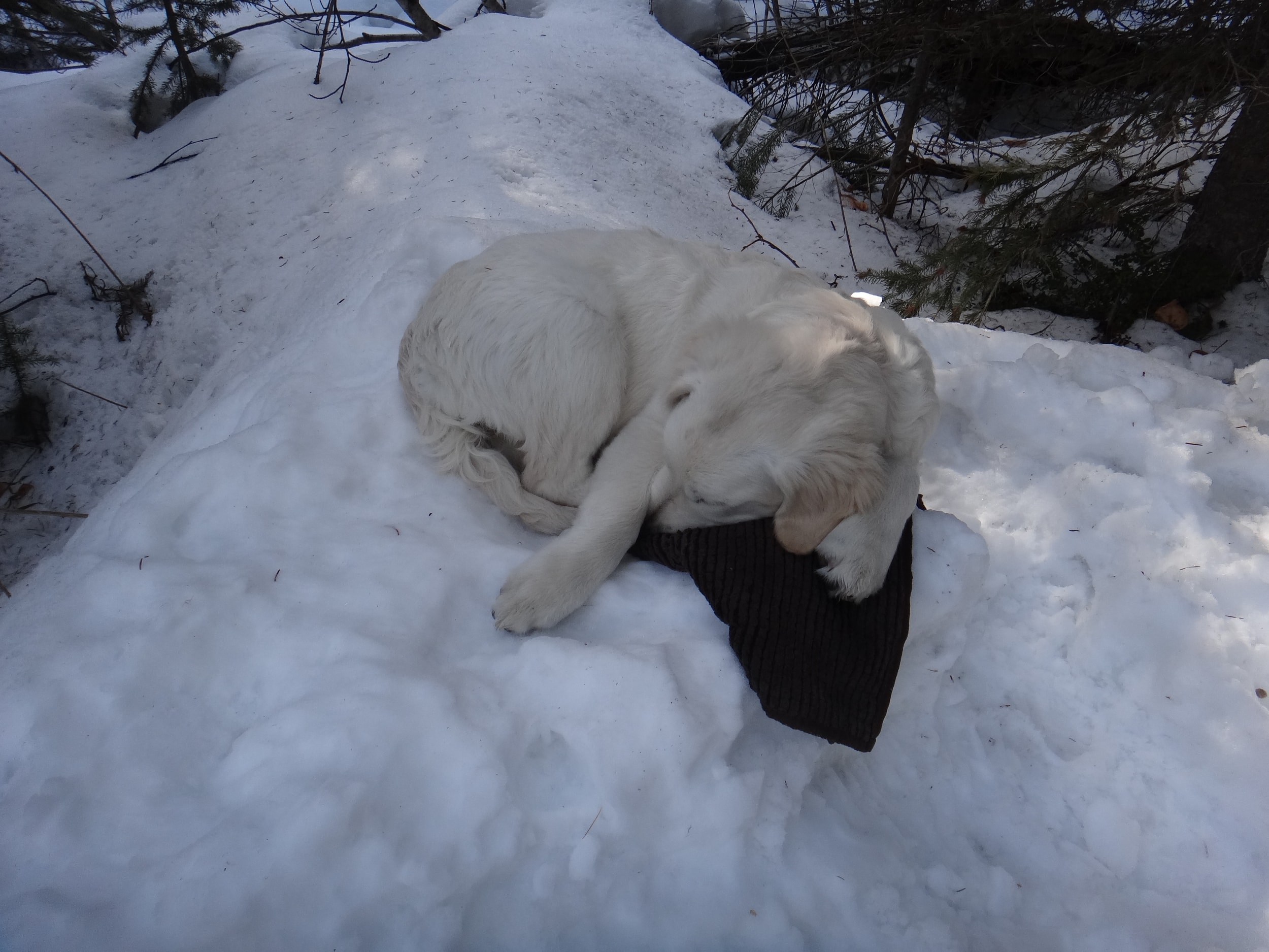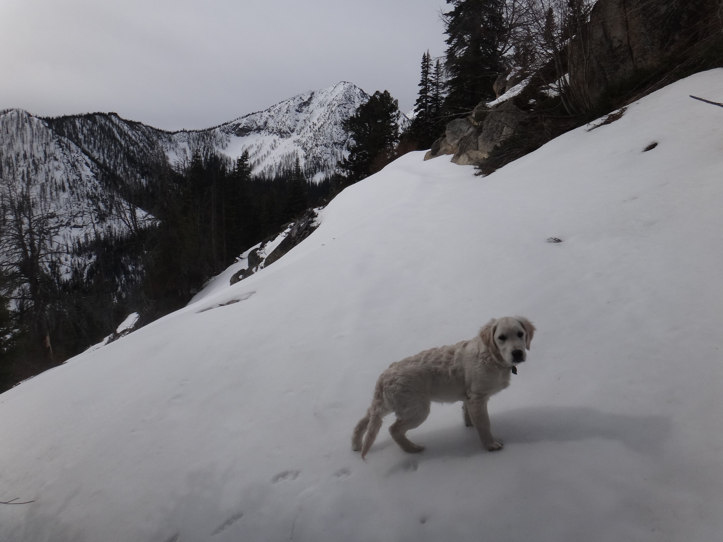 Most of the way, the trail had a strong slope down to the left and everytime a little bit of snow would break free and slide down the hill - Oakley went after it. This went on for probably an hour - puppy energy! After an hour though, she was completely smoked - puppy stamina!
