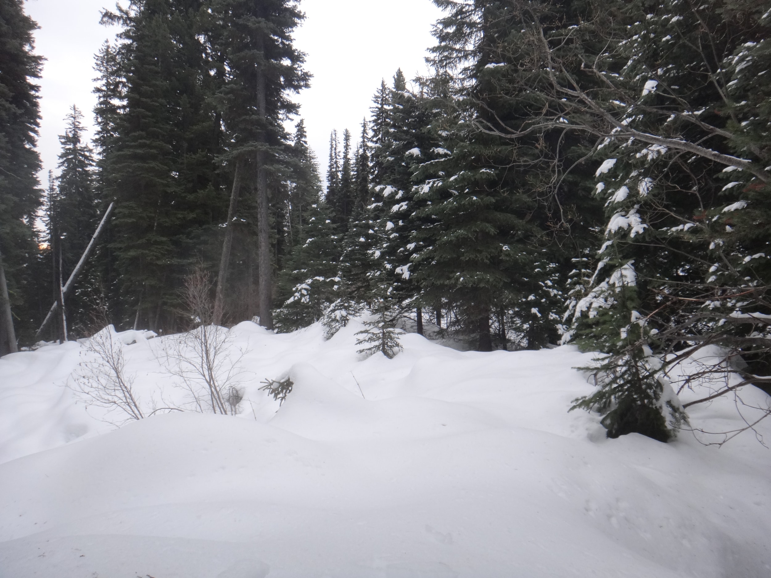 I ended up parking on the road right before the parking lot because of all the snow. I packed up all the stuff and we headed out. The hike was very snowy - no ground in sight. It was firm though, so we actually did pretty well for a few miles.