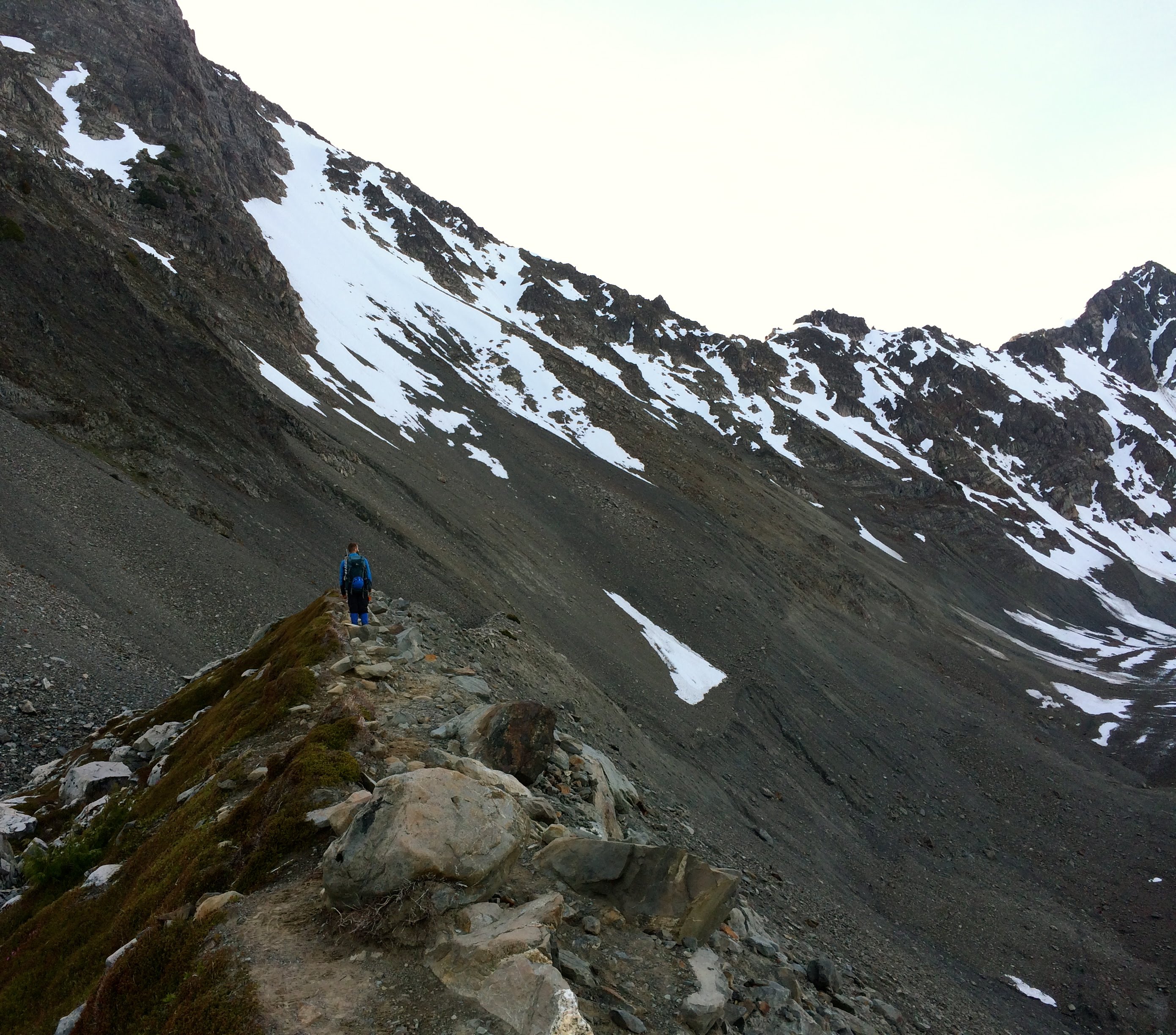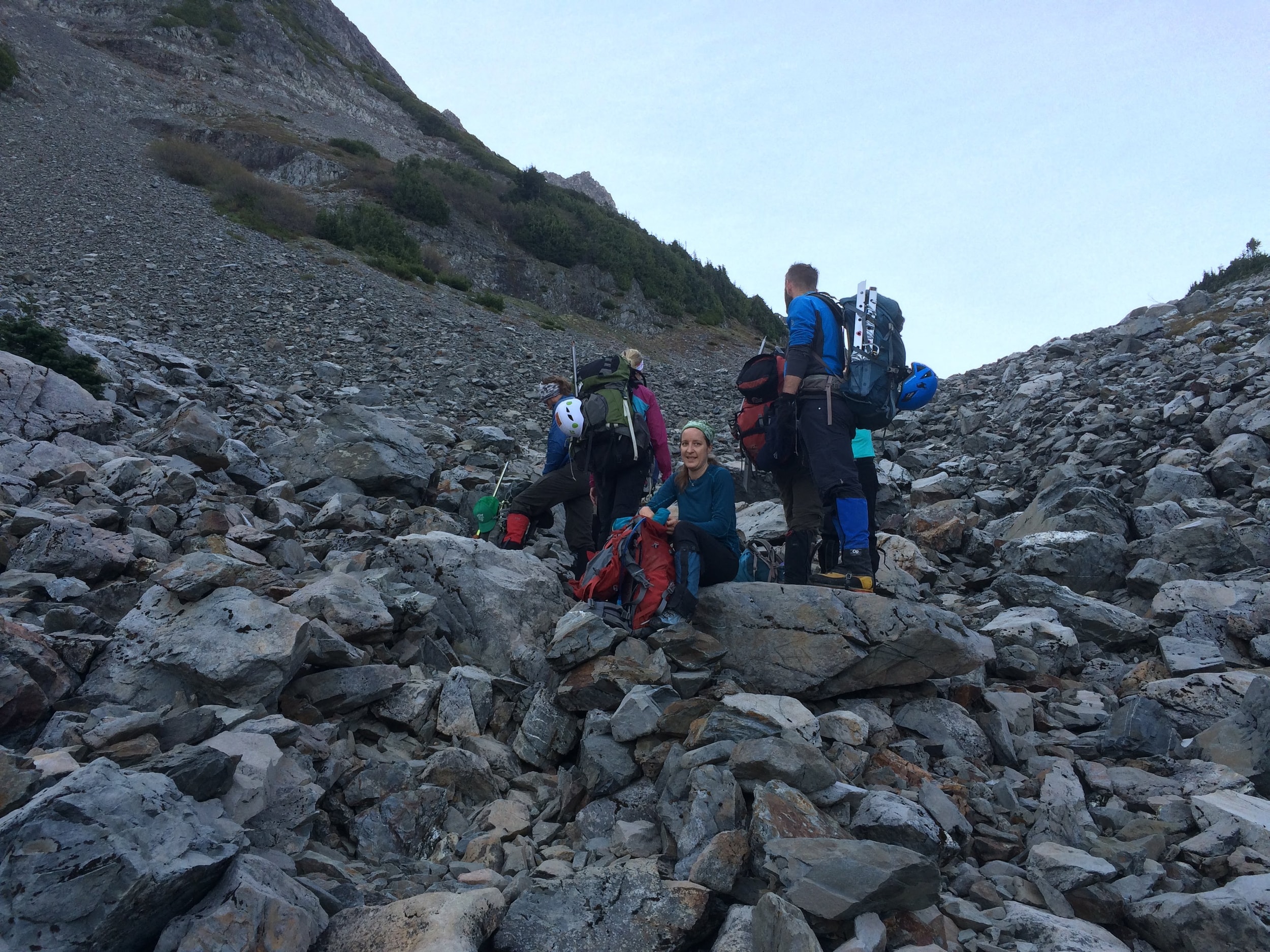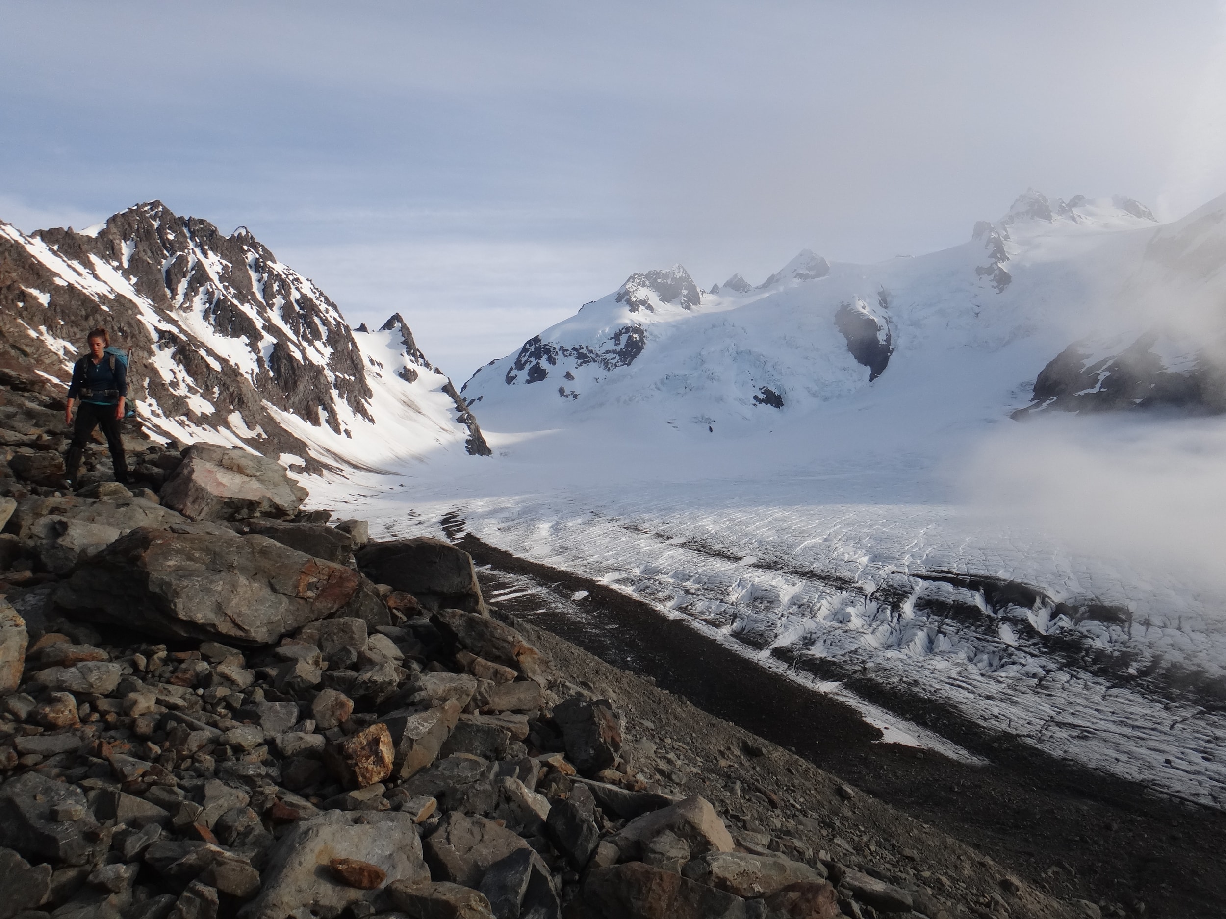 Our campsite was right on the other side of the ridge from the terminal moraine - which marked the beginning of the glacier. Once we setup camp, we all hiked over to get a peek at it but we knew we had a big day tomorrow so we prepped our separate dinners. I brought along a backpacker meal, but Scott and Amy upped the game by bringing chopped veggies & meat and made a stew. There packs will be much lighter on the way down!