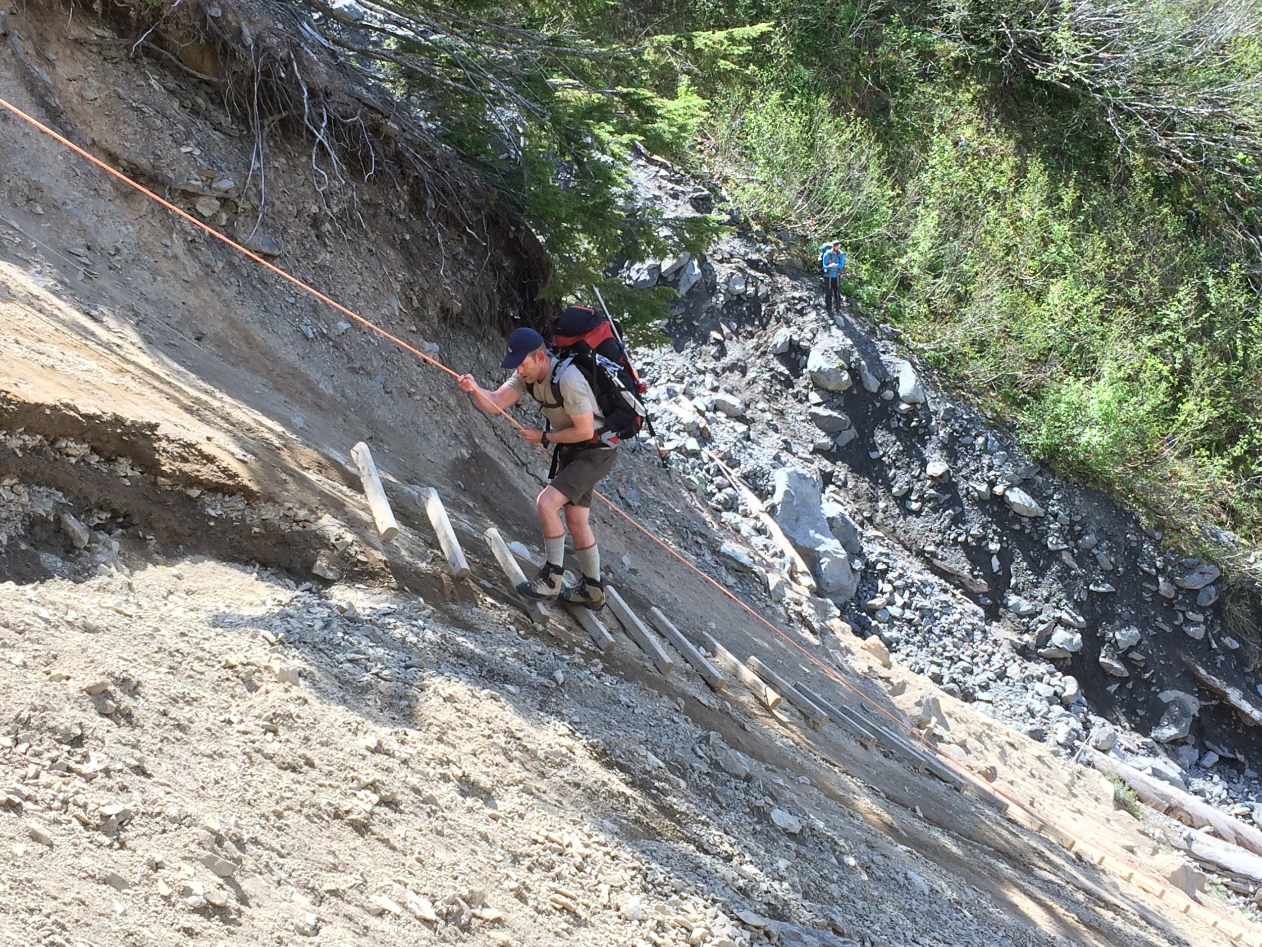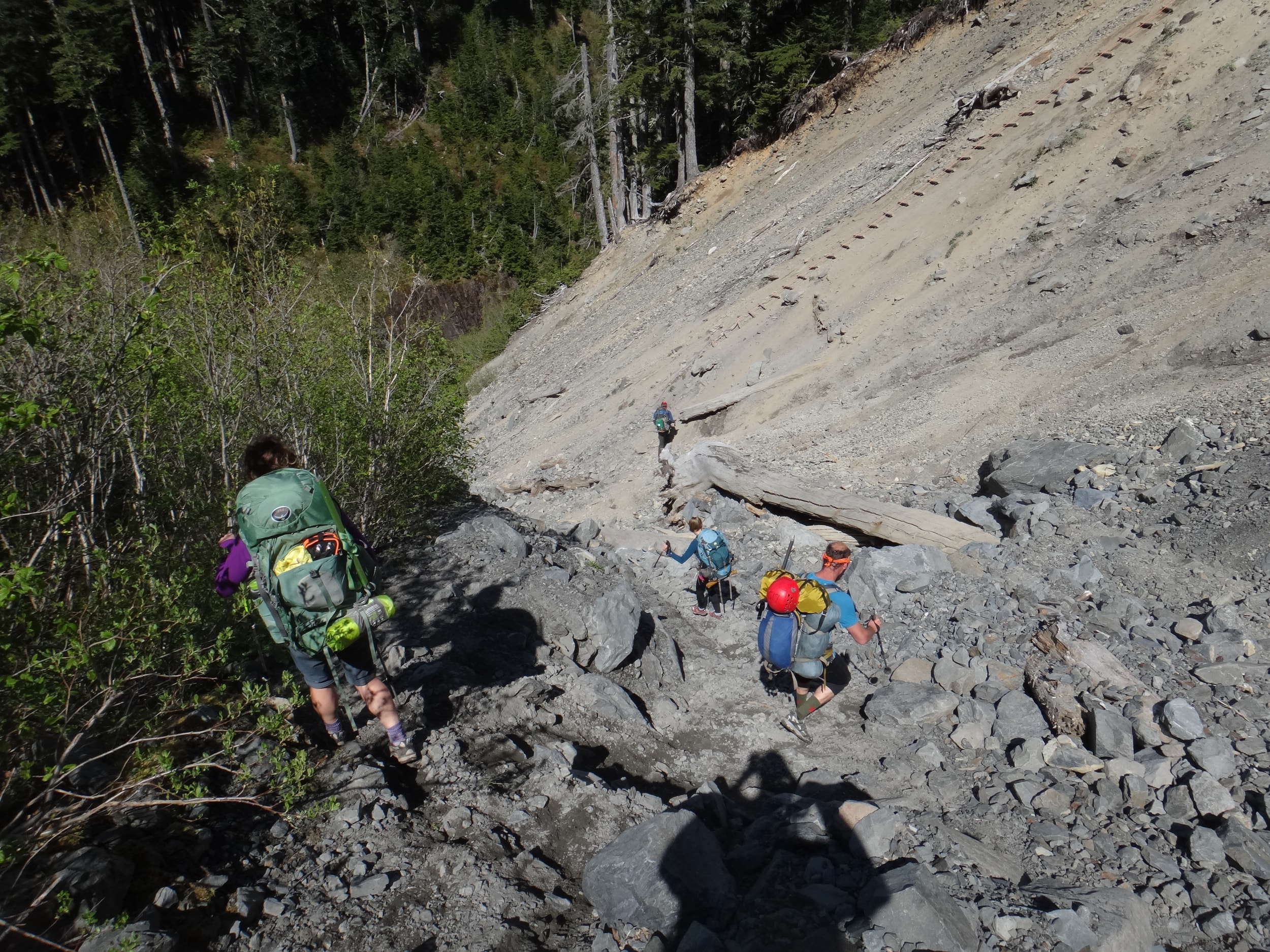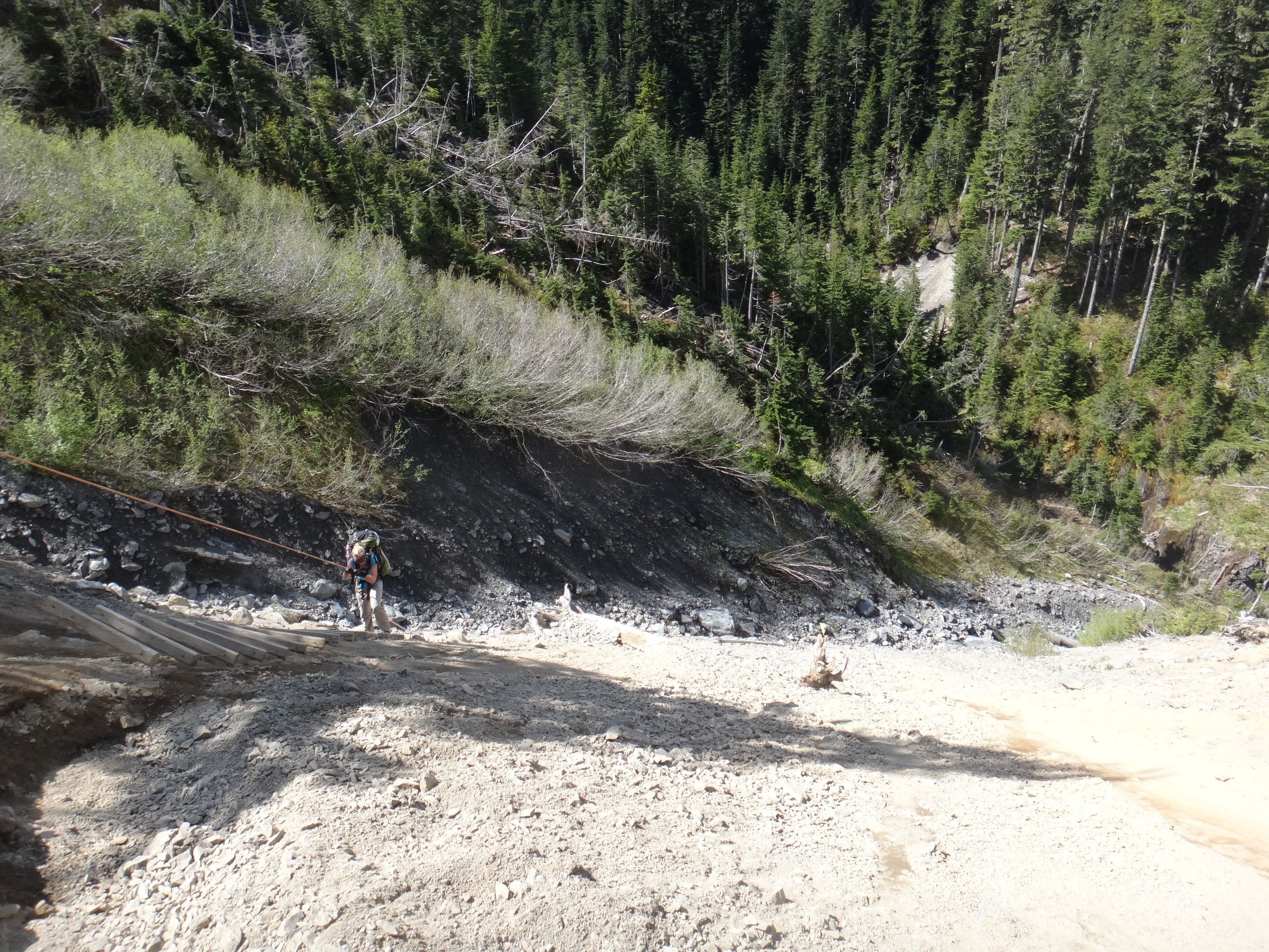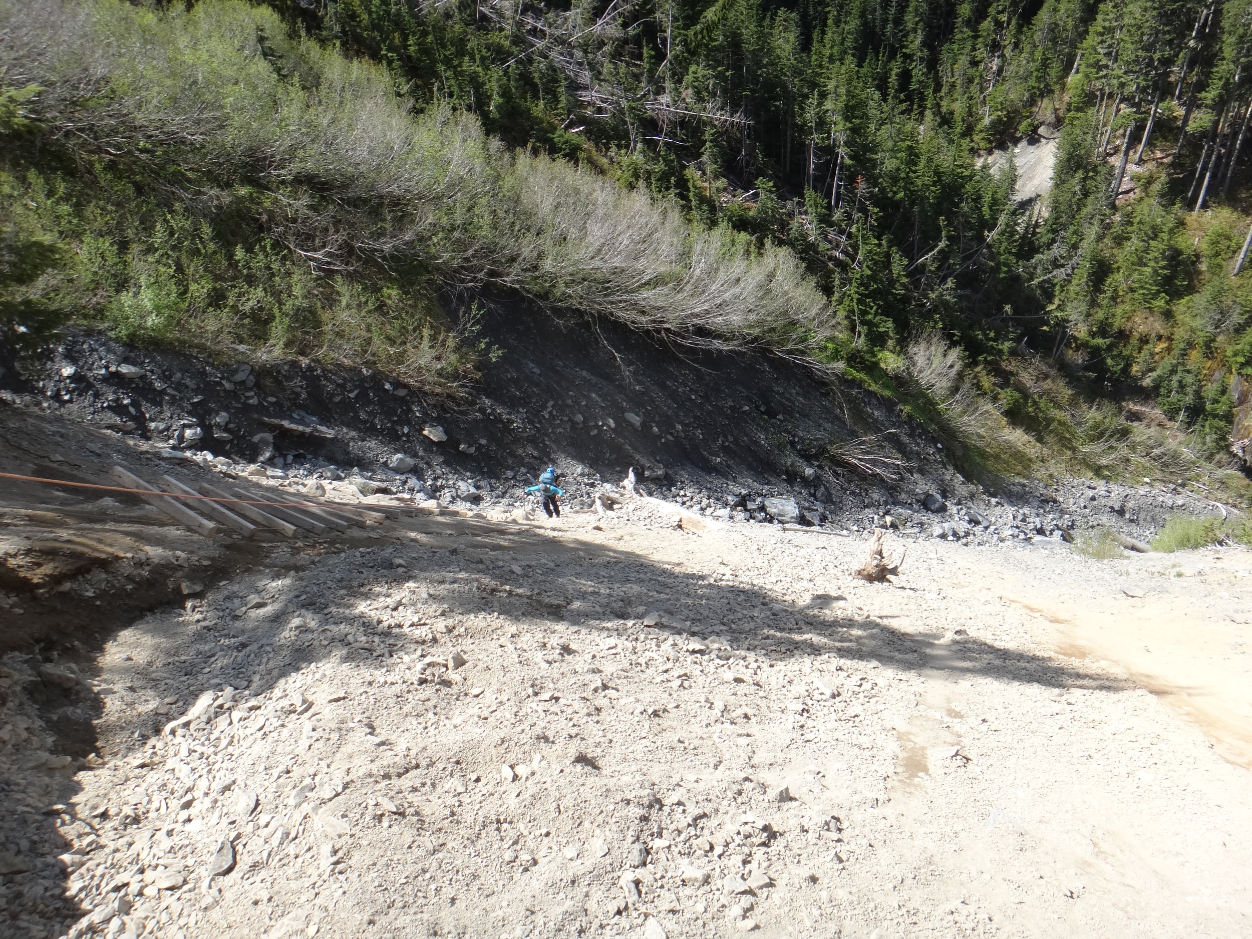 As we got past the 15 mile mark and elk lake, we arrived at the washouts - which had been there for several years at this point and are still in the same state as far as I can tell. There are some rope ladders to help you along, but it’s a slog to get through this area - hot and a lot of climbing to do… On the other hand, it definitely breaks up the monotony of a long flat hike.