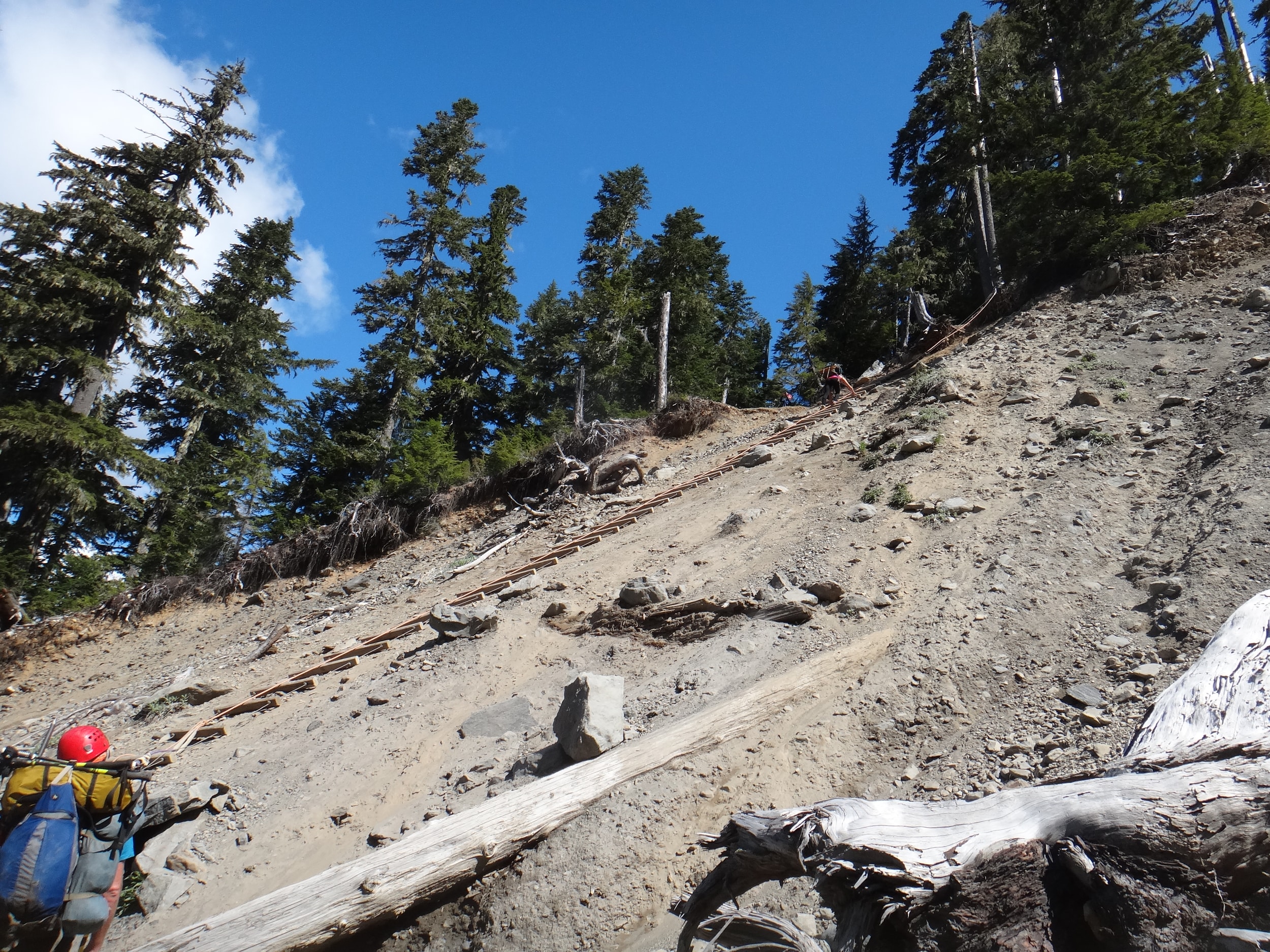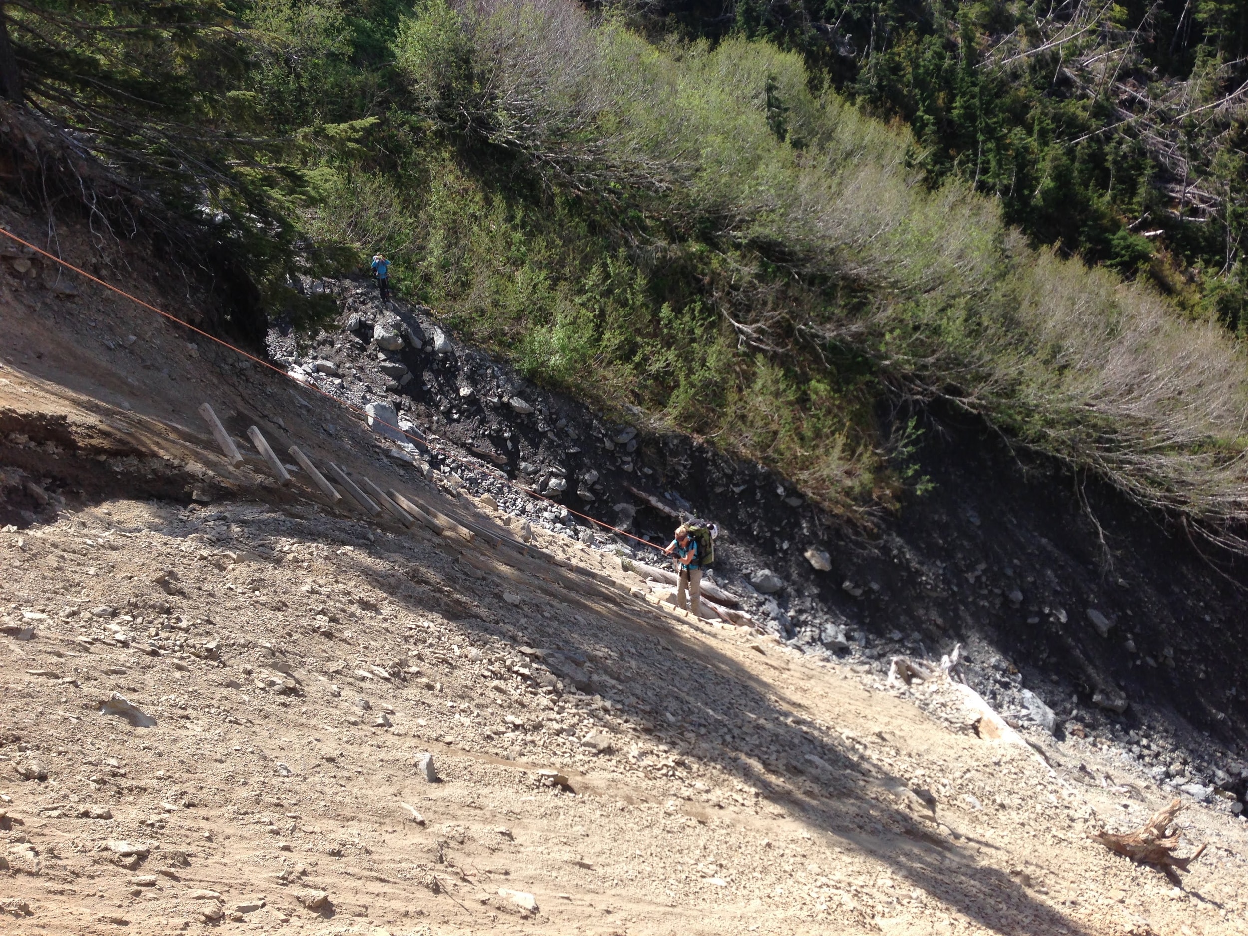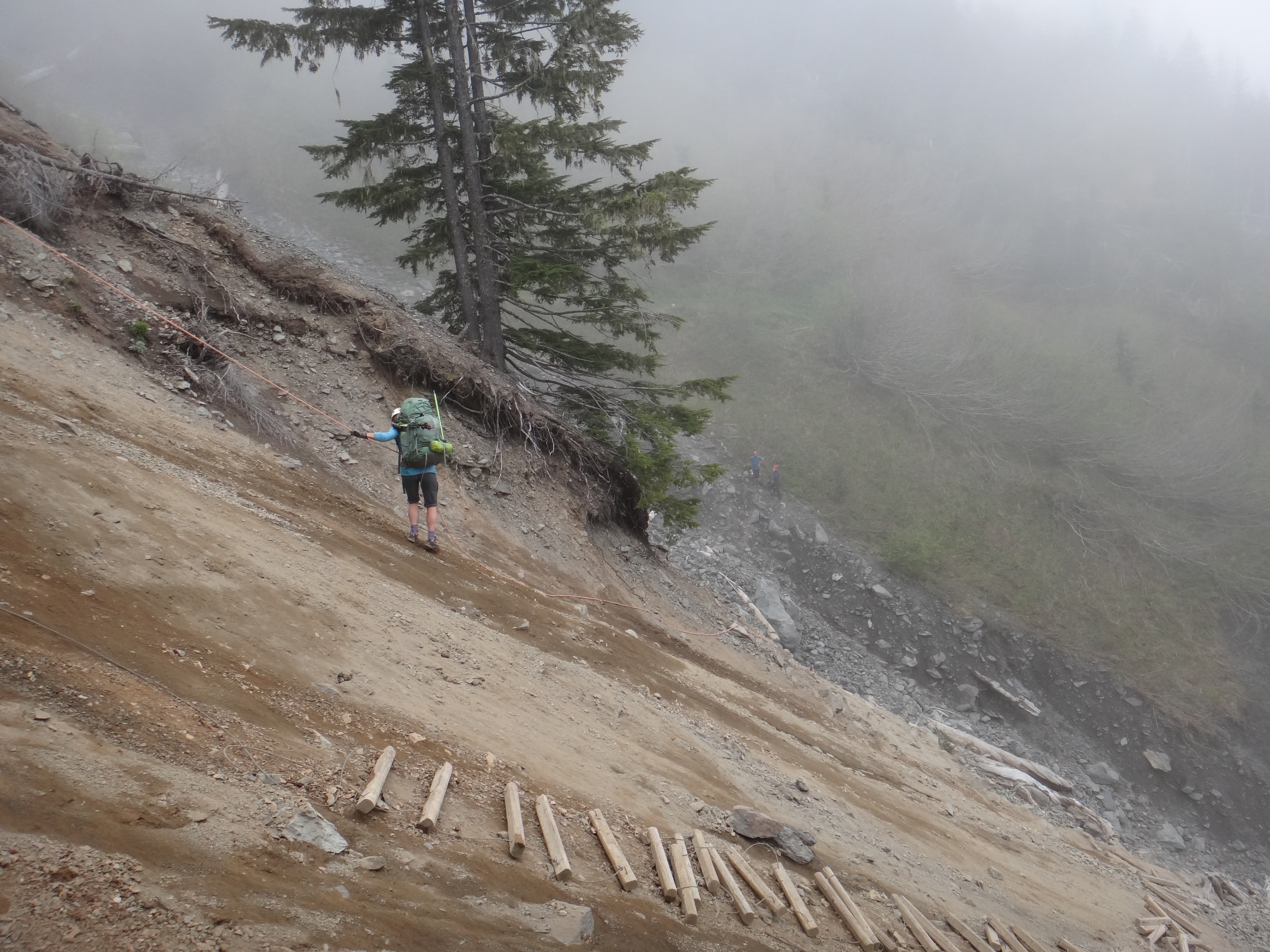 As we got past the 15 mile mark and elk lake, we arrived at the washouts - which had been there for several years at this point and are still in the same state as far as I can tell. There are some rope ladders to help you along, but it’s a slog to get through this area - hot and a lot of climbing to do… On the other hand, it definitely breaks up the monotony of a long flat hike.