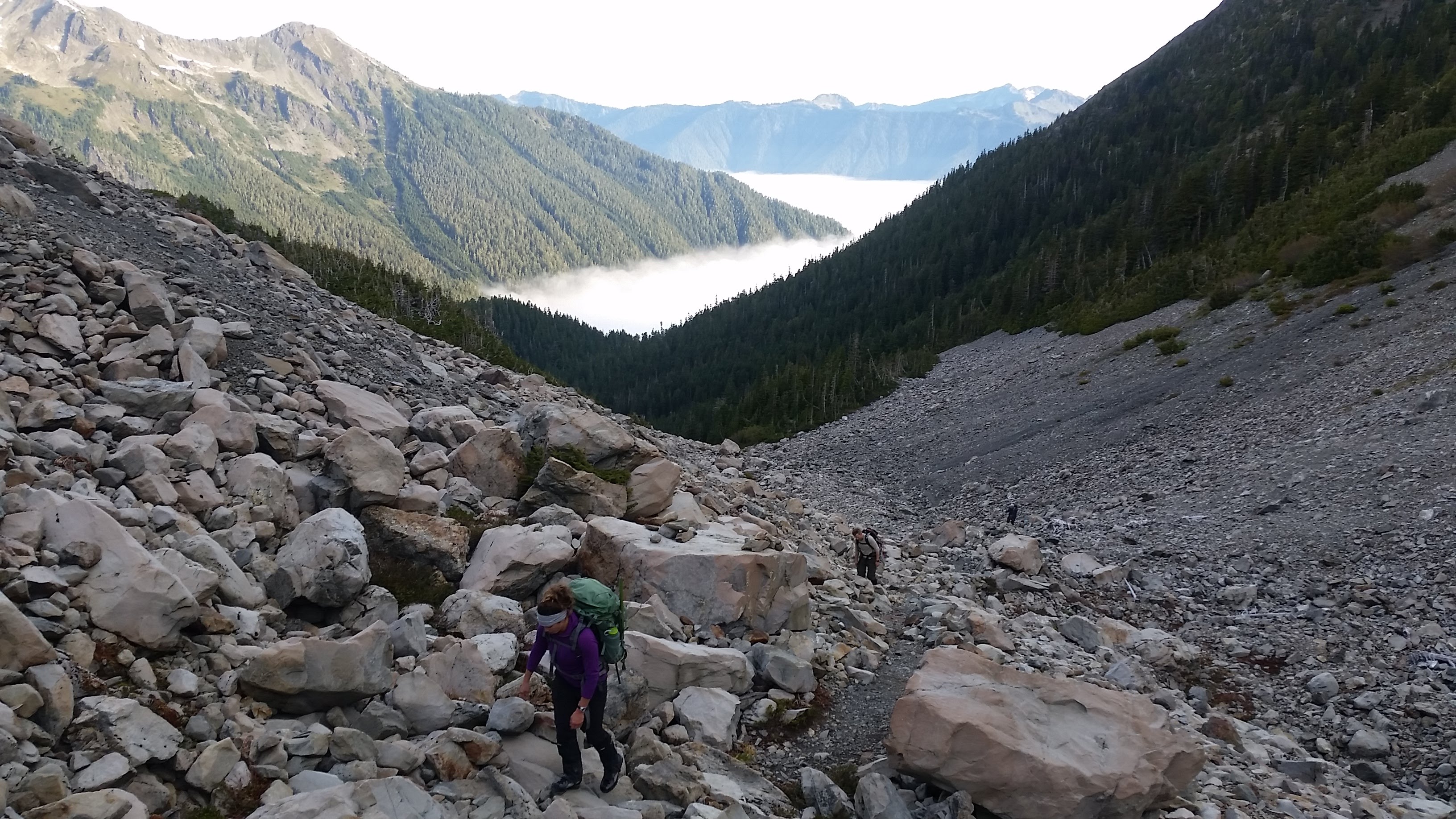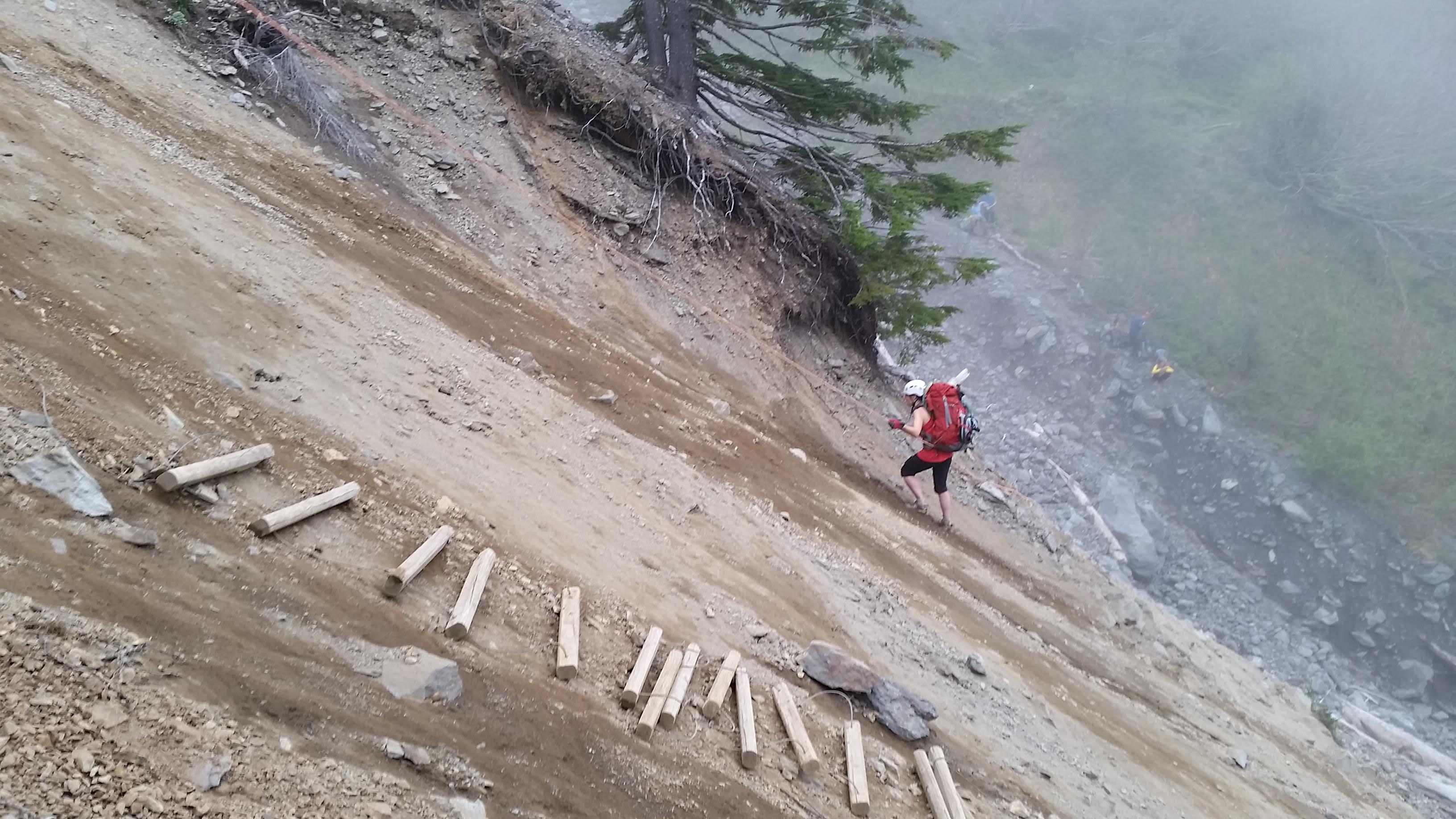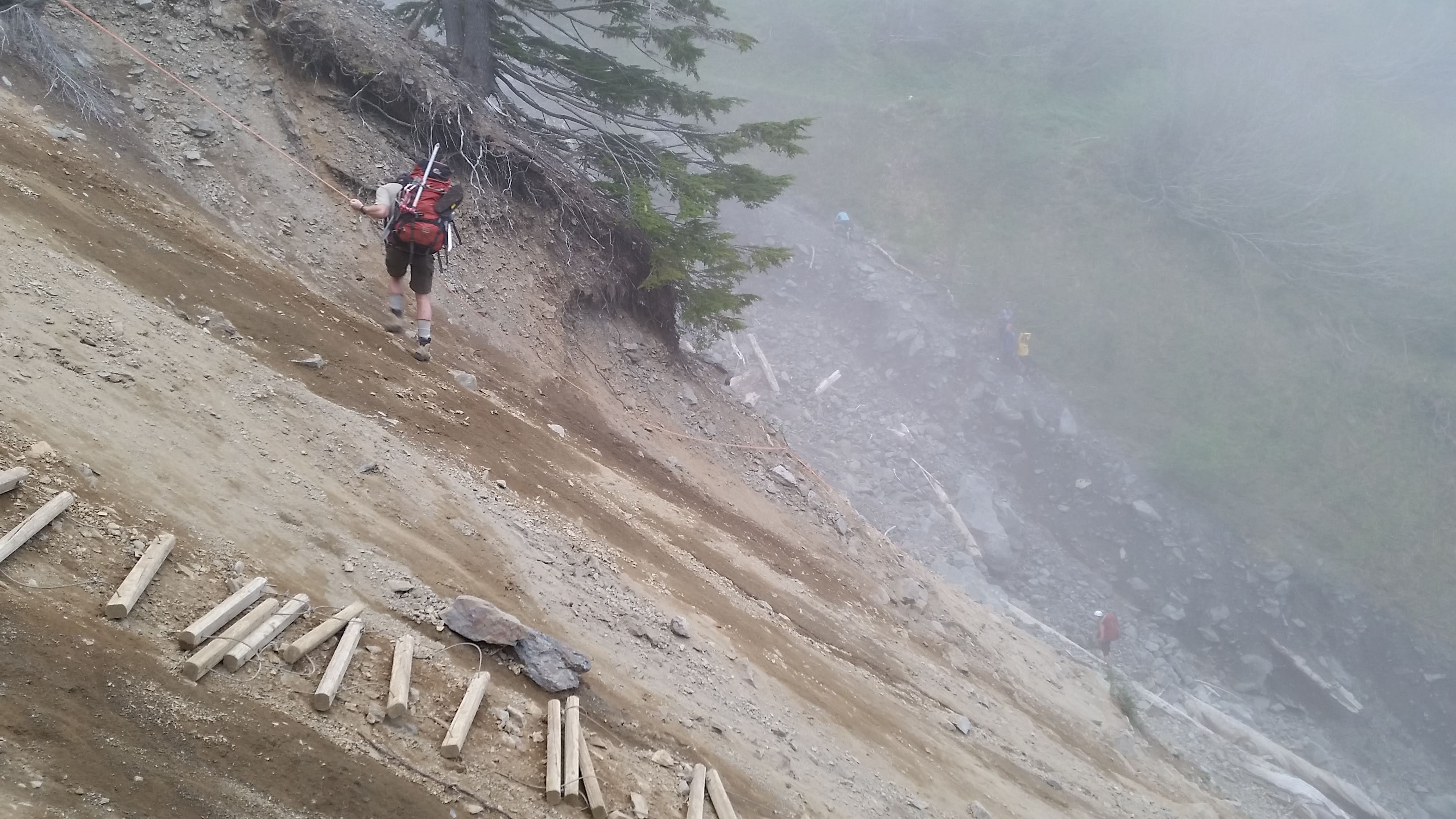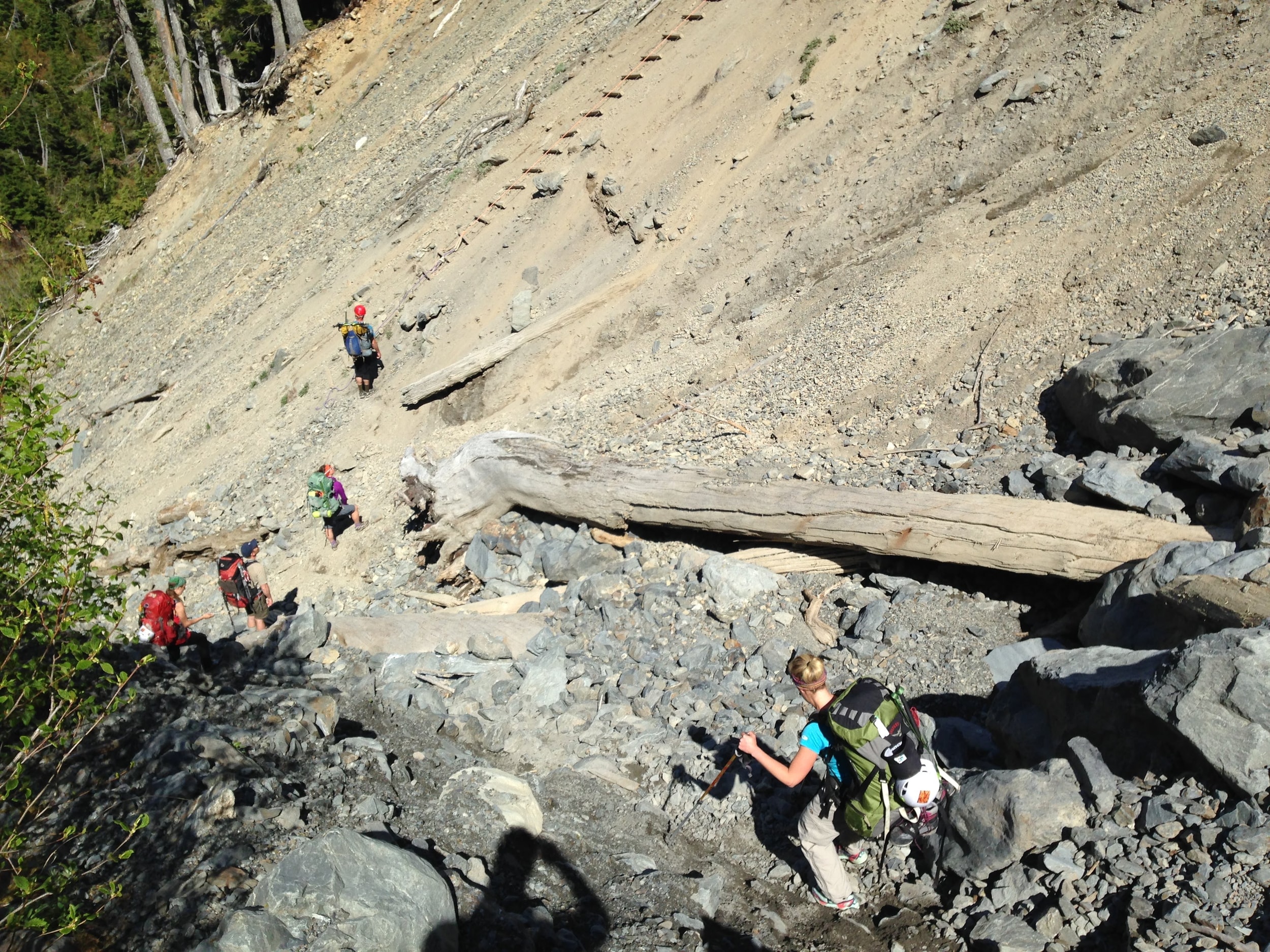 As we got past the 15 mile mark and elk lake, we arrived at the washouts - which had been there for several years at this point and are still in the same state as far as I can tell. There are some rope ladders to help you along, but it’s a slog to get through this area - hot and a lot of climbing to do… On the other hand, it definitely breaks up the monotony of a long flat hike.