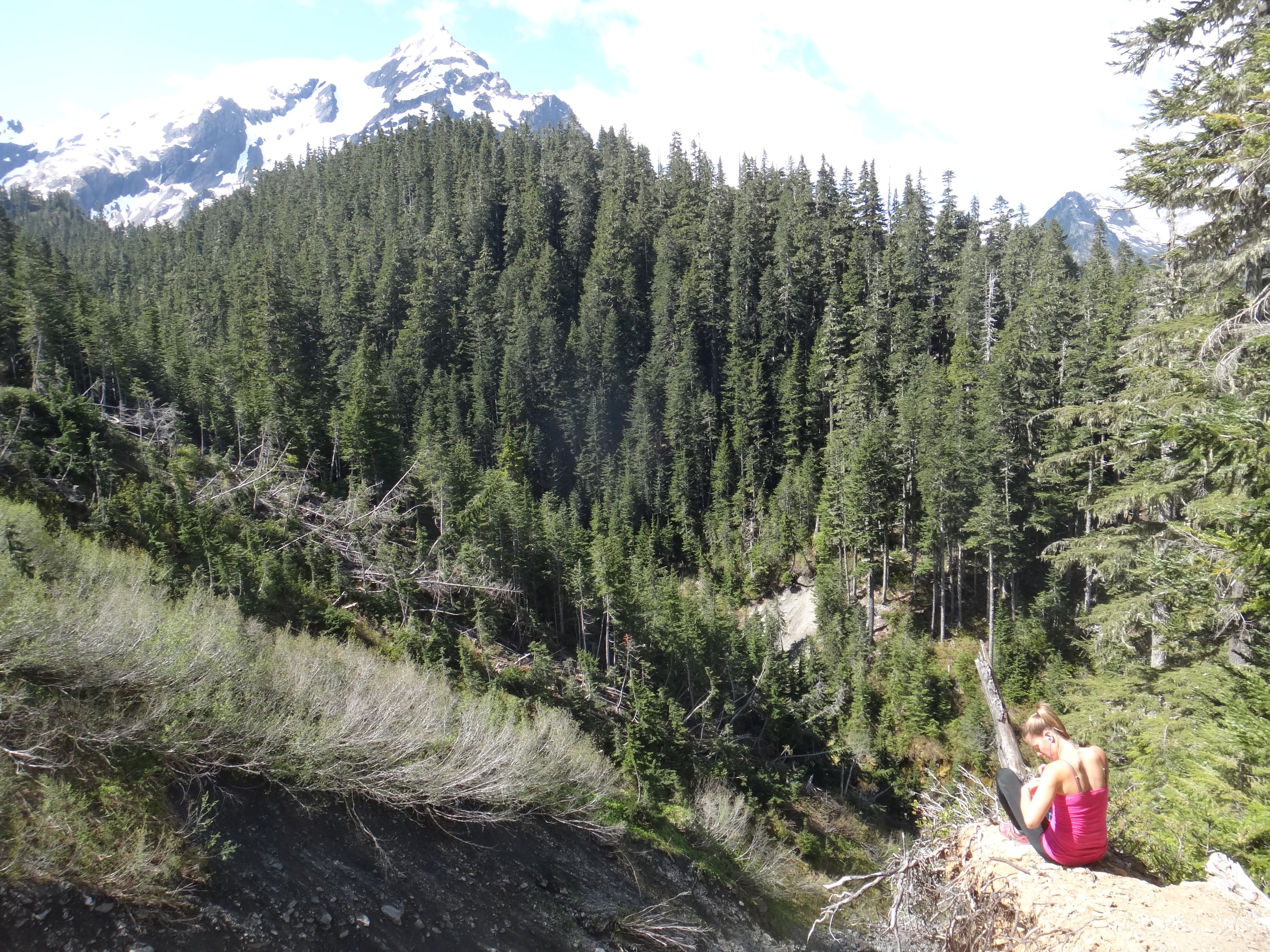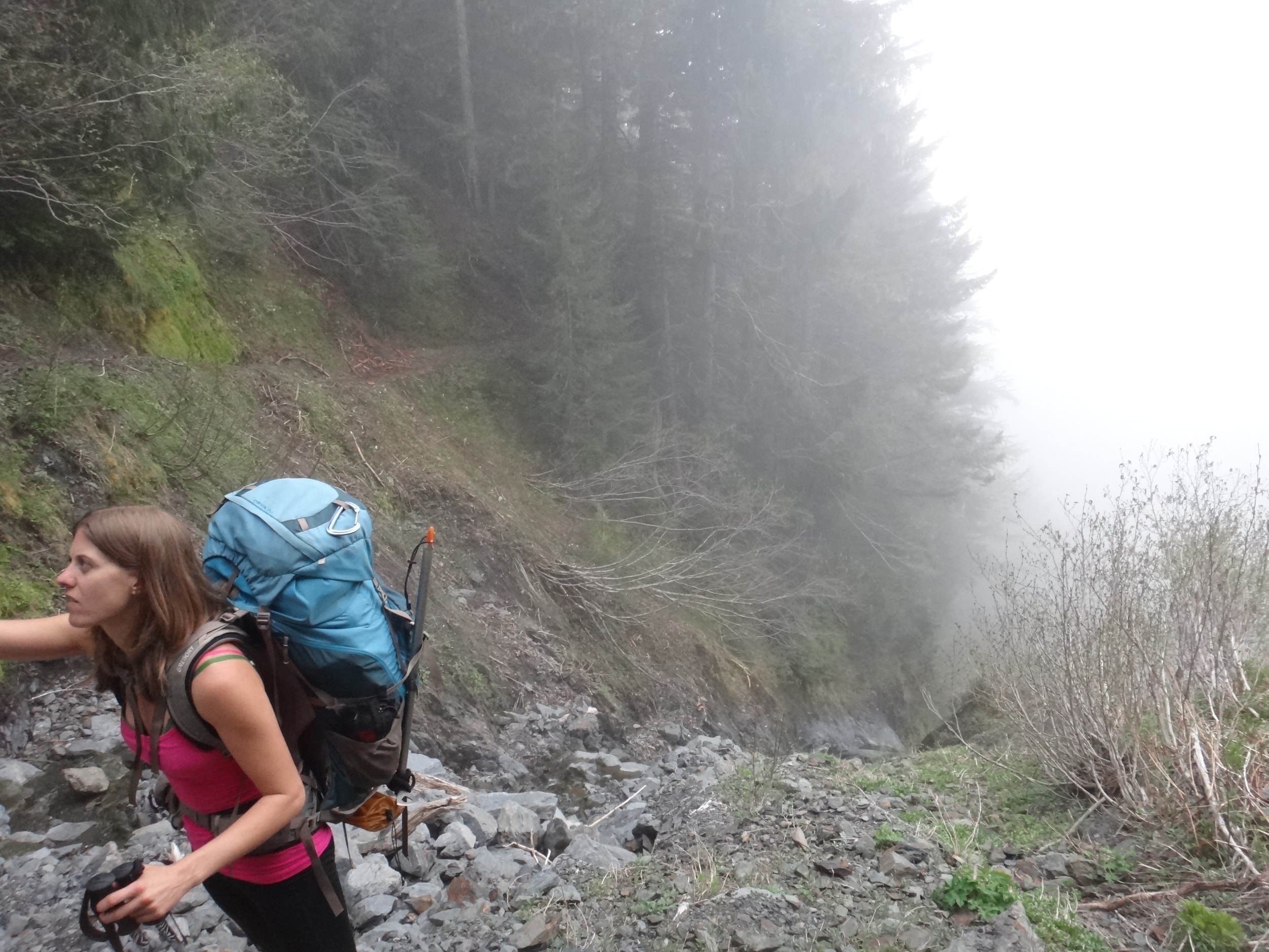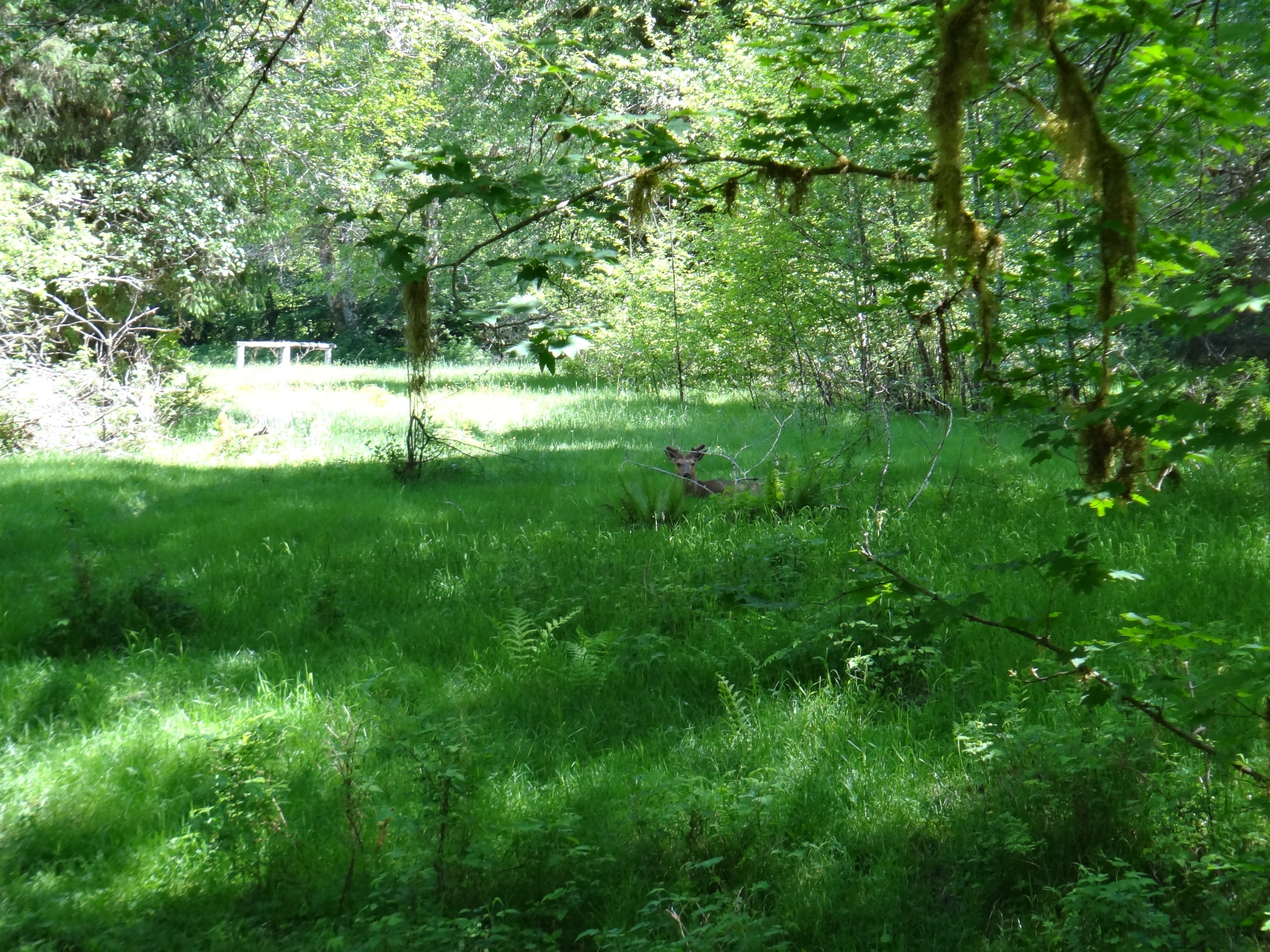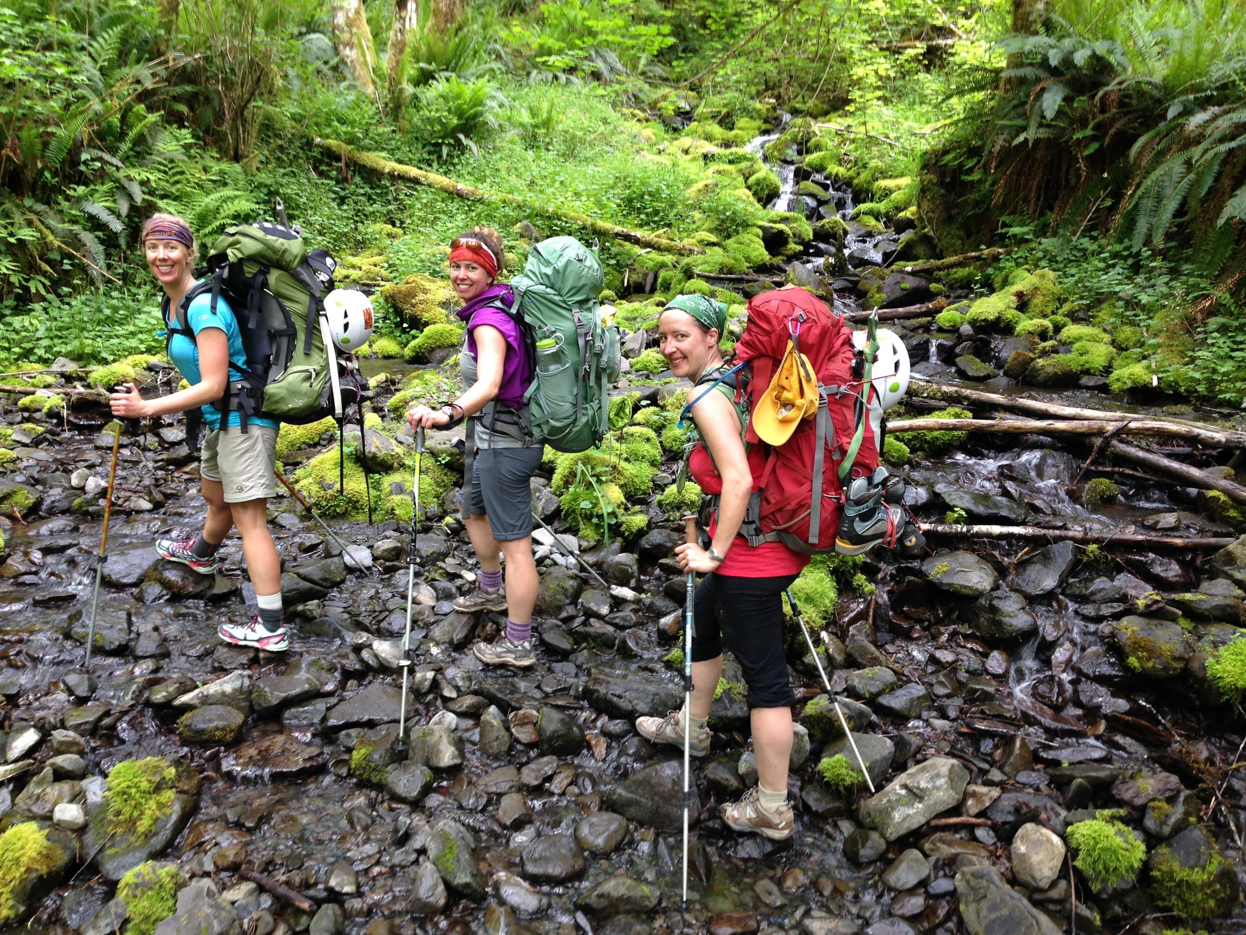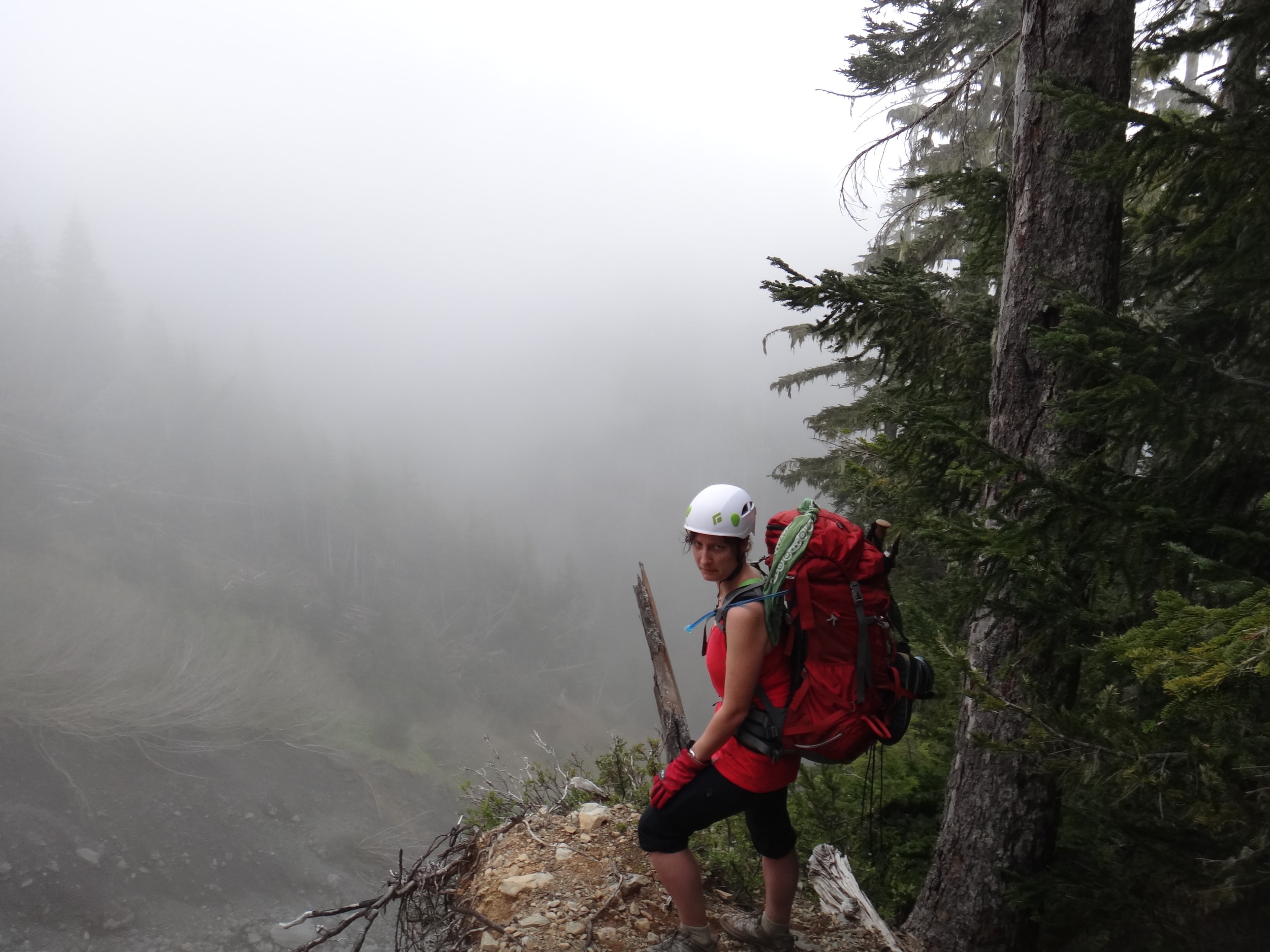 Then we started the very long approach - 18 miles from the parking lot to the campsite just past glacier meadows. We had a good time with it, but this was a long trip… The first 10 miles was in solid rainforest surrounded by some dense growth. I love this type of hiking but not all of us did. We saw some wildlife along the way - a small family of deer around mile 5 - and there were some interesting bridges/waterfalls along the way that we all really enjoyed.
