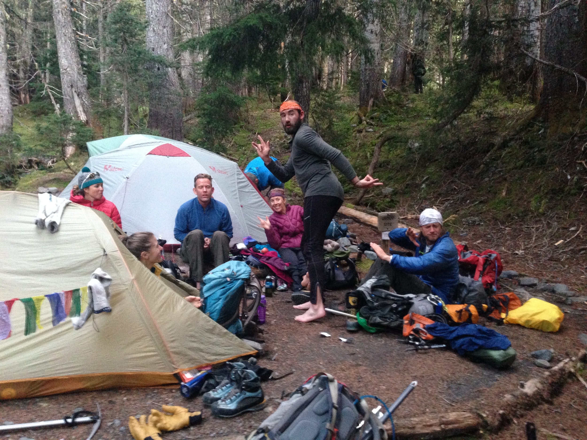 The trip out was a bit much to do in one day, so we spent another night here before heading out the following morning. Jay/Stacia (who were not a couple) shared a tent, but Jay forgot to mention that the tent he brought was a single person tent. I don’t know how they did it, they basically slept on top of each other - it can’t have been very restful, despite how tired we all were. Thankfully, it did not rain or snow on us and in the morning - Jay was sleeping beside the tent… :)