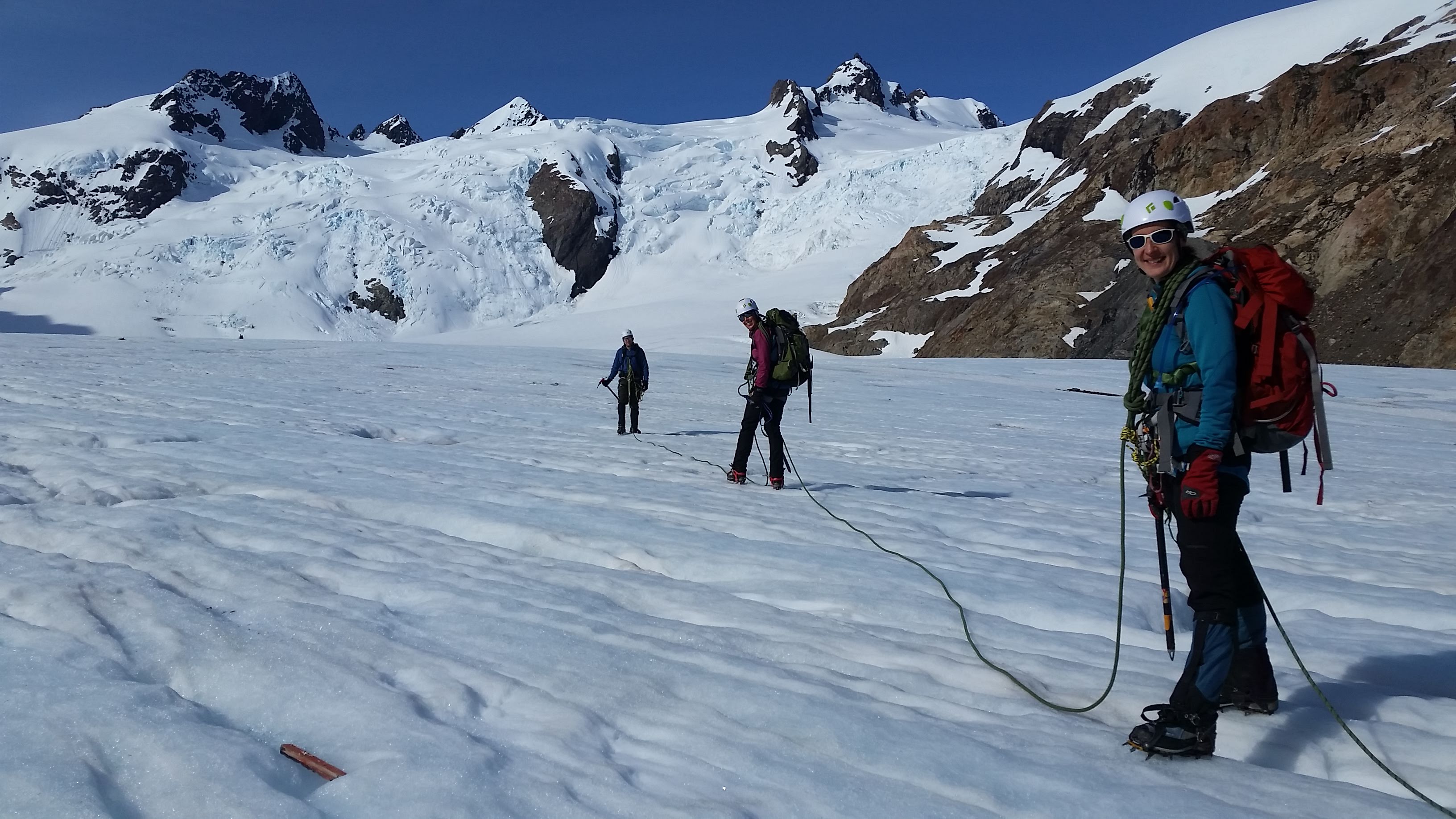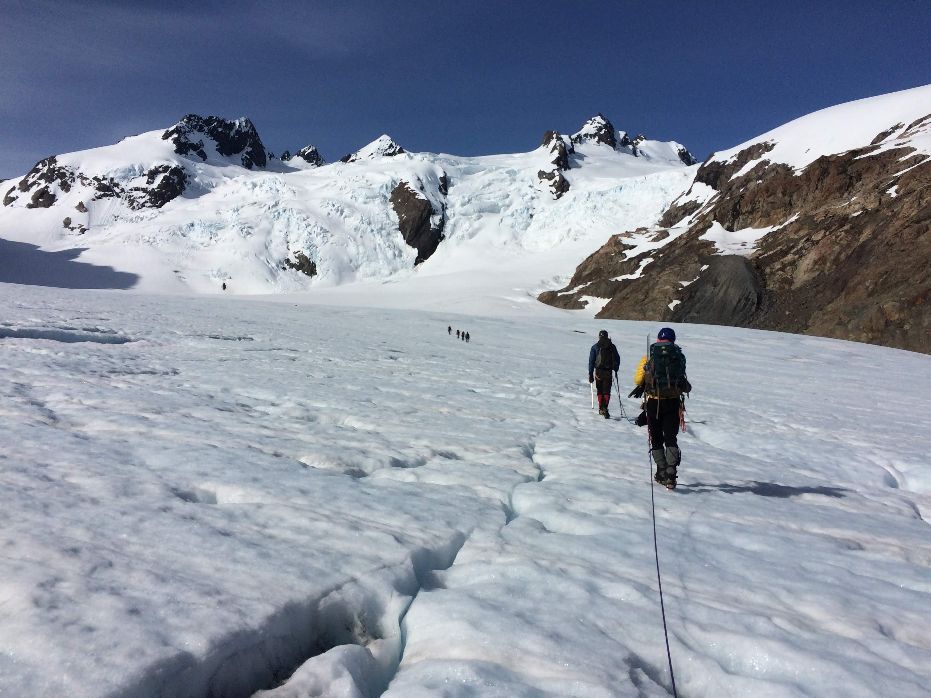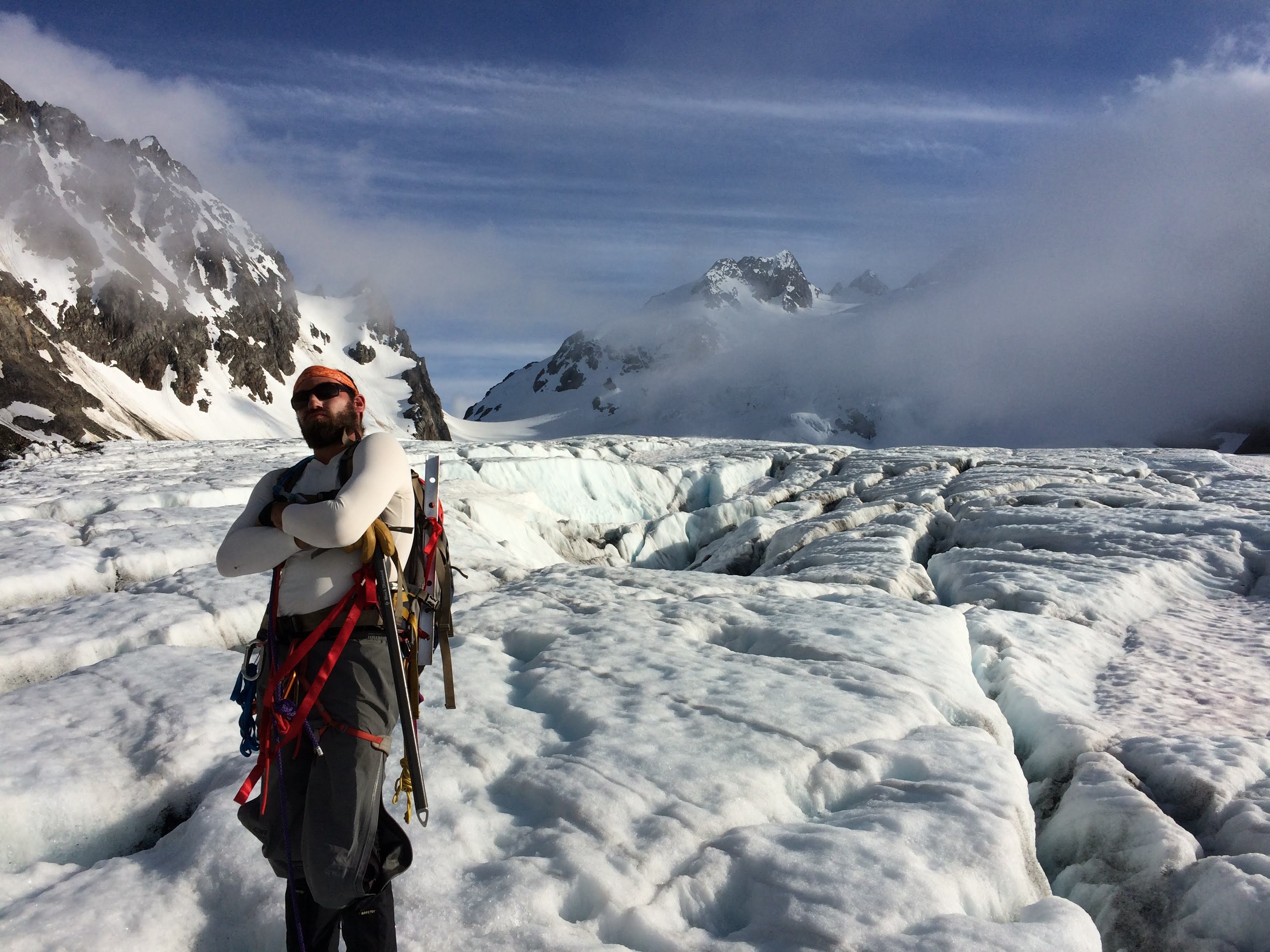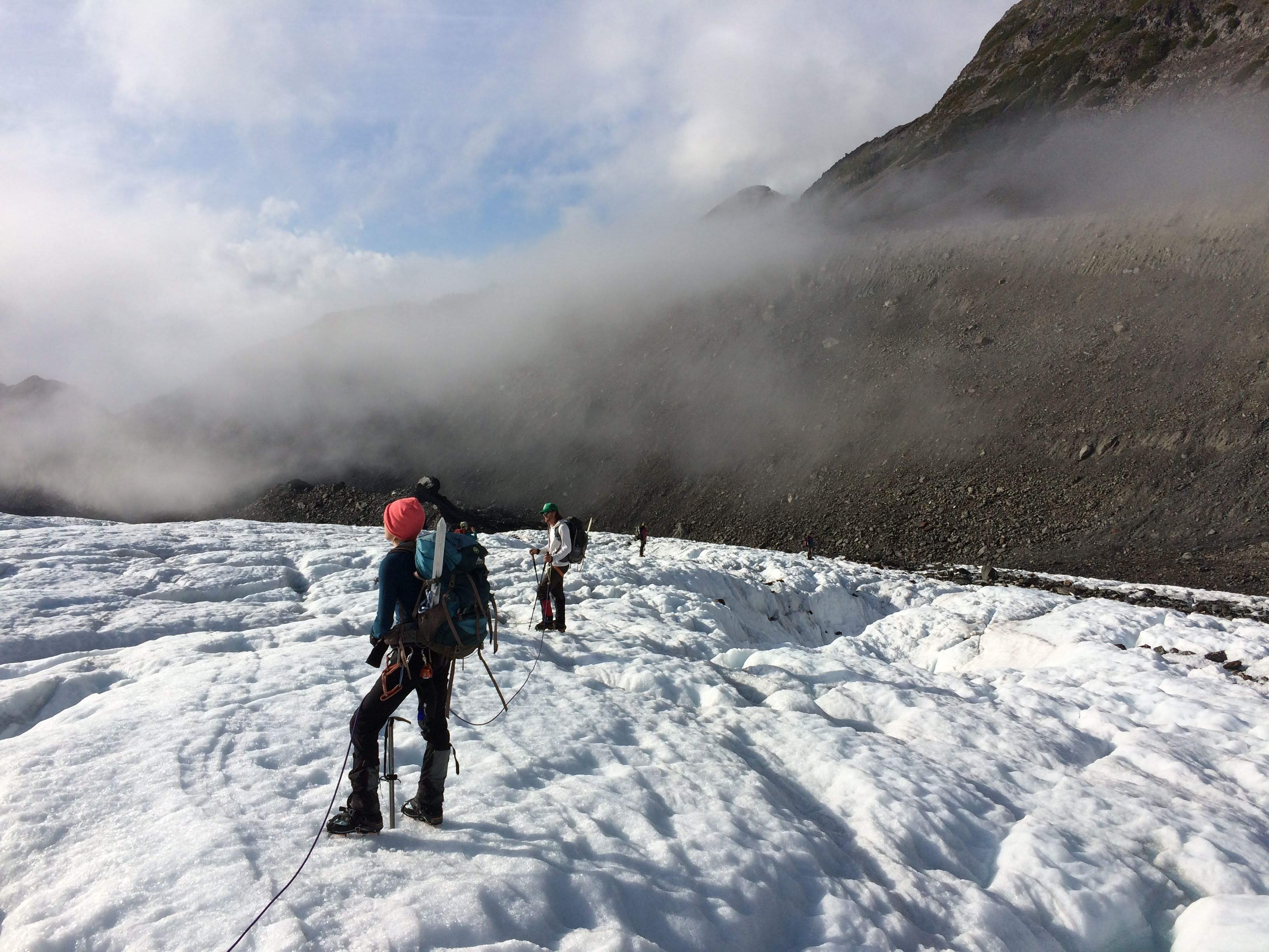 With most glaciers (and this was no exception), the first few steps onto the glacier are the hardest - the glacier is in it’s worst state of melt with lots of small crevasses and the like. Usually it’s pretty short lived, but it was probably a quarter mile of this type of challenging terrain before we were on sold glacier again.
