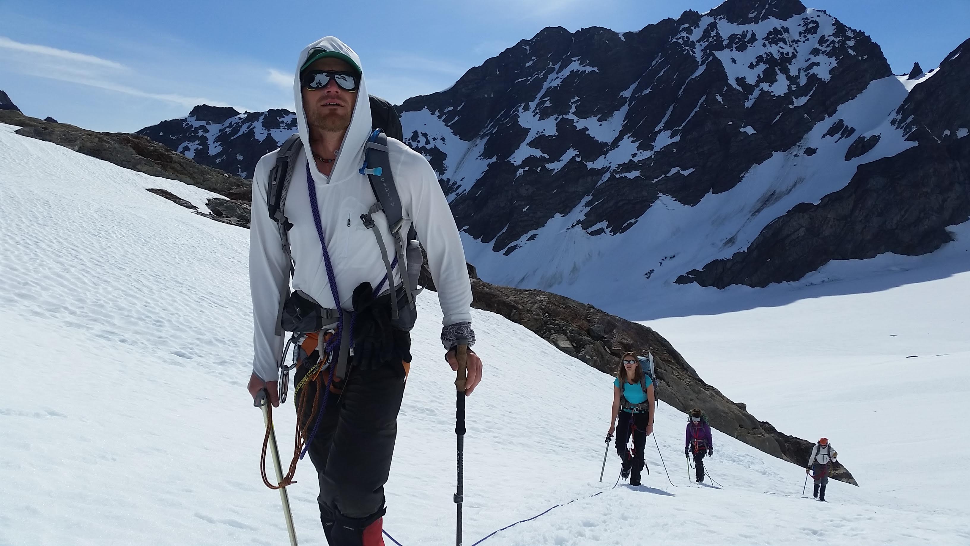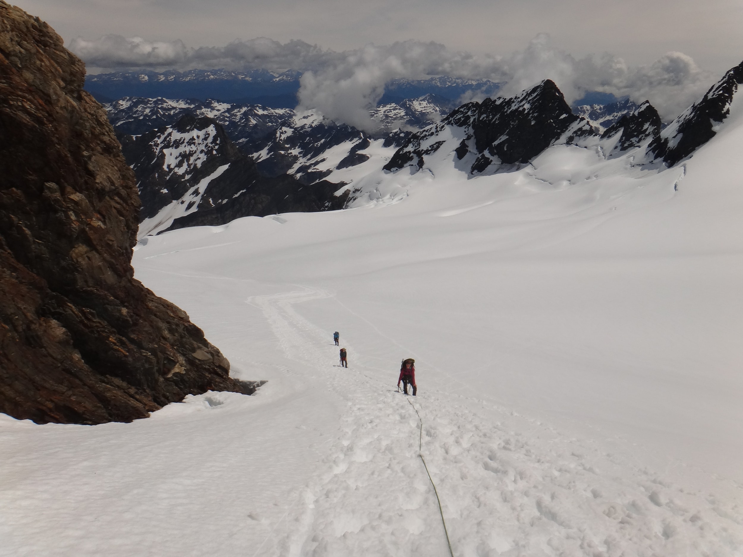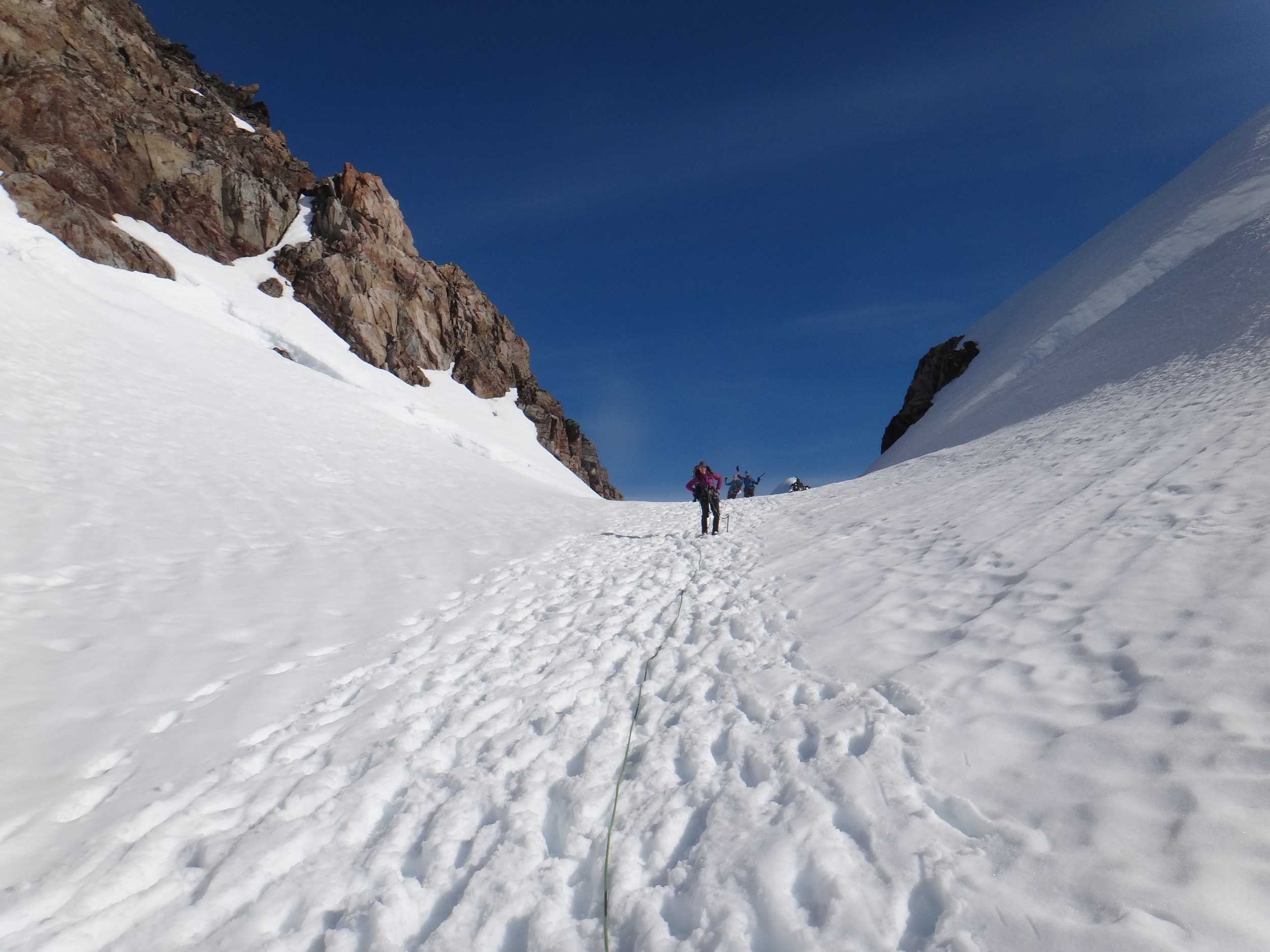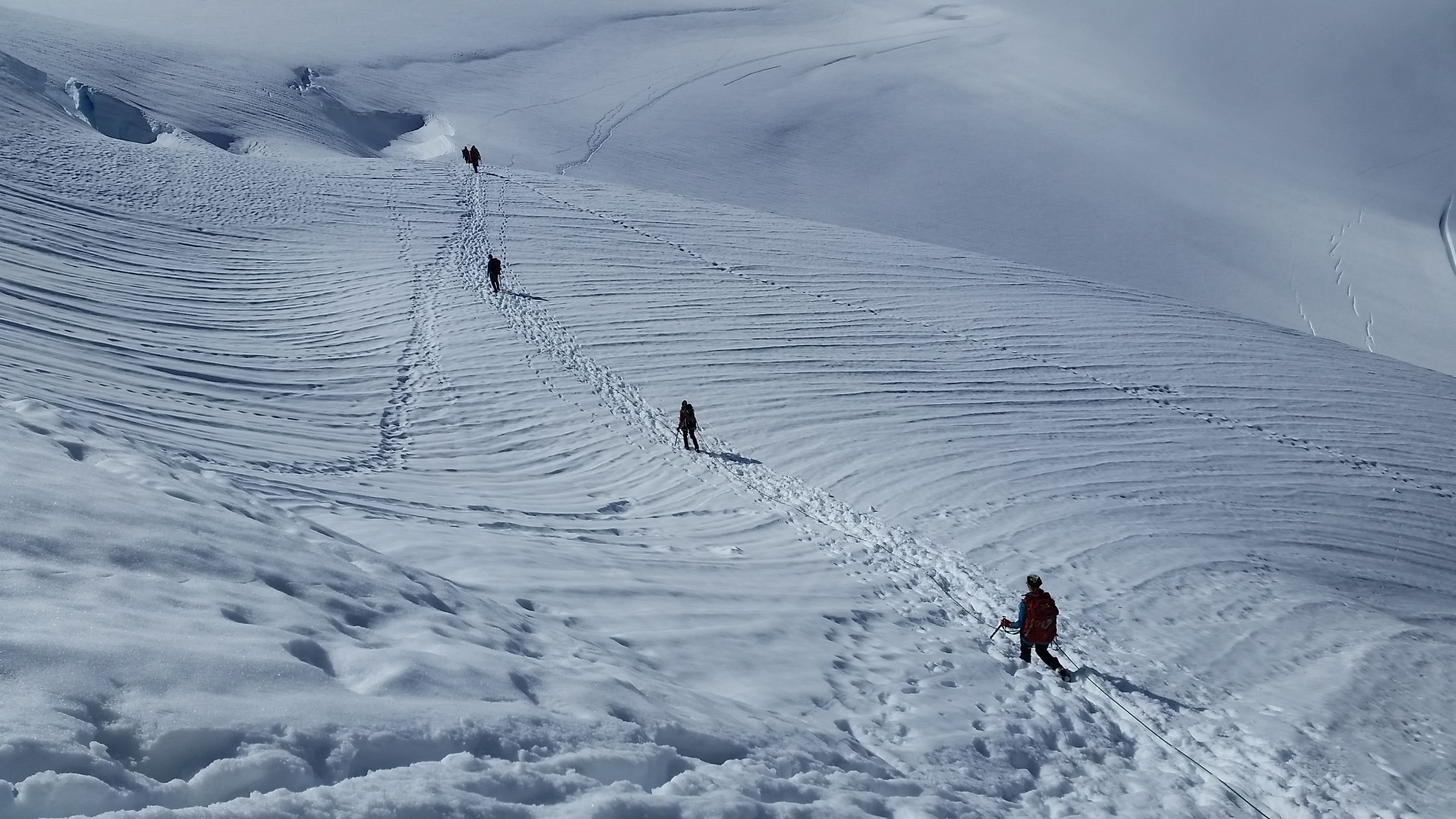 And just like that, the flat part was over and we had arrived at the meat of the climb. We had about 5000 feet to climb today and we spent the next hours climbing it. The Blue Glacier has a kind of right hand screw to it, so we just sort of wrapped around the mountain - always looking to the right to see the summit. As with most climbs, climbing up steep snow get the psych going and this is when it really gets to be fun!