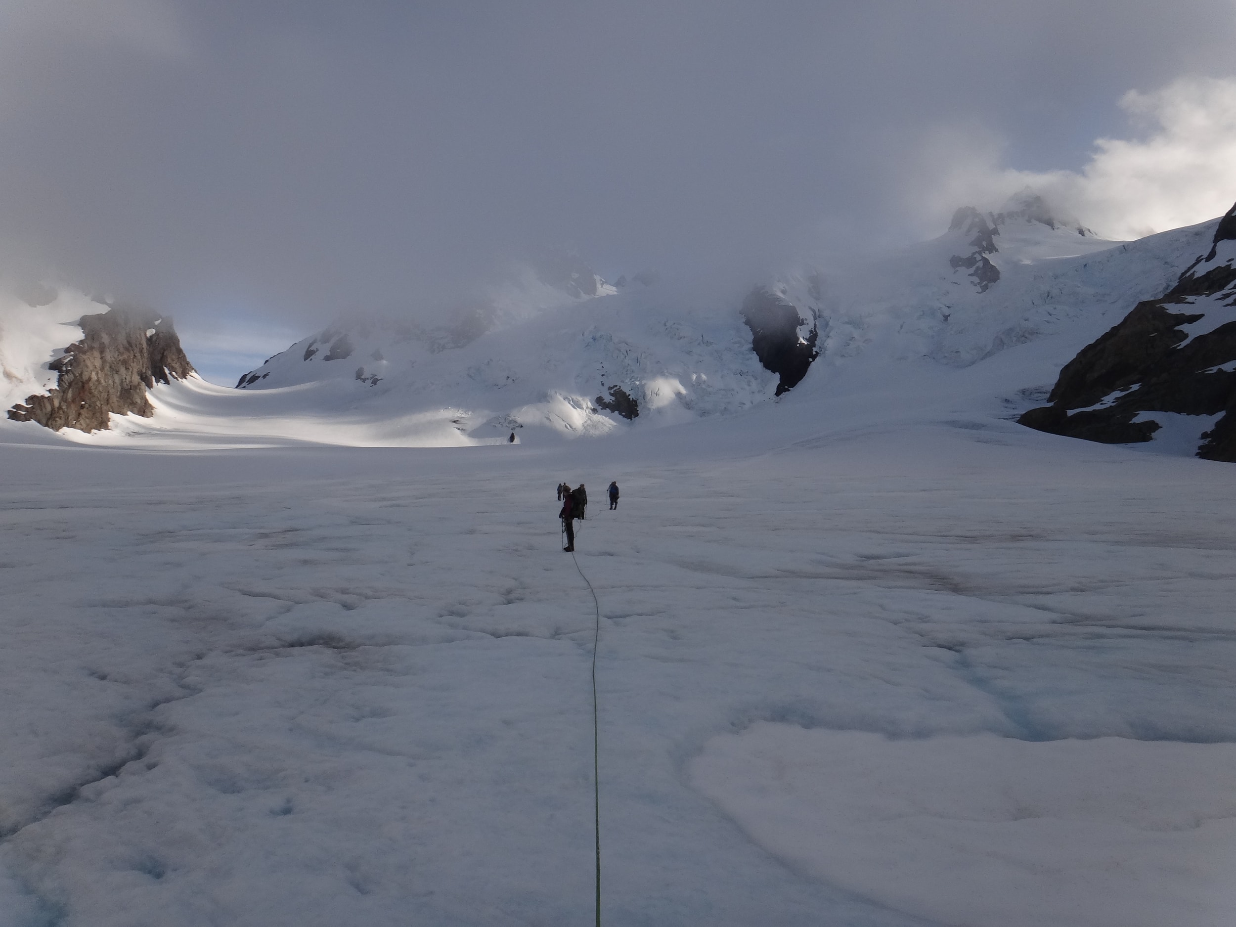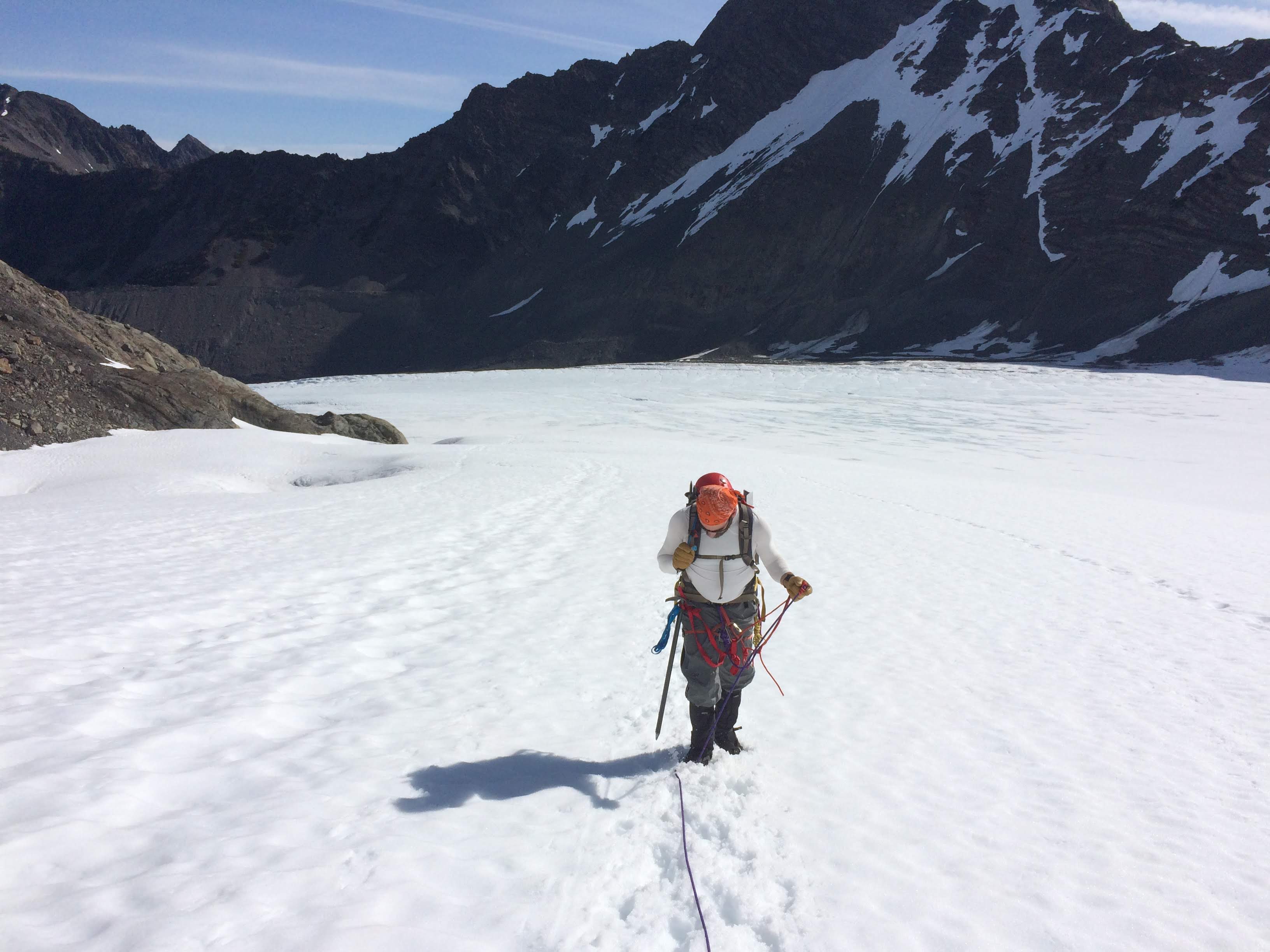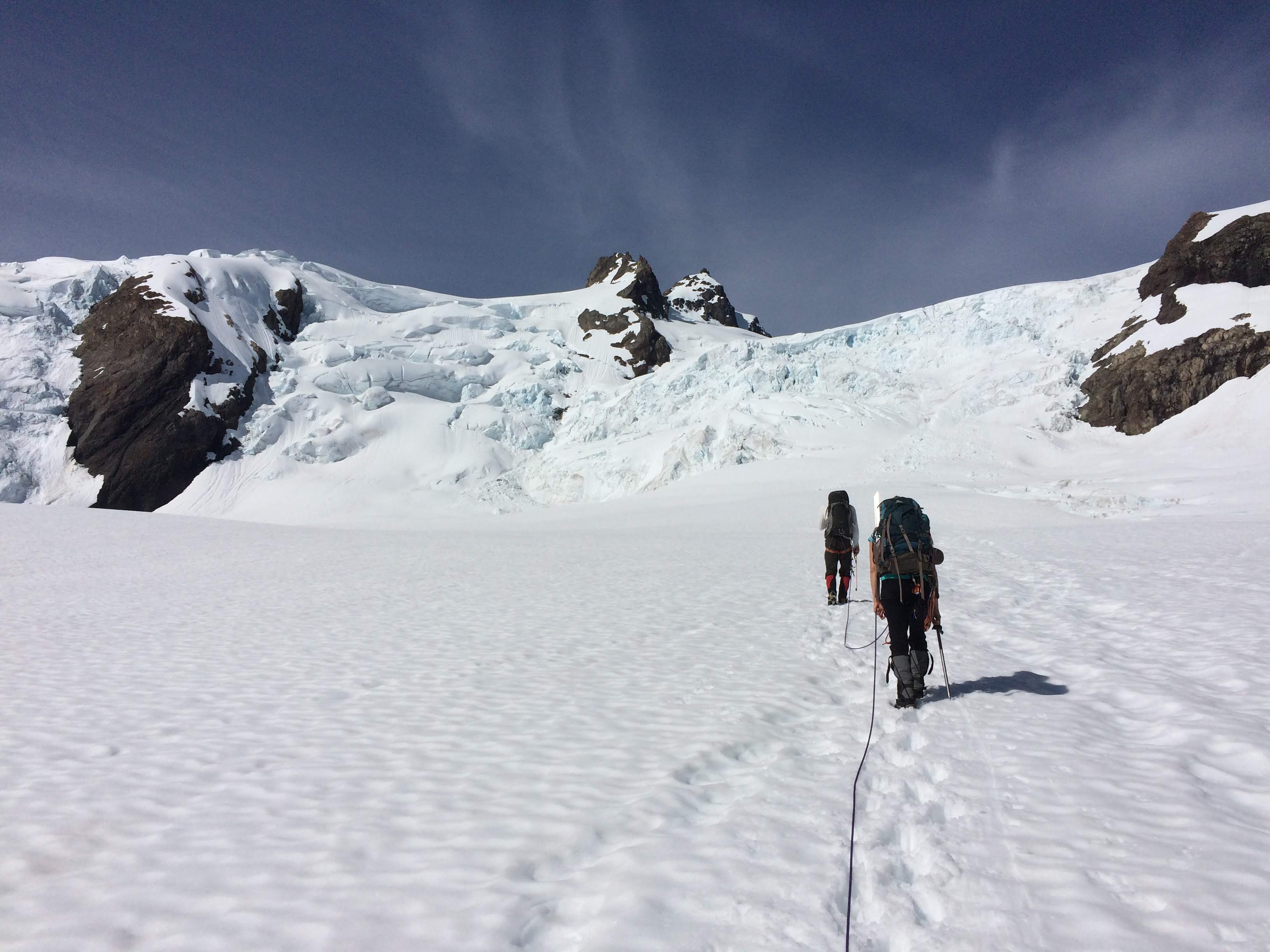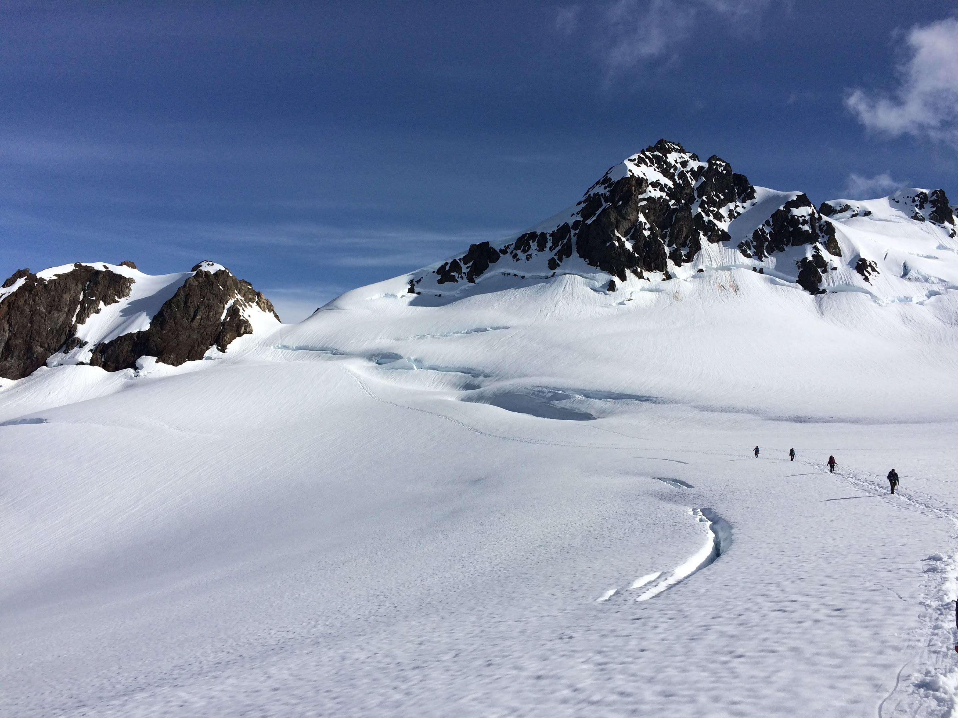 The final approach was a steep down followed immediately by a steep uphill to a flat spot just before the summit. The summit itself is a 300 or so foot high rock outcropping that requires some technical rock climbing to reach the actual summit - but more on that later. For now, this was the last big push on the glacier before something new