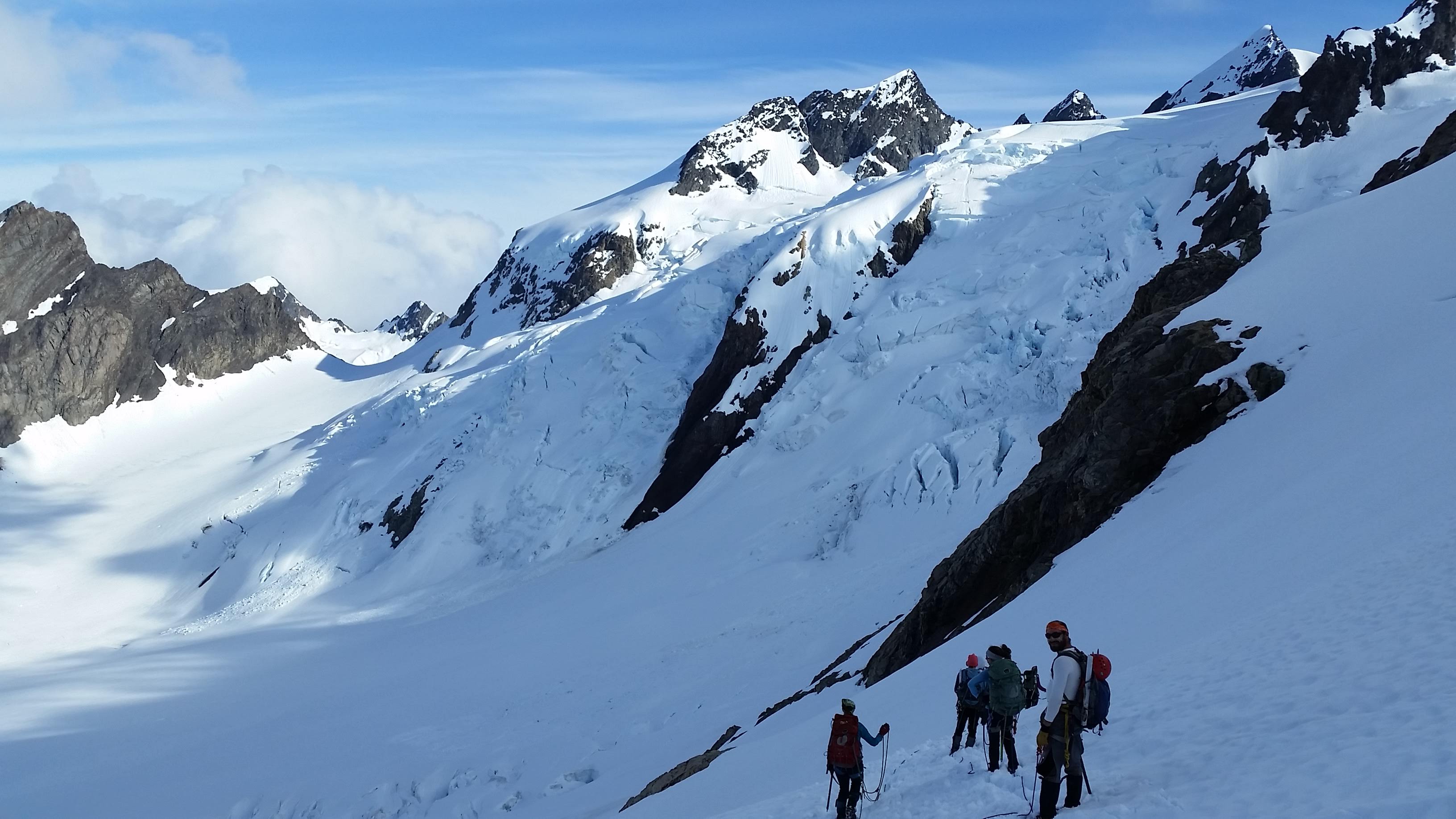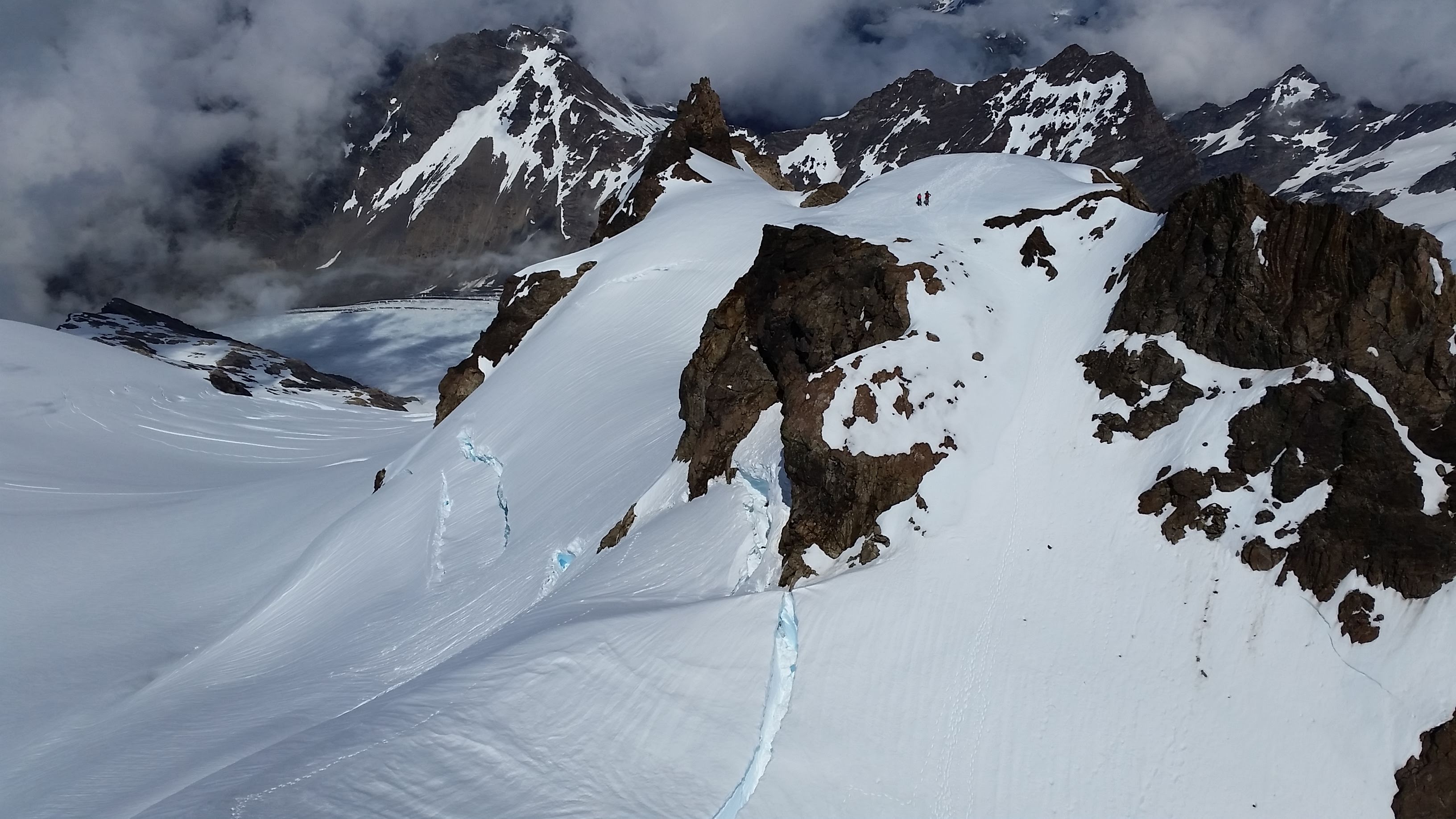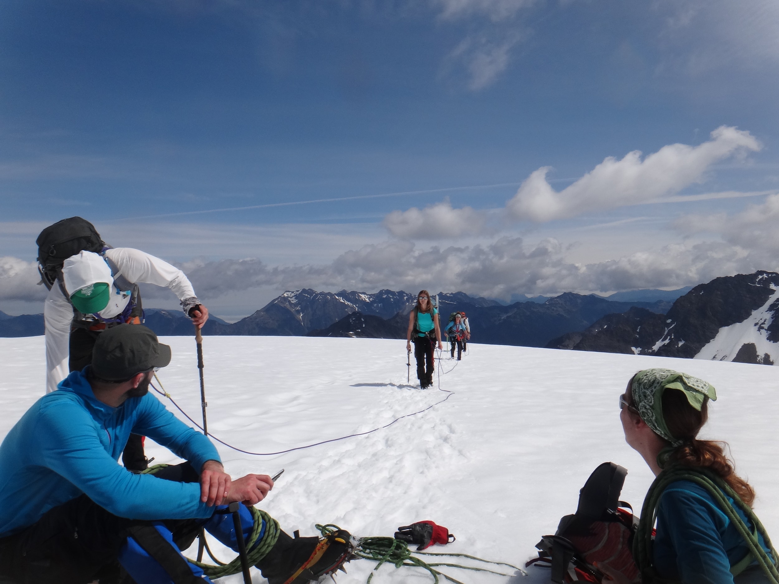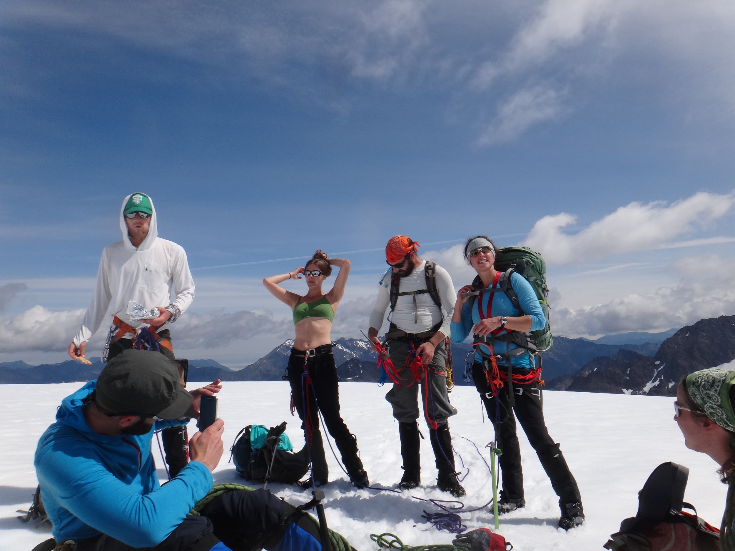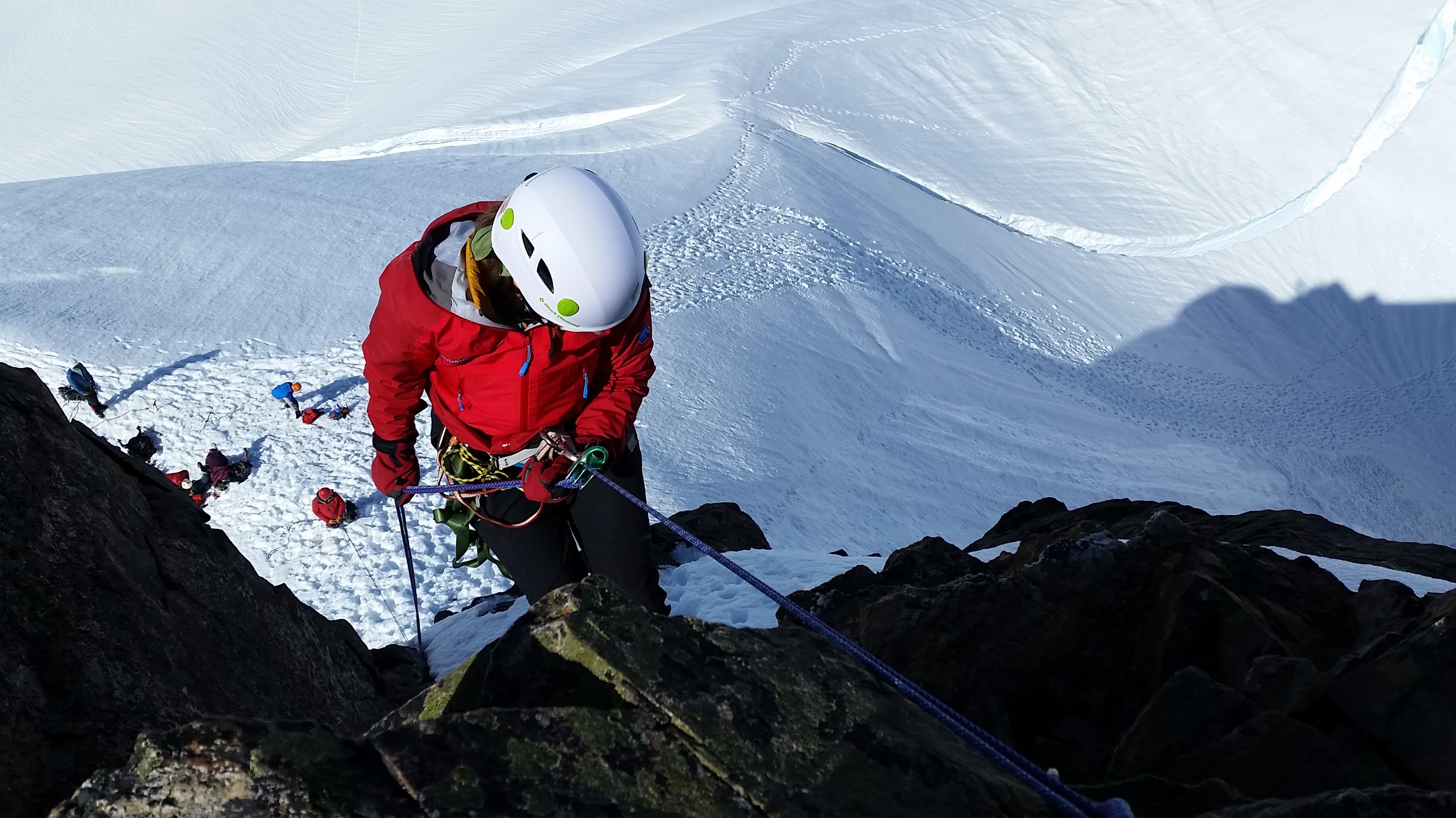 The final approach was a steep down followed immediately by a steep uphill to a flat spot just before the summit. The summit itself is a 300 or so foot high rock outcropping that requires some technical rock climbing to reach the actual summit - but more on that later. For now, this was the last big push on the glacier before something new