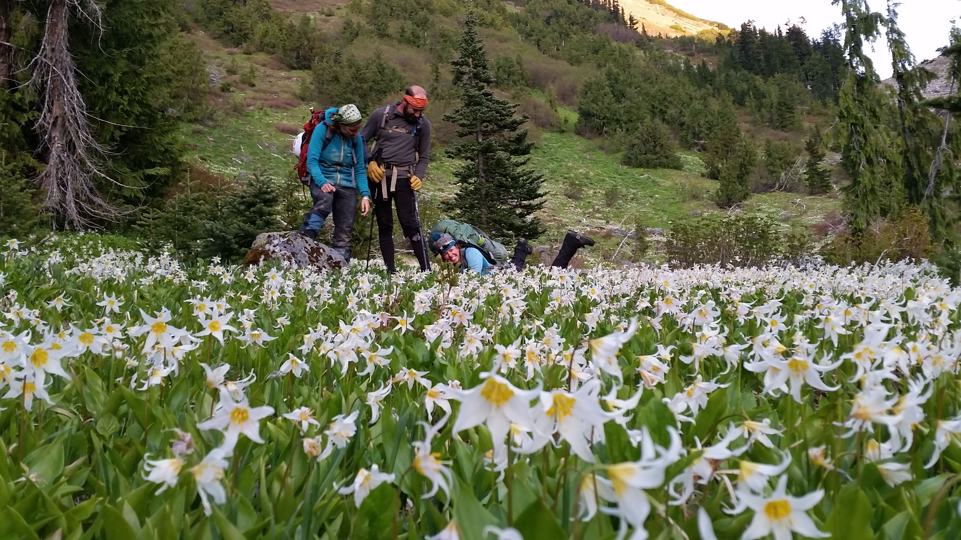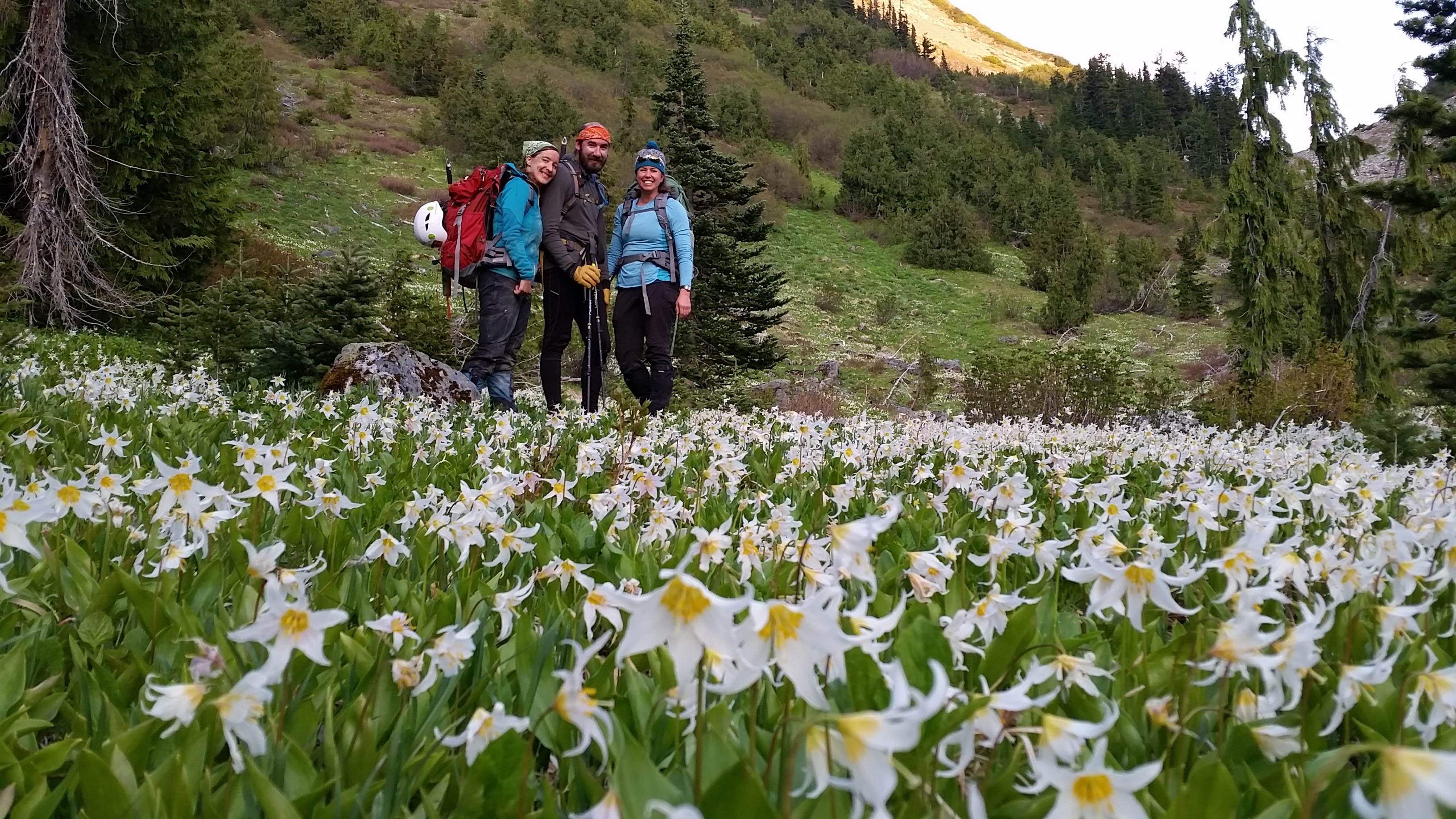 The flowers were in full bloom in May. I don’t remember what happened in this pictures - but Pam seems to have fallen and her bf/friend are just staring on in disbelief? There were big fields of flowers the whole way up the mountain - beautiful!