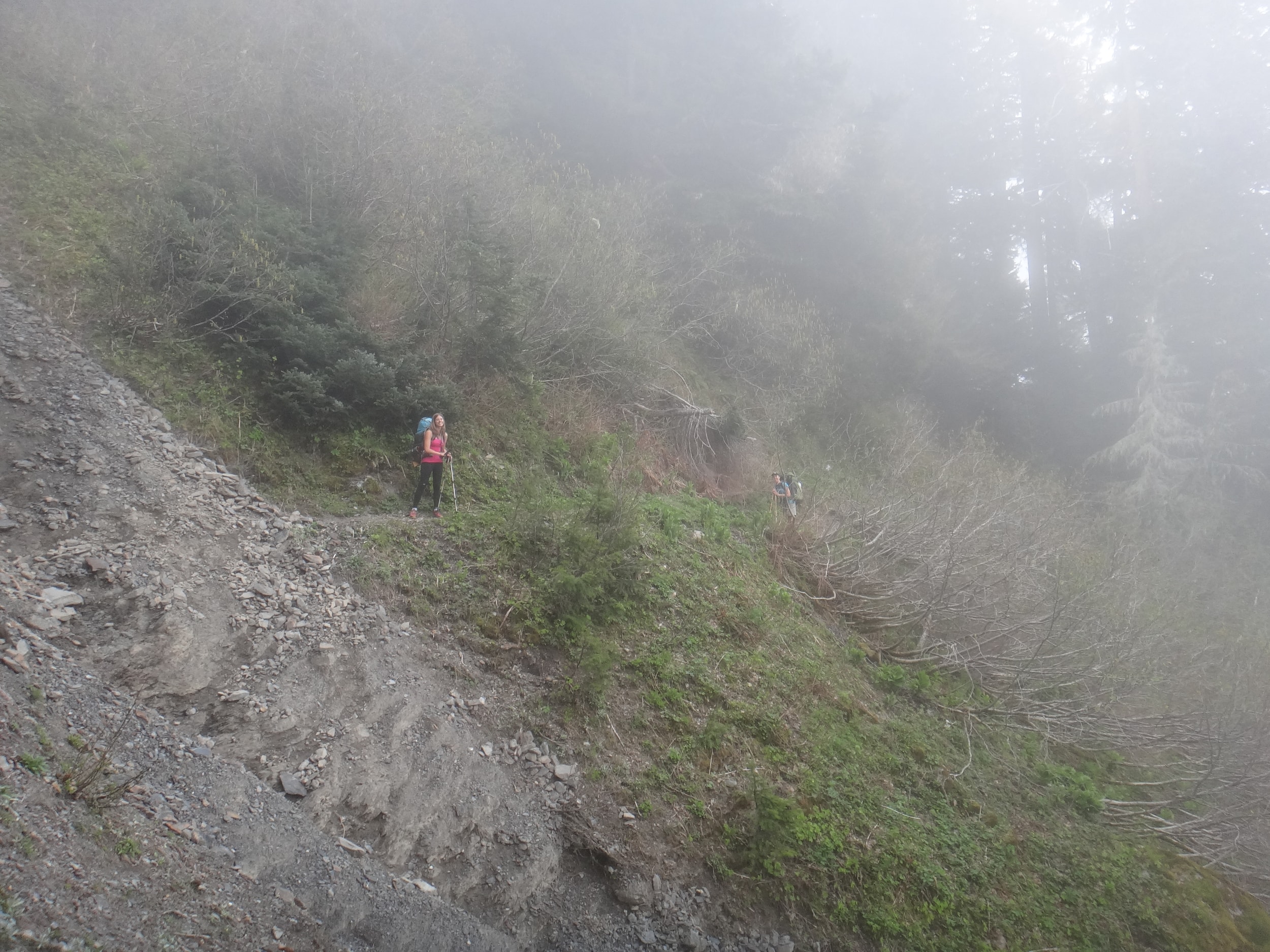 Around mile 7, we discovered the olympus shelter in a bad state. These shelters are really cool - built in the early 1900s, there is a volunteer group that refurbed them all in the 80s and 90s. This one took a hit from a big tree that fell - it’s still standing, but just barely. Probably going to need a bigger refurb this time around…