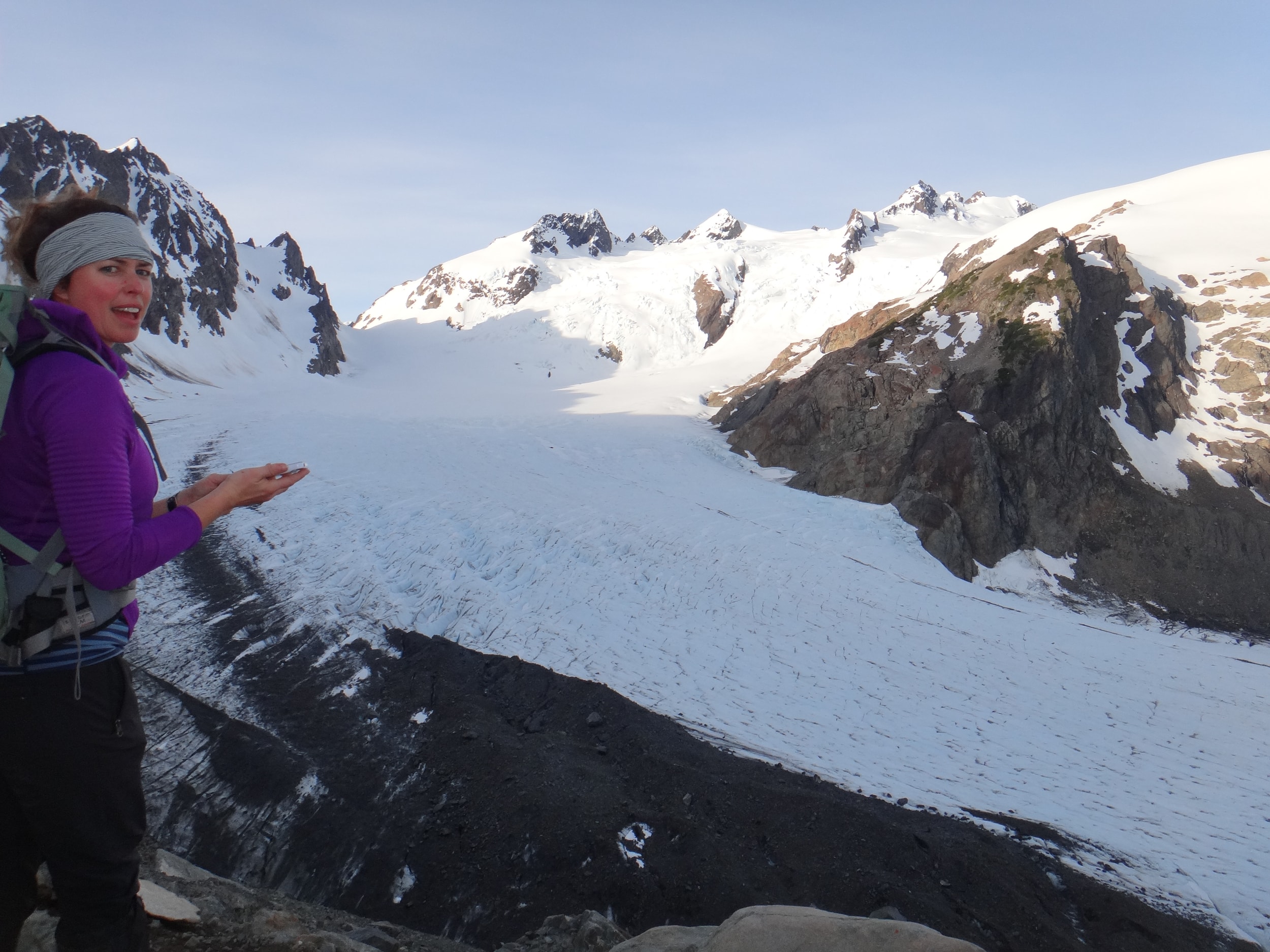 The next morning, we got our glacier kits together and made the short hike over to the terminal moraine (half mile) and the hike along the ridge to the lateral moraine - about another mile hiking alongside the glacier. This was a very different kind of hiking from the day before - rocks, wildflowers, and hints of snow…