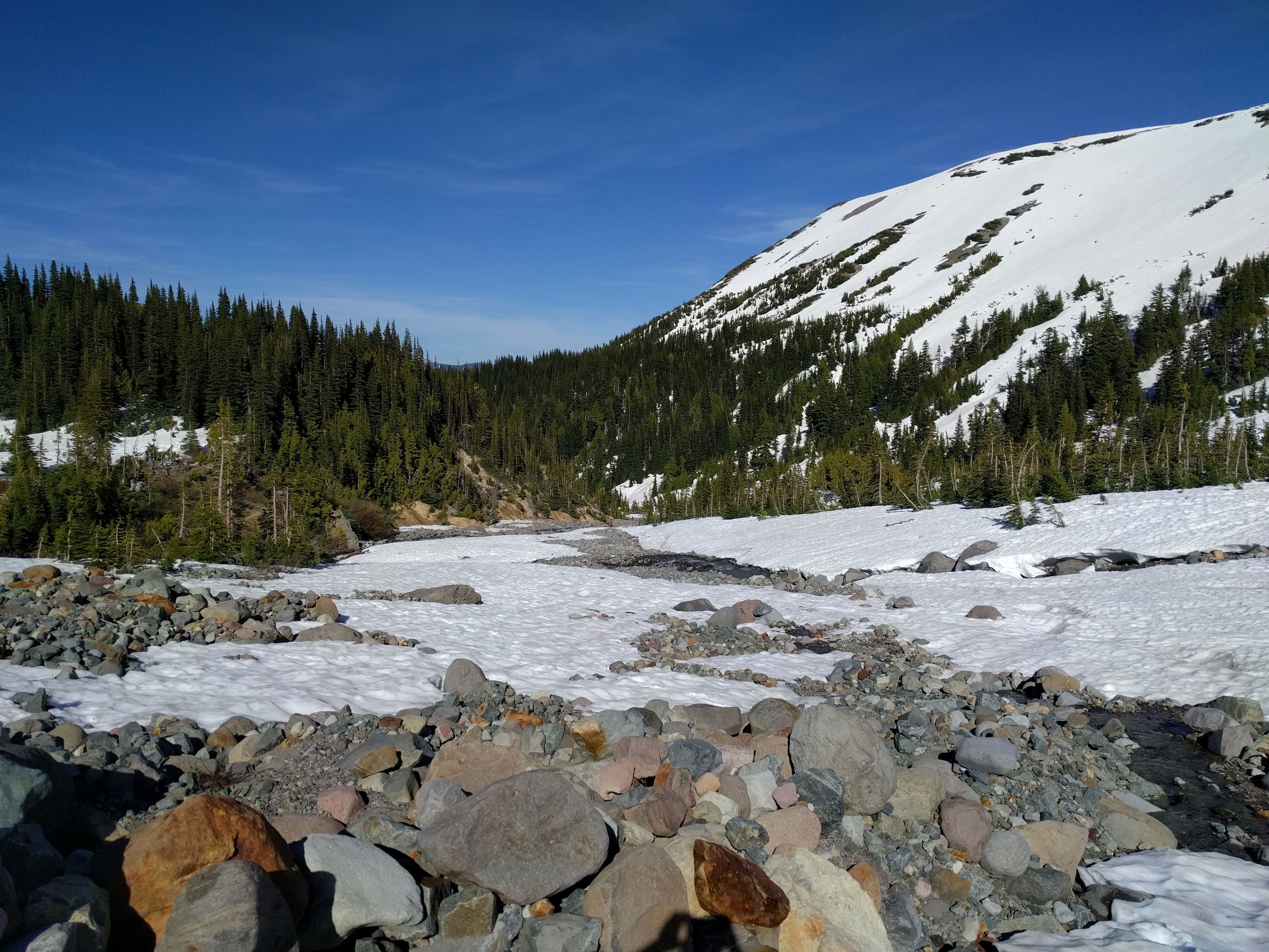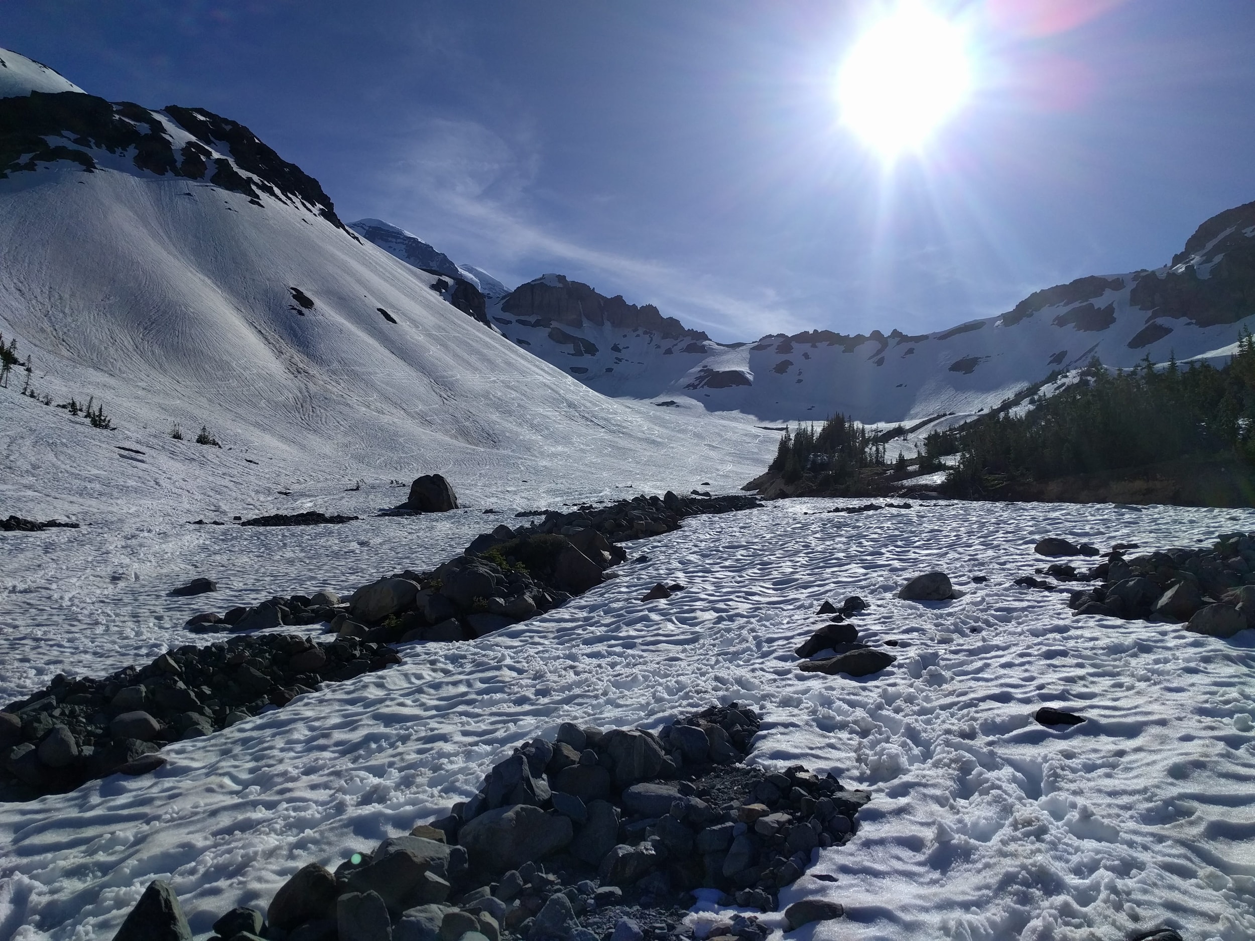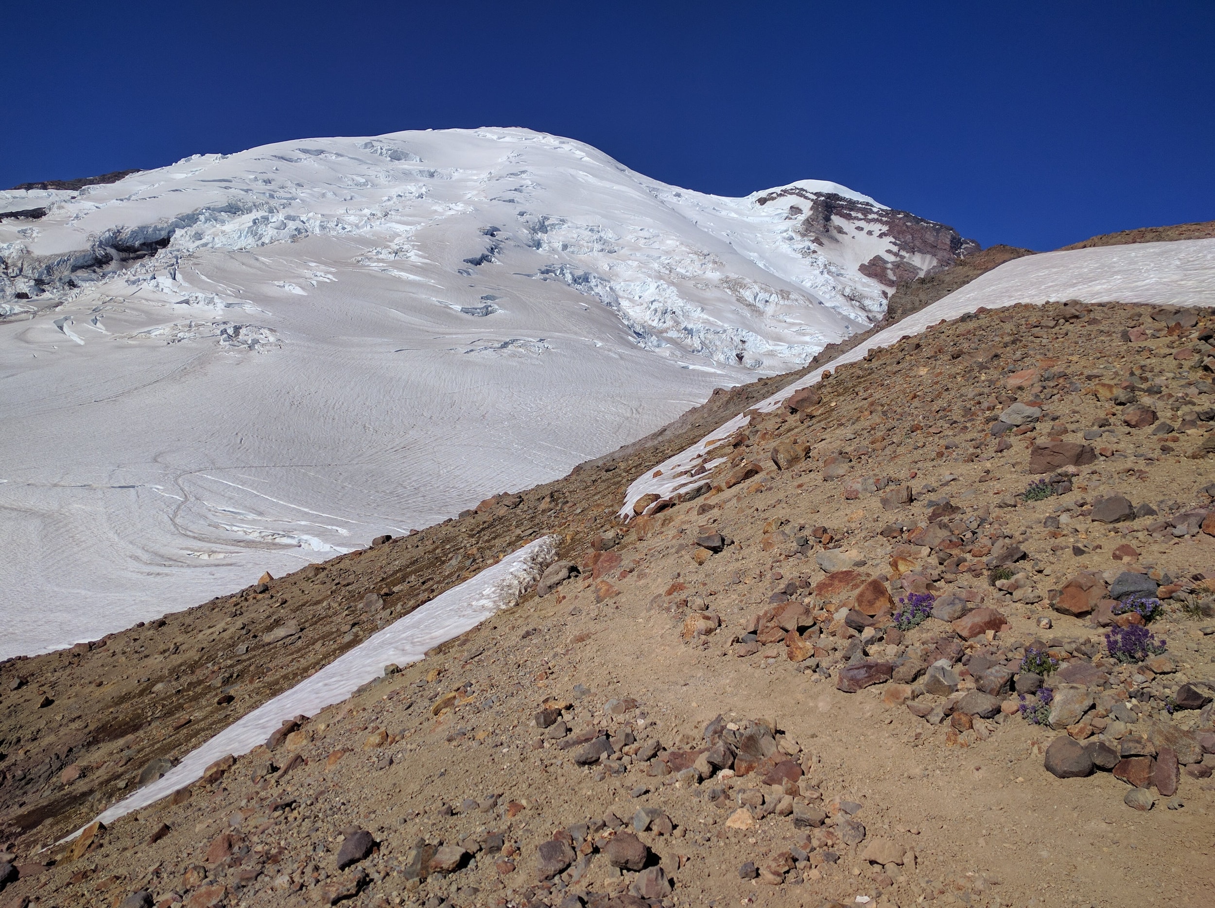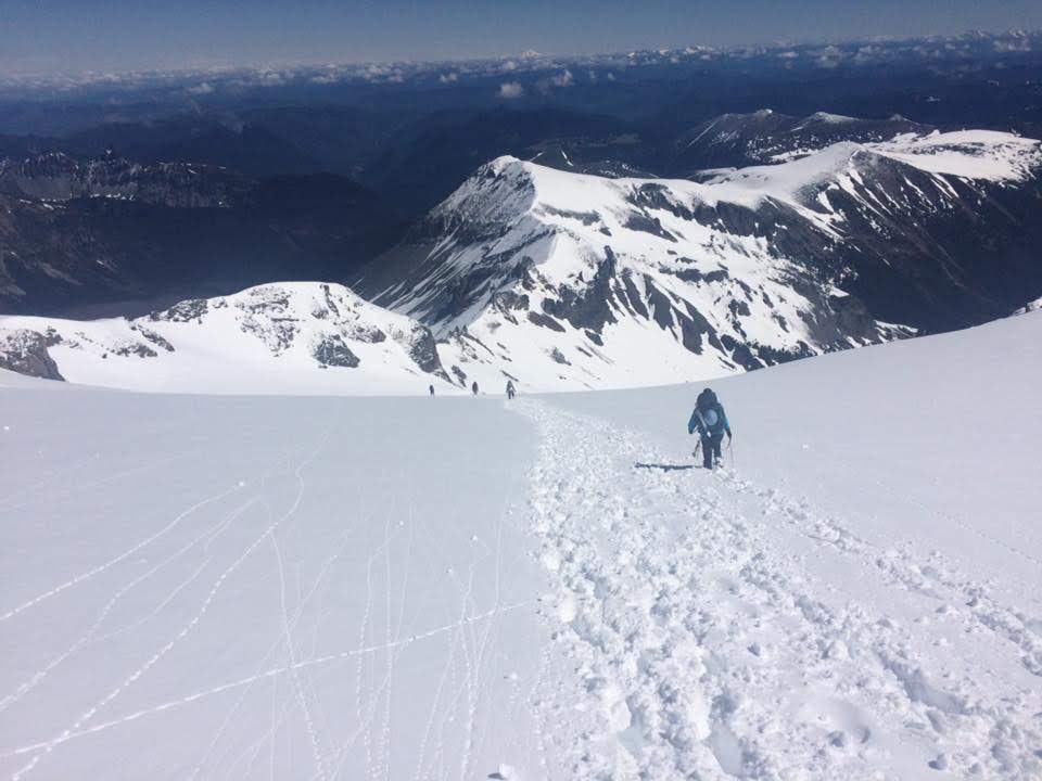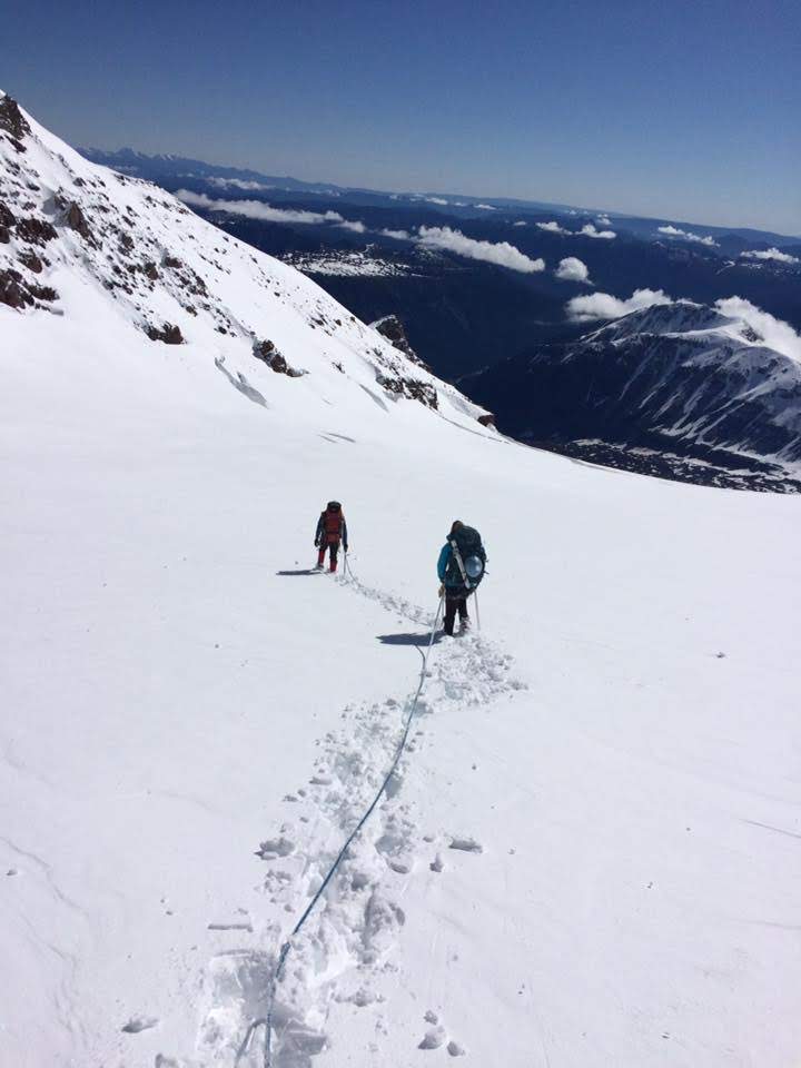 We took a look up at the summit approach the next morning and it was pretty obvious this wasn’t happening. We considered for a moment hanging around til the next day to see if the sun would harden things, but we had flurries comming in in the afternoon and decided to head on down. We watched one team make an attempt, but they barely made it to the start of the Emmons climb. The ranger told us it would probably be 2-3 days for things to settle before it was worth making an attempt - and then did a nod towards the team that made the morning attempt…