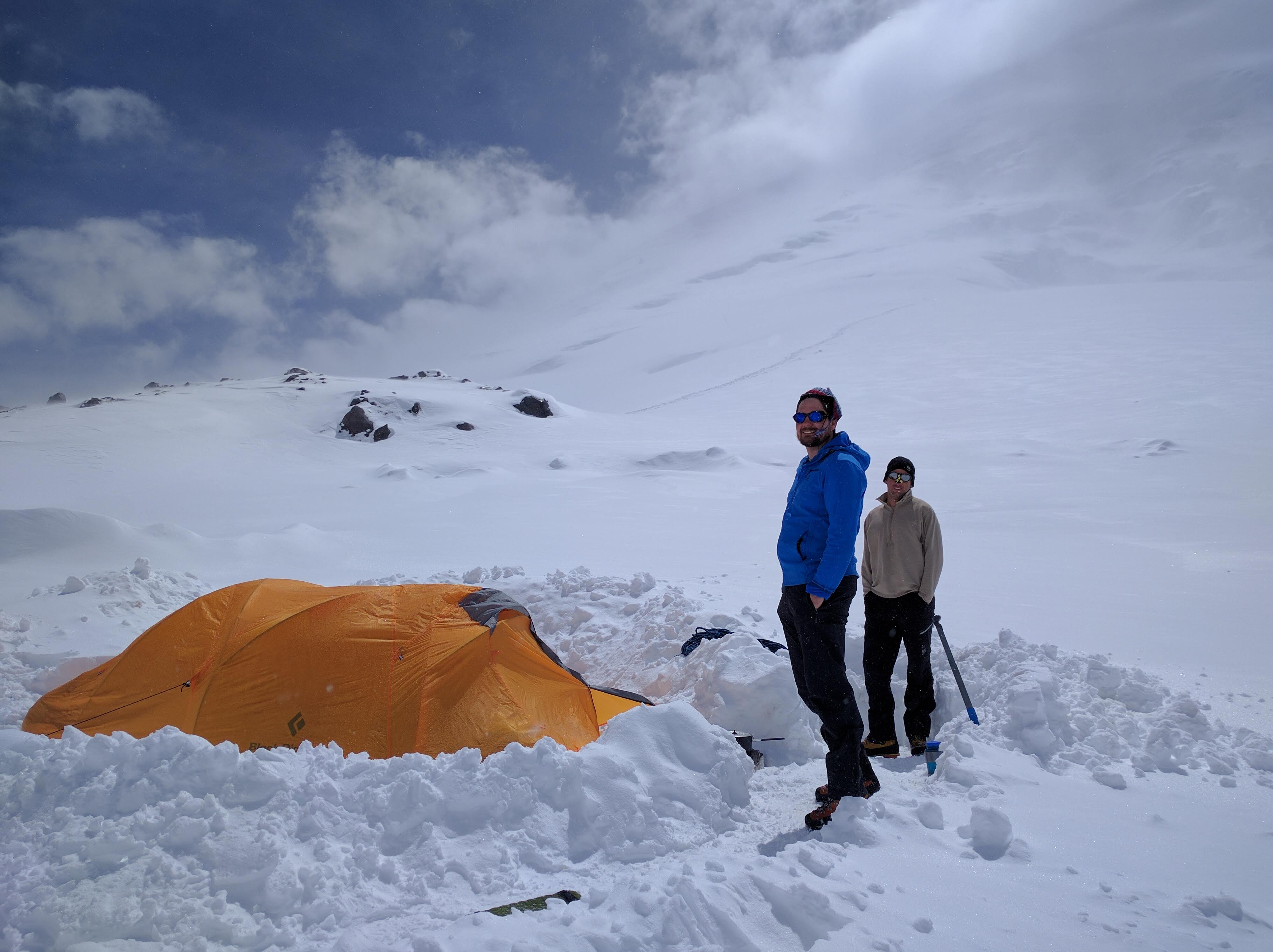 It pretty much snowed all night - with probably 4 feet of accumulation in the morning. We had one 4 man tent - Mark had brought a bivy but the conditions were not good for the bivy, so we let him sleep on our feet. Most of our camp pictures were taken the next day.