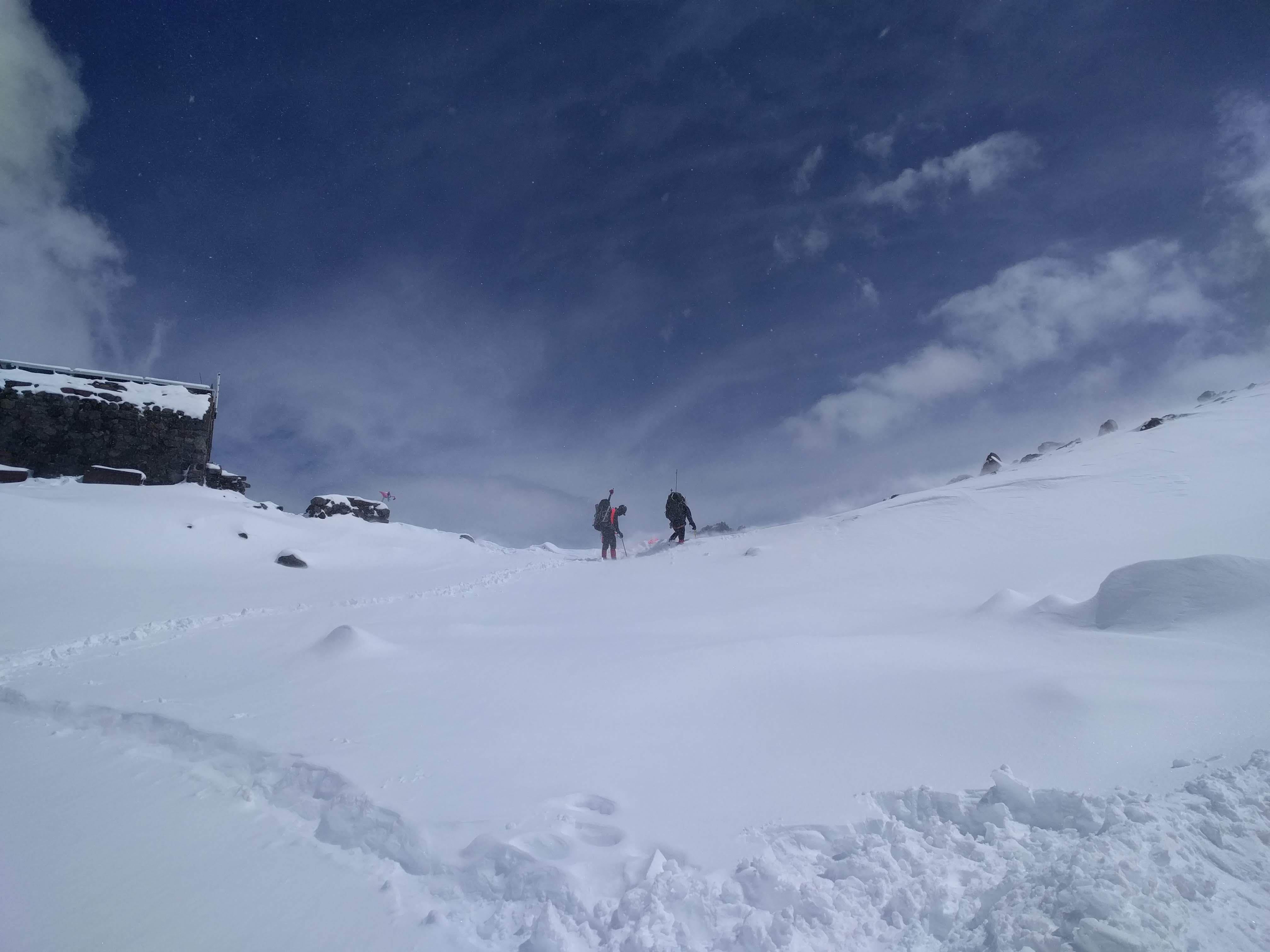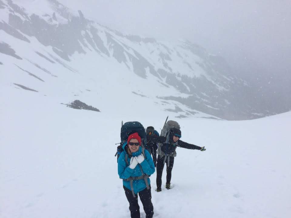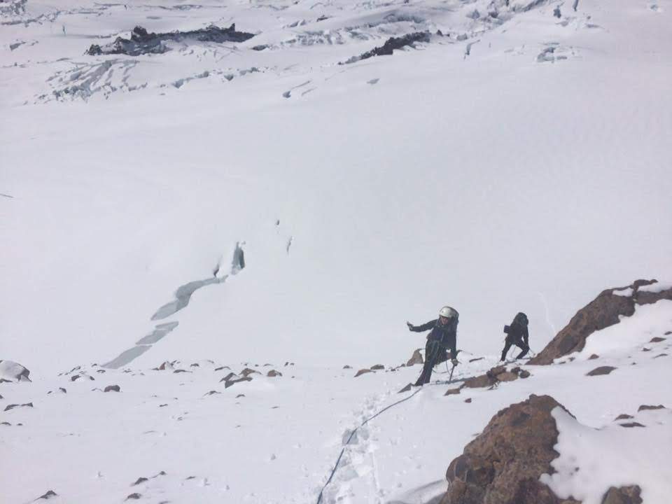 In the early afternoon, we got to the rope-up point and got all our gear together. As we were roping up, the weather looked amazing but it took a turn just an hour later - with big white flecks coming down on us.