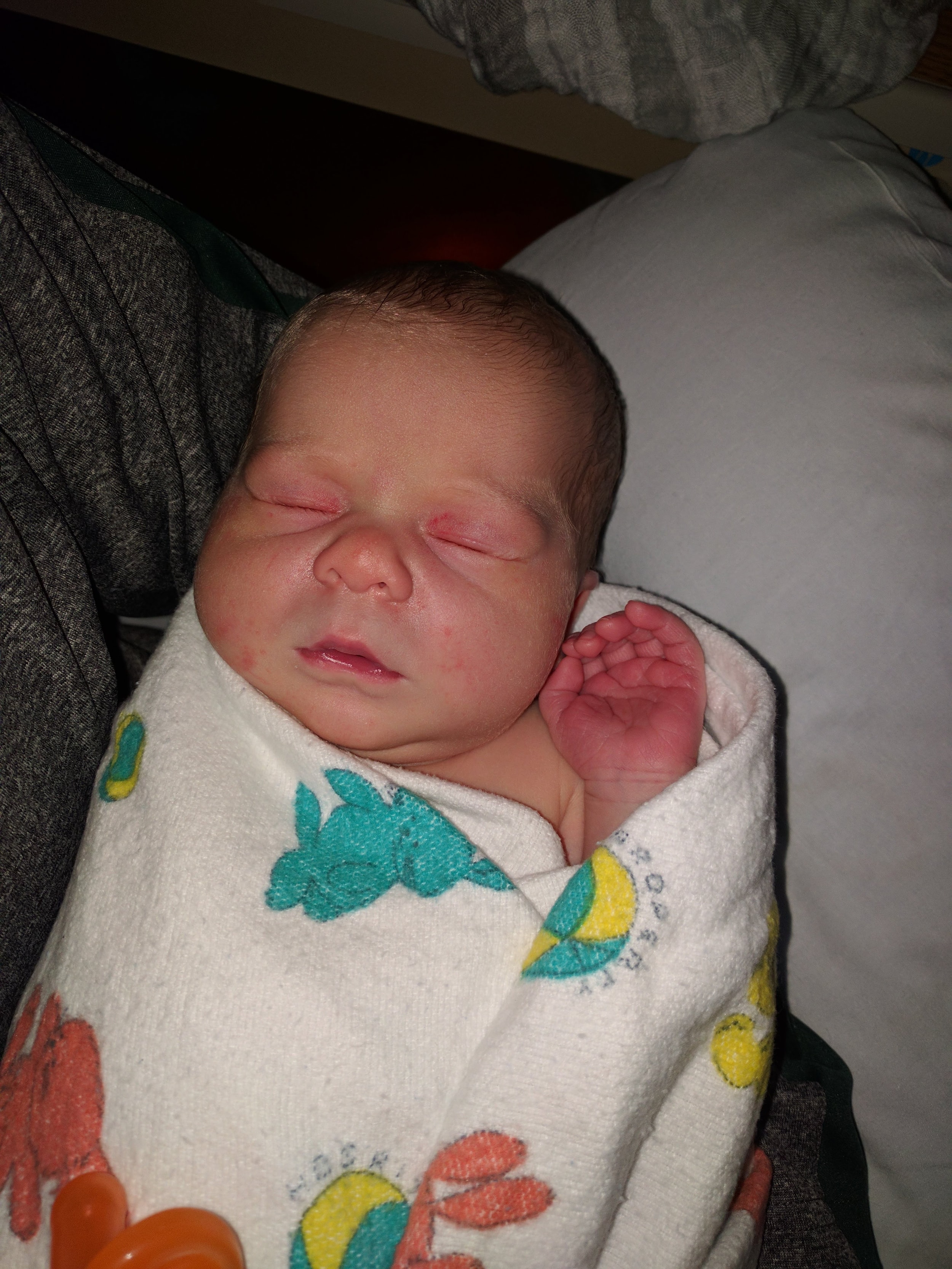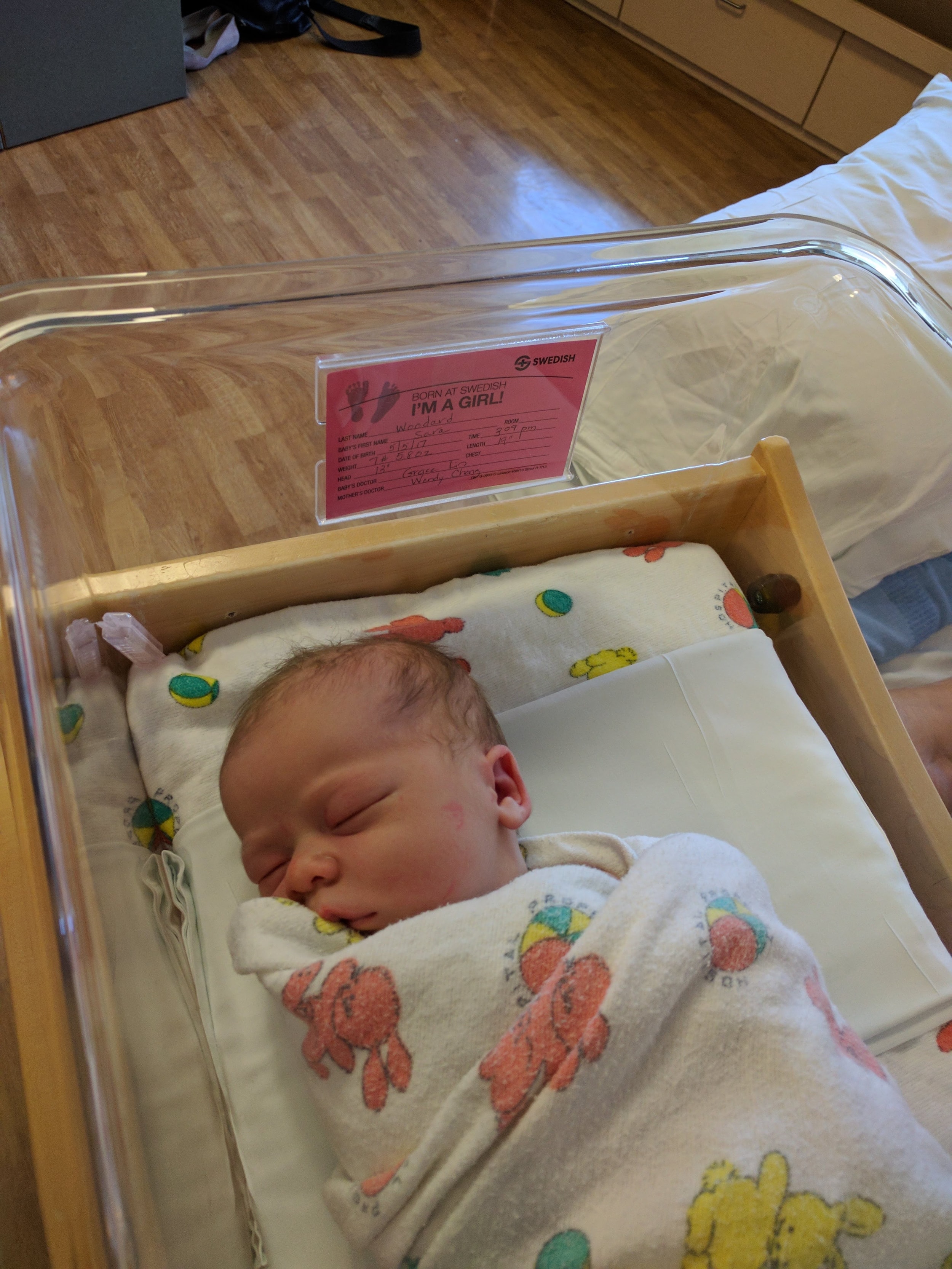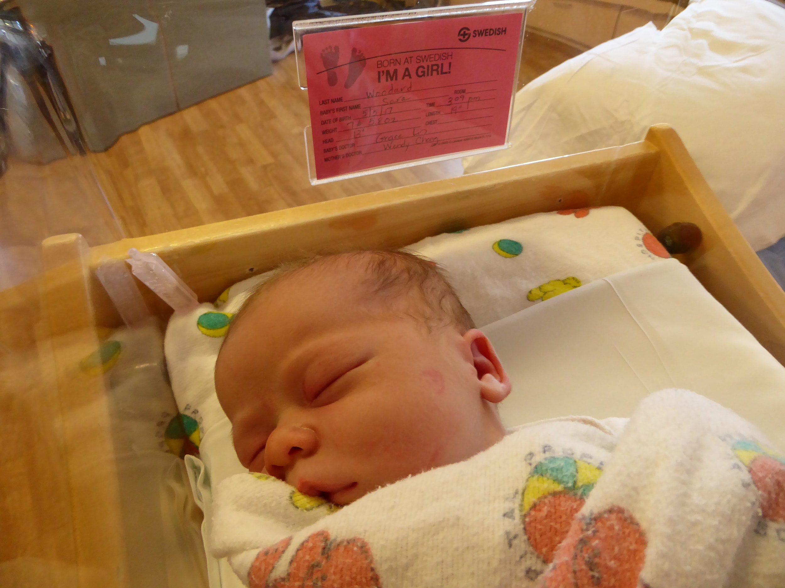 We left around 2:15a and headed up to Ballard. The day start off fairly slow, but the contractions started to get painful around 10a or so and there was some panic for half an hour or so before she could get an epidural put in. After that, it was pretty relaxed for a while - we played cards and chatted about everything ahead that we had no idea how to fathom. Then, at 3:09p, it all went down.