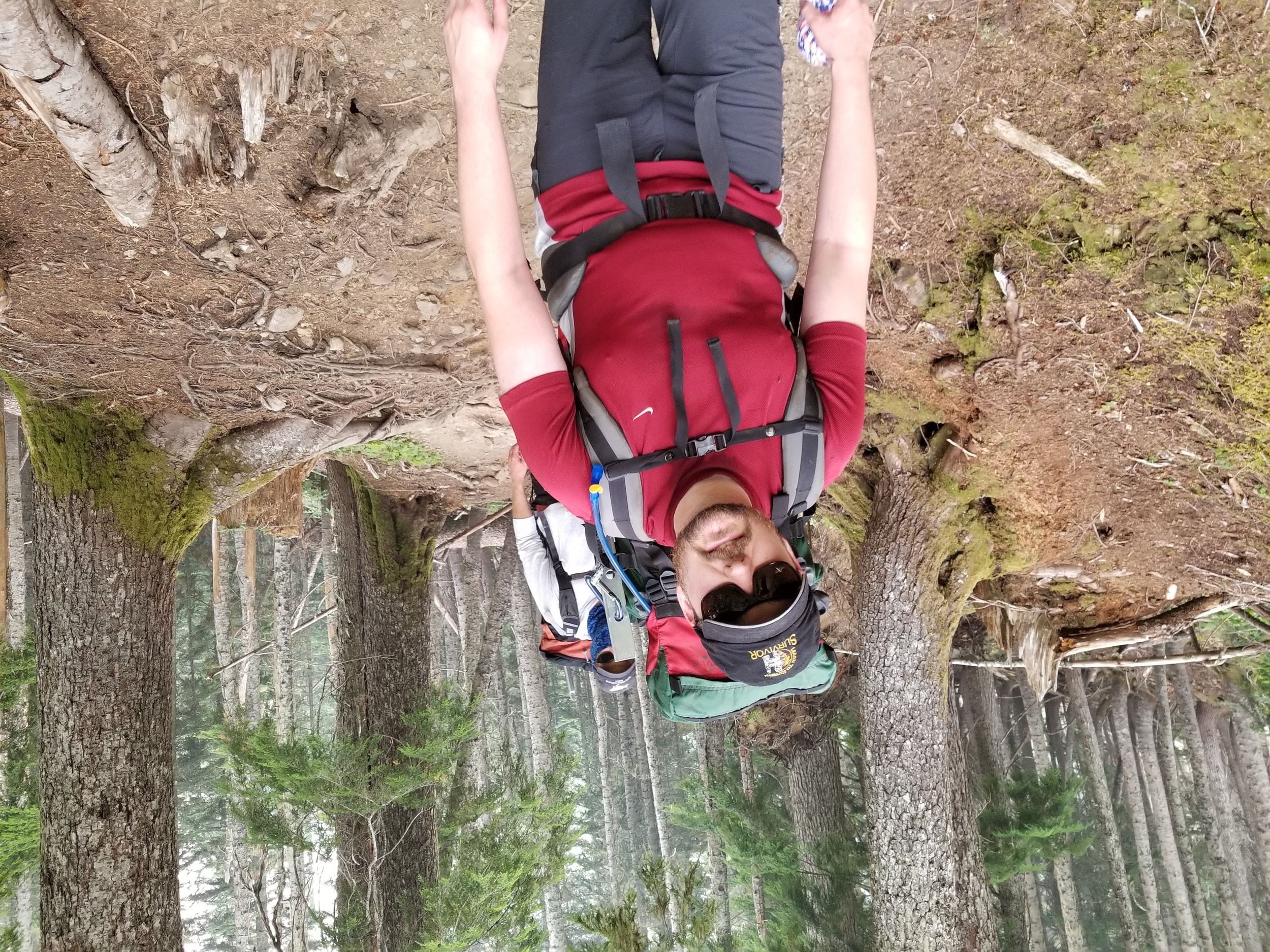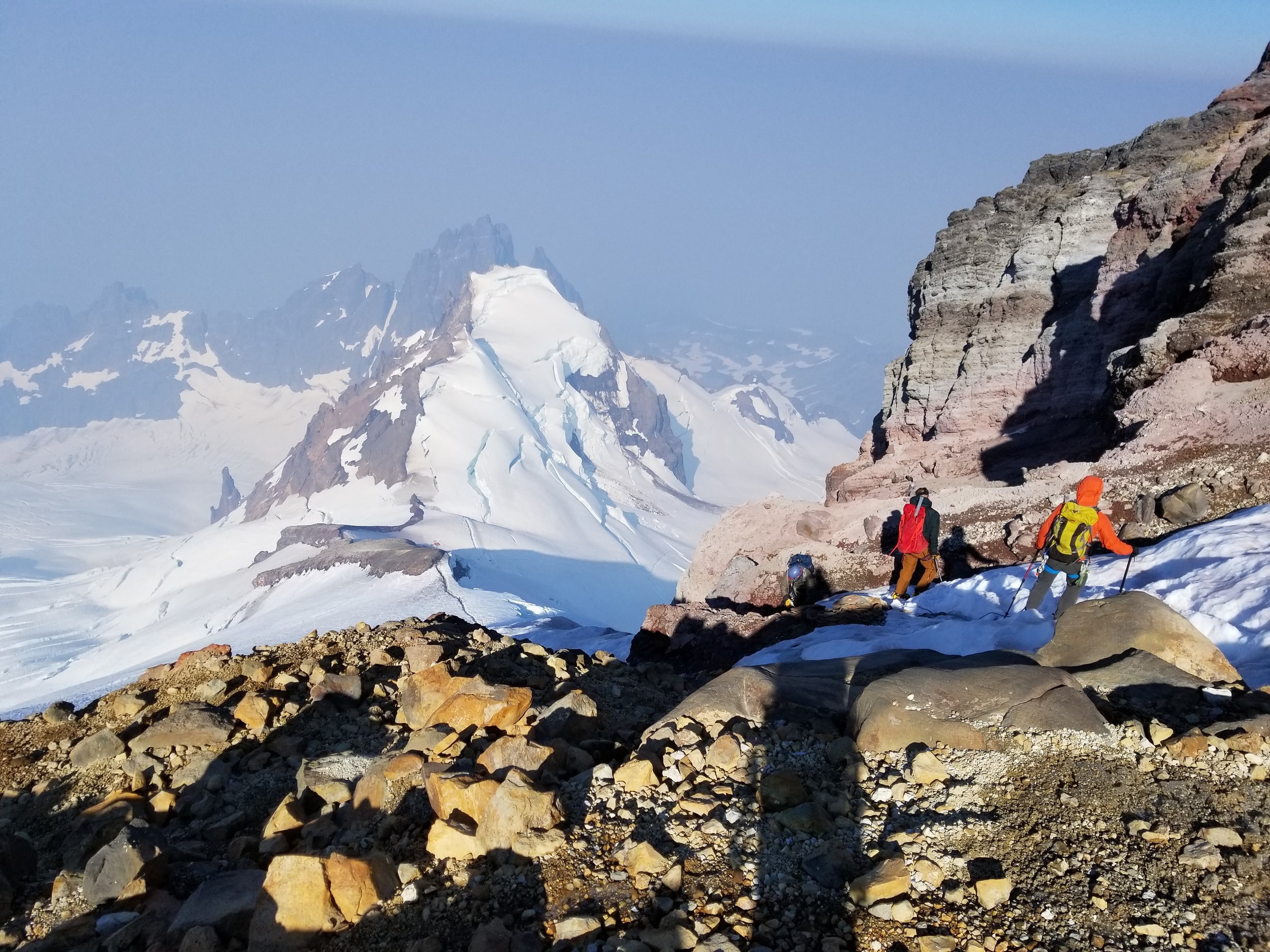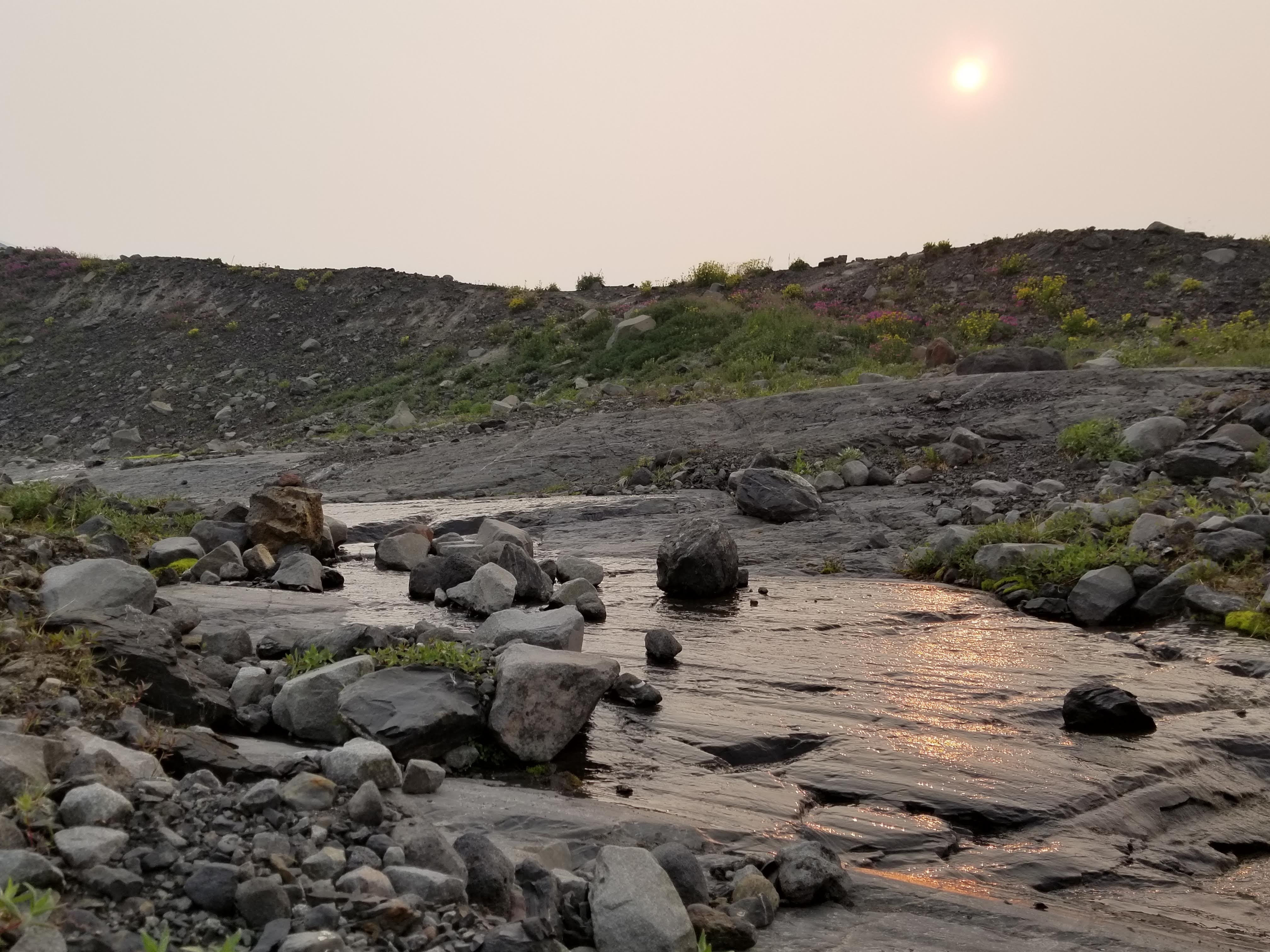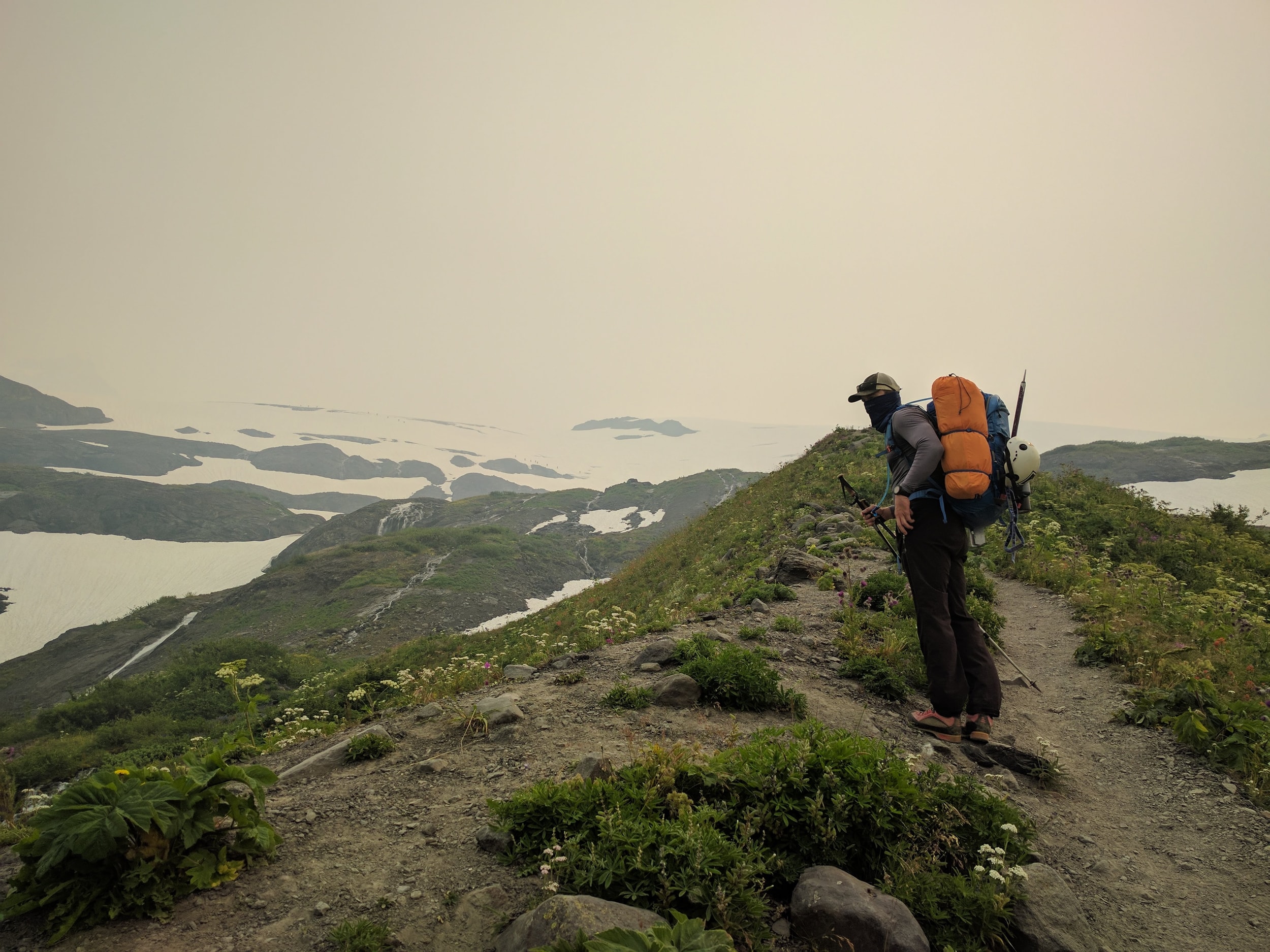 We drove up to the mountain and started our climb fairly early - 7 or 8 am - but it looked like an orange twilight because of all the smoke. The smoke had settled into the low land, so we knew this was temporary until we could get above the treeline - but it was rough for the first 5-6 miles. We had to cover our faces or we would start coughing uncontrollably.