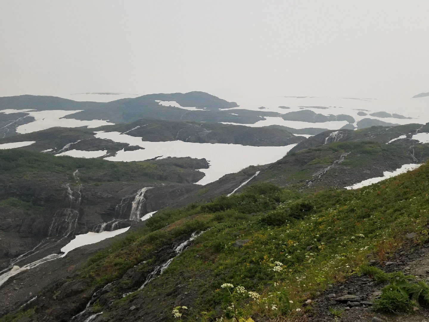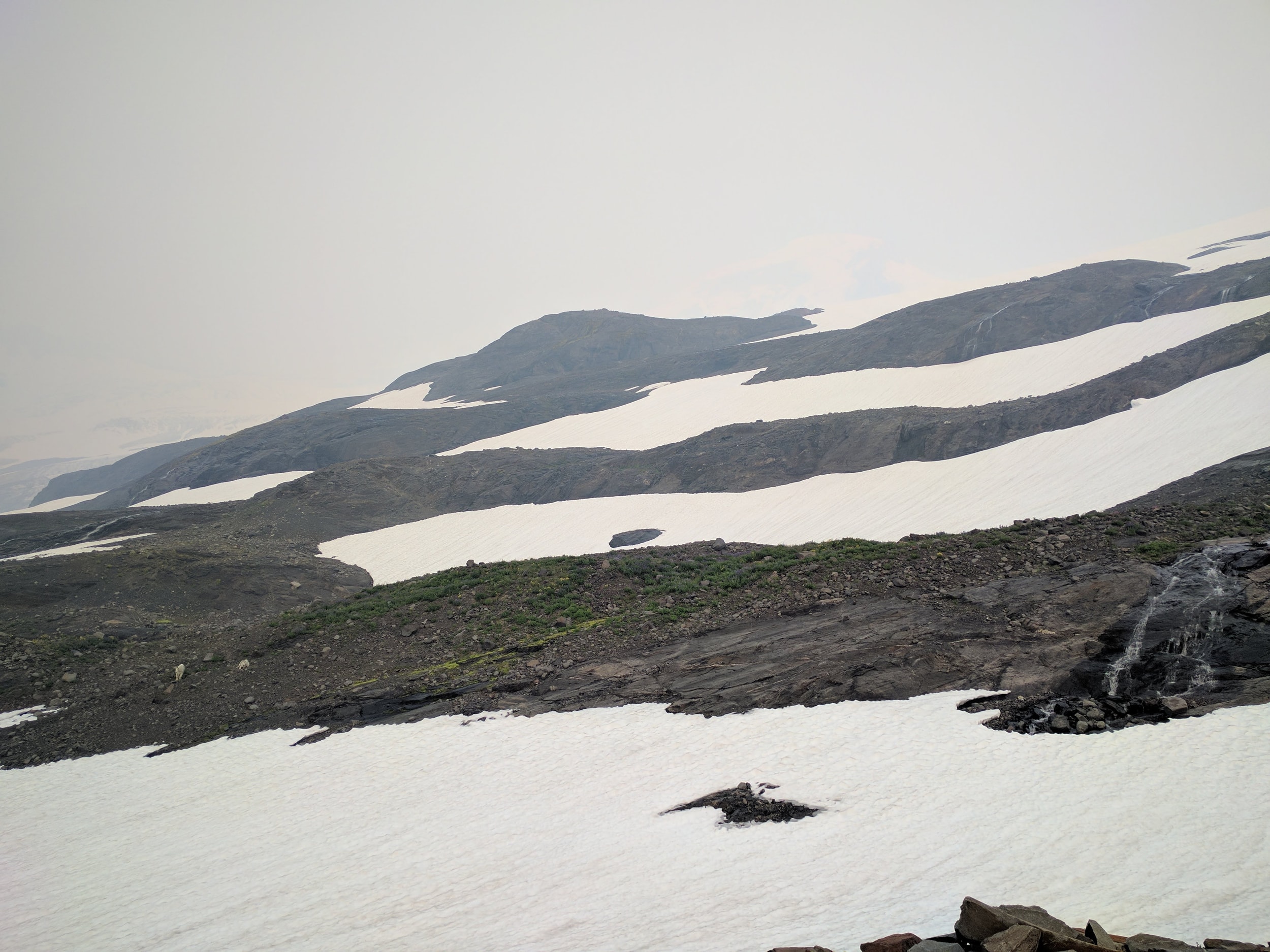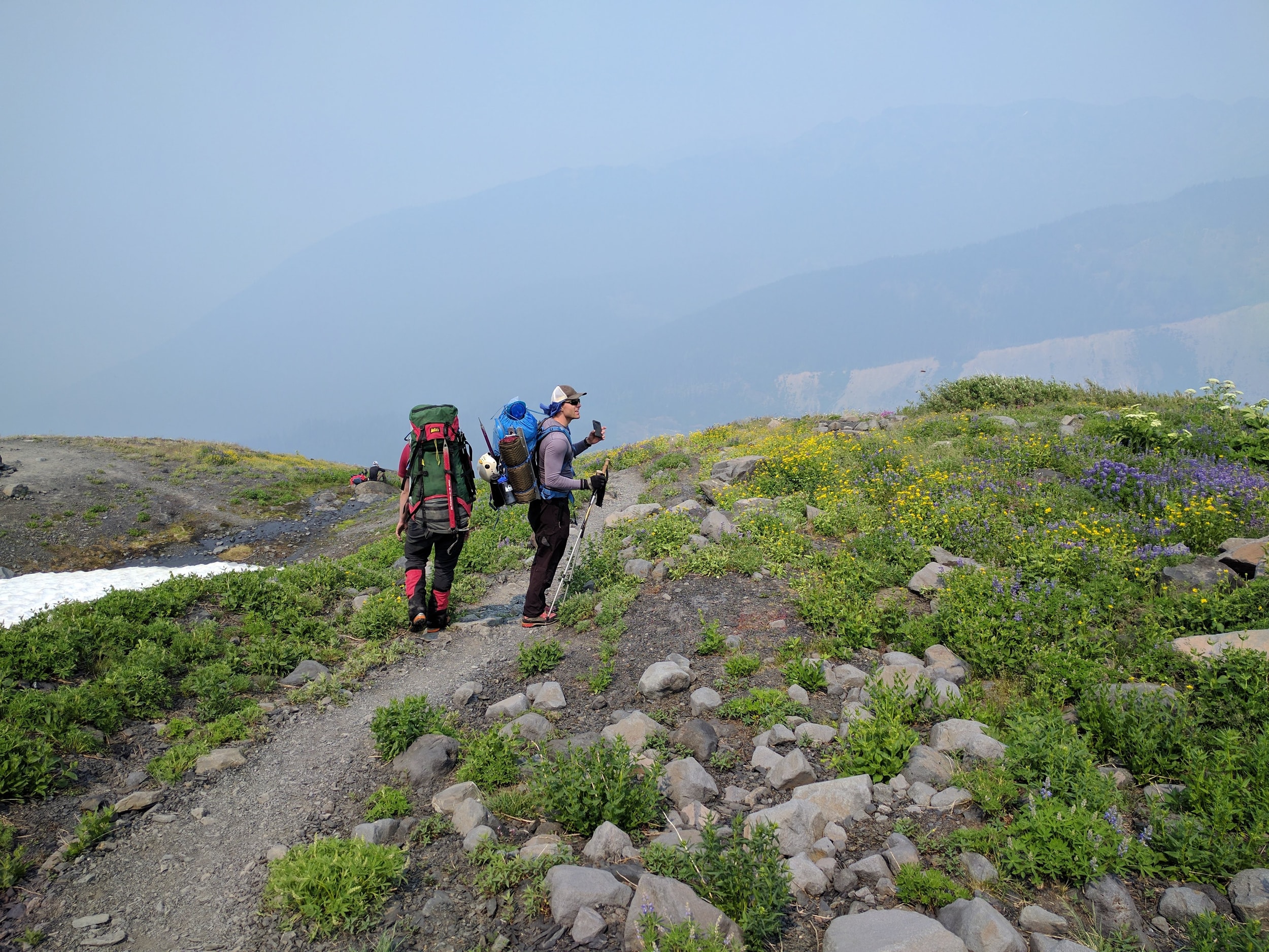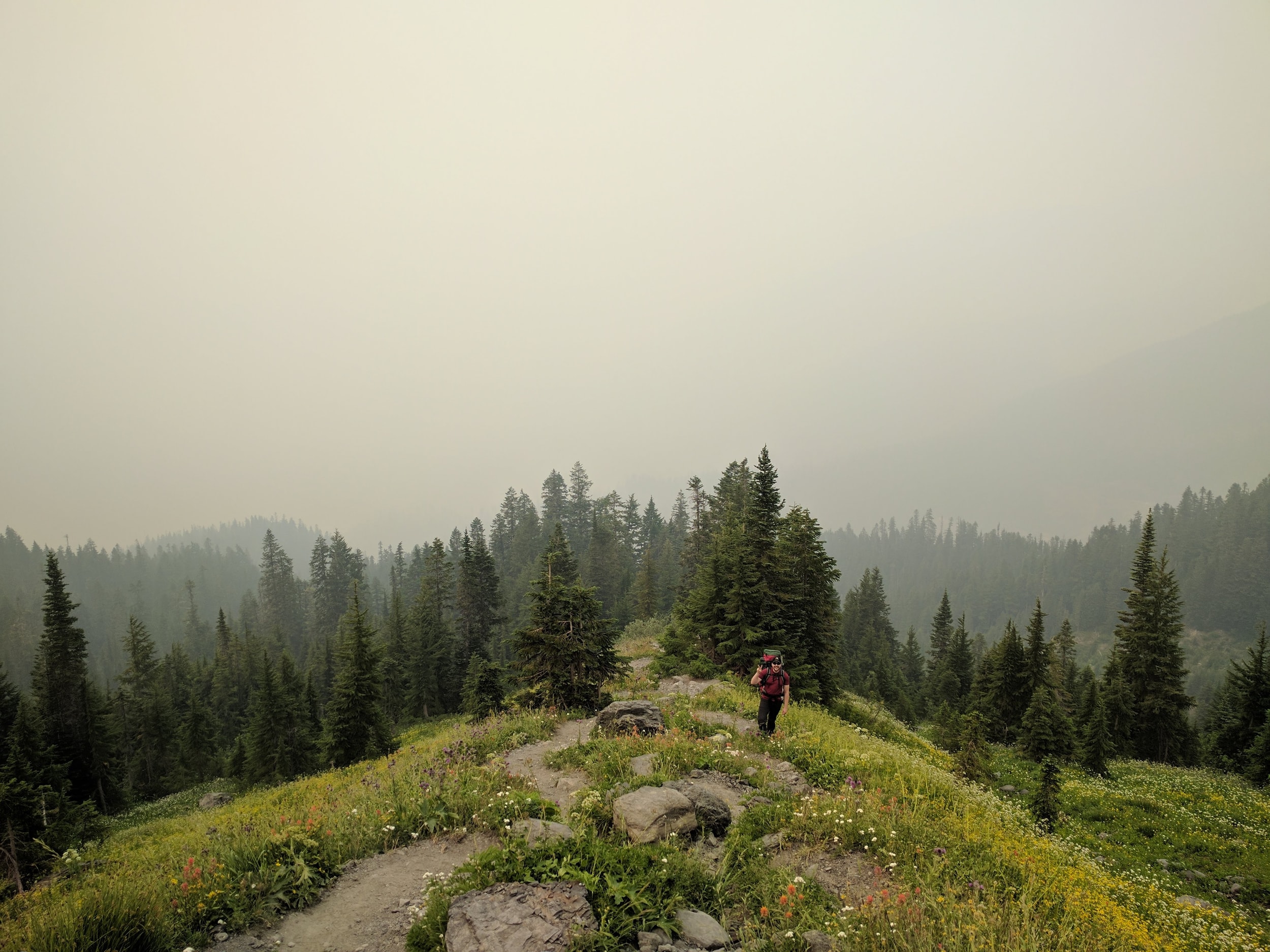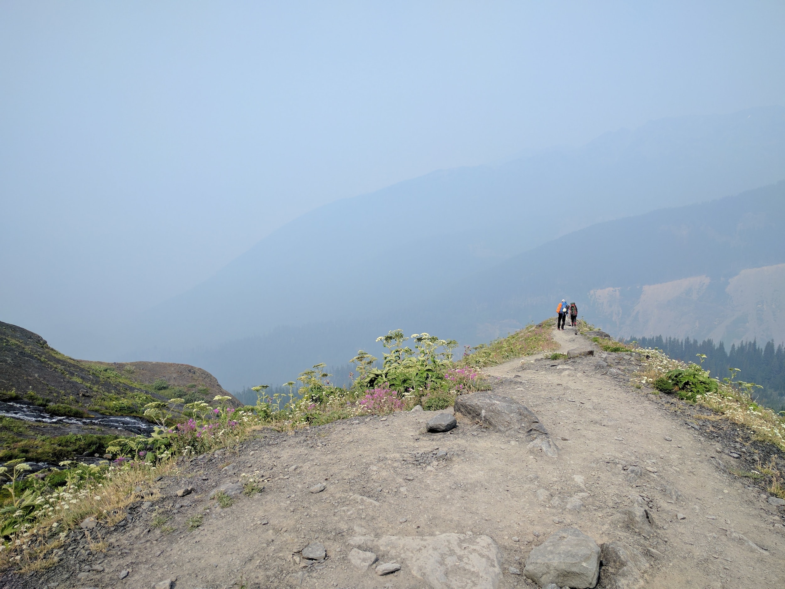 We came down below the snow line and back into the green - and everything changed again. The same amazing waterfalls and wildflowers - and then back into the same smoke, were we masked back up to avoid the coughing fits.