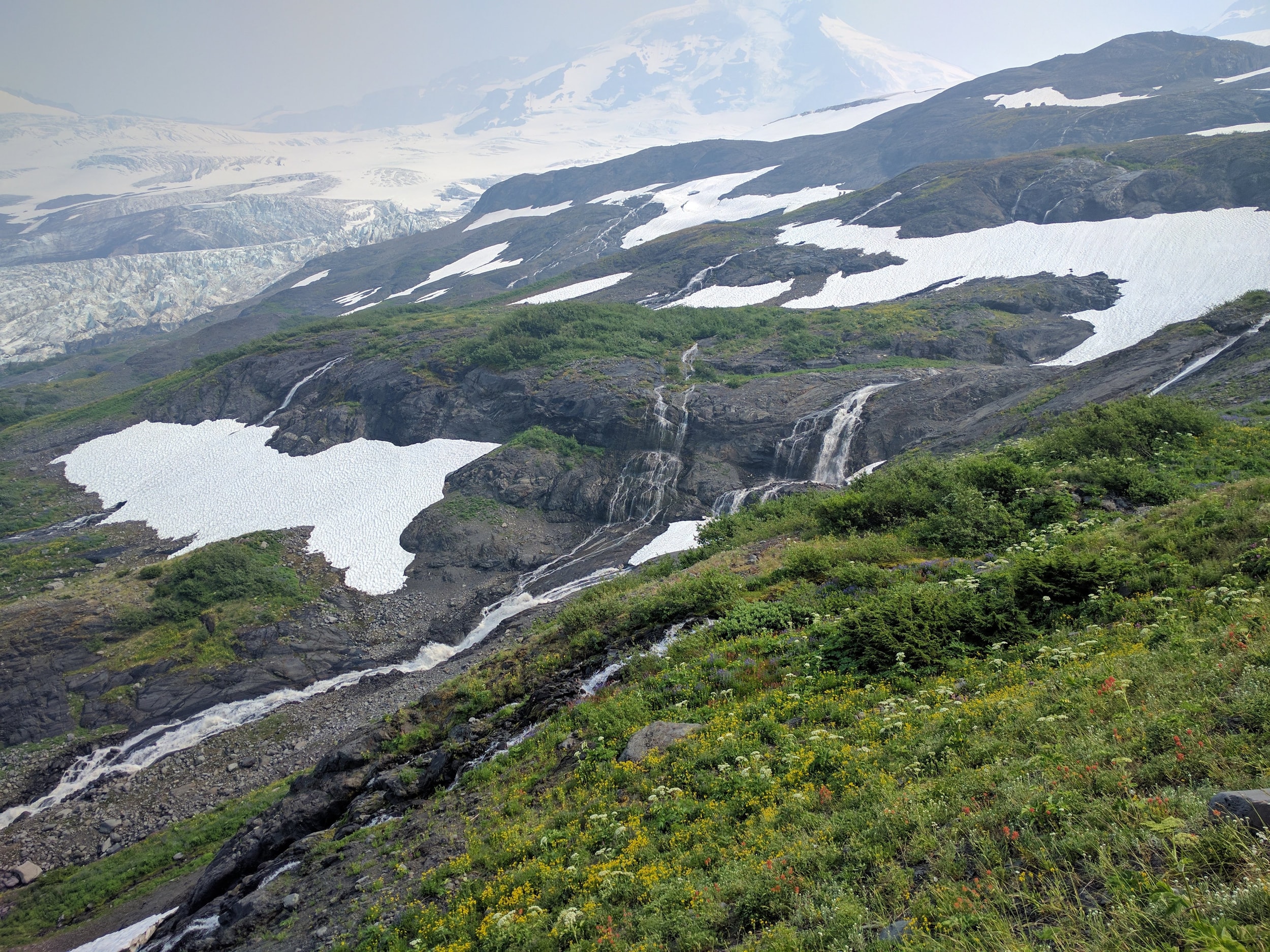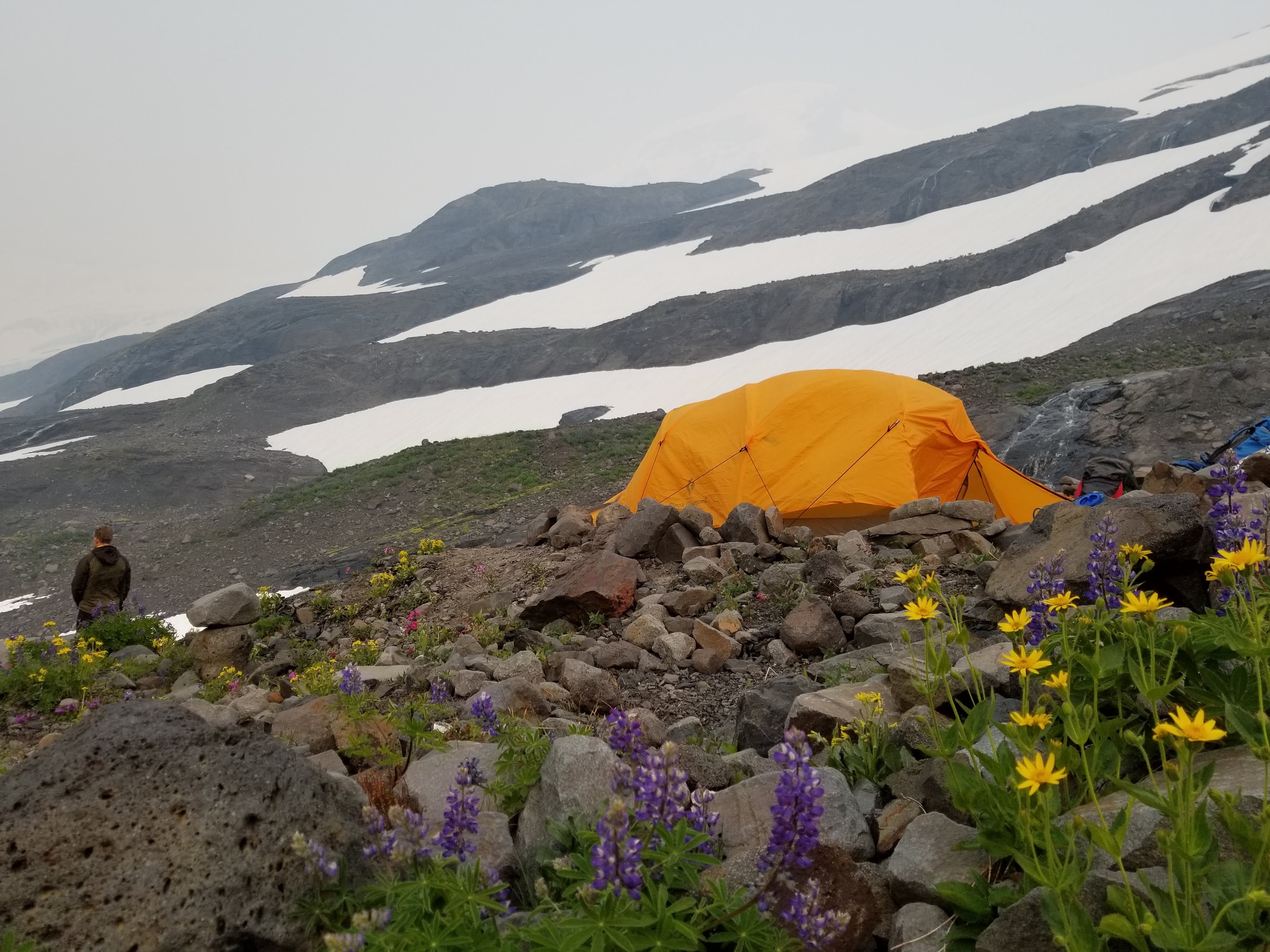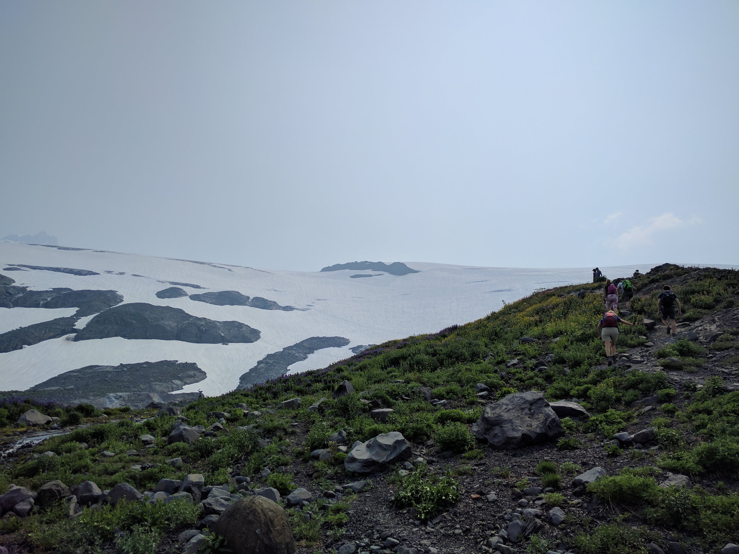 The hike up was very lush and green - Mt Baker has the most amazing foothills because of all the snow/rain it gets. Amazing watefalls, beautiful wildflowers, and wind sculped lanscapes. The approach was amost as amazing as the climb itself.