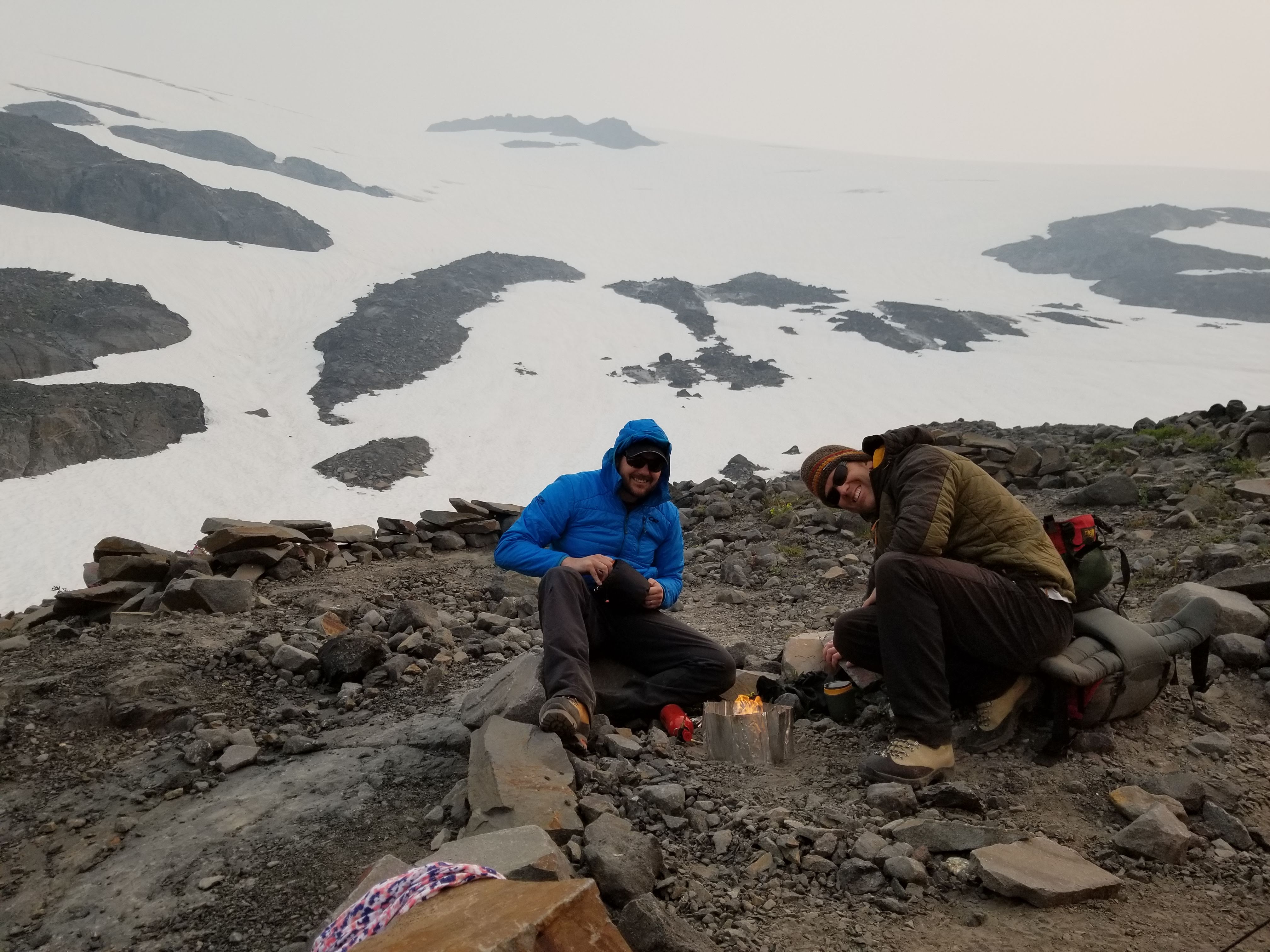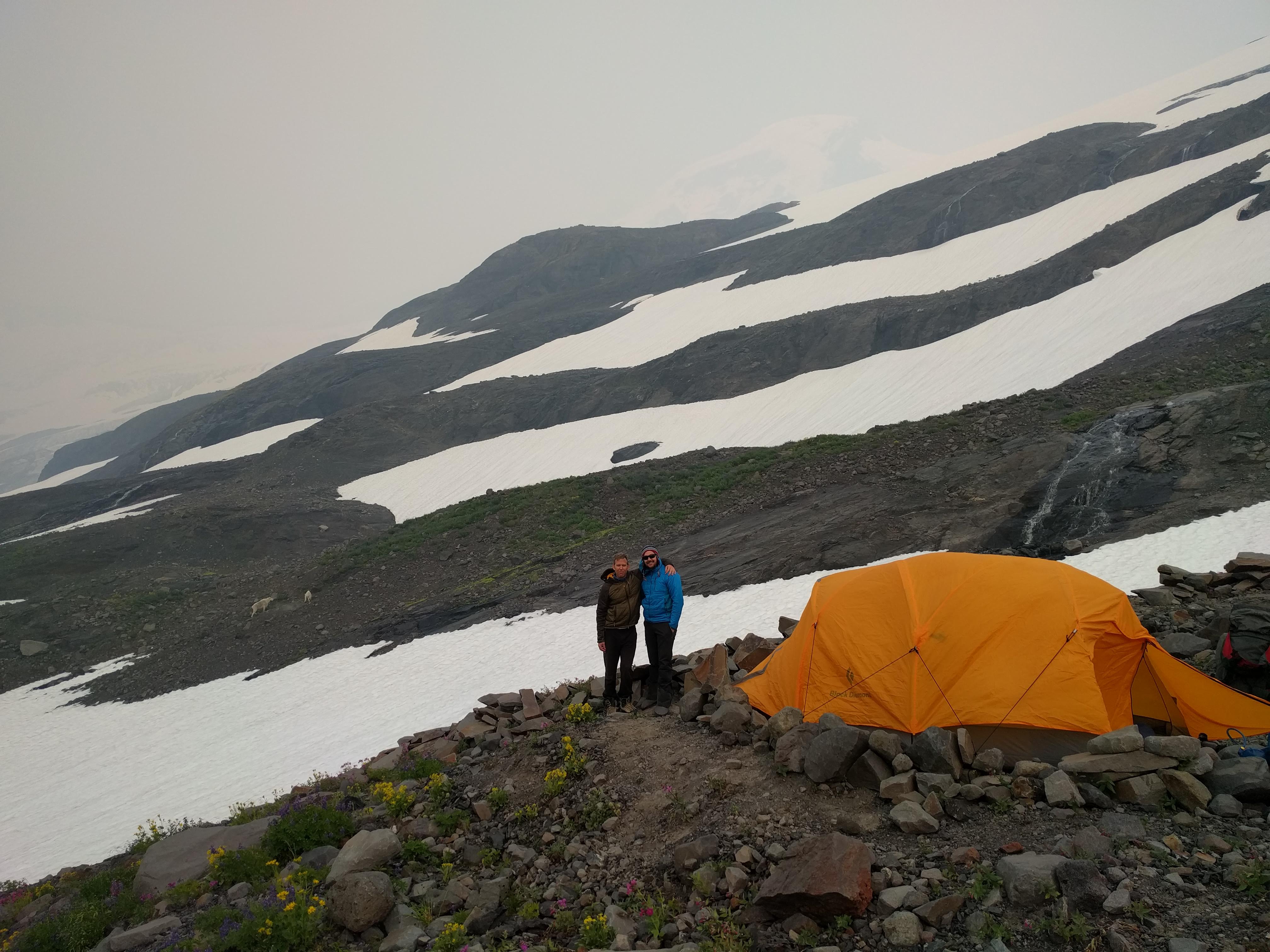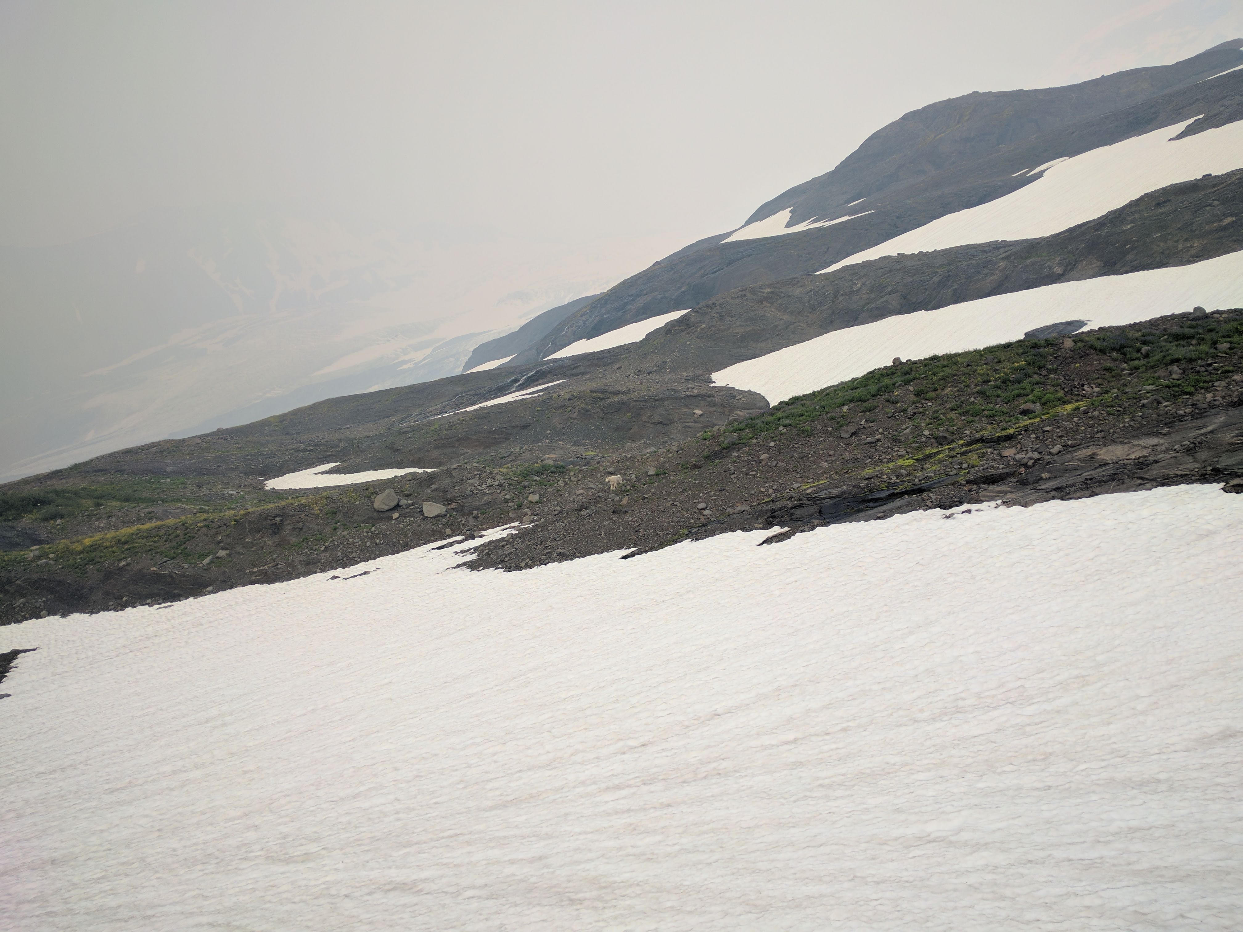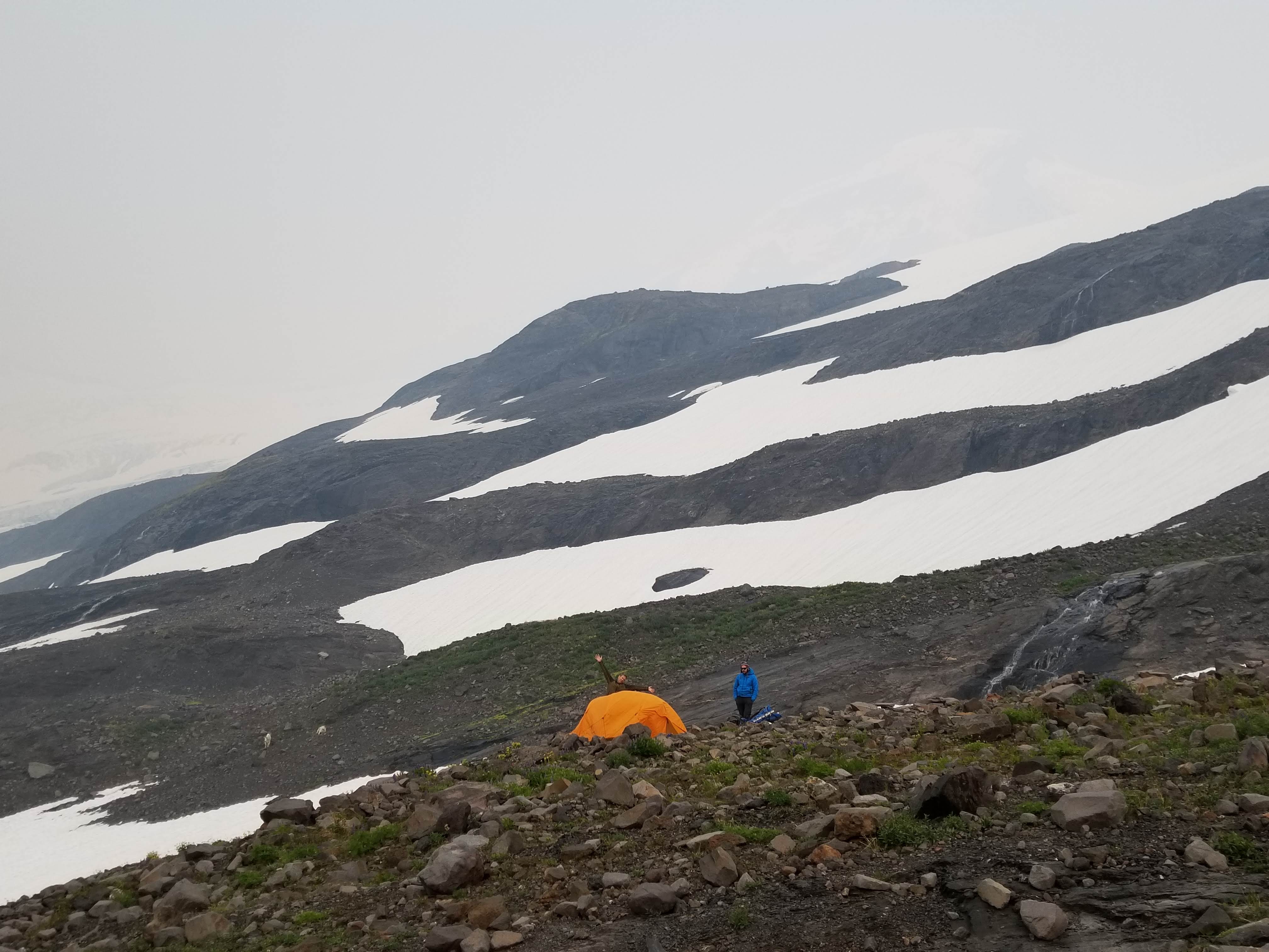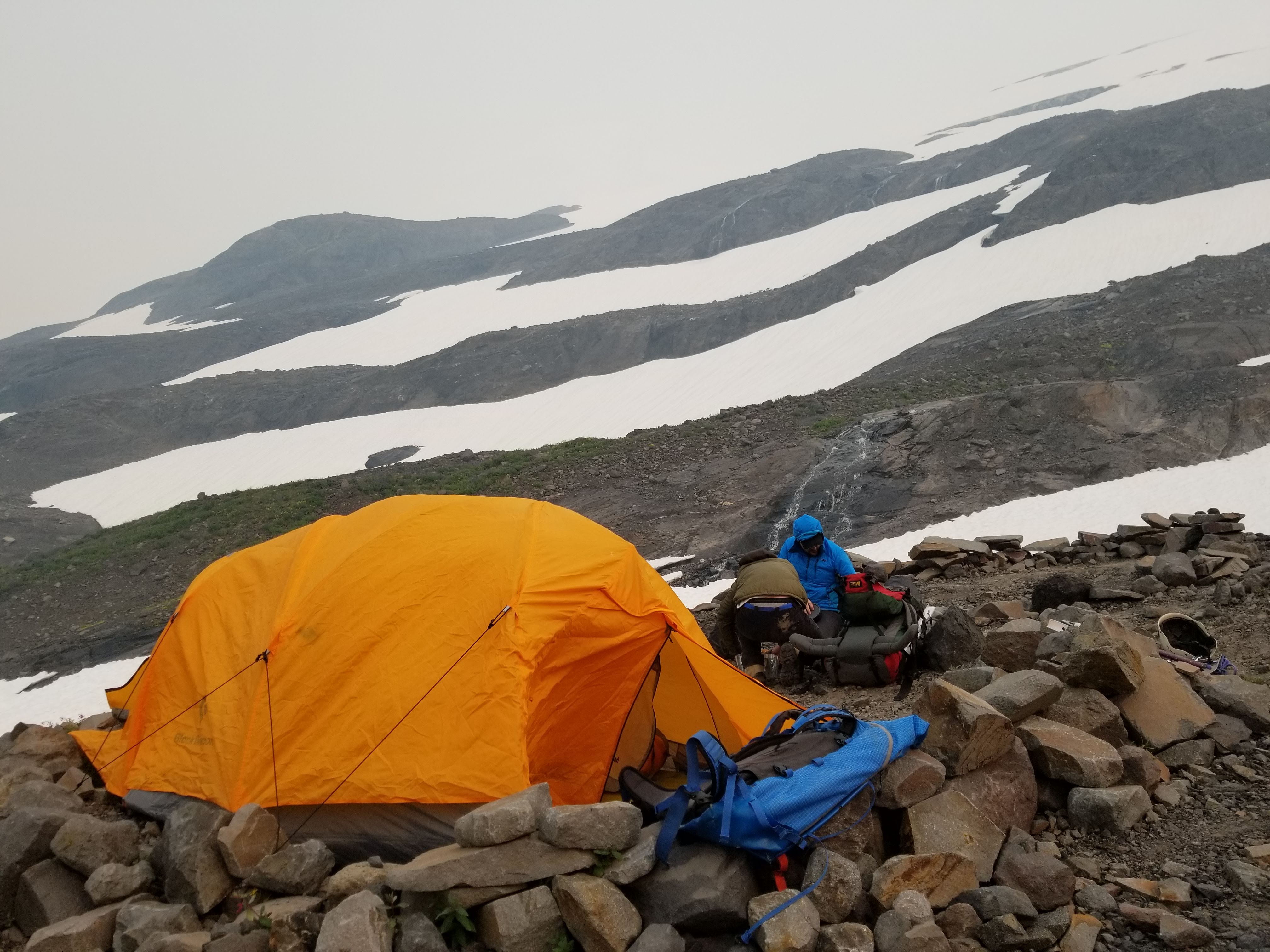 We camped on a big open field right before the snowline - it ended up being a great campsite - lots of water and not too cold. It was also above the smoke line, so that made things much more comfortable.