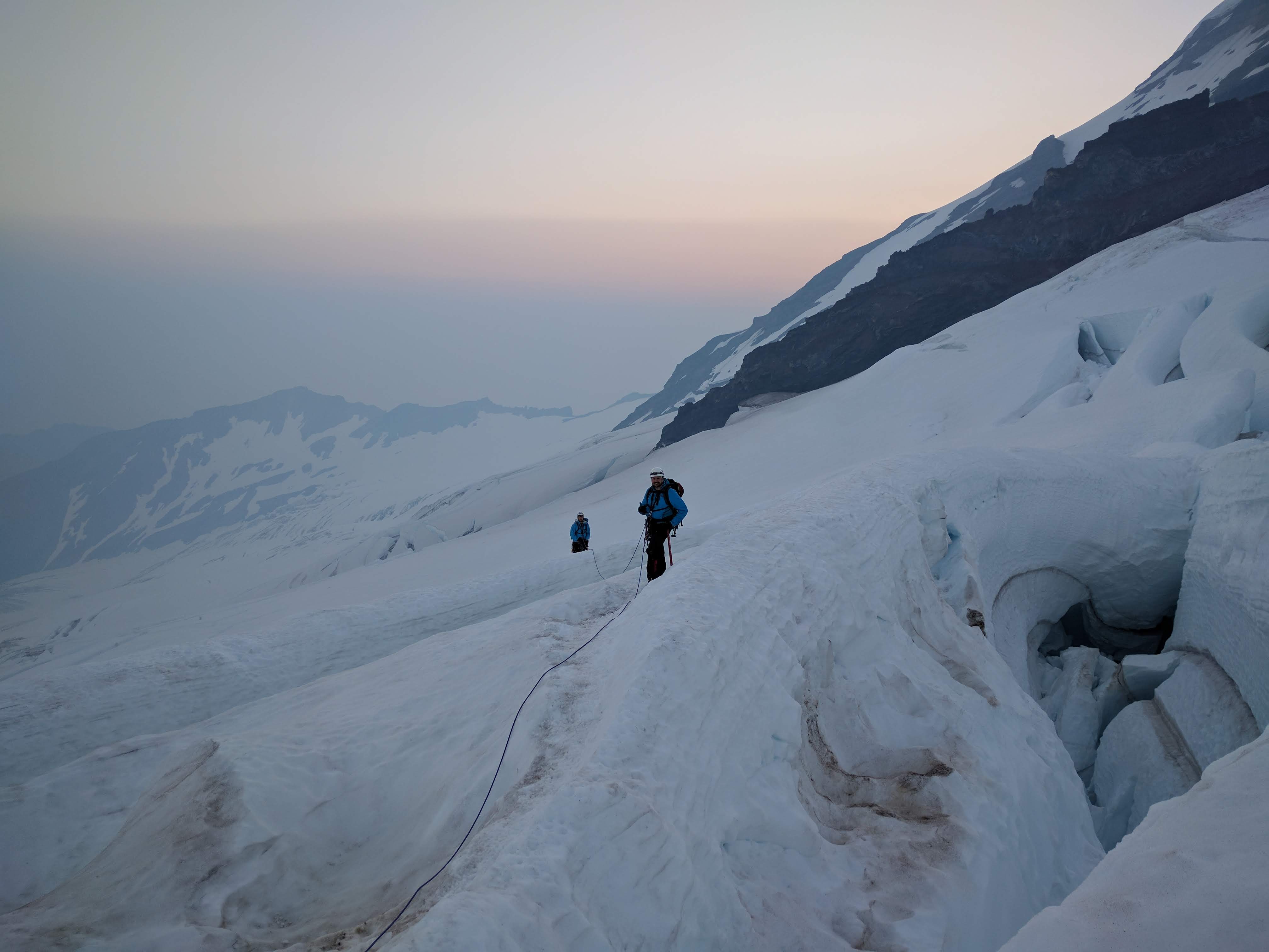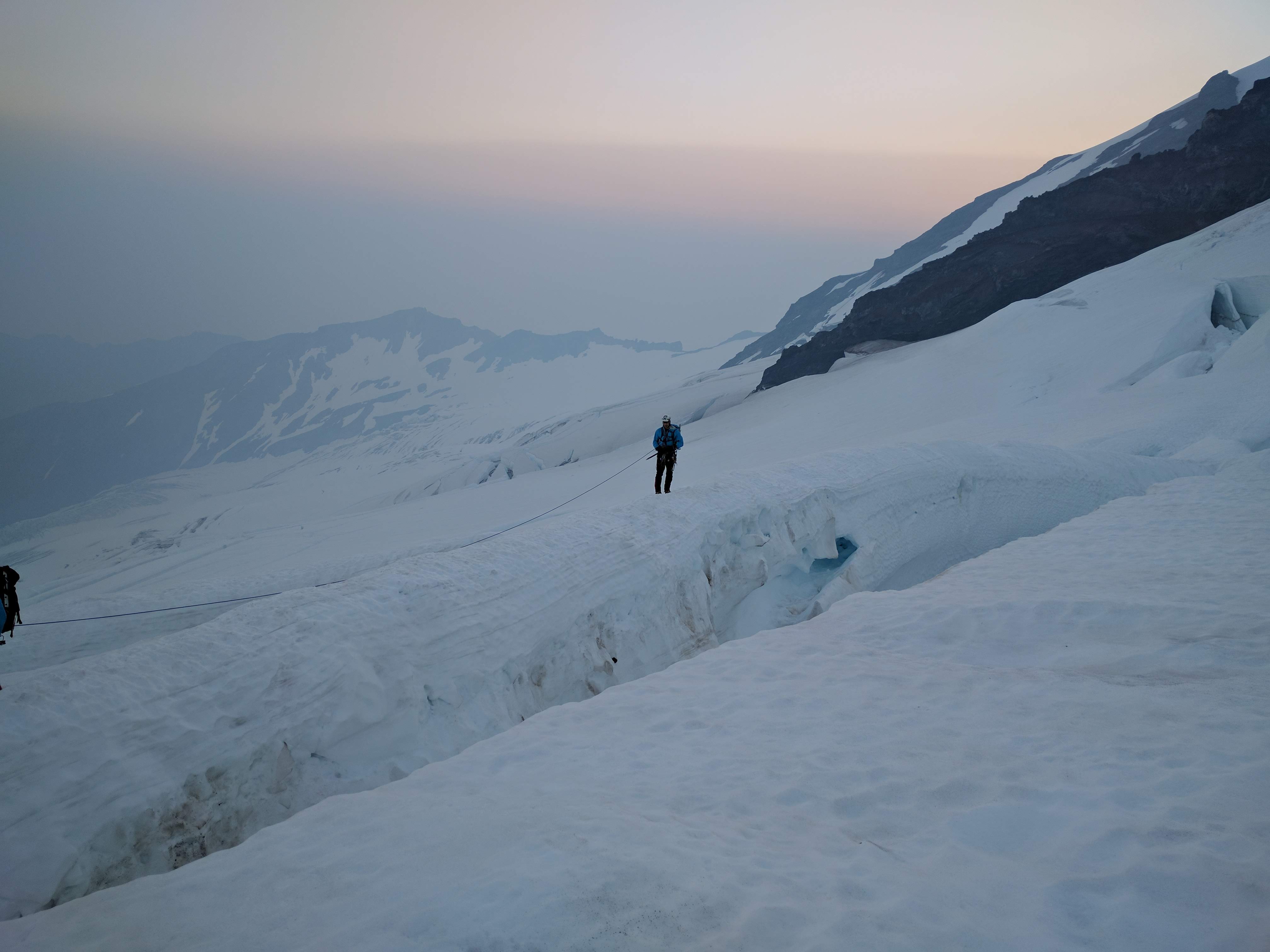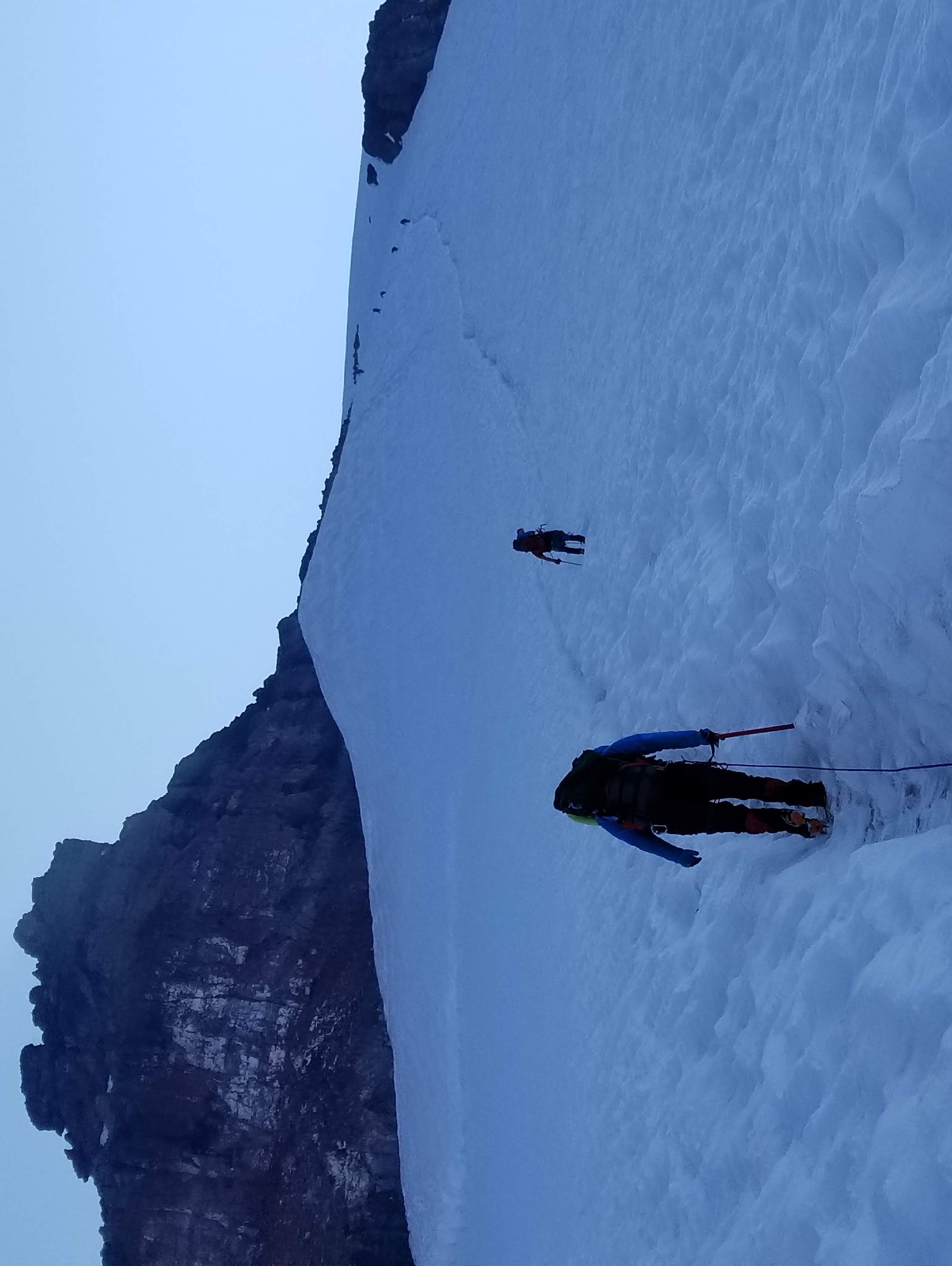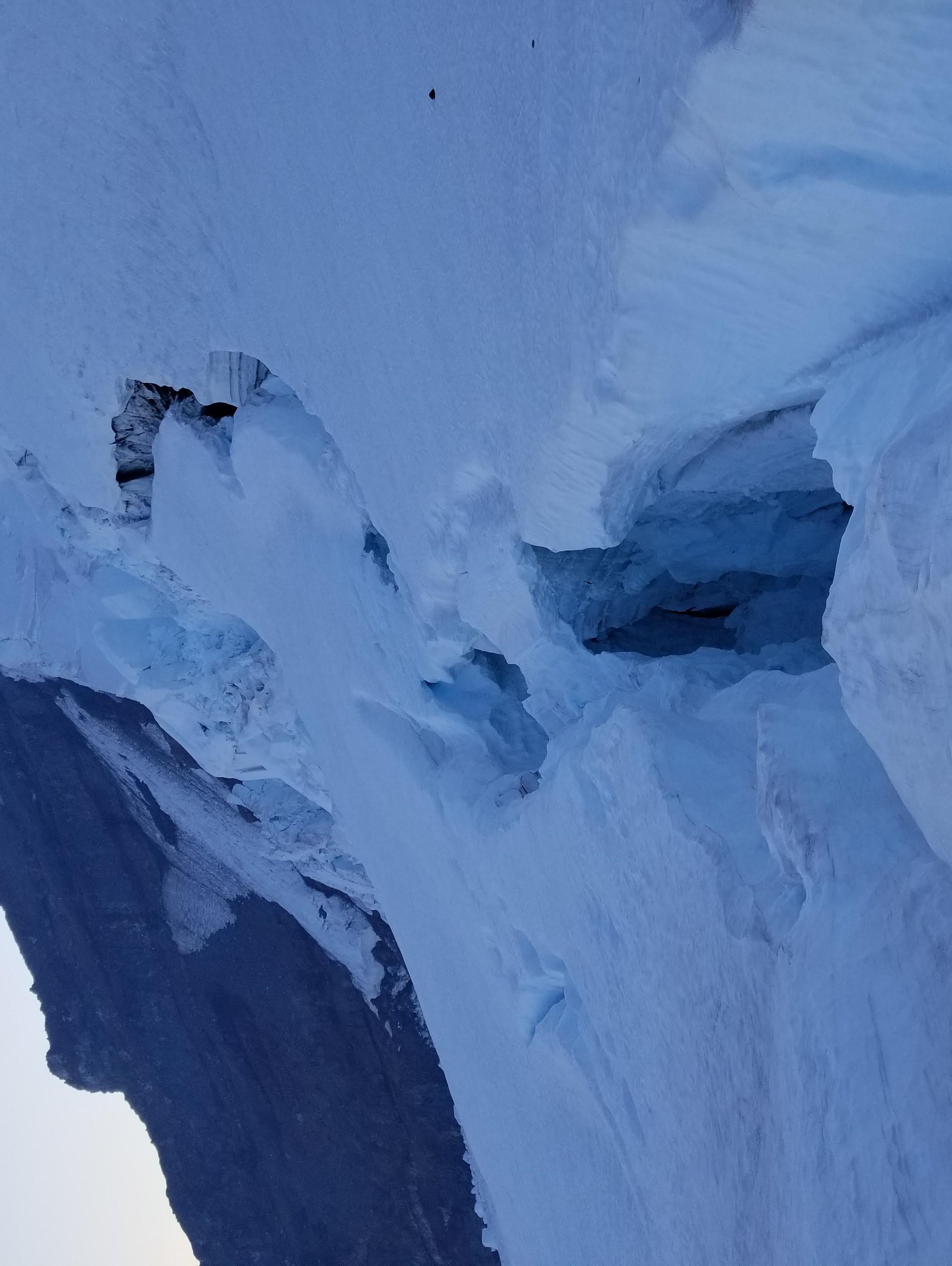 From there, we climbed. You have to do several big glacier traverses - where you go across the glacier with the cravasses - which is a bit more challenging than going perpendicular. The cravasses were deep too, probably simliar to Mt Rainier with 50ish feet deep.