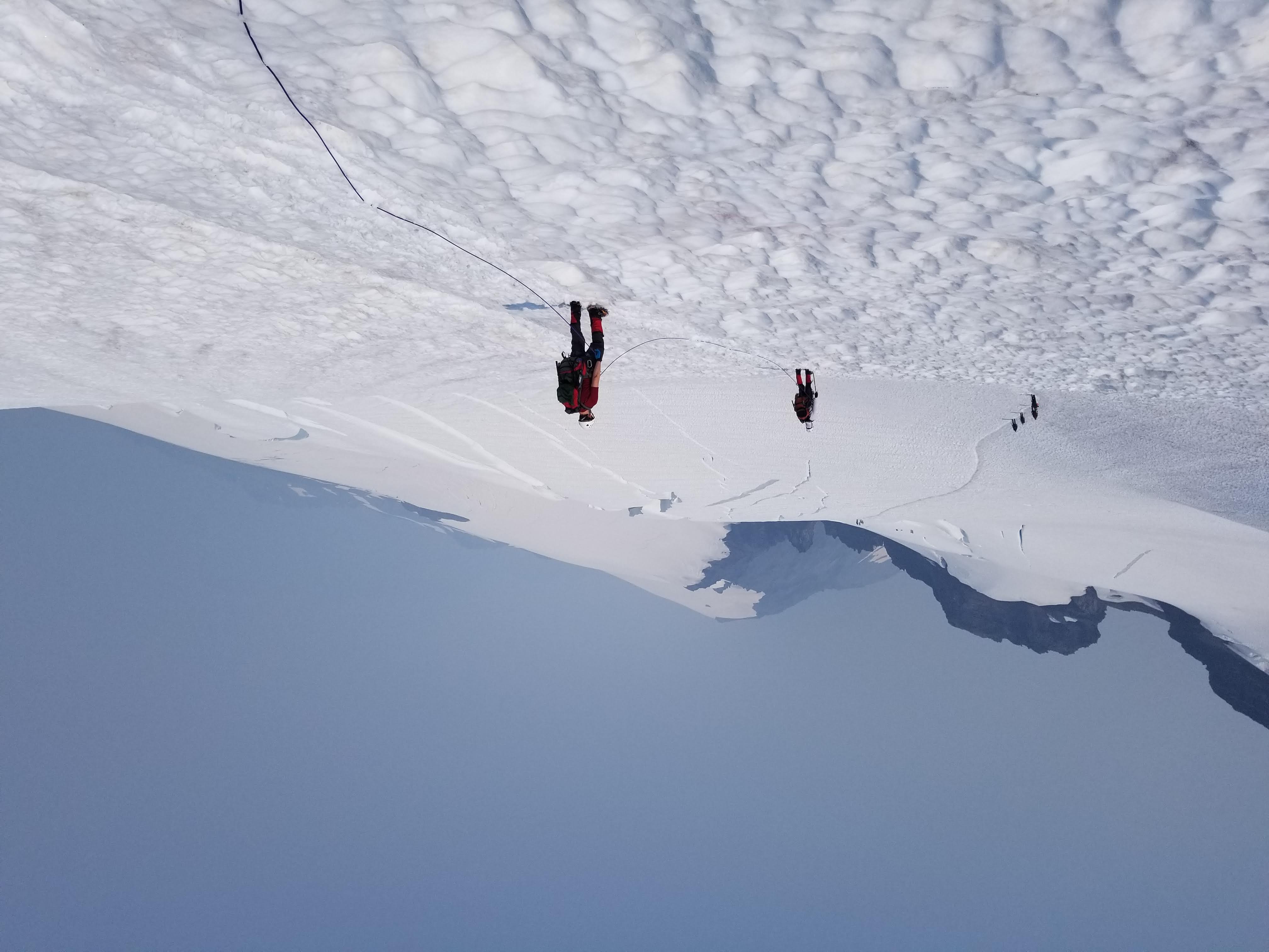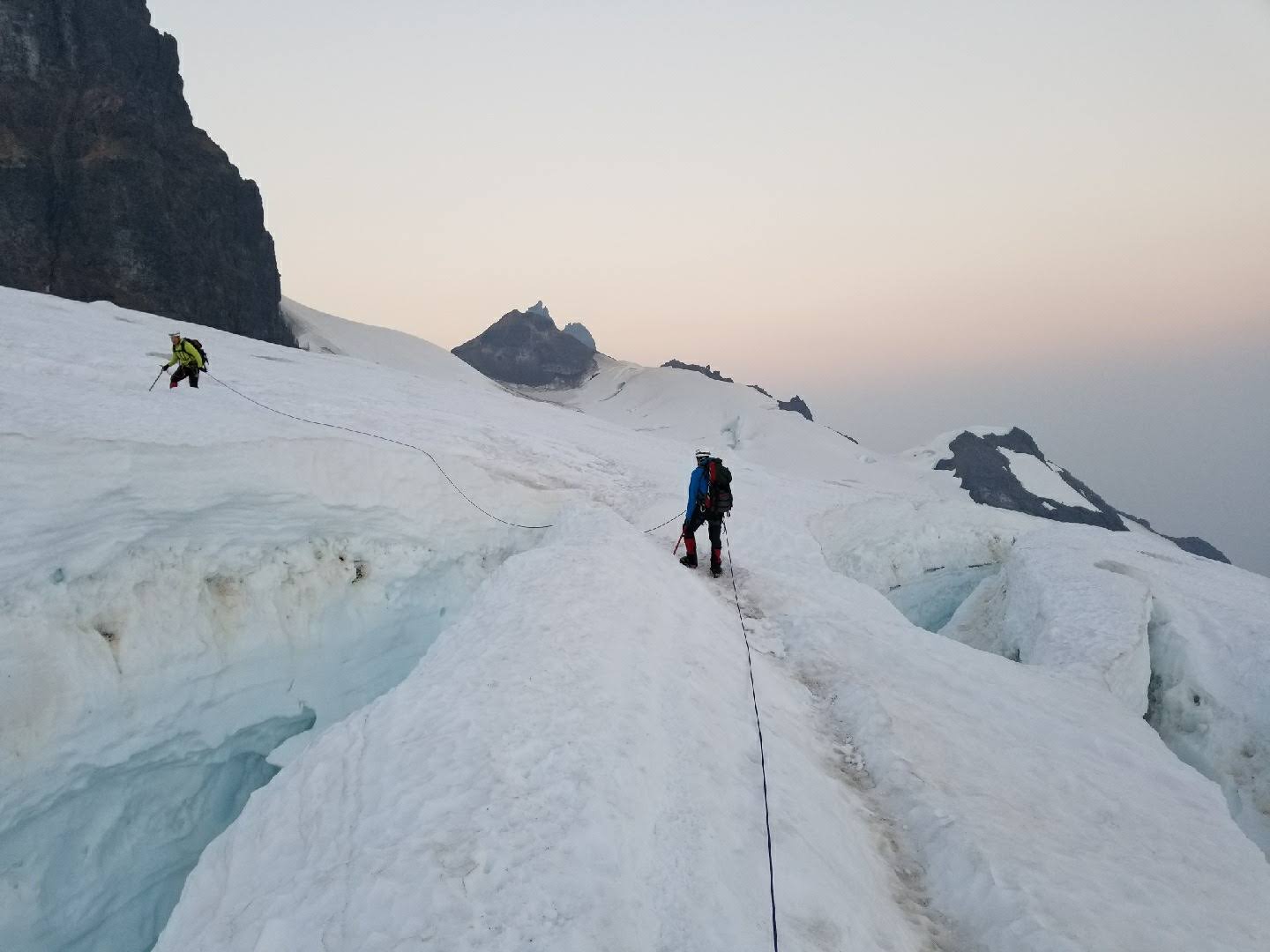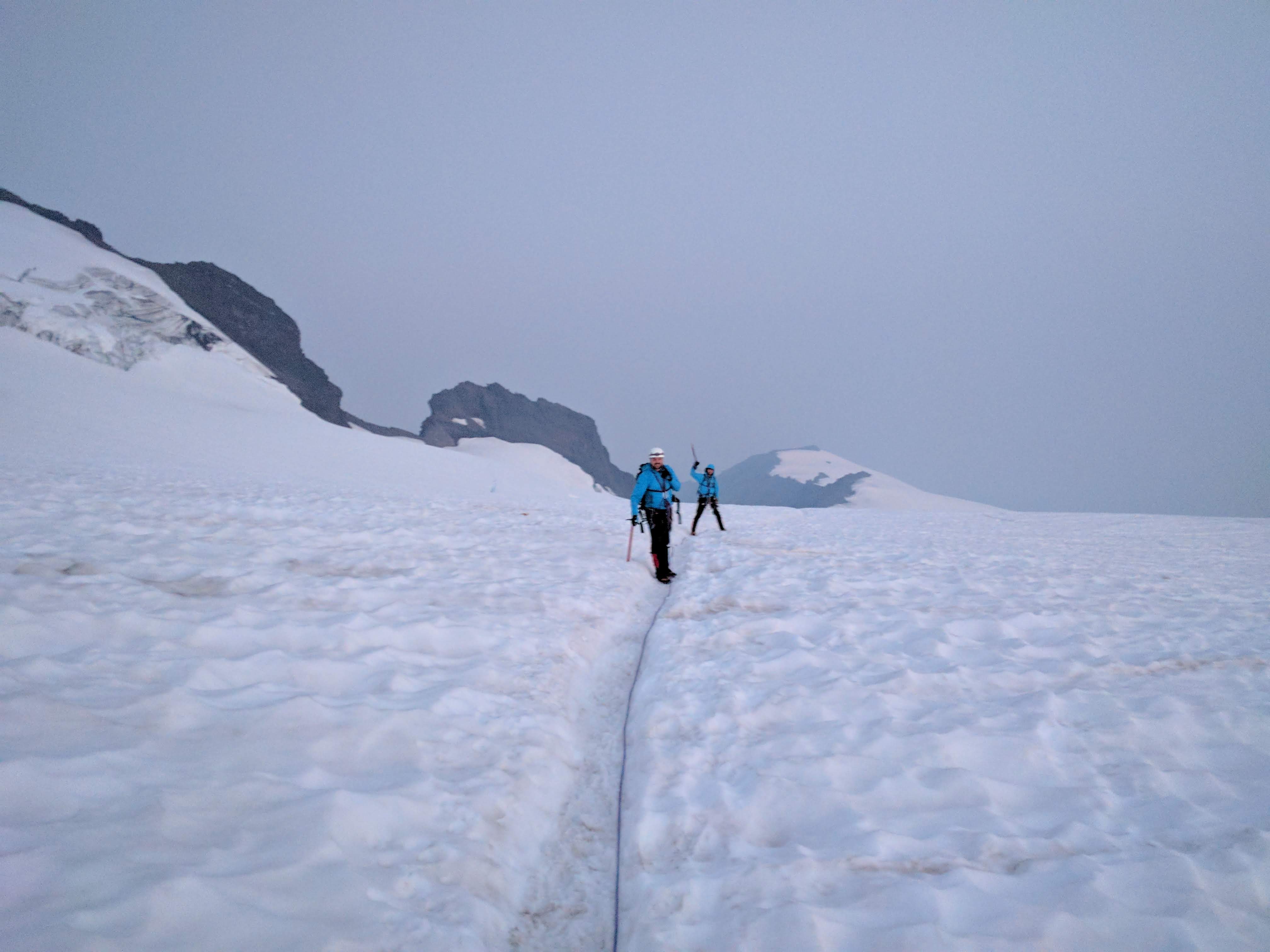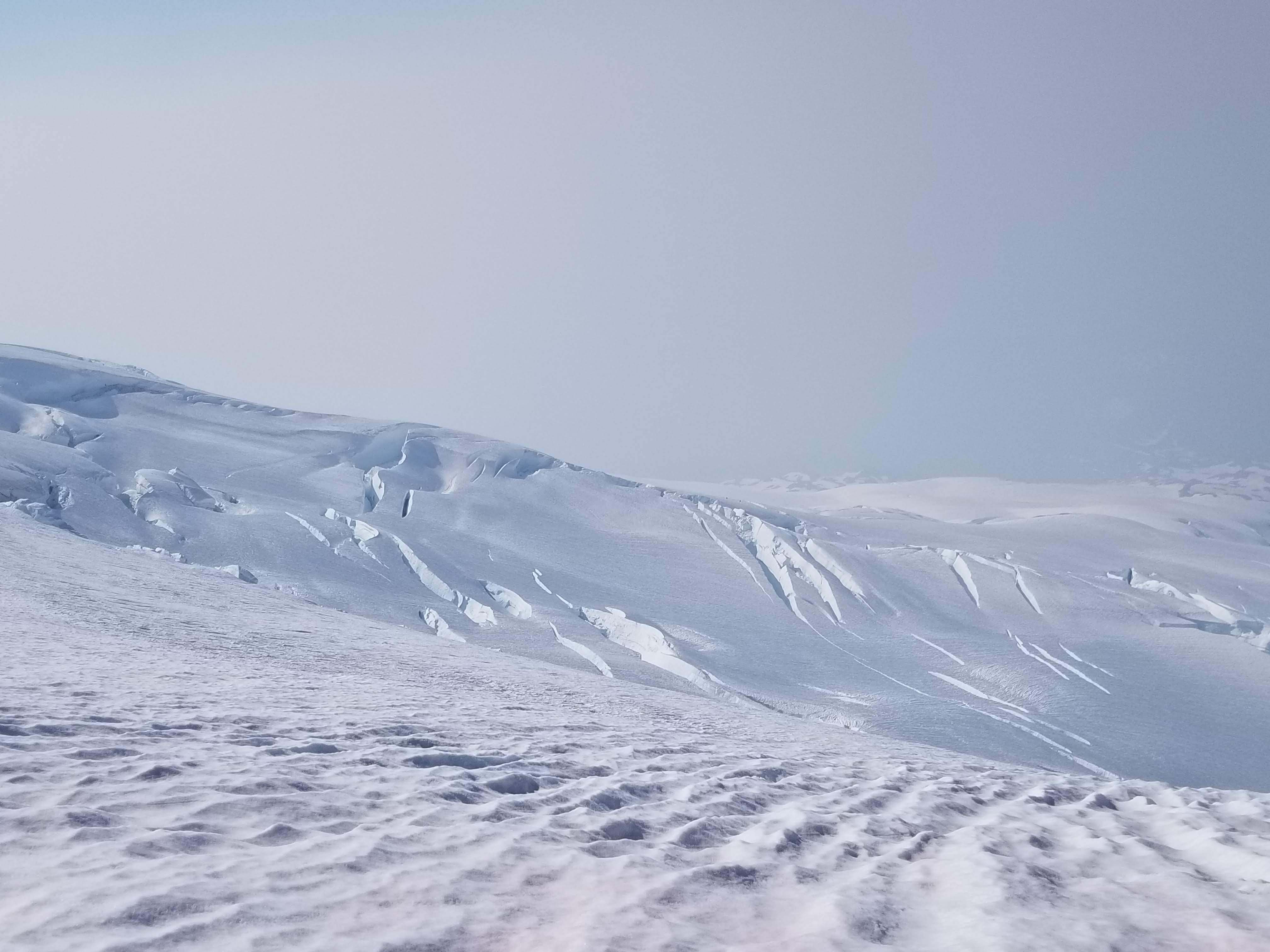 From there, we climbed. You have to do several big glacier traverses - where you go across the glacier with the cravasses - which is a bit more challenging than going perpendicular. The cravasses were deep too, probably simliar to Mt Rainier with 50ish feet deep.