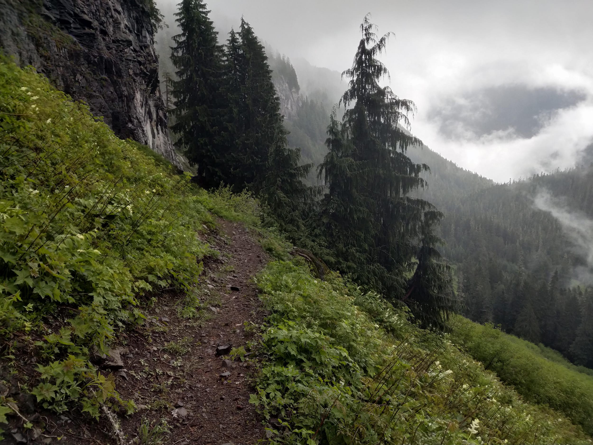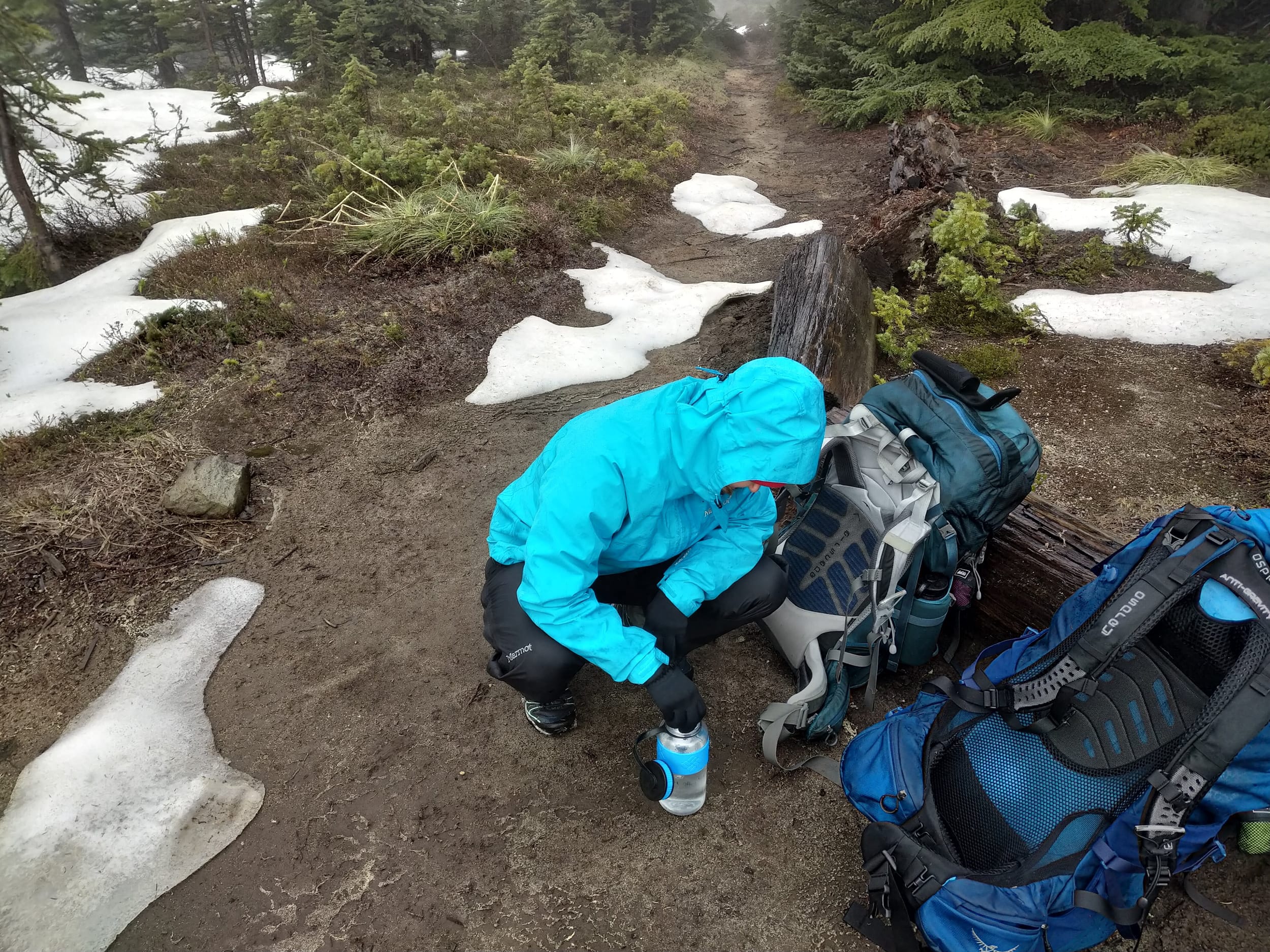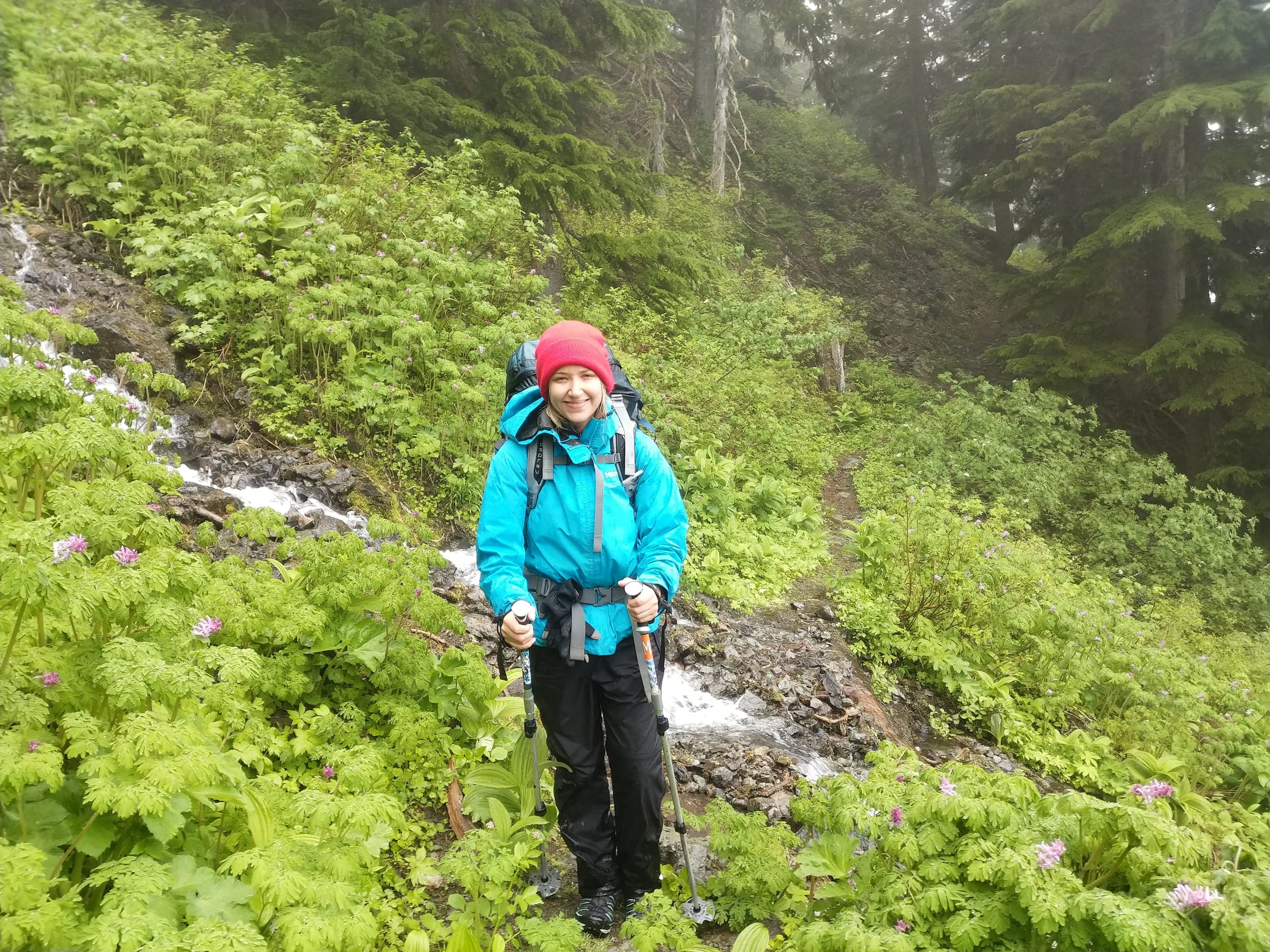 Leaving the N Puyallup river valley, we started our long uphill all the way to golden lakes. It started raining on this section and picked up so it was raining in earnest throughout the rest of the day. This was Angela’s low point of the trip, it rained for so long that it was basically impossible to stay dry. Combining the rain with a rough climb, I took alot less pictures on the uphill for the rest of the day. :)
