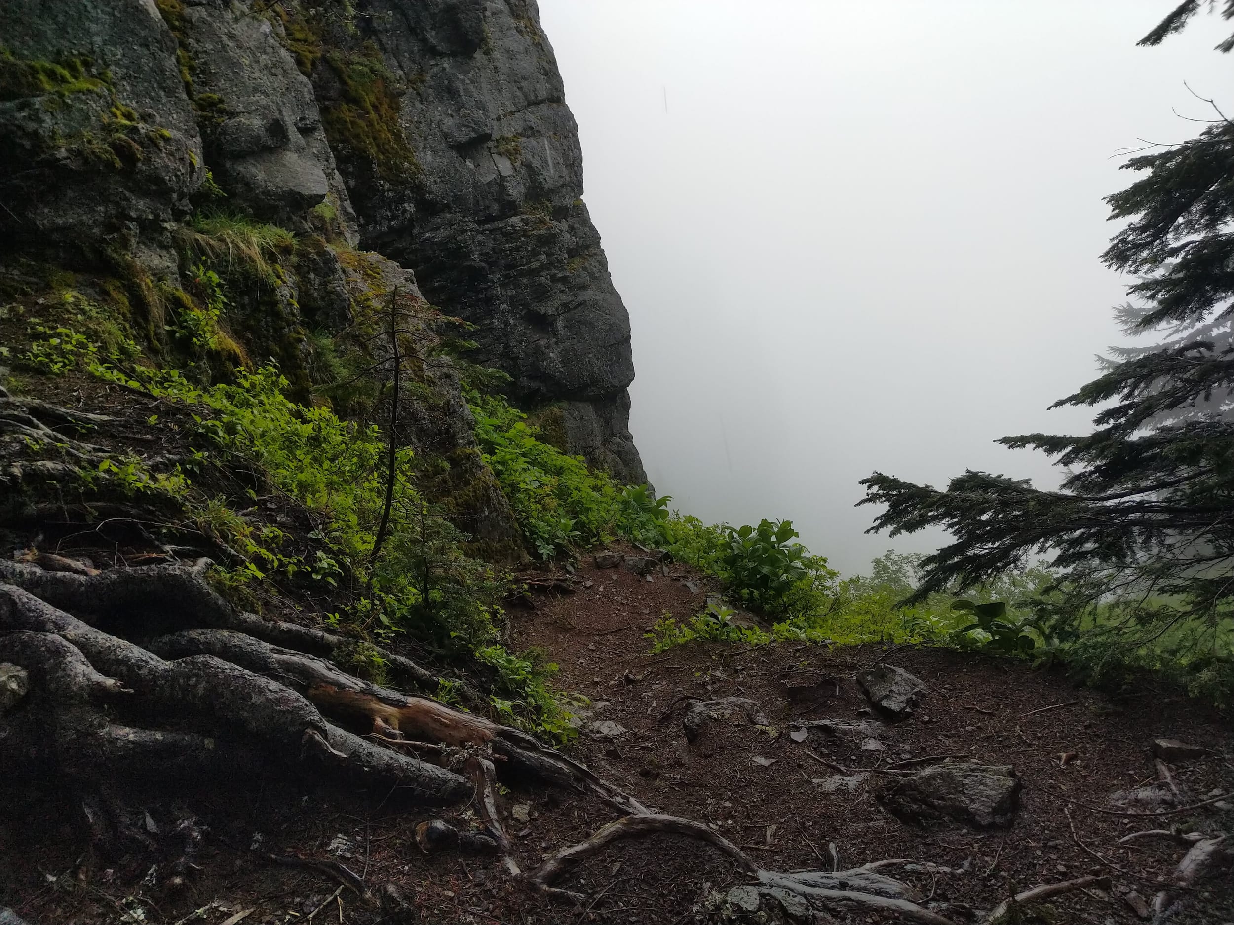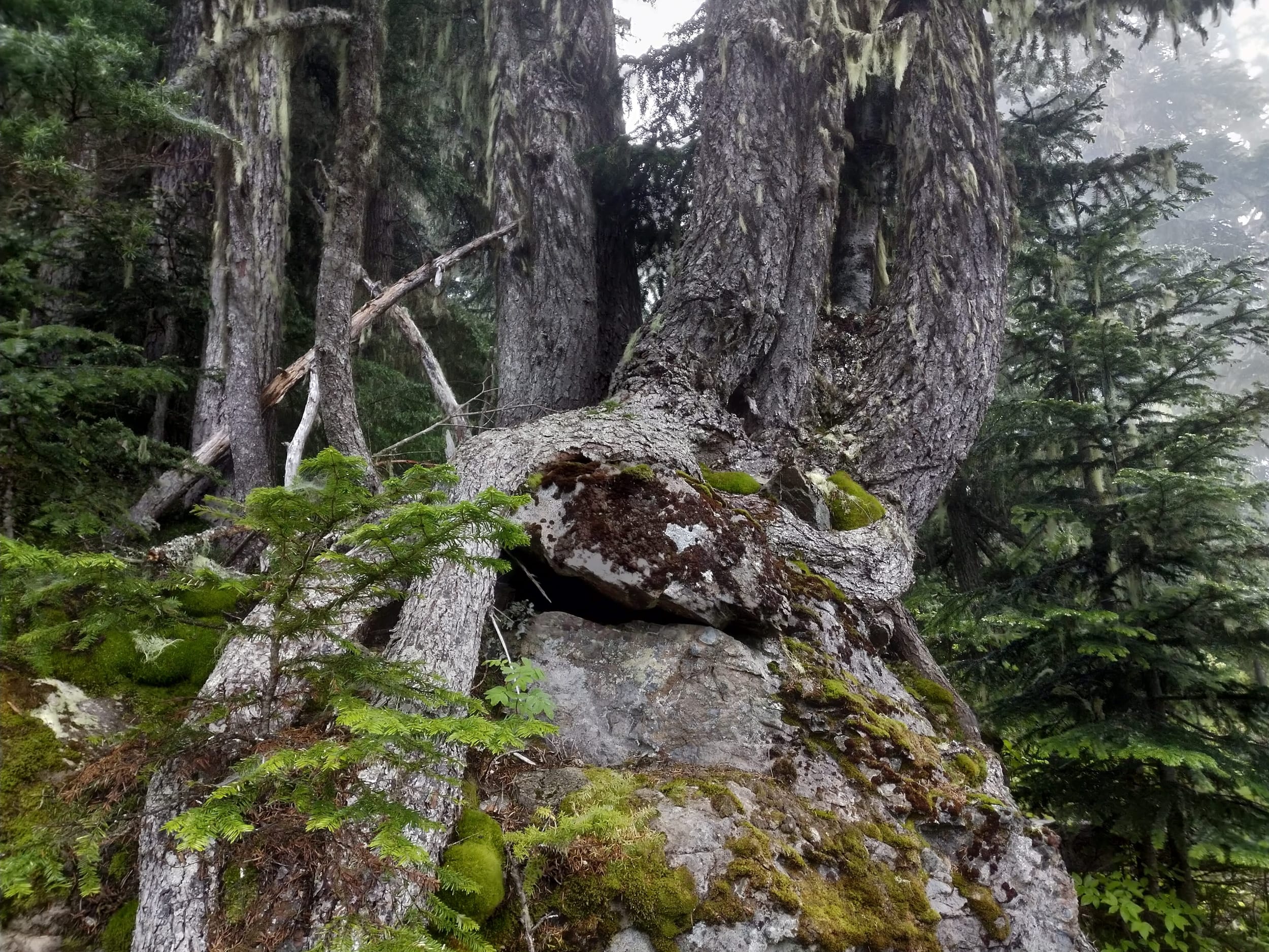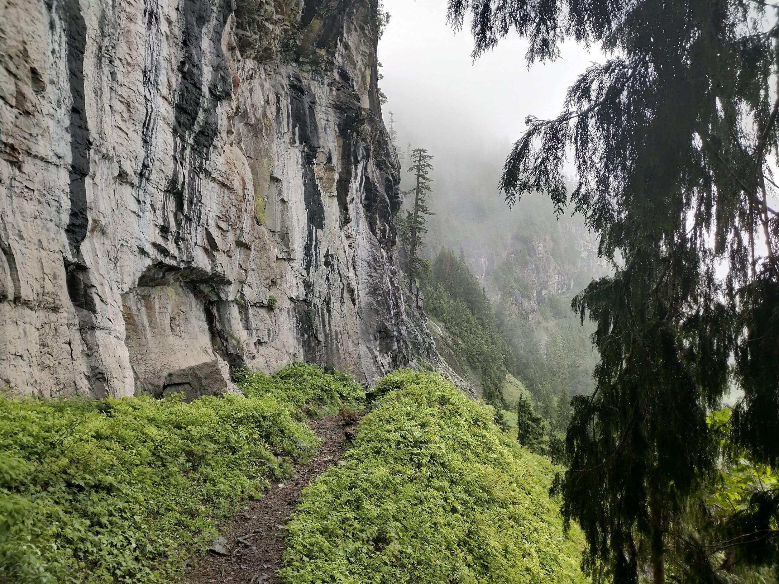 Day 8 saw the last of the 2 suspension bridges and ended at the most epic campsite of the trip at carbon glacier. We also had our Jurassic Park morning - with thick fog and rocky cliffs made you feel like you were in prehistoric times. I think I took the most pictures this day, so hopefully I can narrate them well after so many years. We had two options for how to proceed here - either Spray park or Ipsut pass. Spray park tends to have a lot of snow pack early in the season, and having seen a lot of snow this year we though Spray park might be challenging (or even impassible). Later in the season, Spray park is the place to go for wildflowers - so we made a mental note to return in a future year (we haven’t done it yet, but hopefuly soon!