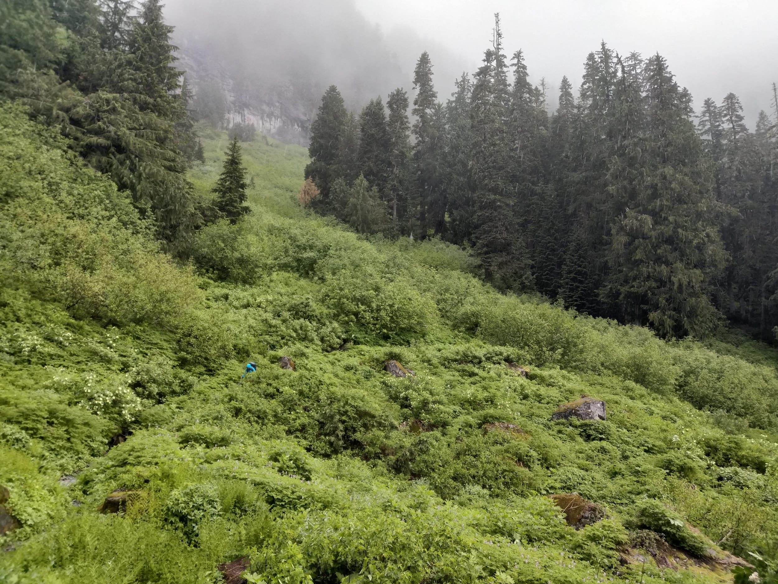 Continuing down into the valley, the terrain changed to sparse and then thick forest.