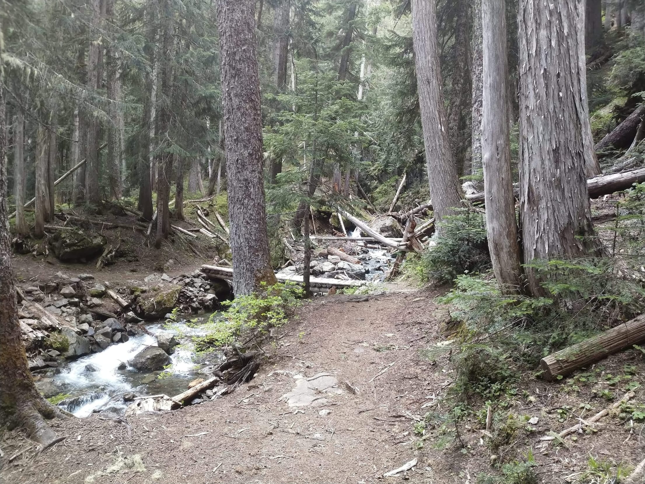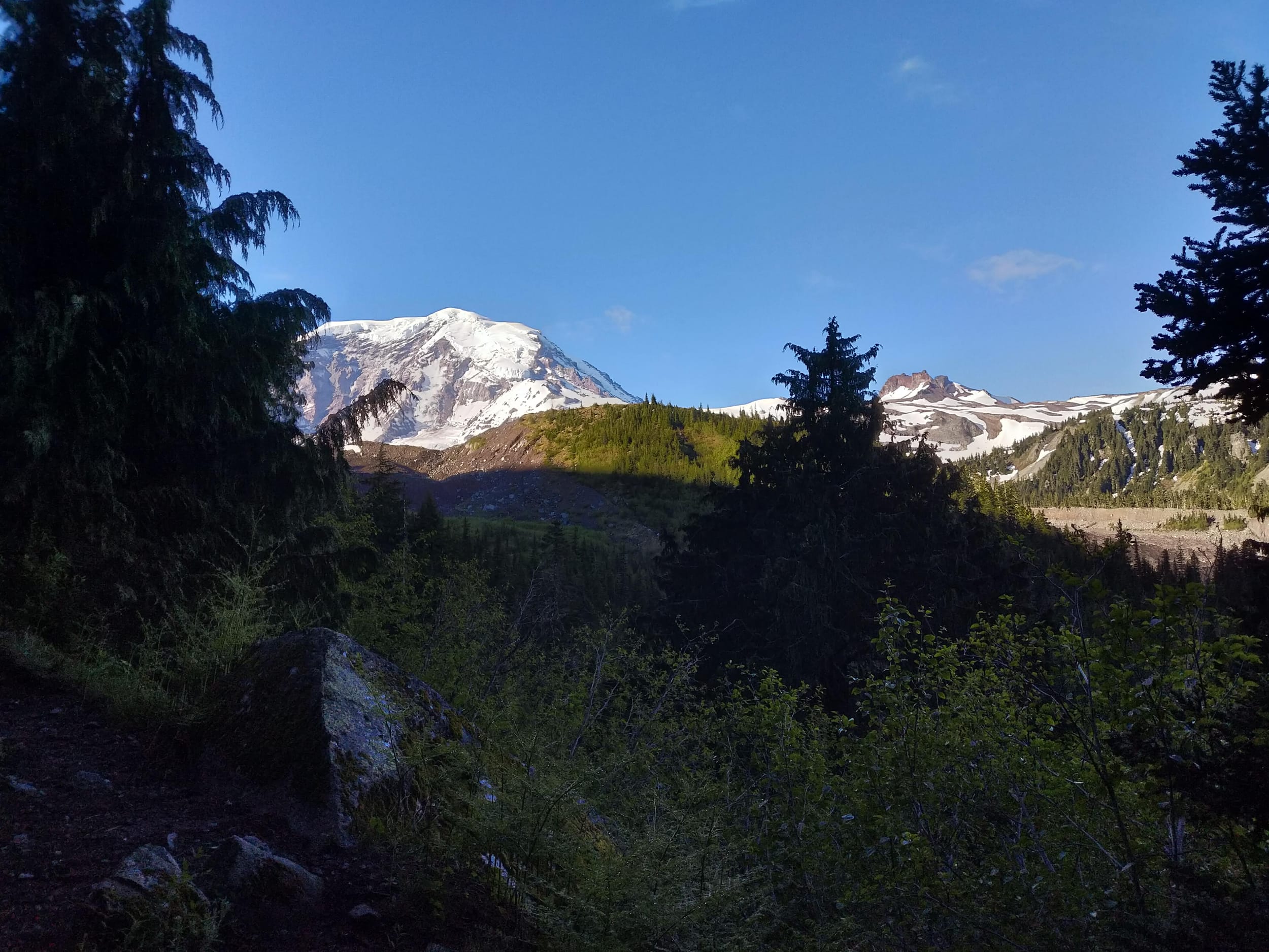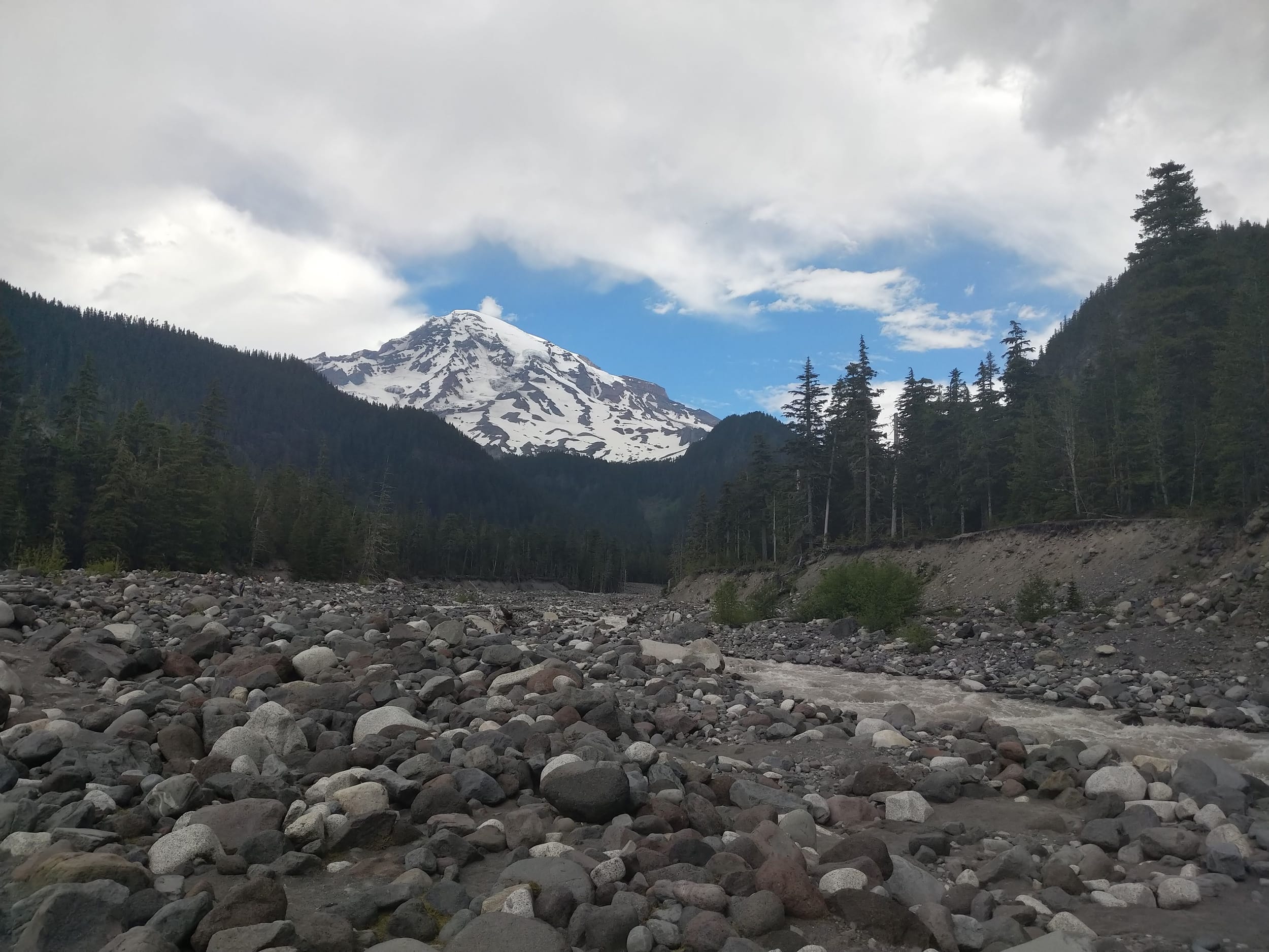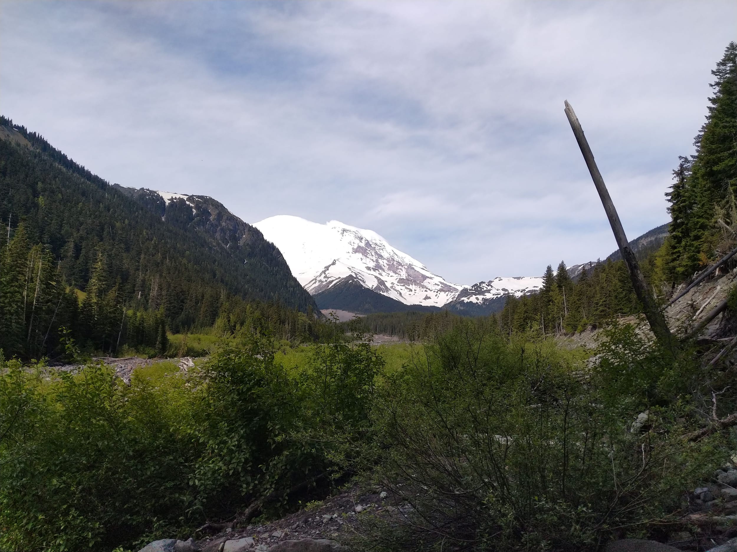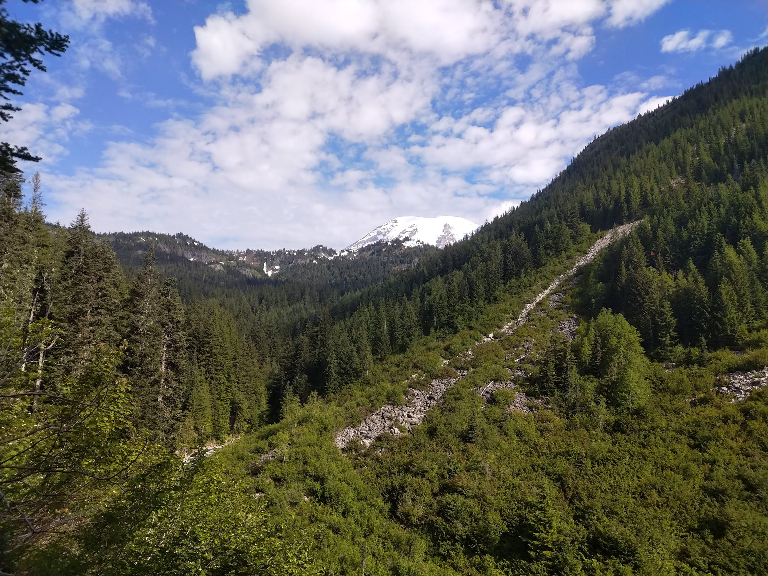 Day 3 ended up being a lighter day - both in terms of distance and elevation - and paralleled highway 12 at the southern end of the park. This was the biggest detour of the trip, there was a big washout on the trail and rangers told us they were sure if it was passable or not. It was, but it involved a lot of scrabbling up and down big bolder fields. We walked past reflection lake and headed into camp at paradise river (scratch that - cougar rock).
