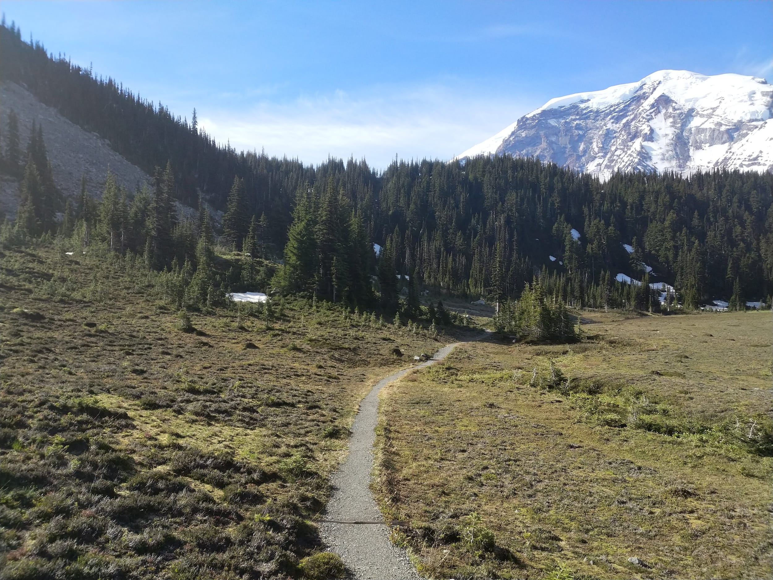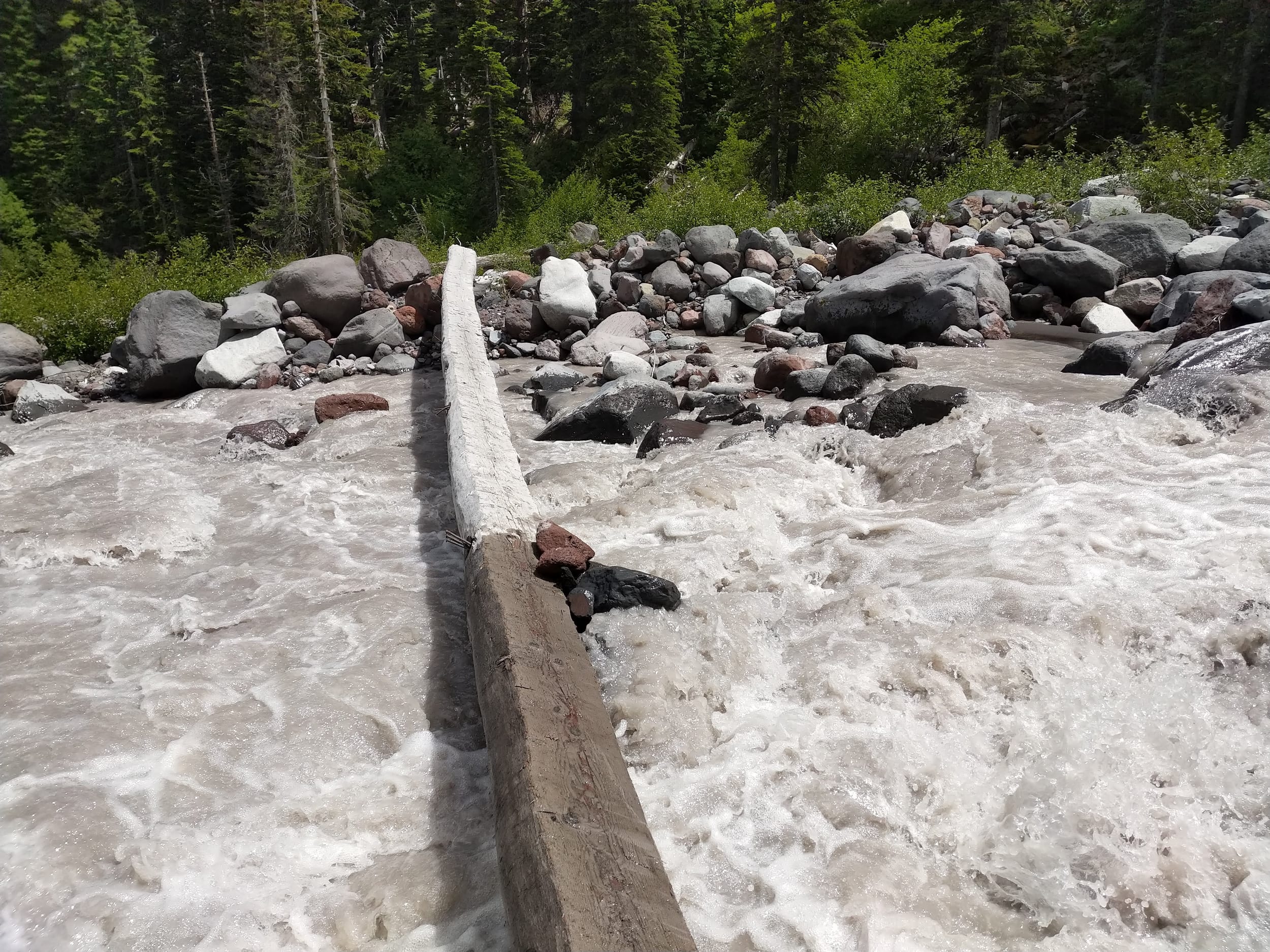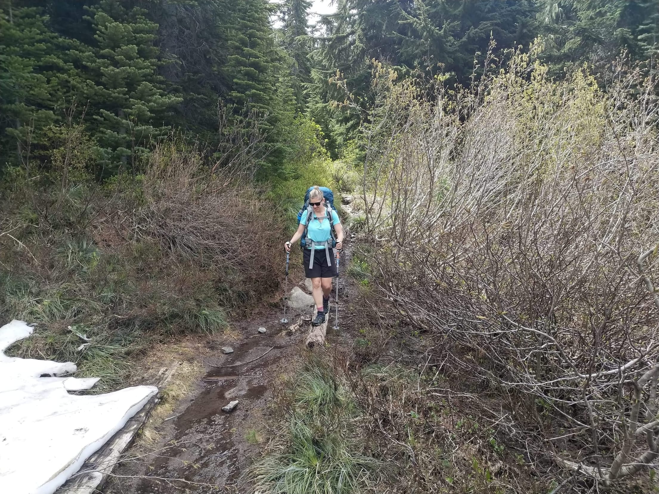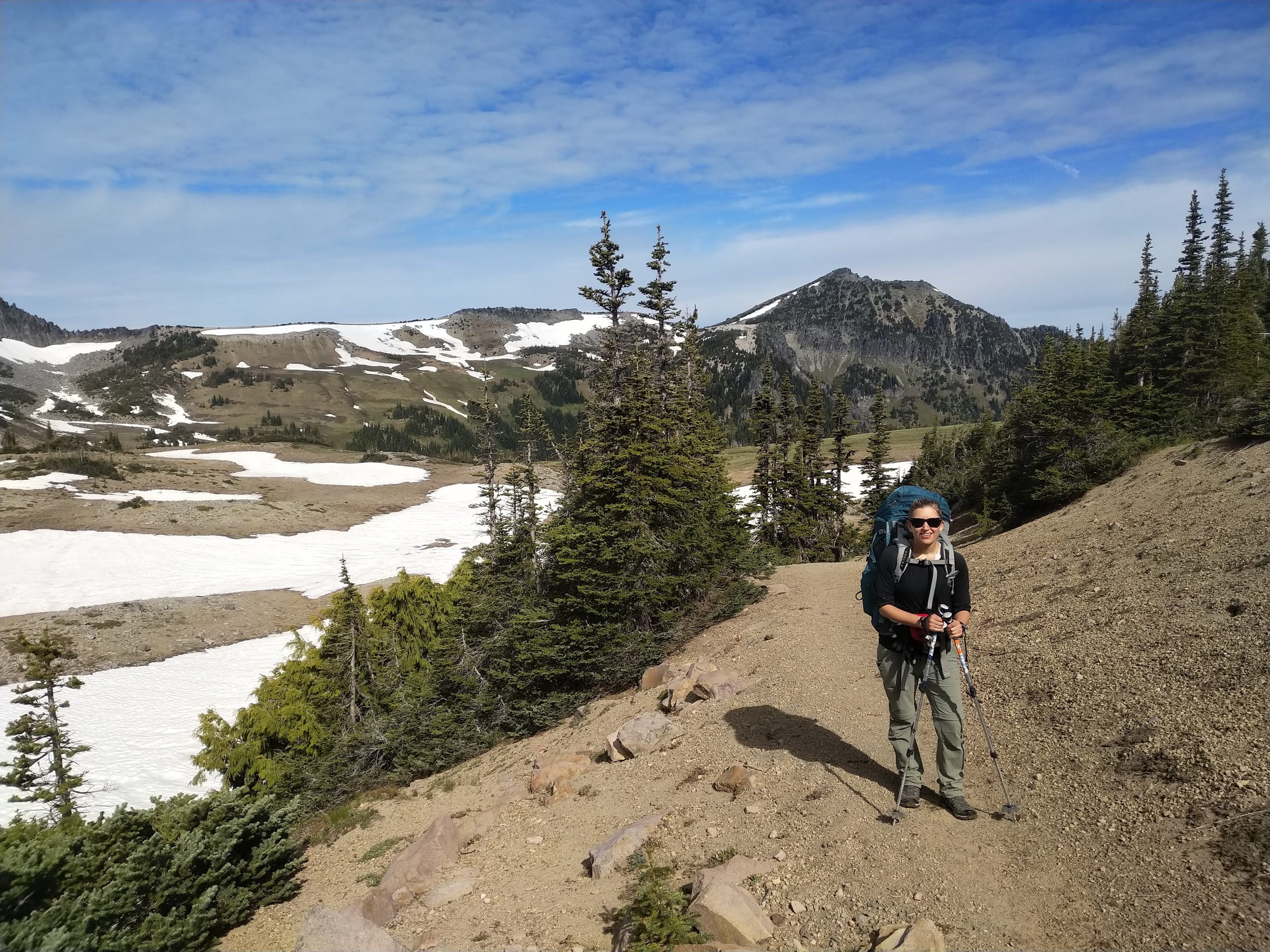 Day 3 ended up being a lighter day - both in terms of distance and elevation - and paralleled highway 12 at the southern end of the park. This was the biggest detour of the trip, there was a big washout on the trail and rangers told us they were sure if it was passable or not. It was, but it involved a lot of scrabbling up and down big bolder fields. We walked past reflection lake and headed into camp at paradise river (scratch that - cougar rock).