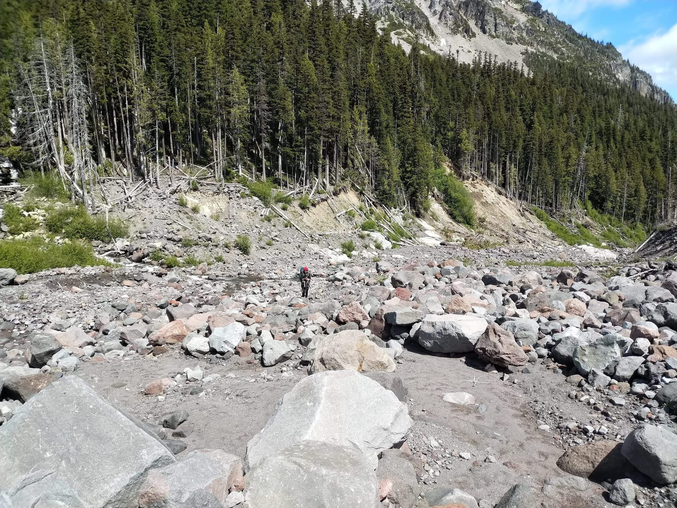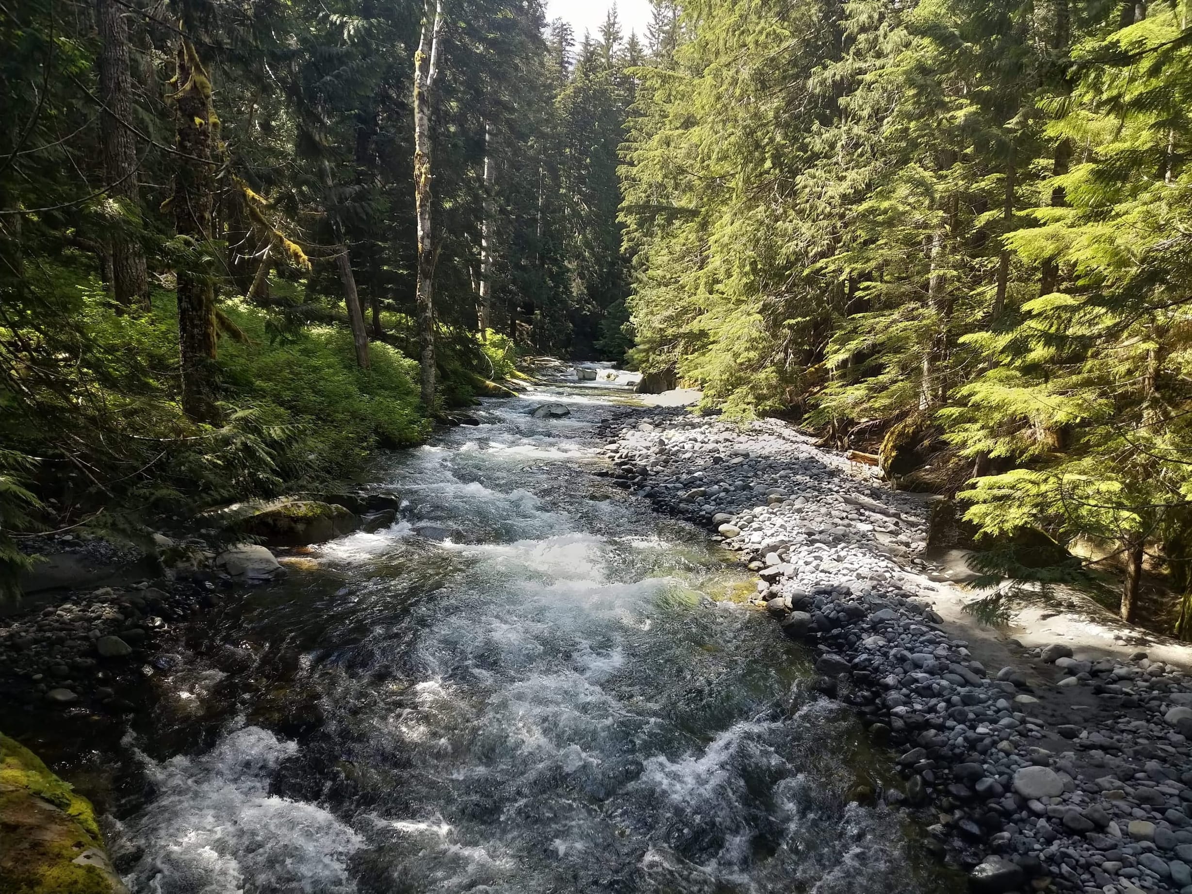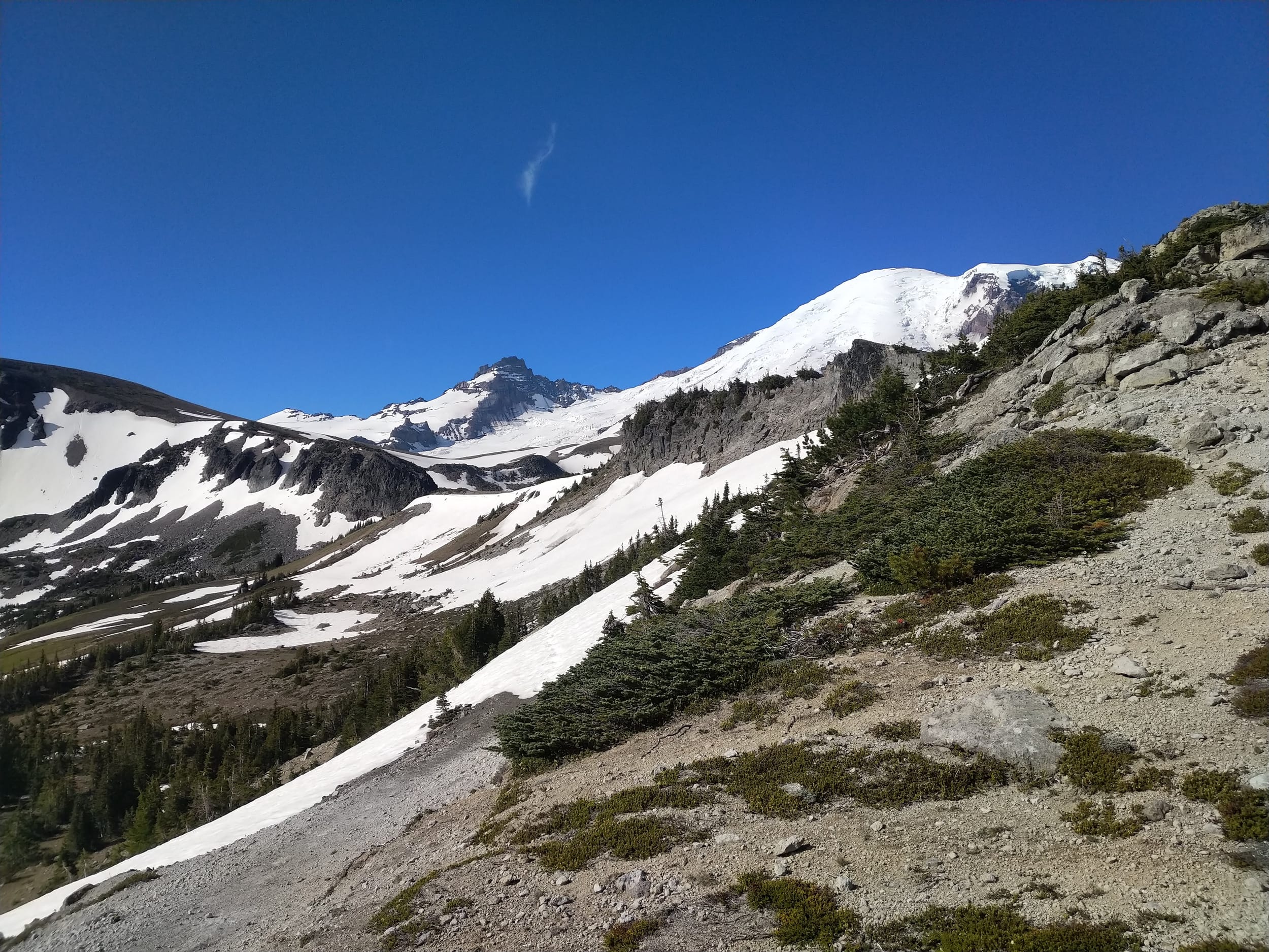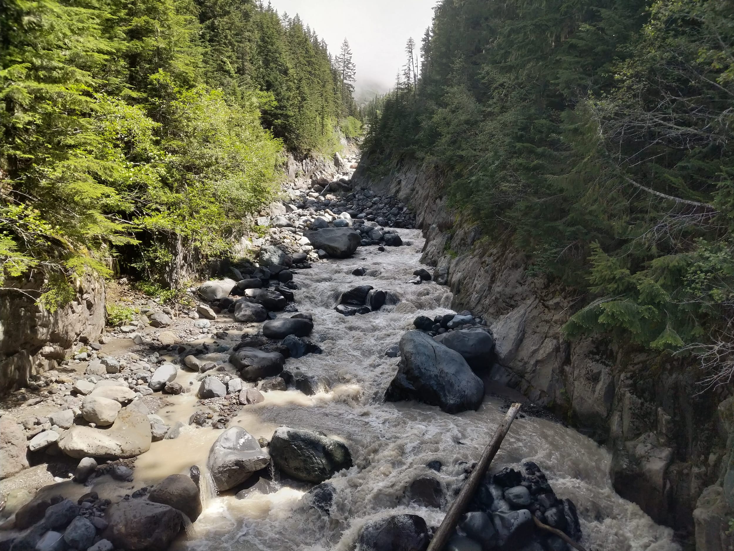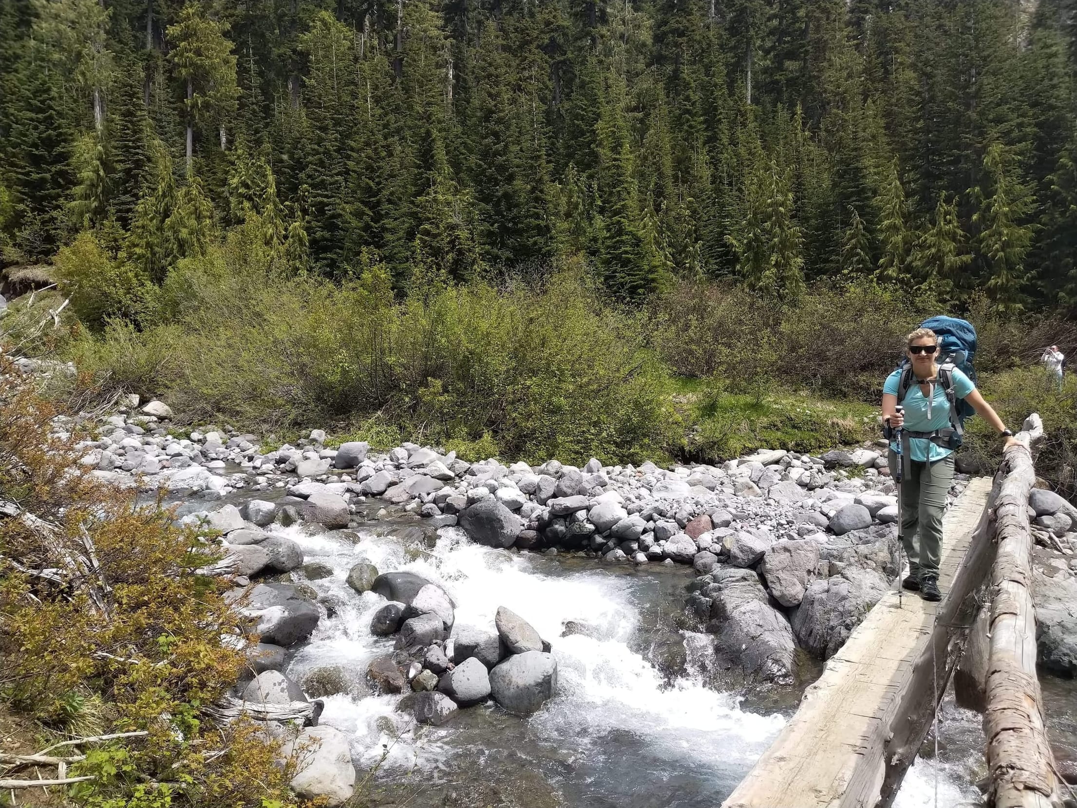 Day 3 ended up being a lighter day - both in terms of distance and elevation - and paralleled highway 12 at the southern end of the park. This was the biggest detour of the trip, there was a big washout on the trail and rangers told us they were sure if it was passable or not. It was, but it involved a lot of scrabbling up and down big bolder fields. We walked past reflection lake and headed into camp at paradise river (scratch that - cougar rock).
