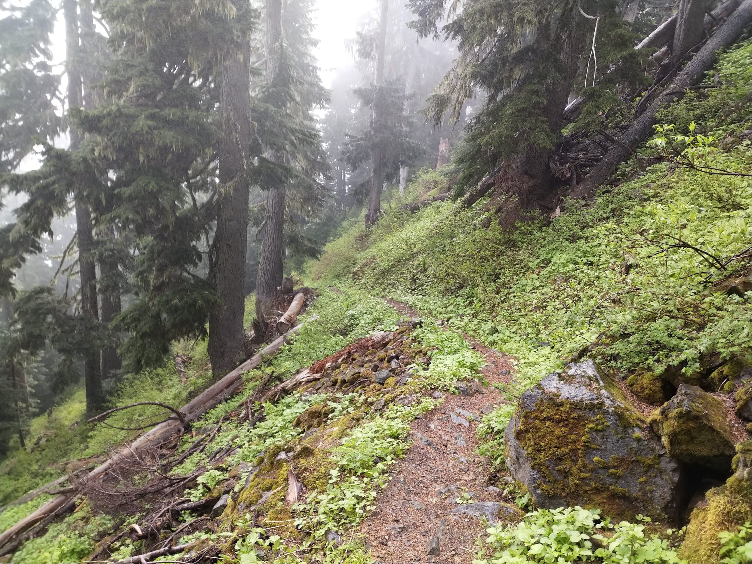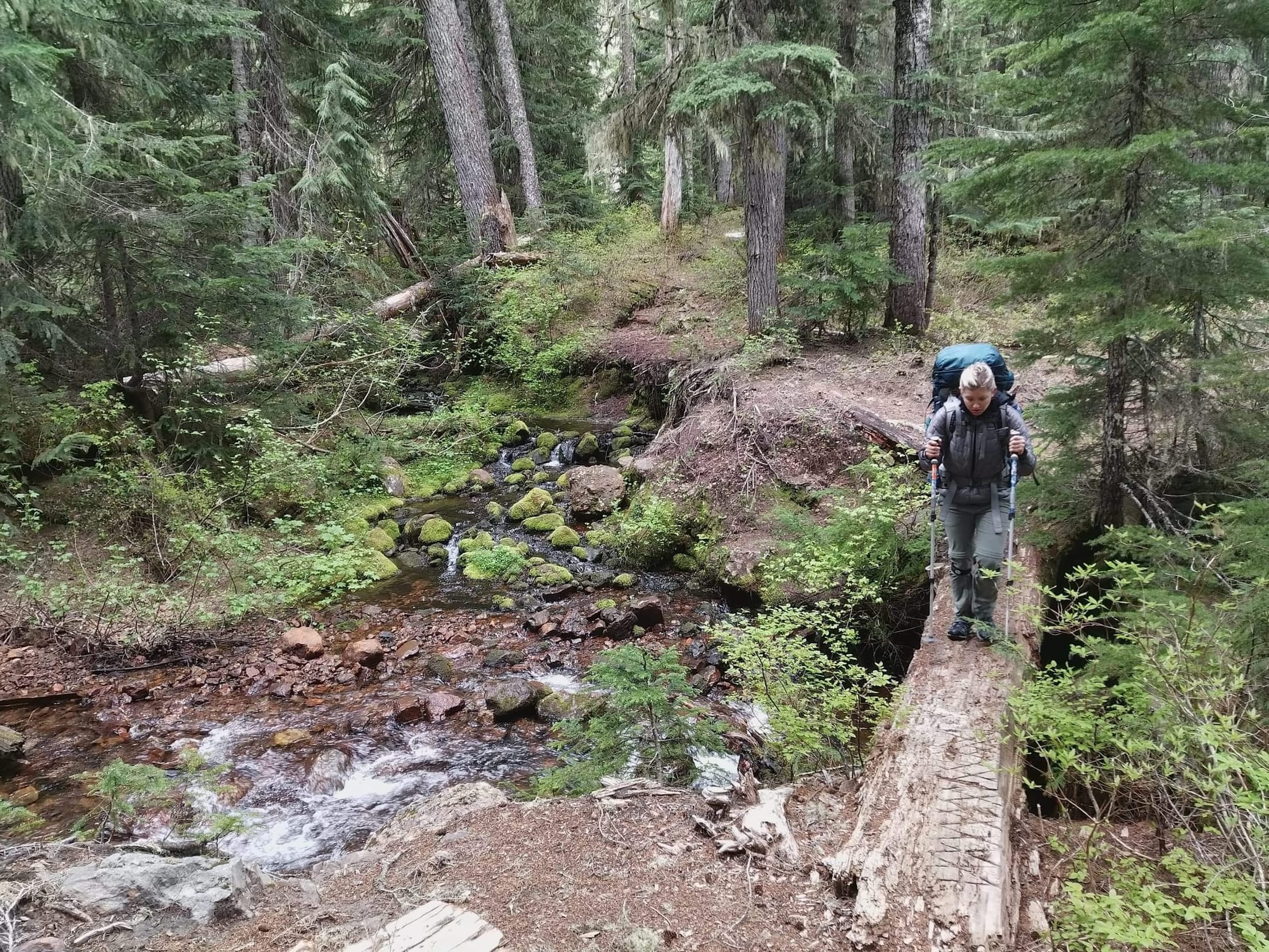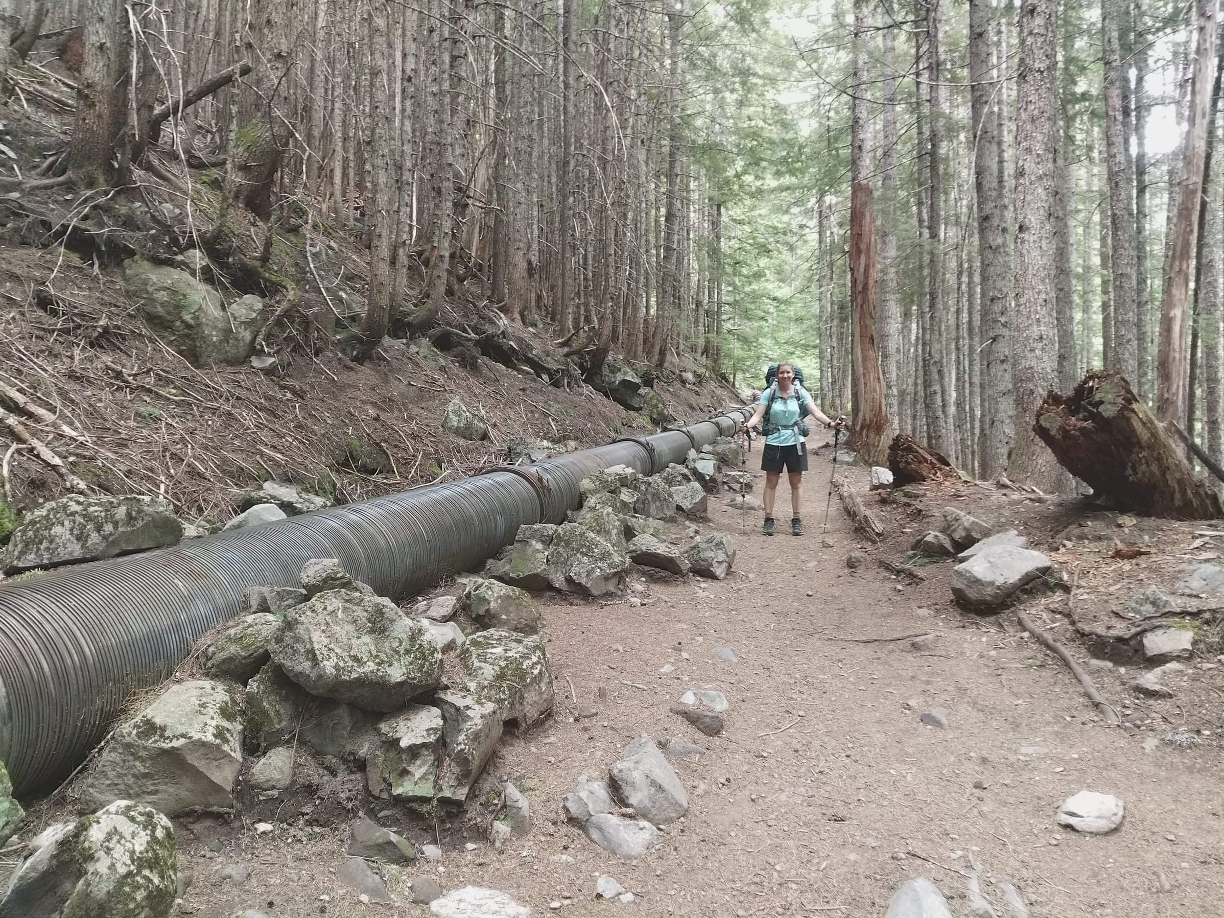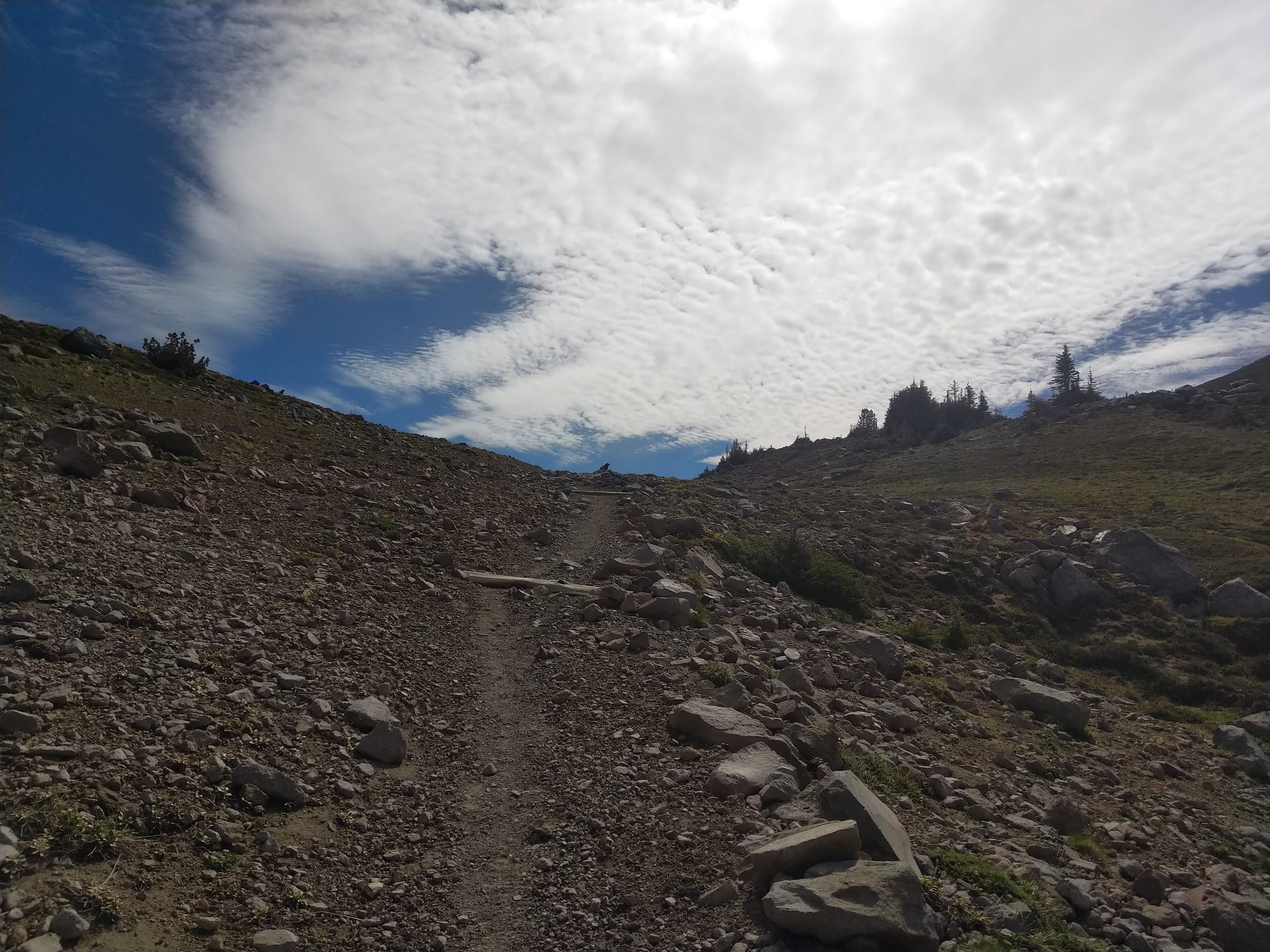 Day 3 ended up being a lighter day - both in terms of distance and elevation - and paralleled highway 12 at the southern end of the park. This was the biggest detour of the trip, there was a big washout on the trail and rangers told us they were sure if it was passable or not. It was, but it involved a lot of scrabbling up and down big bolder fields. We walked past reflection lake and headed into camp at paradise river (scratch that - cougar rock).