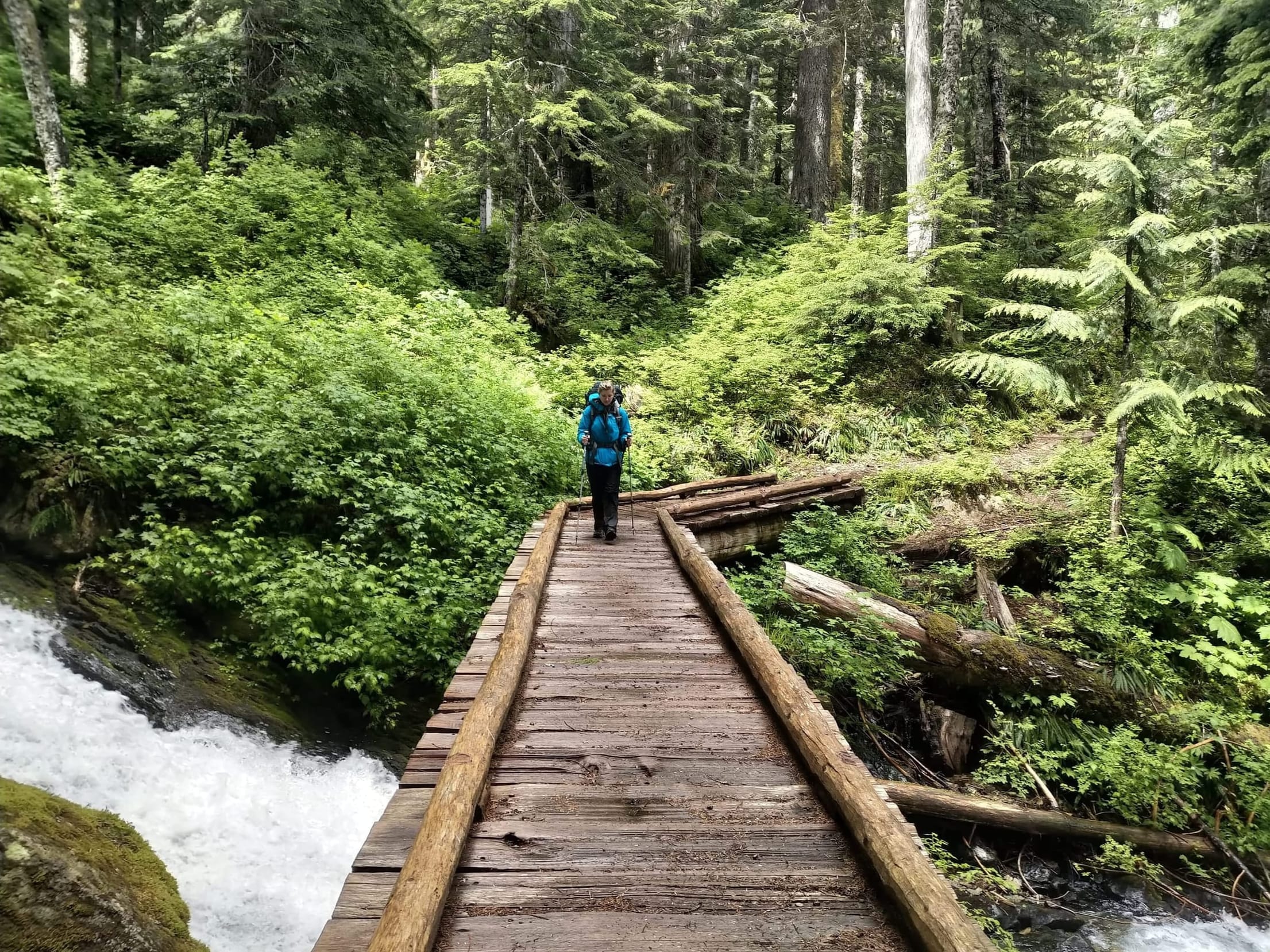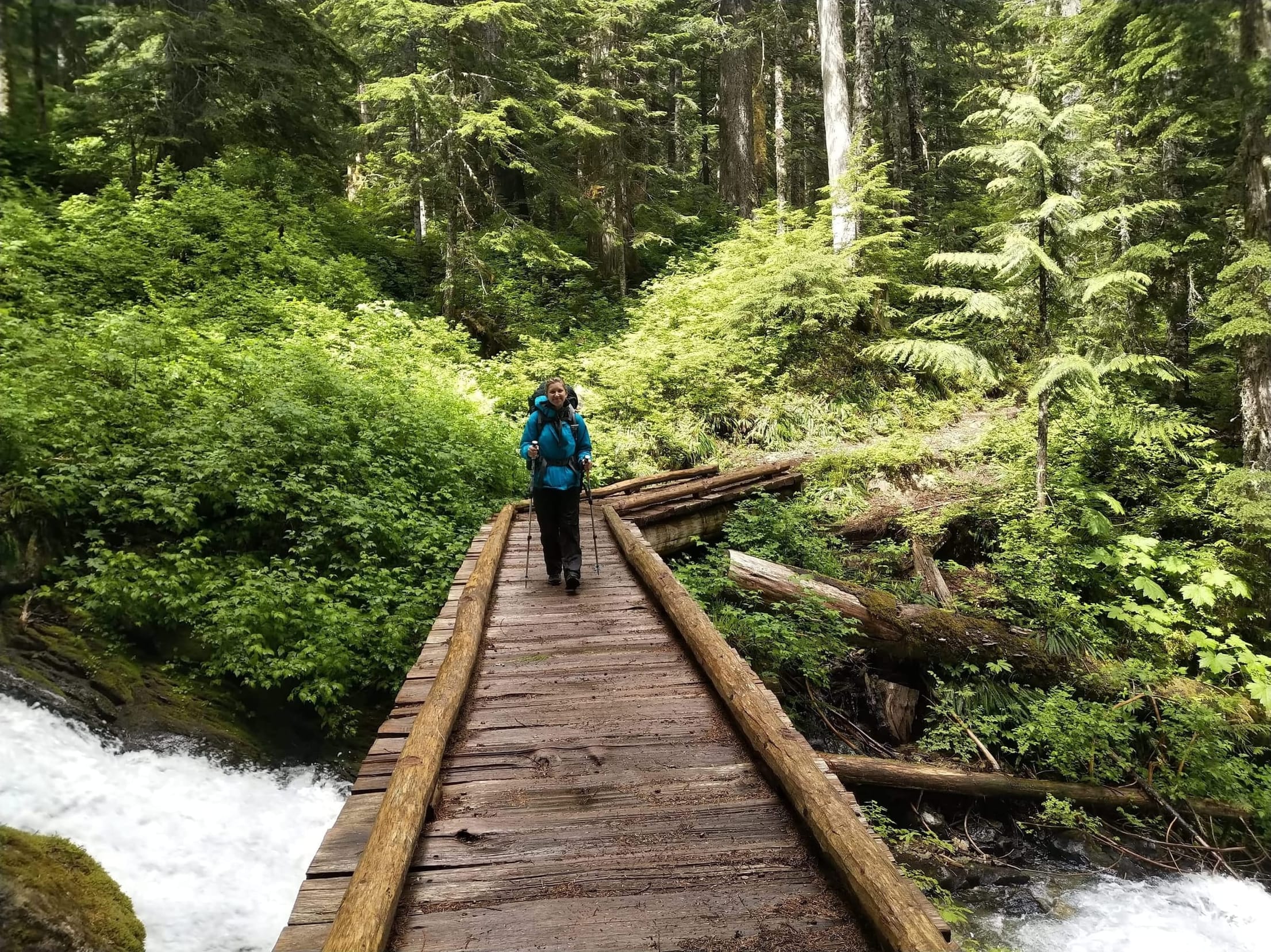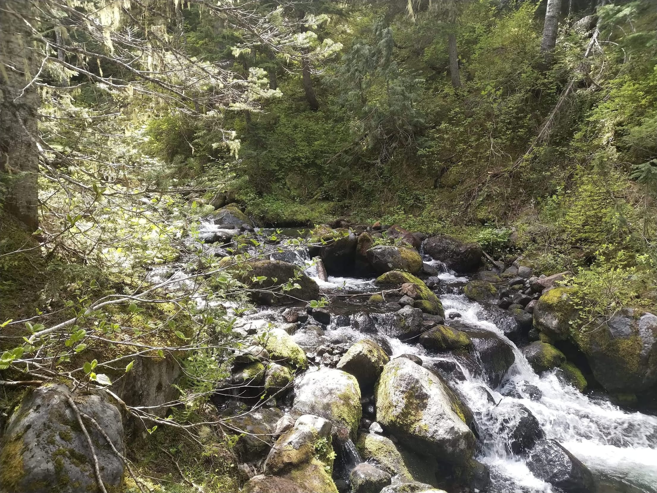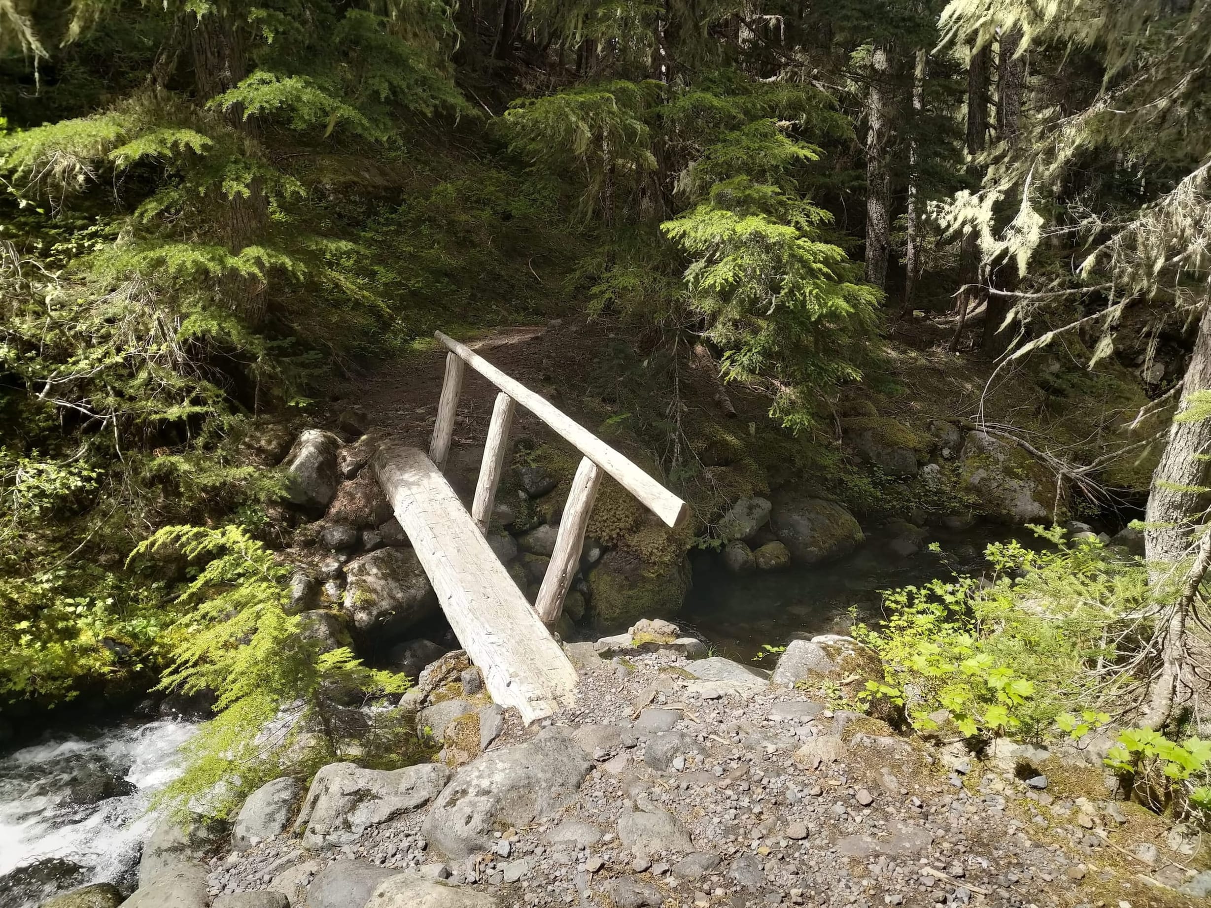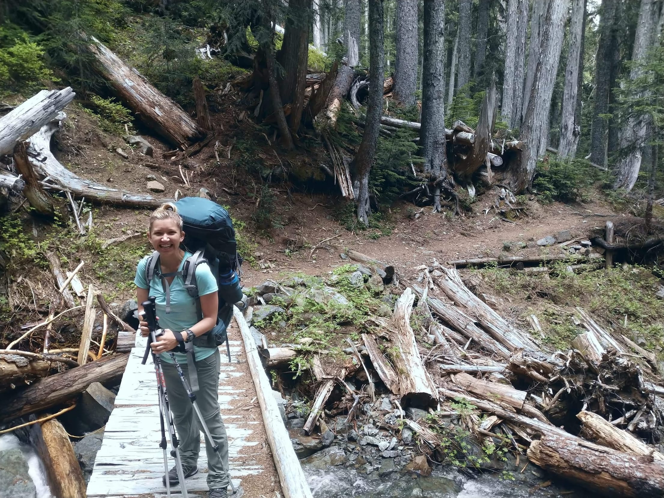 Day 3 ended up being a lighter day - both in terms of distance and elevation - and paralleled highway 12 at the southern end of the park. This was the biggest detour of the trip, there was a big washout on the trail and rangers told us they were sure if it was passable or not. It was, but it involved a lot of scrabbling up and down big bolder fields. We walked past reflection lake and headed into camp at paradise river (scratch that - cougar rock).