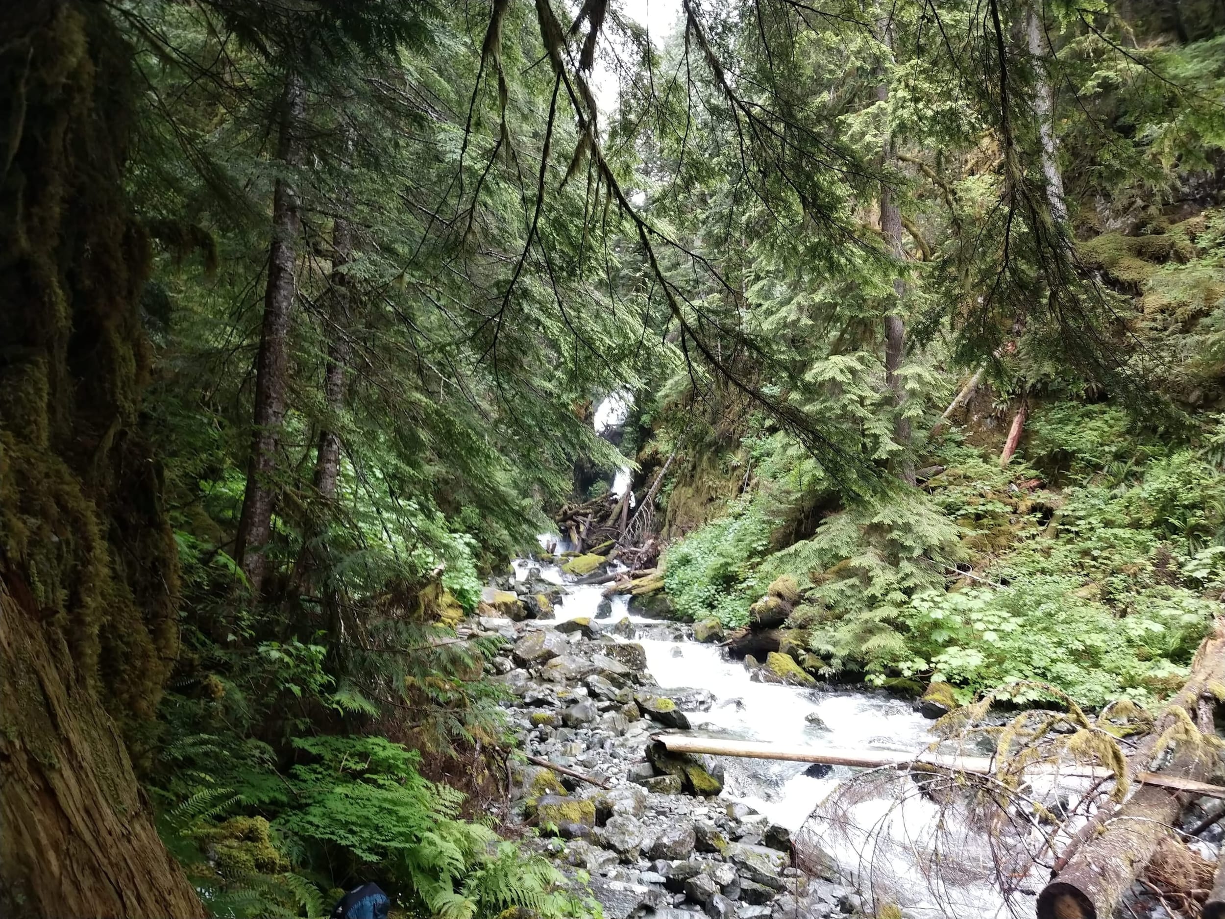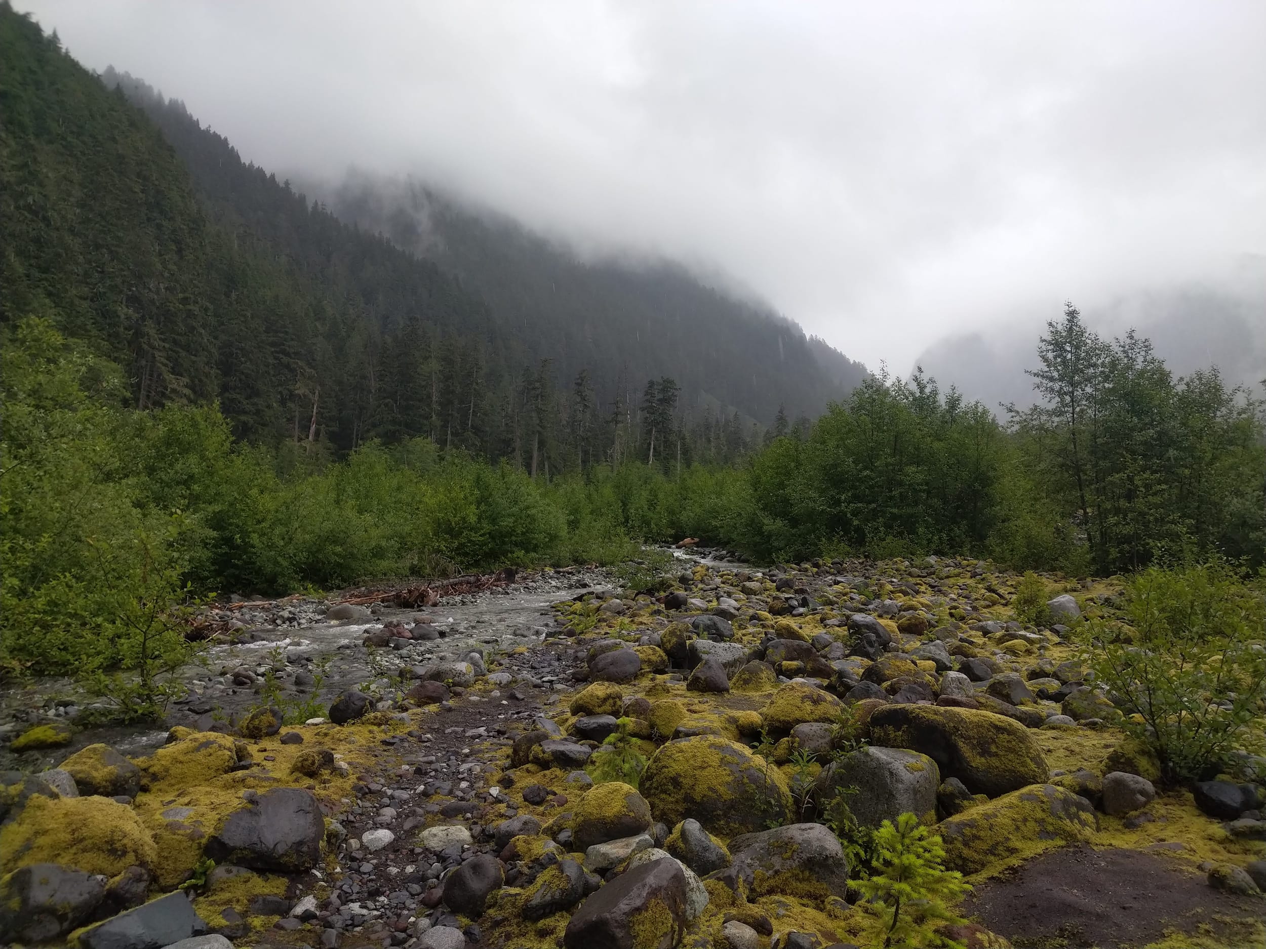 As we descended out of the clouds of jurassic park, we arrived back in dense forest and headed down to the base of carbon river. On the way, I saw a Helium balloon that had deflated and descended into a creek bed. I climbed down to go get it, but it was the first time I had seen a “free” balloon that had fallen back to earth in such a beautiful place.