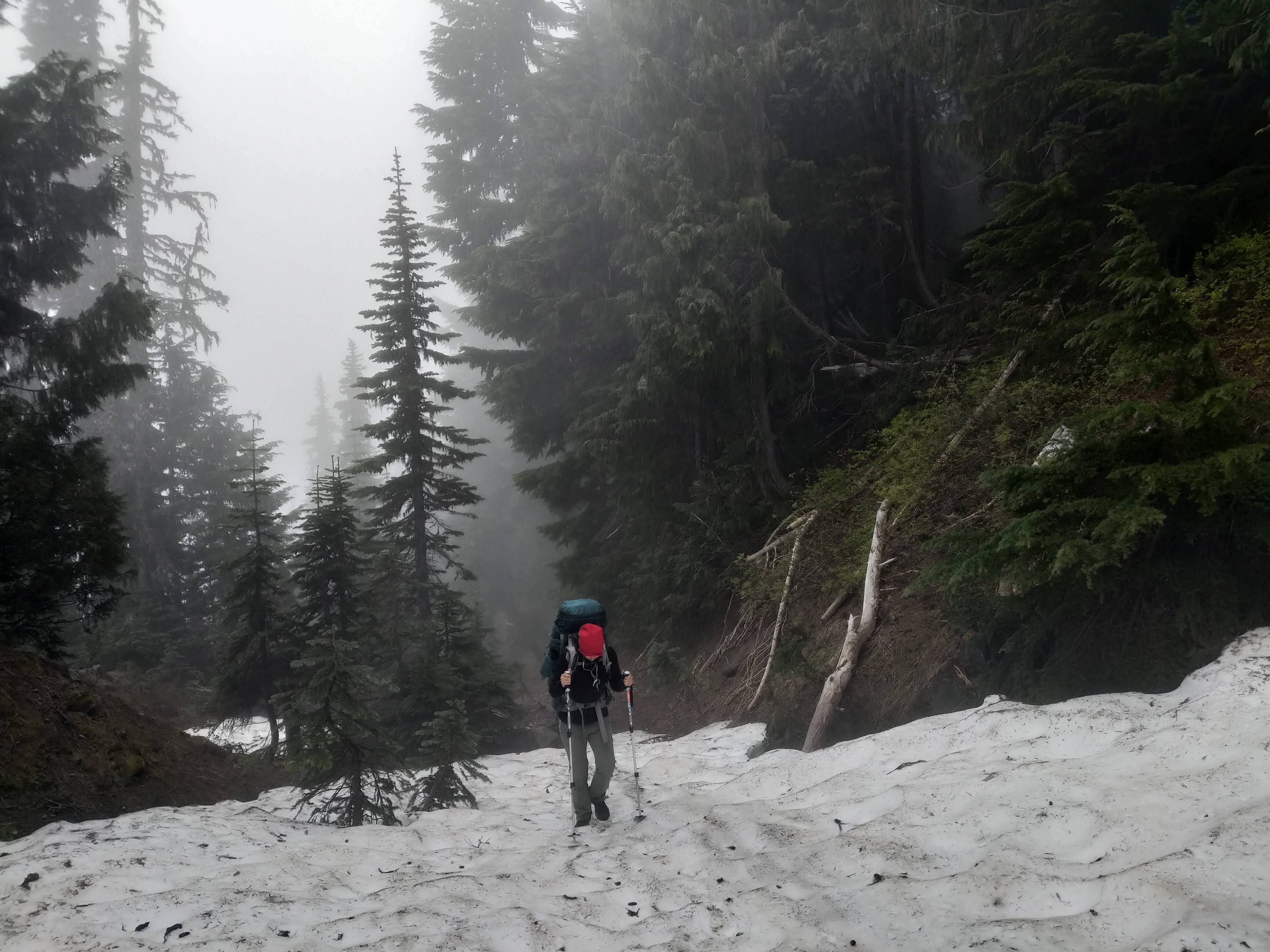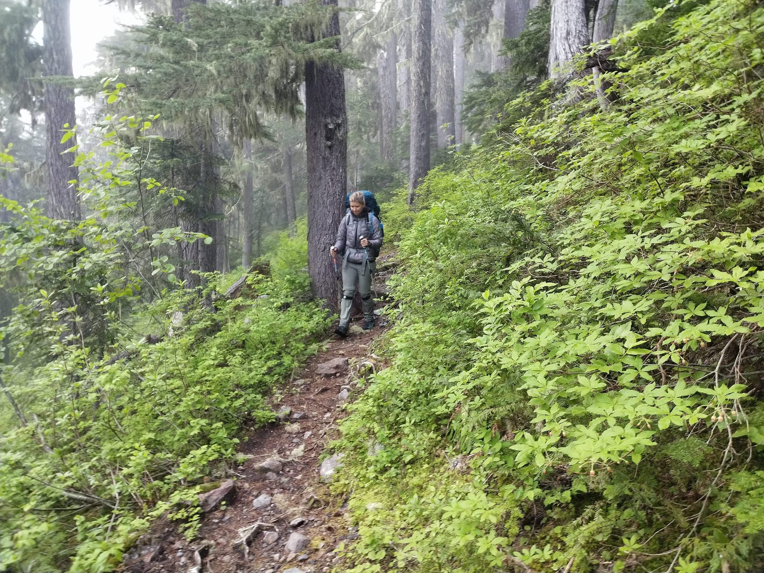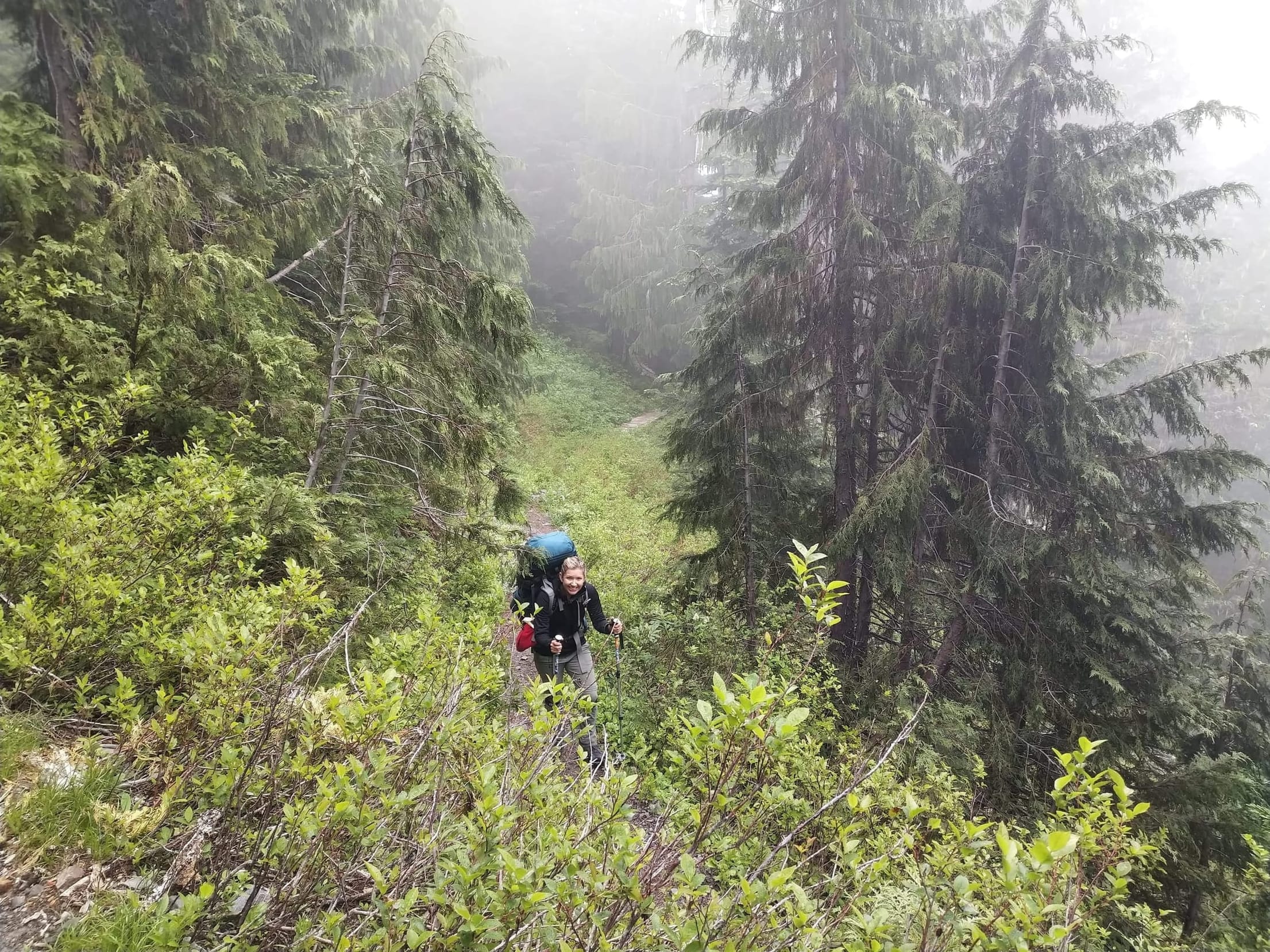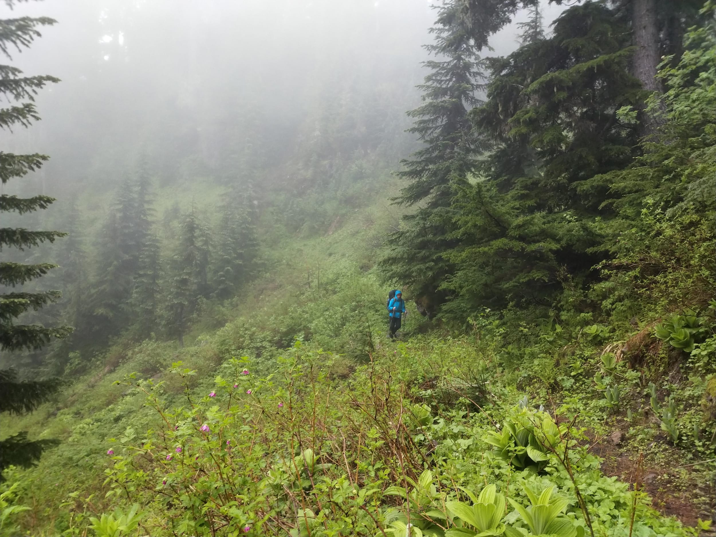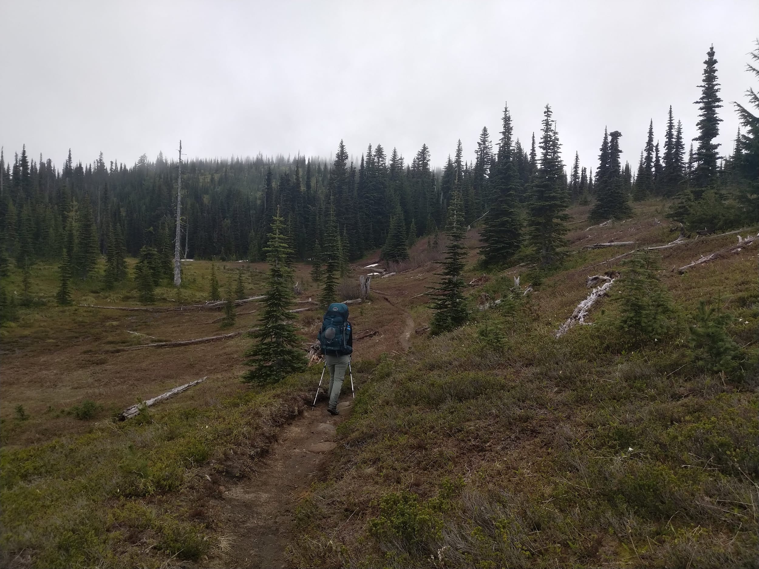 Day 7 started off in the rain - having rained all night as well. I have found that once you are hiking the rain isn’t too bad, but packing up in the rain - putting on clothes, packing up a soggy tent, is the worst… It requires a lot of fortitude to get up out of a cozy tent/sleeping bag and go through all the morning motions of getting on the road. The first half of the day included some beautiful meadows and thick forest before