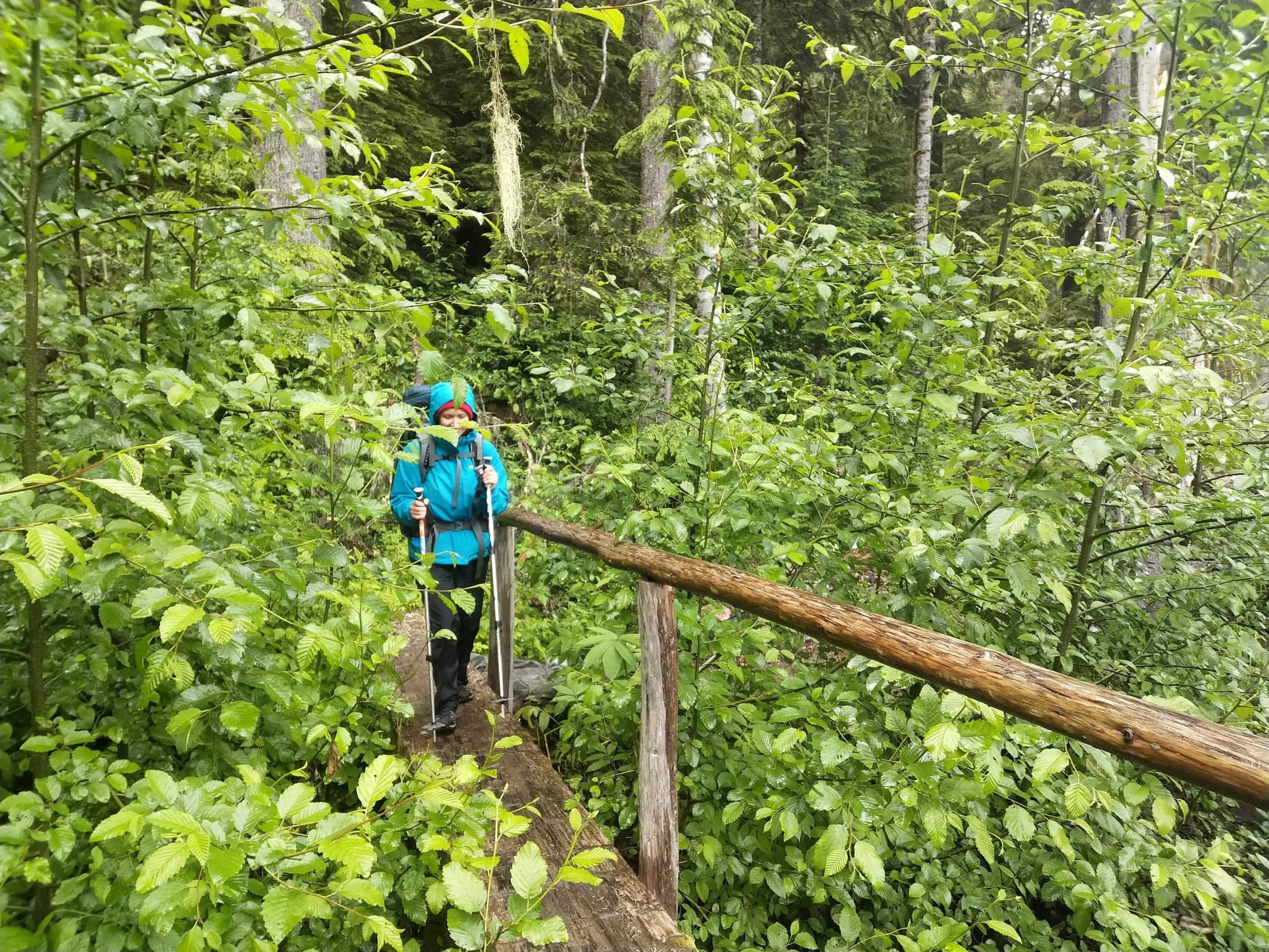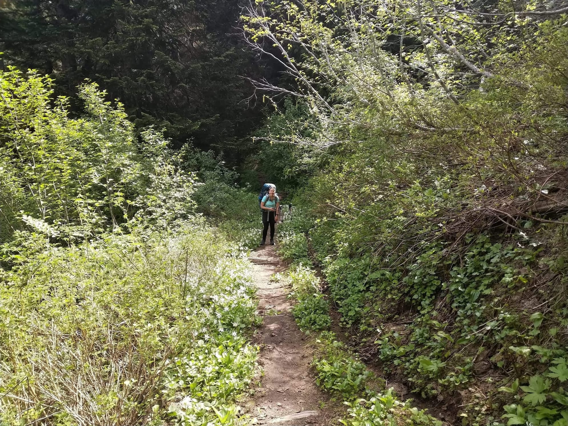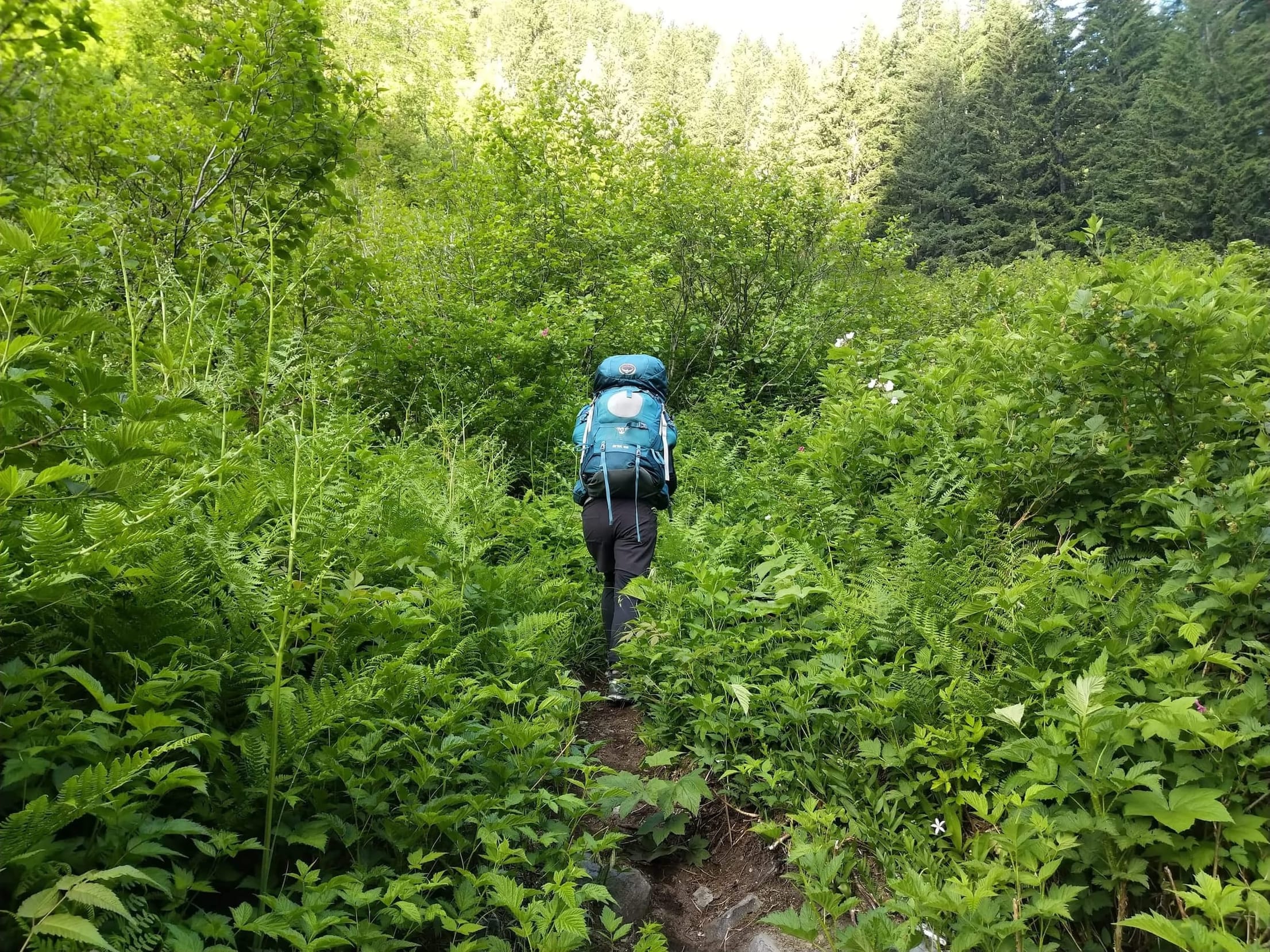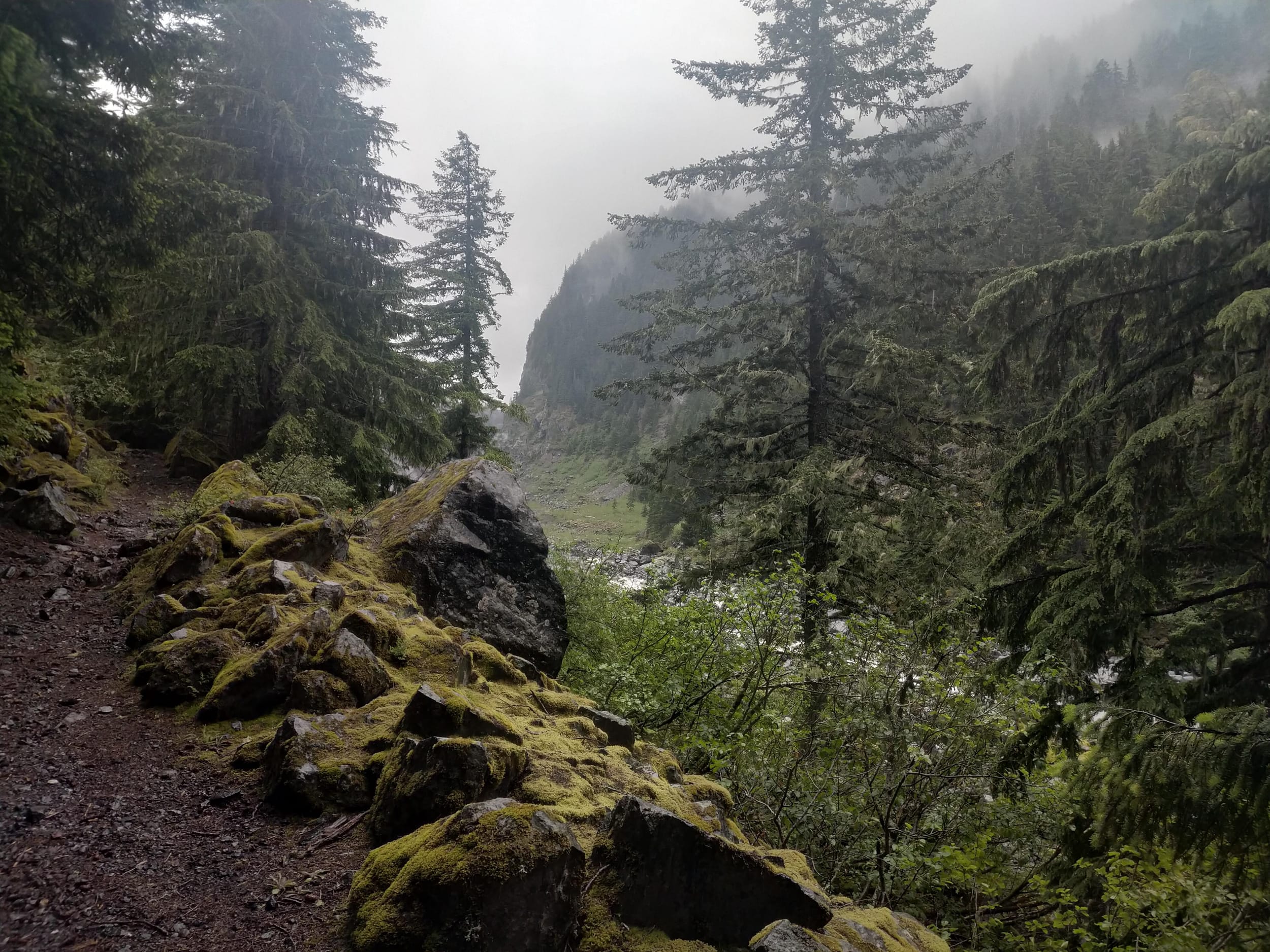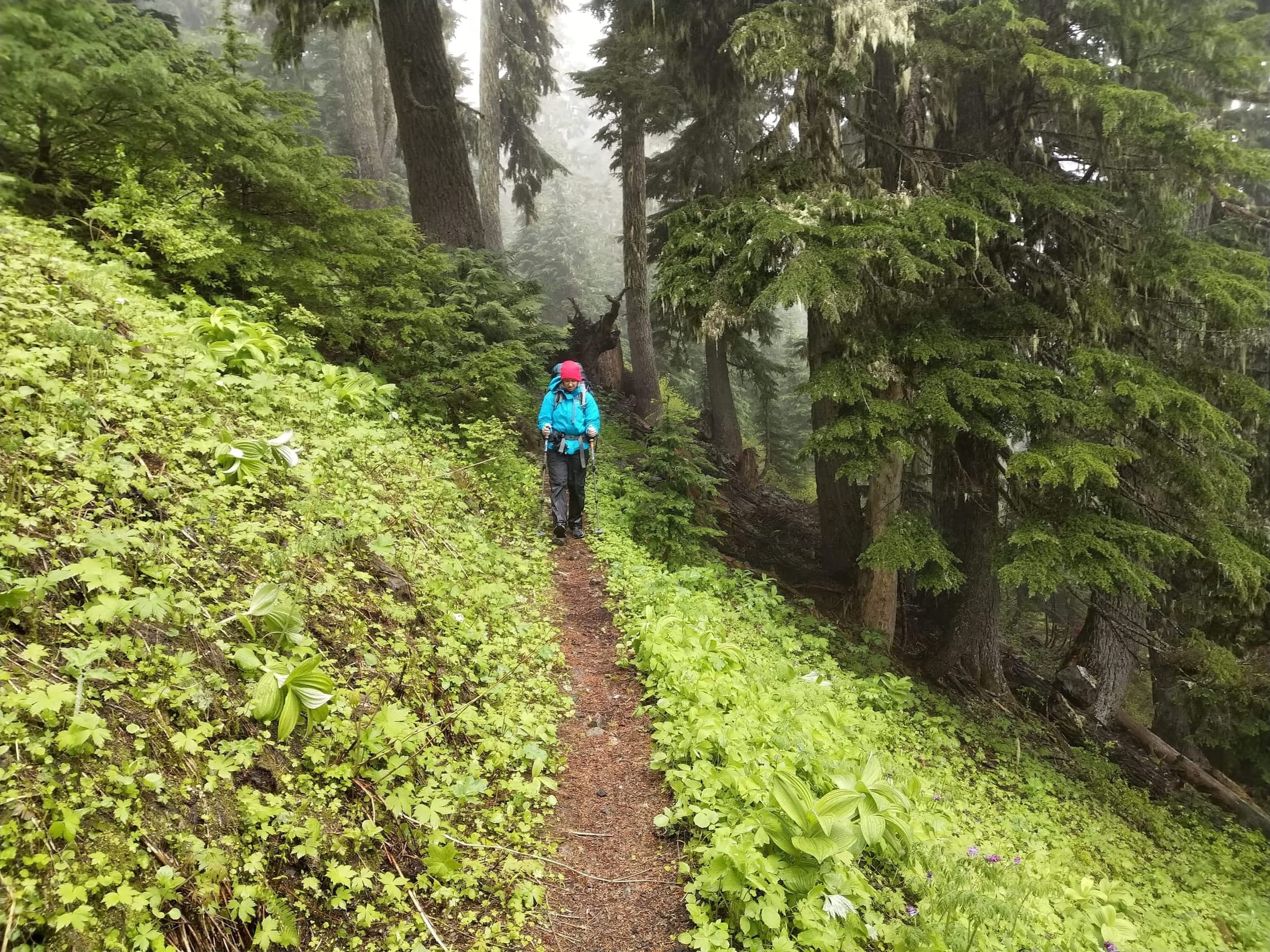 Day 7 started off in the rain - having rained all night as well. I have found that once you are hiking the rain isn’t too bad, but packing up in the rain - putting on clothes, packing up a soggy tent, is the worst… It requires a lot of fortitude to get up out of a cozy tent/sleeping bag and go through all the morning motions of getting on the road. The first half of the day included some beautiful meadows and thick forest before