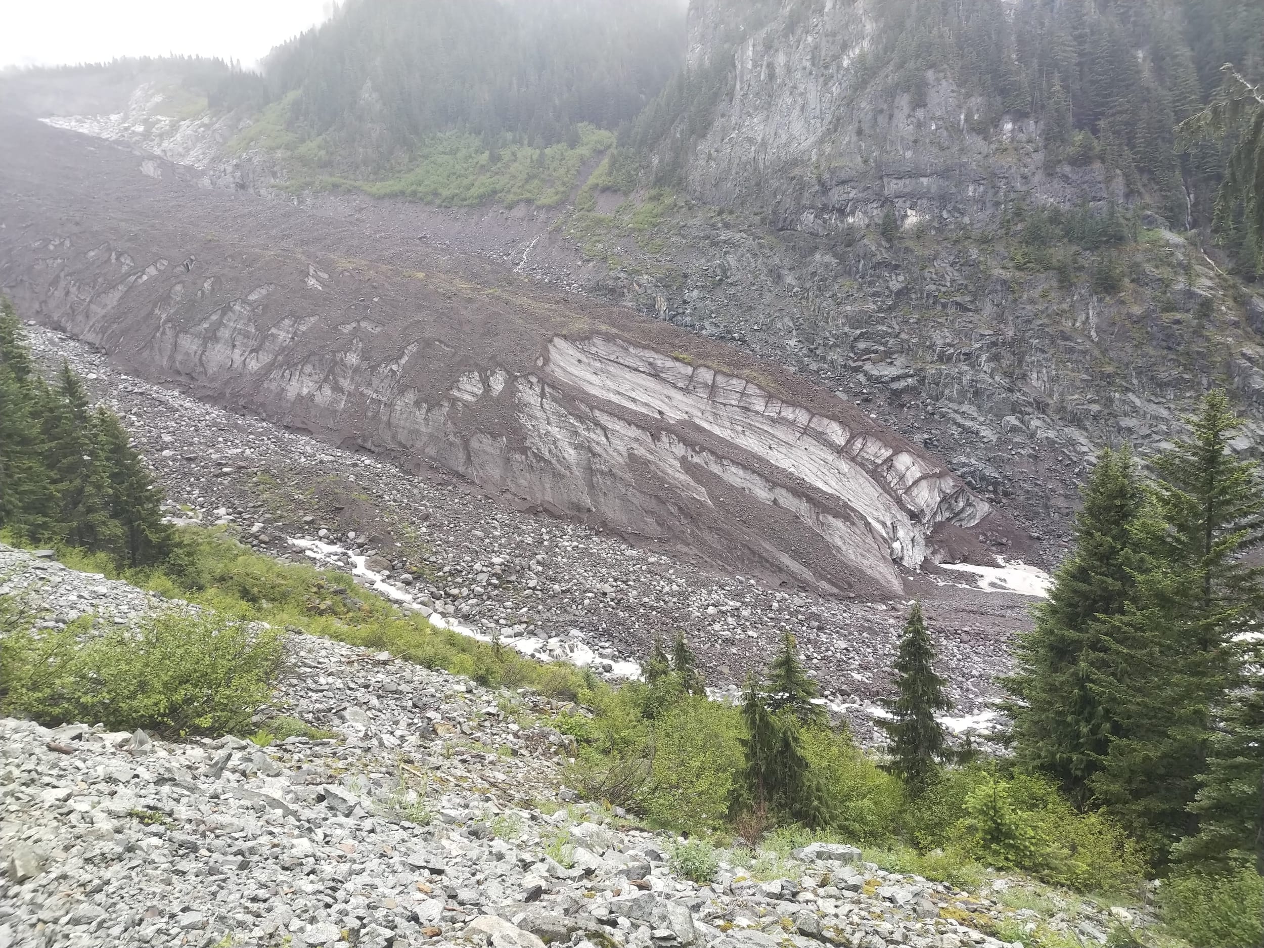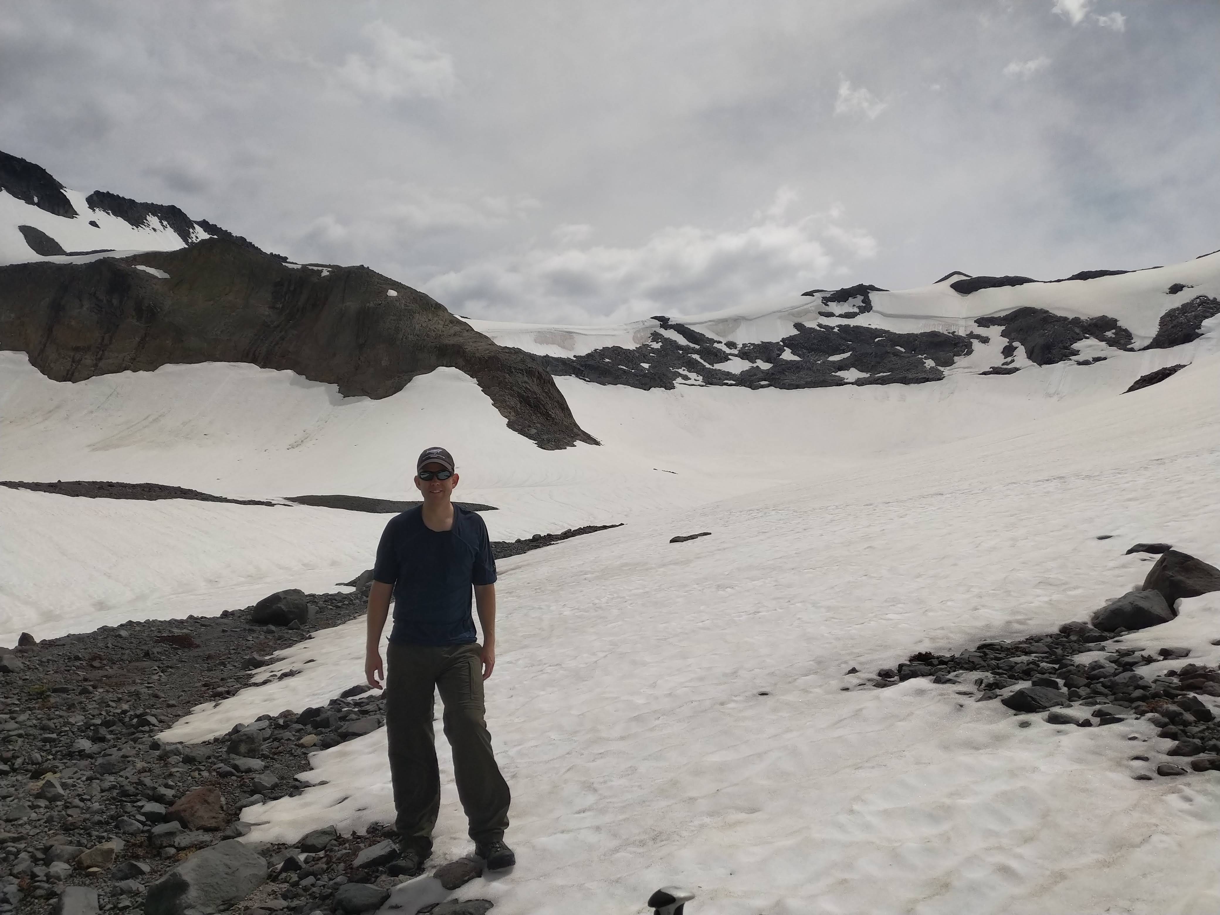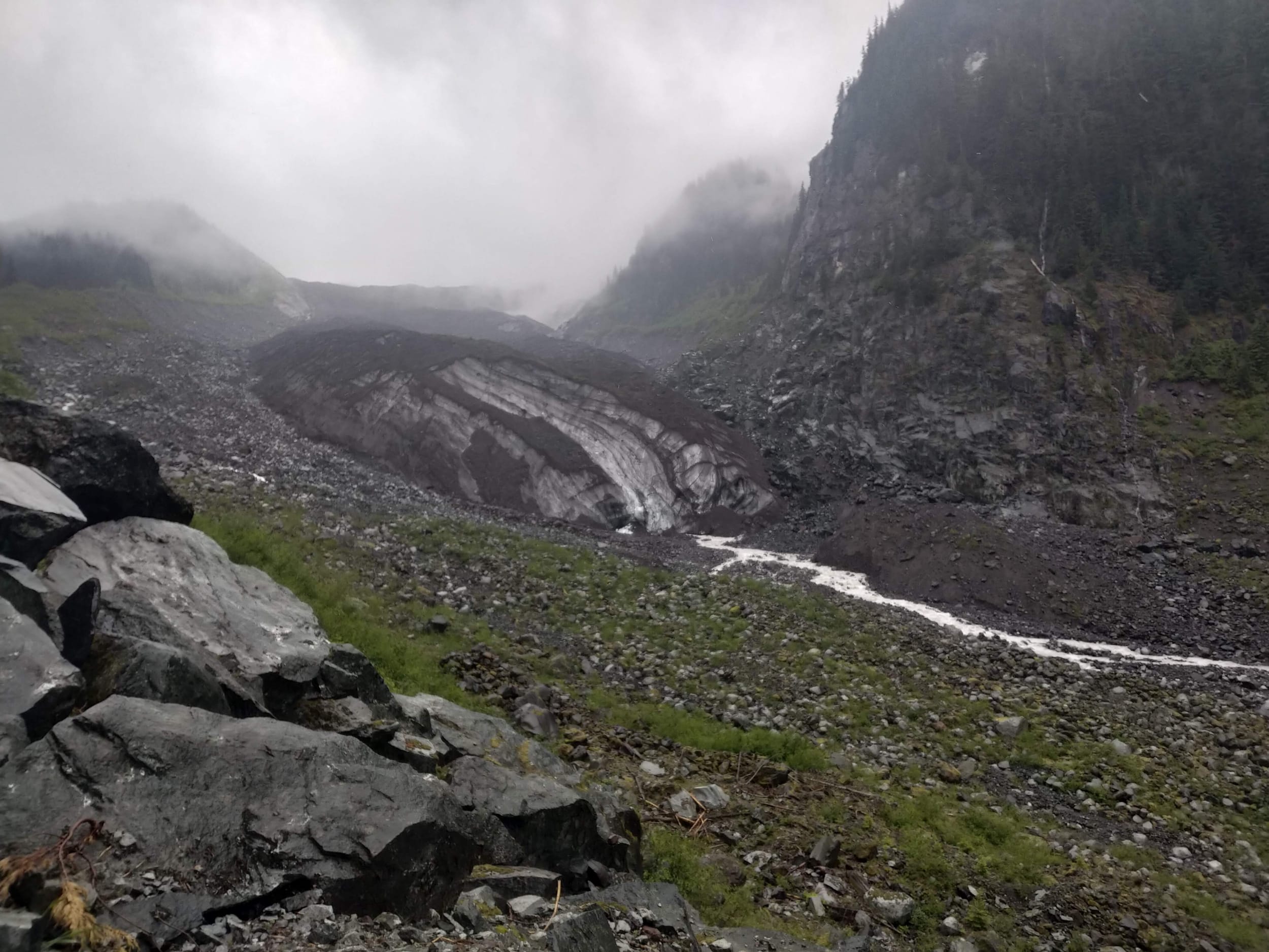 Our campsite for the evening was perched precariously on the edge of the carbon river valley, overlooking the carbon glacier. We had a steep climb up to reach it, overlooking the carbon glacier and the large glacial valley. Most of the glaciers on Mt Rainier have receeded considerably over the last 20 years, but Carbon glacier is one of the outliers having only receeded a half a mile or so in the last two decades It’s an impressive, although a very dirty looking, glacier and it was a cool experience to hike above and around it on the trail.