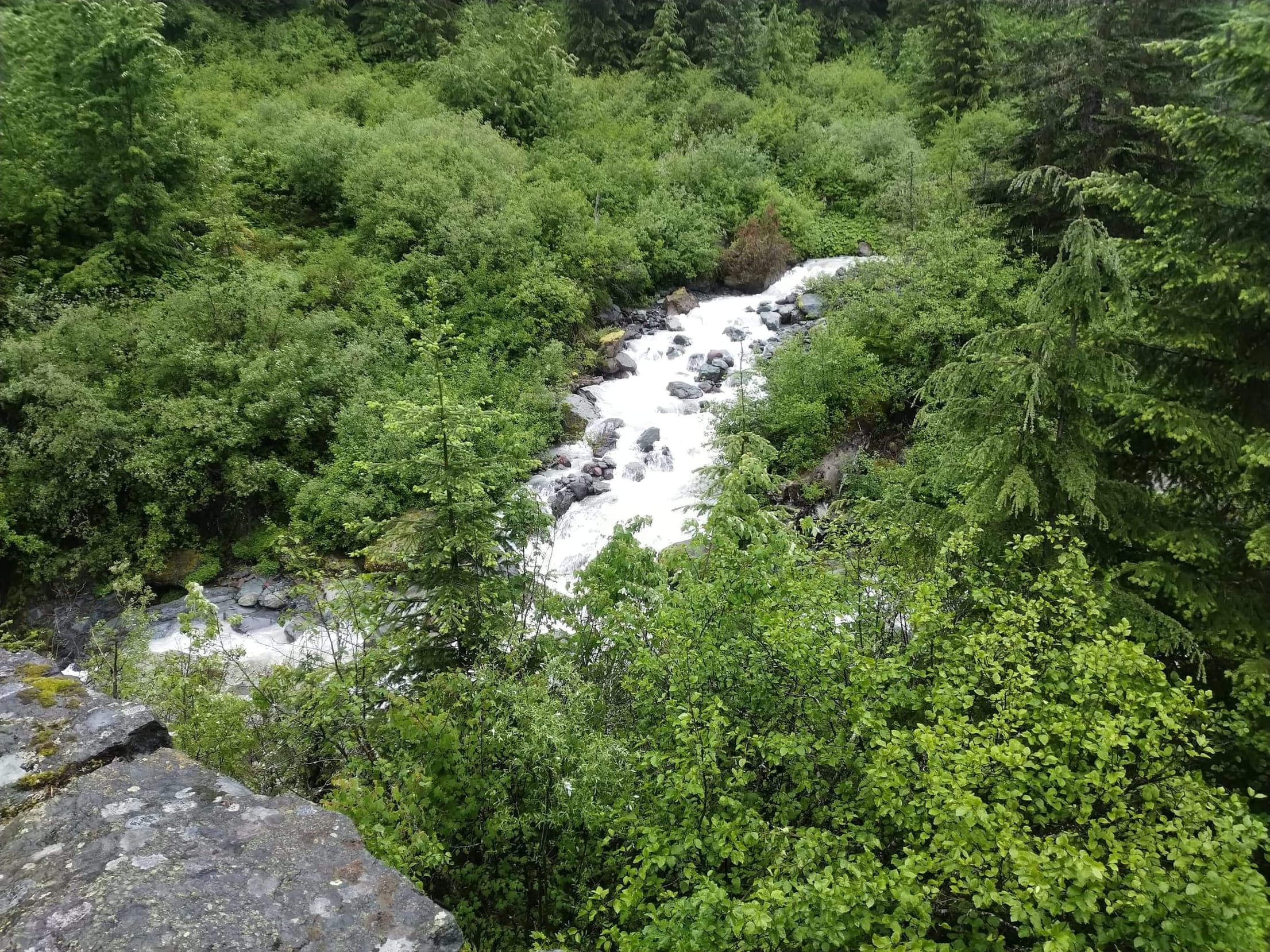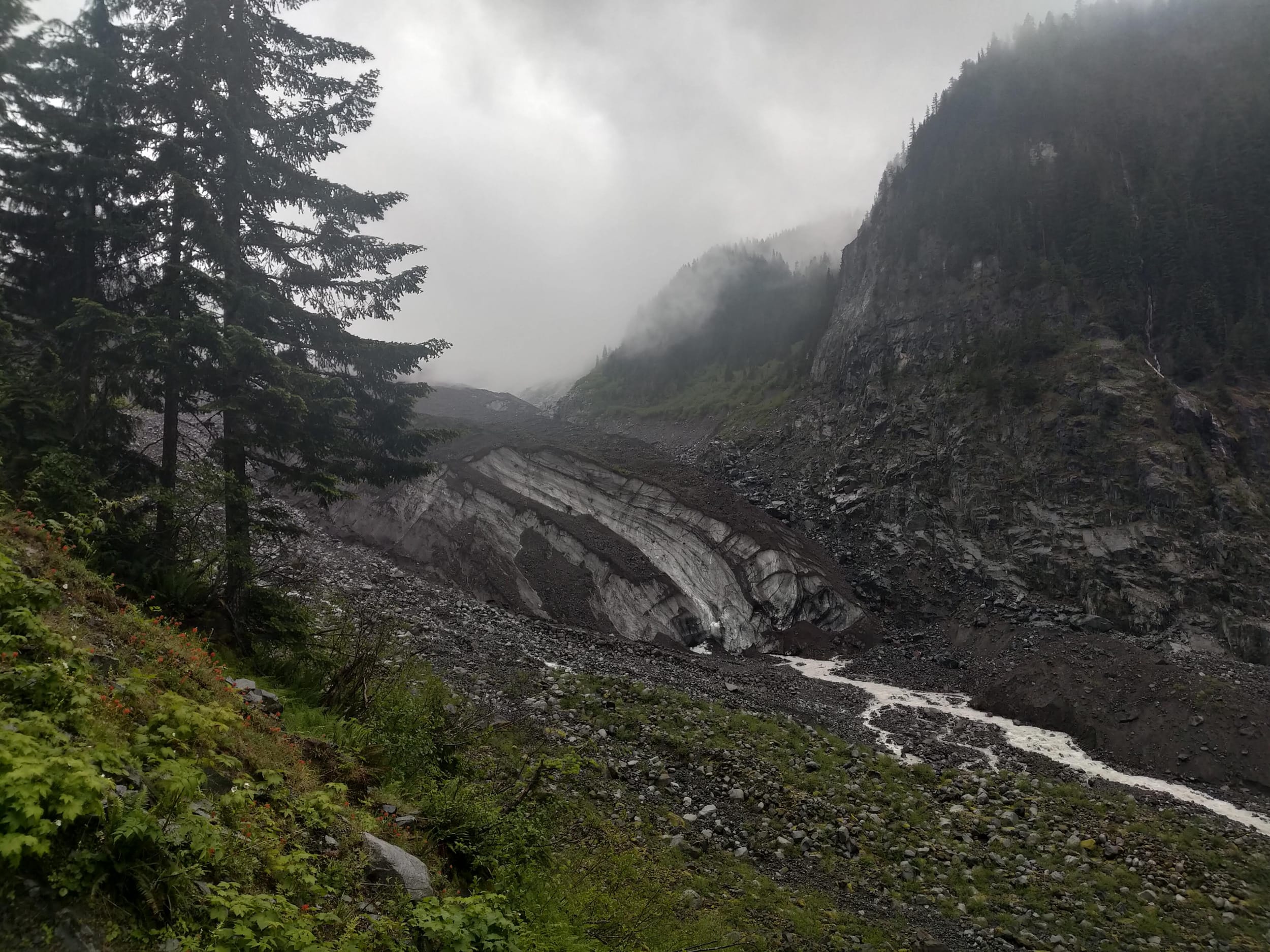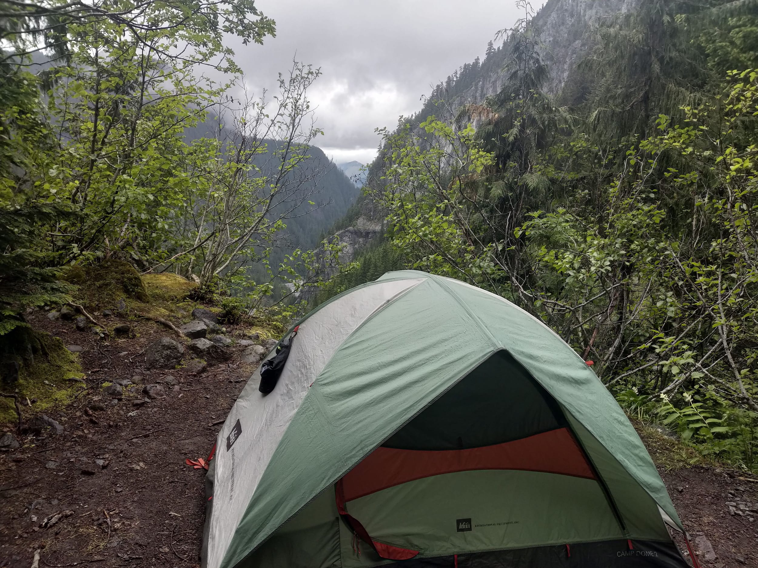 We were warned by a ranger we met earlier in the day that the campsite was loud, with chunks of the glacier falling off throughout the night. We didn’t experience that, but the campsite was somewhat epic - perched on the edge of a cliff overlooking the glacier. The toilet had an epic view - they must haul it out via helicopter so having it easily accessable by helicopter offers and advantage. For us however, it made for an epic view for a constitutional. This was a small deviation from our planned itinerary, we stayed at a camp called Dick creek instead of carbon river to avoid quite a much of a climb the following day