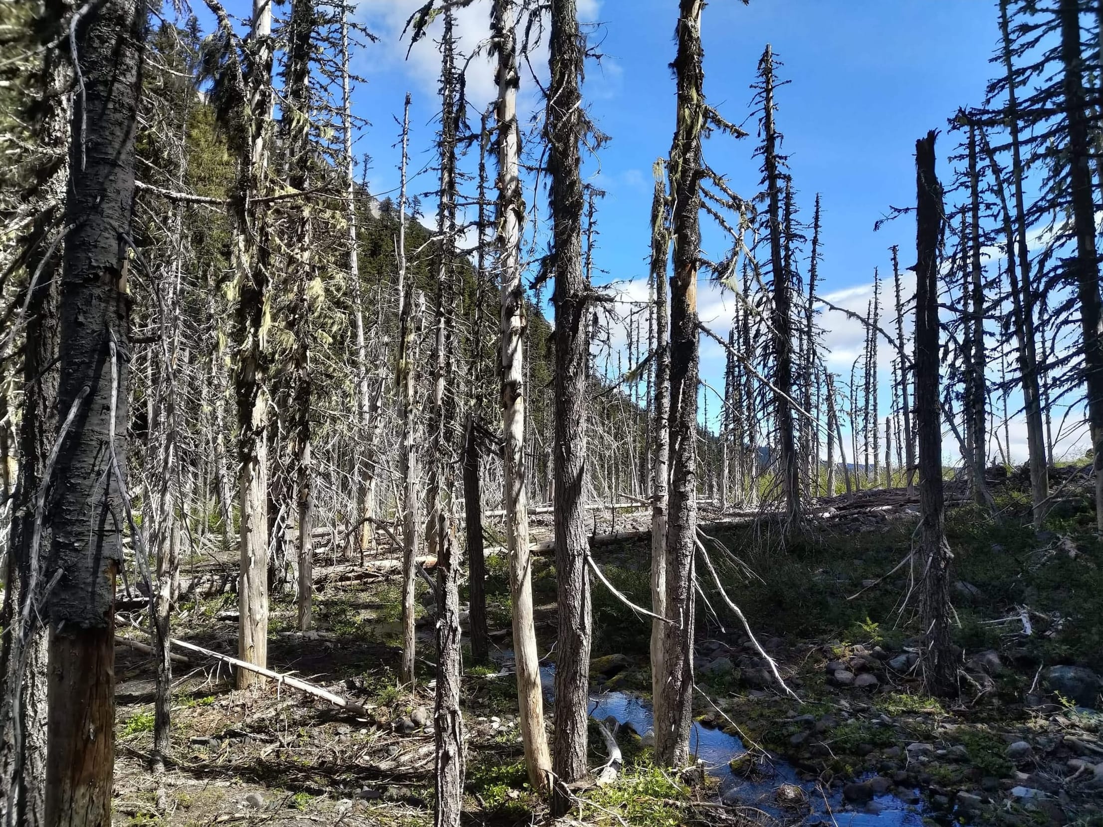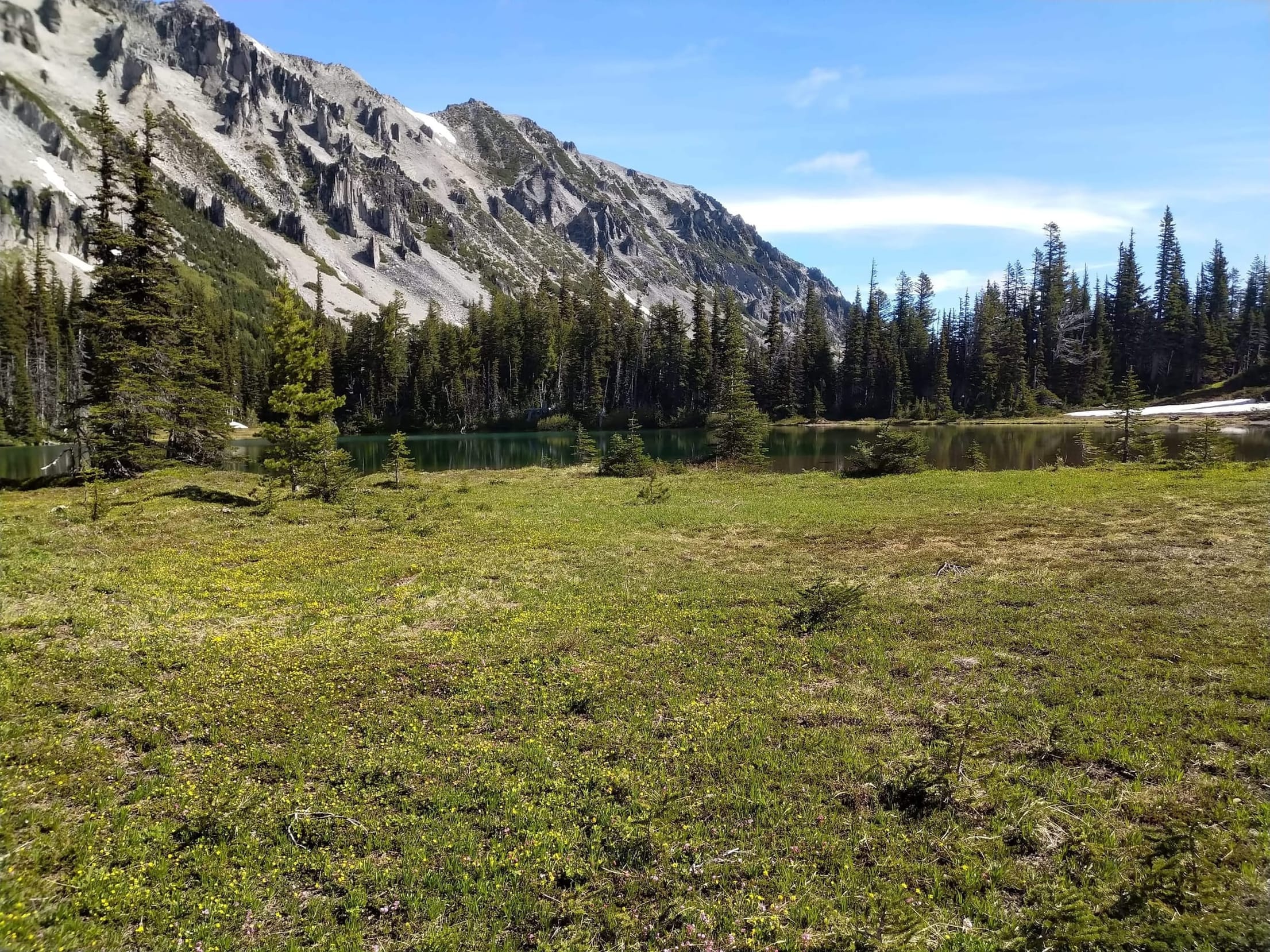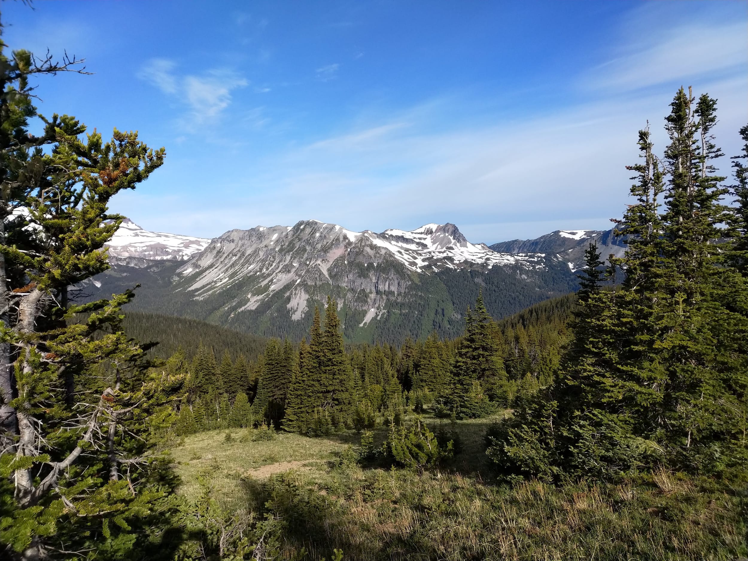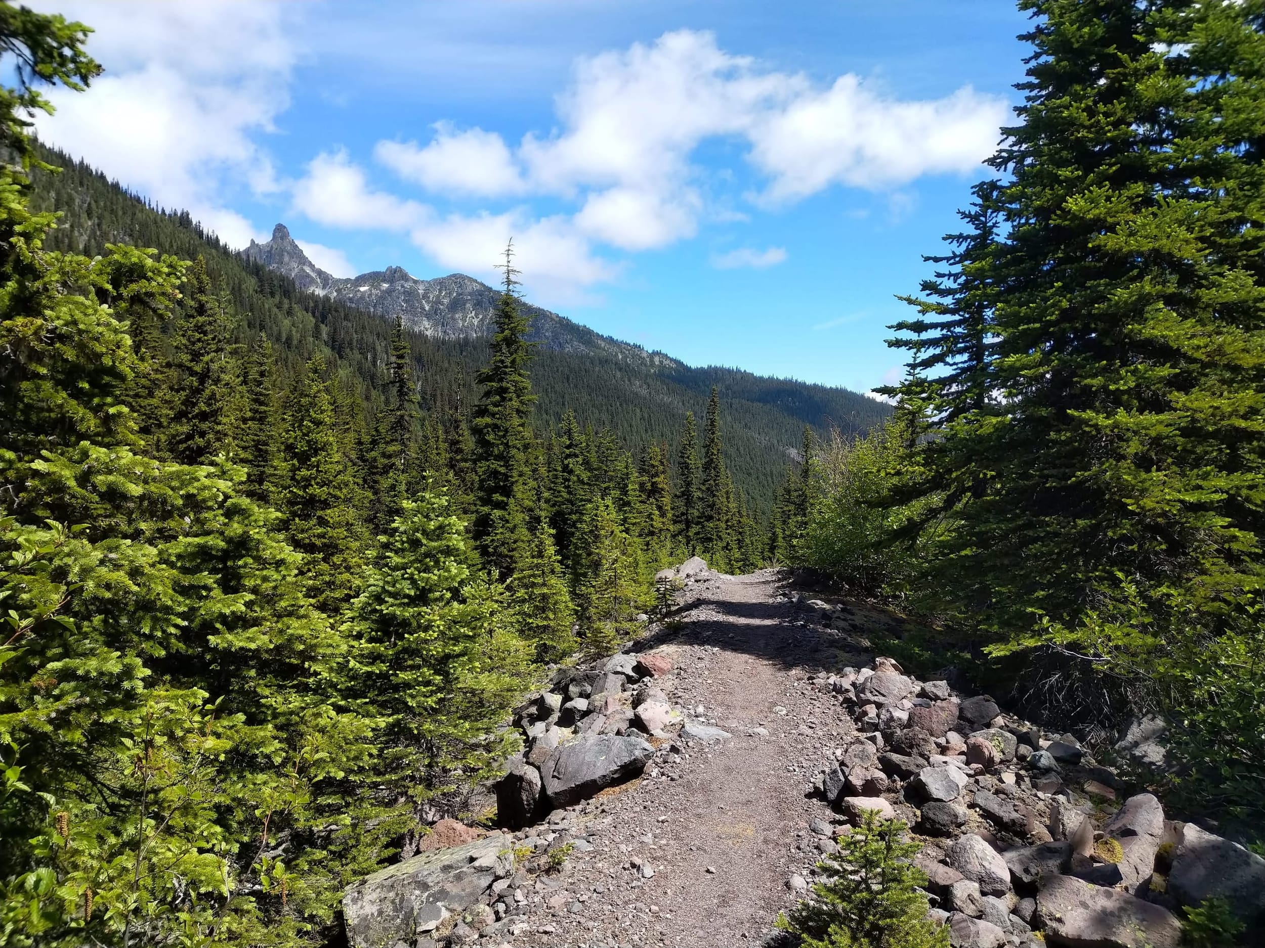 Our final day started much like the others, with a sparse forested hike crossing several streams. We hiked through a smaller glacial morraine before heading up to Skyscraper pass and into the Lodi creek meadow. There was a gentle climb that became a bit steeper the first part of the day before we crested the hill.