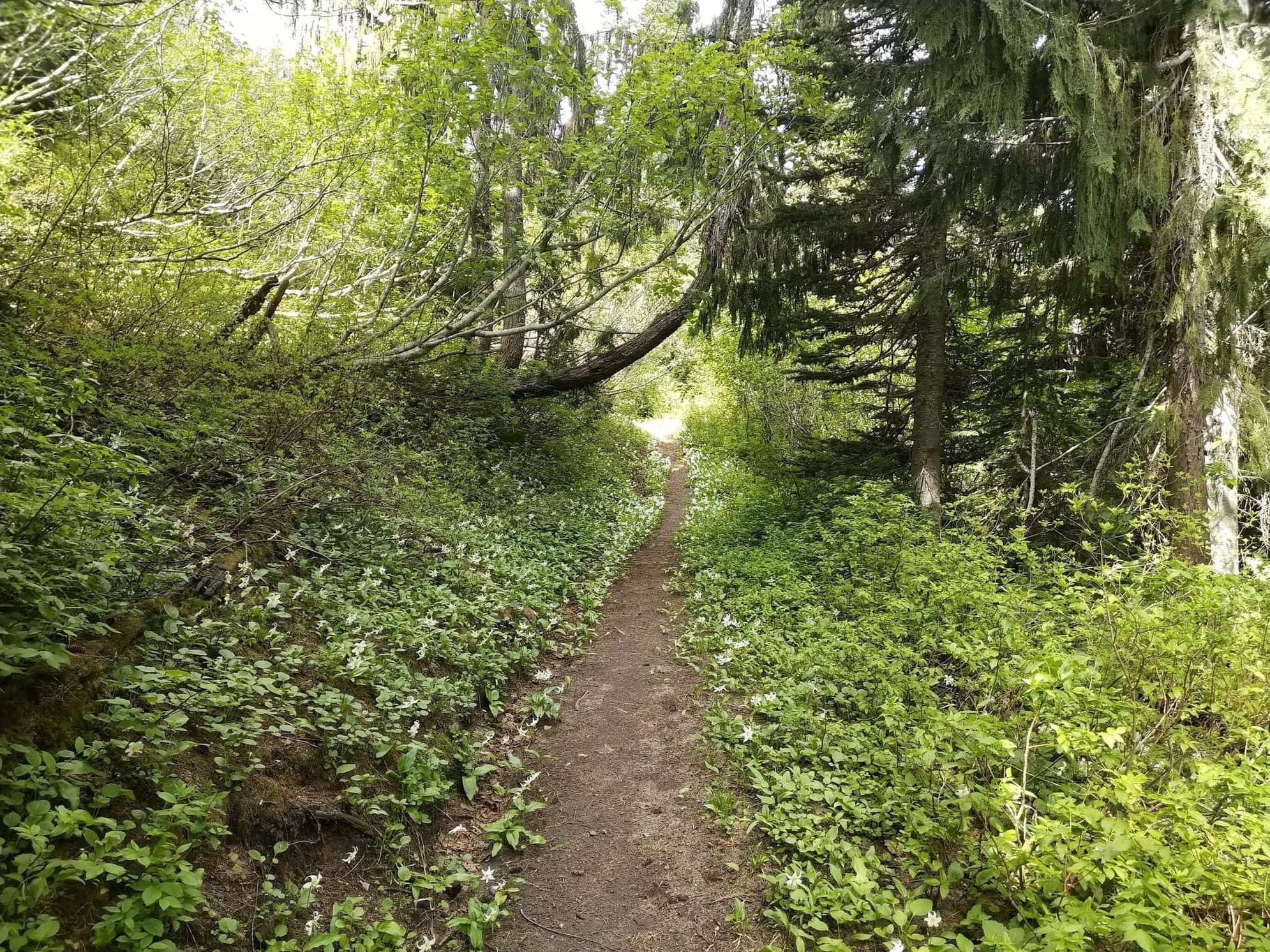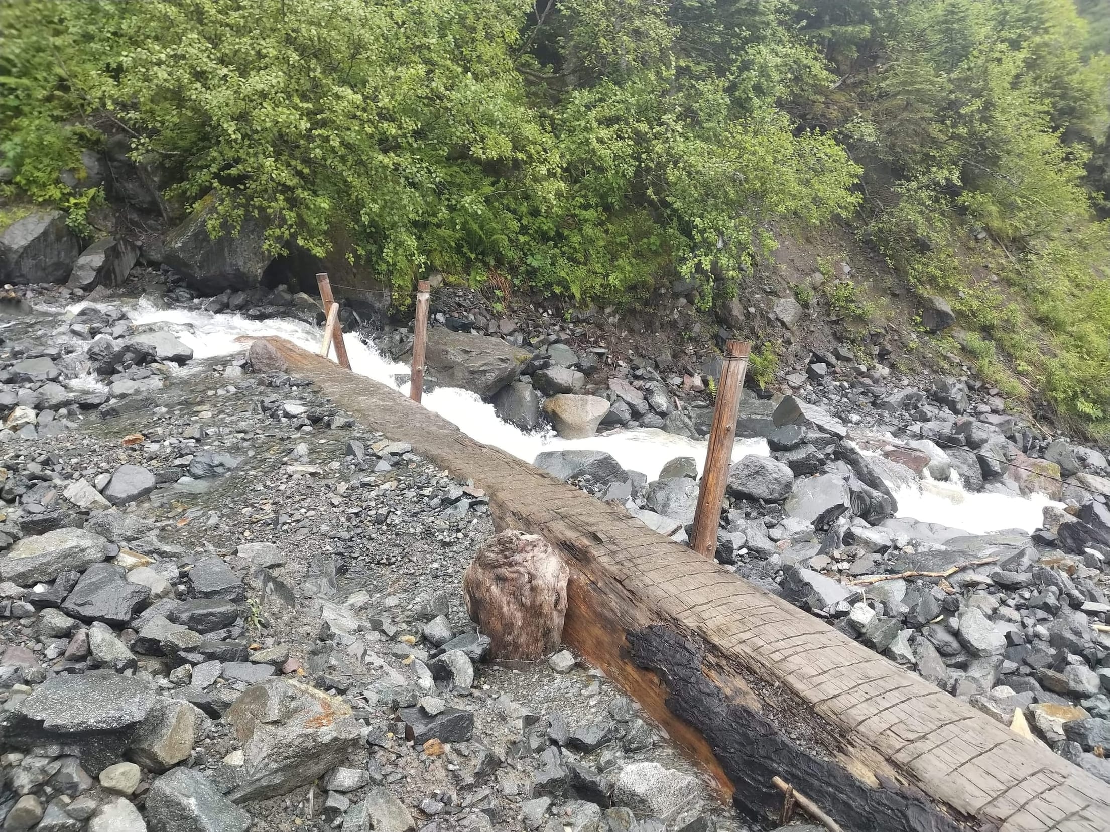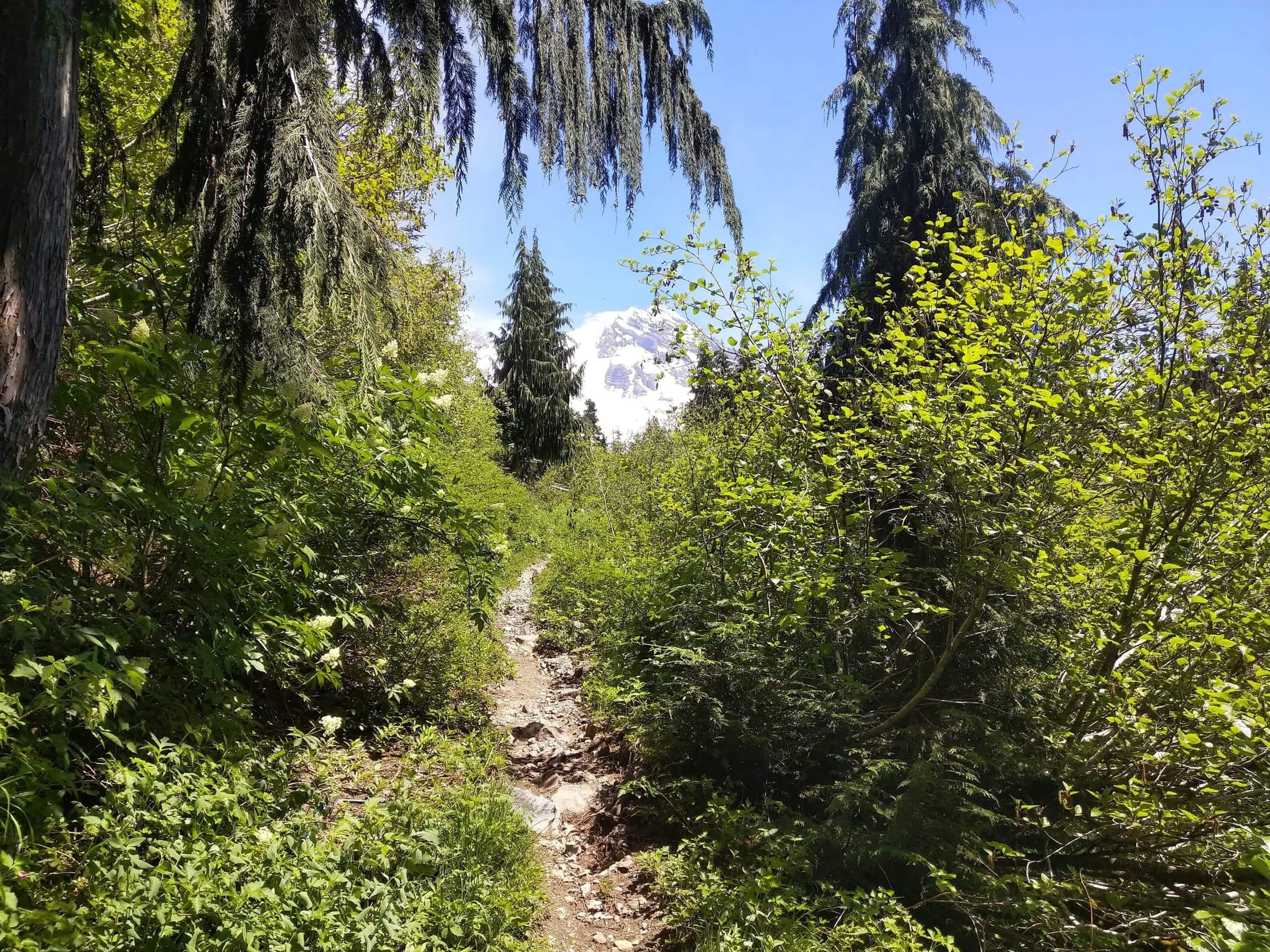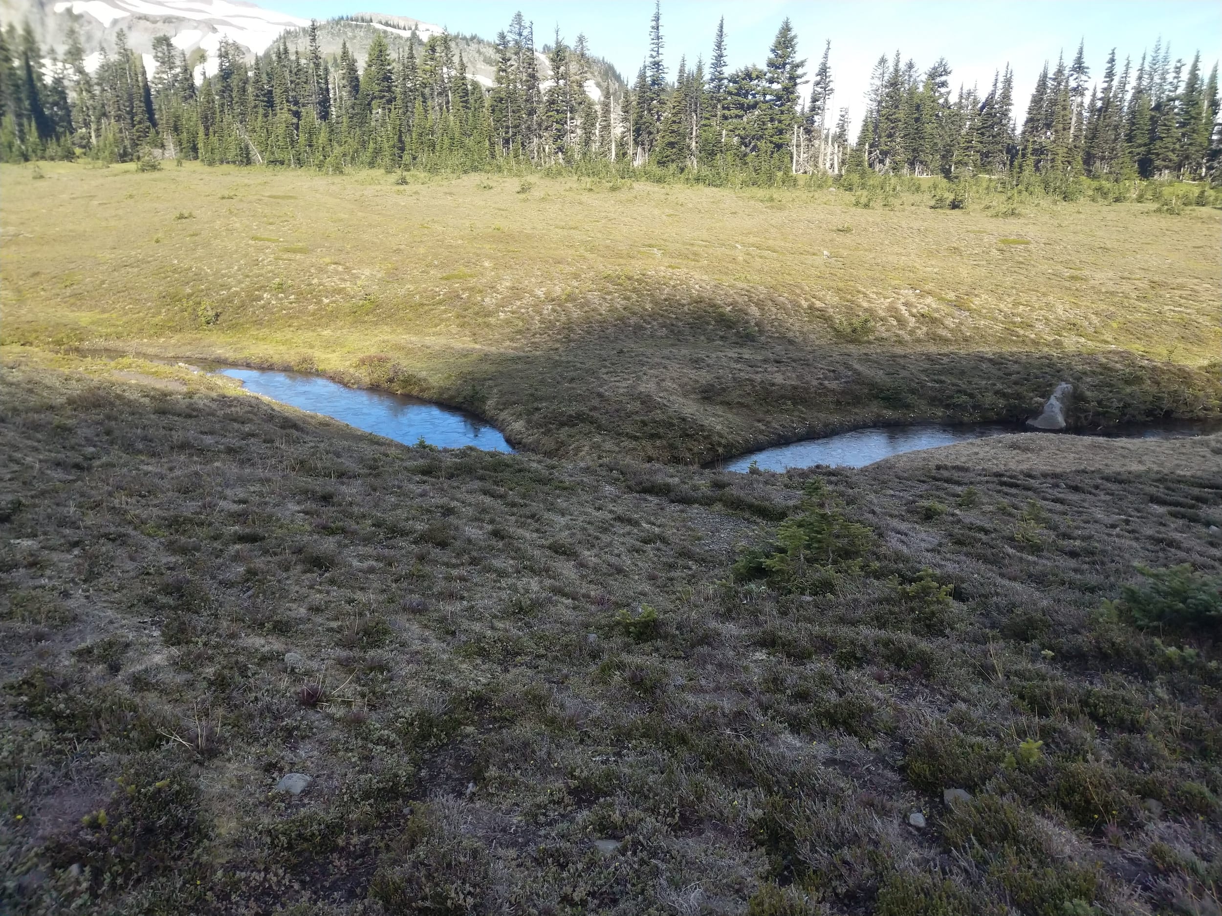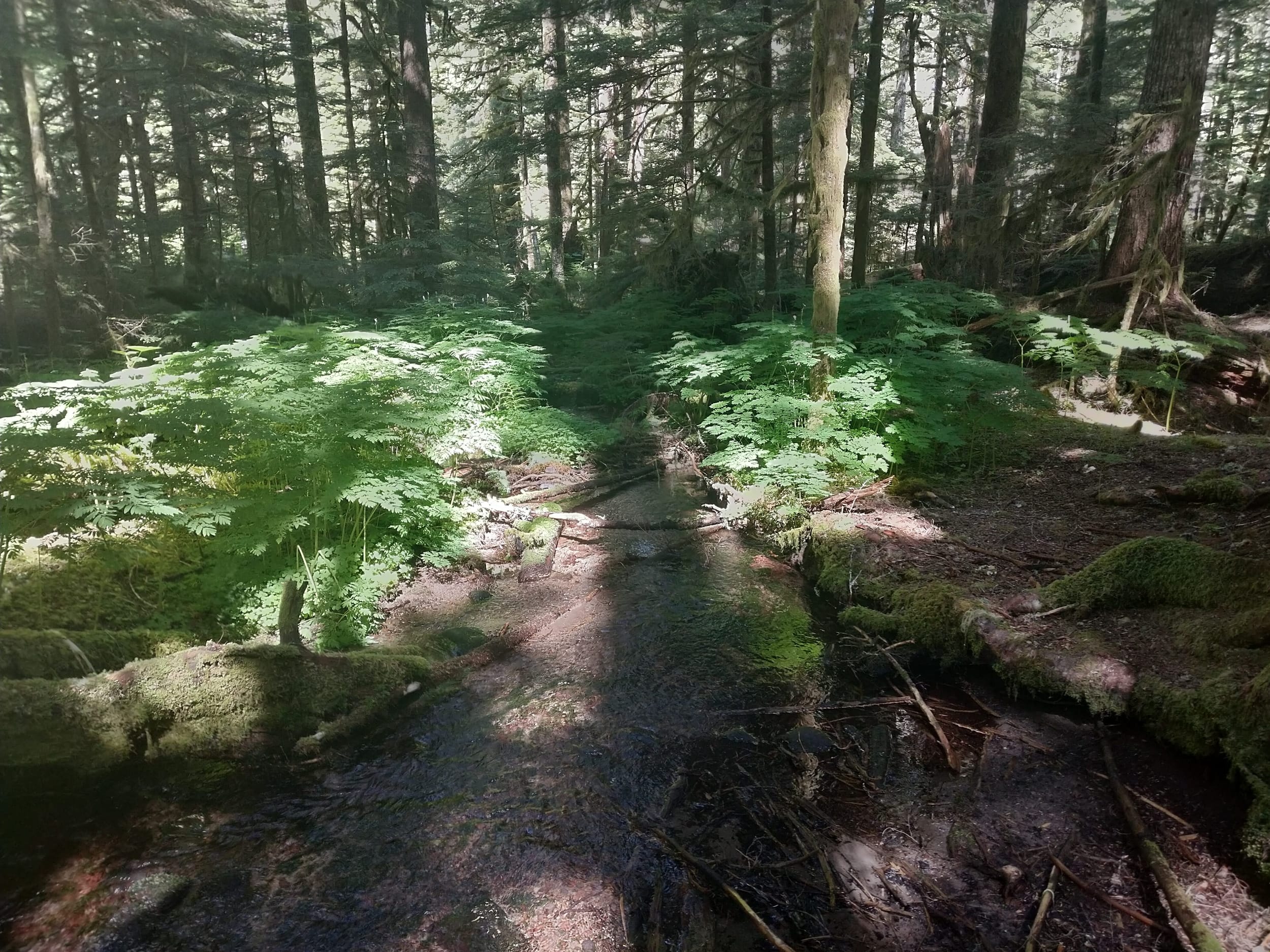 We arrived at a cross-roads between carbon river and Ipsut pass trail. We dropped our packs here and I hiked the last 1.5 miles down to the trail head to toss some trash and see the carbon river trailhead for future years. The road up to this cabin/trailhead has been closed for over a decade, but it’s open to biking and I’d like to come back here with a bike and camp at the trailhead (or do a hybrid and hike after biking).