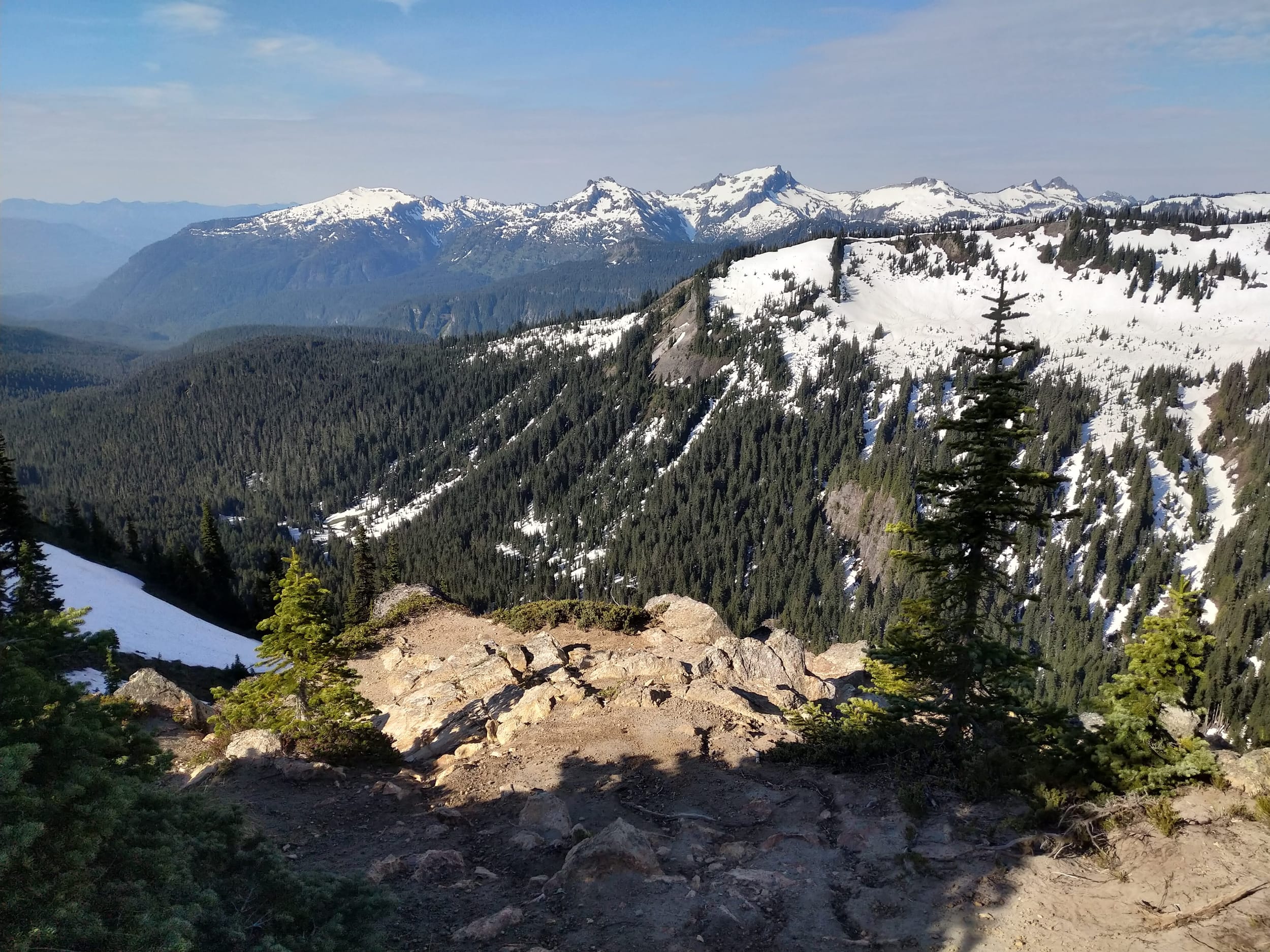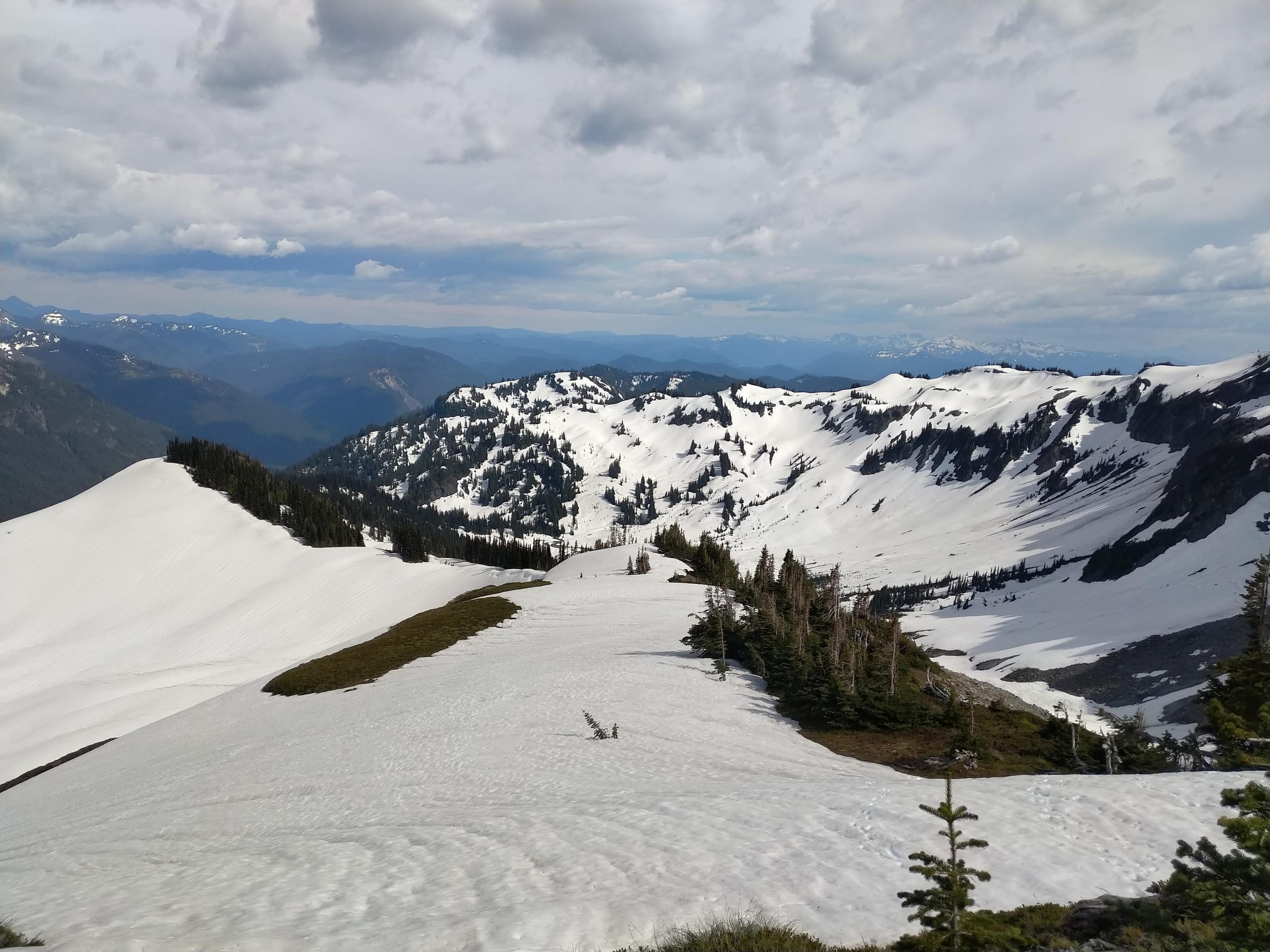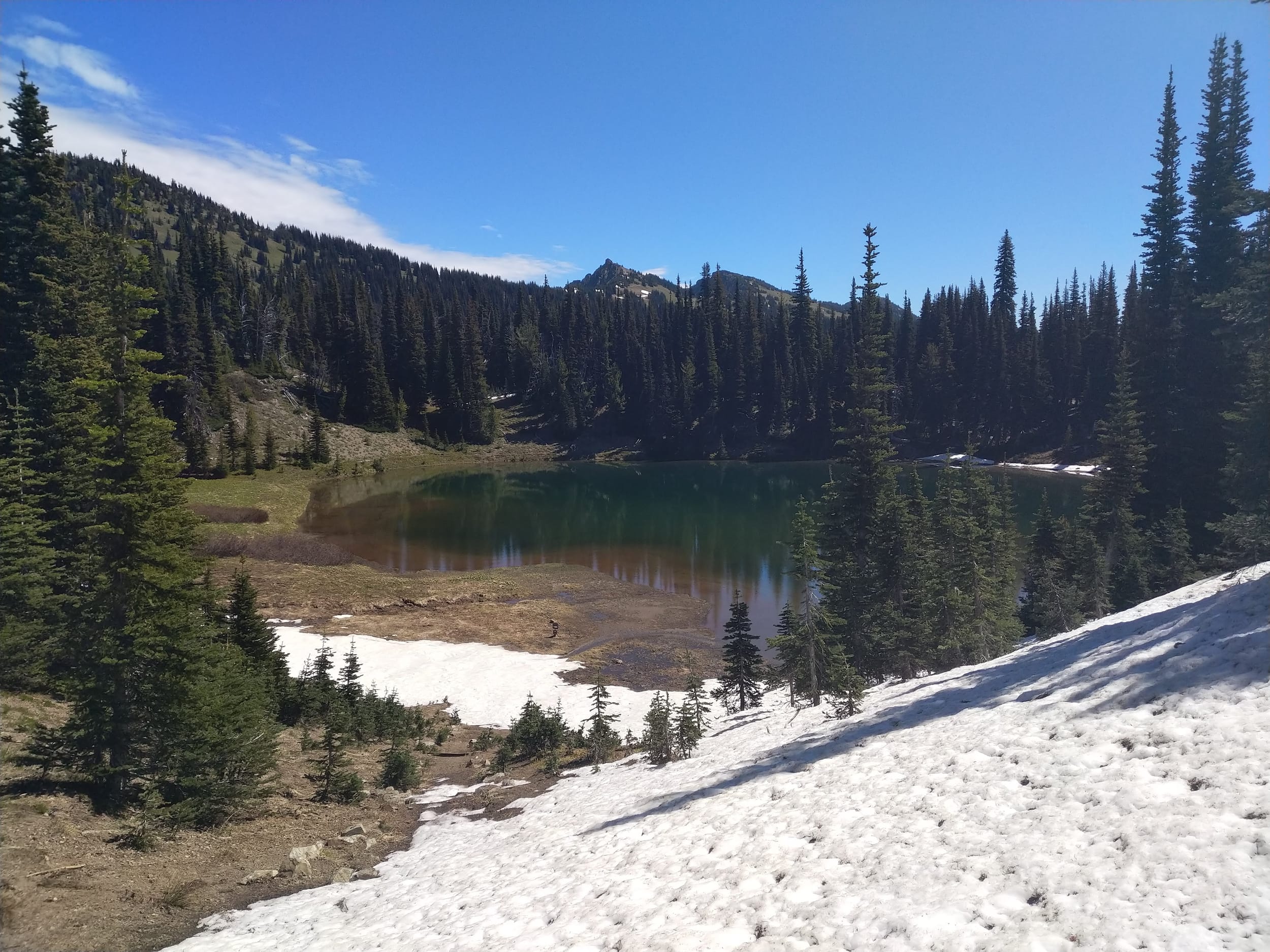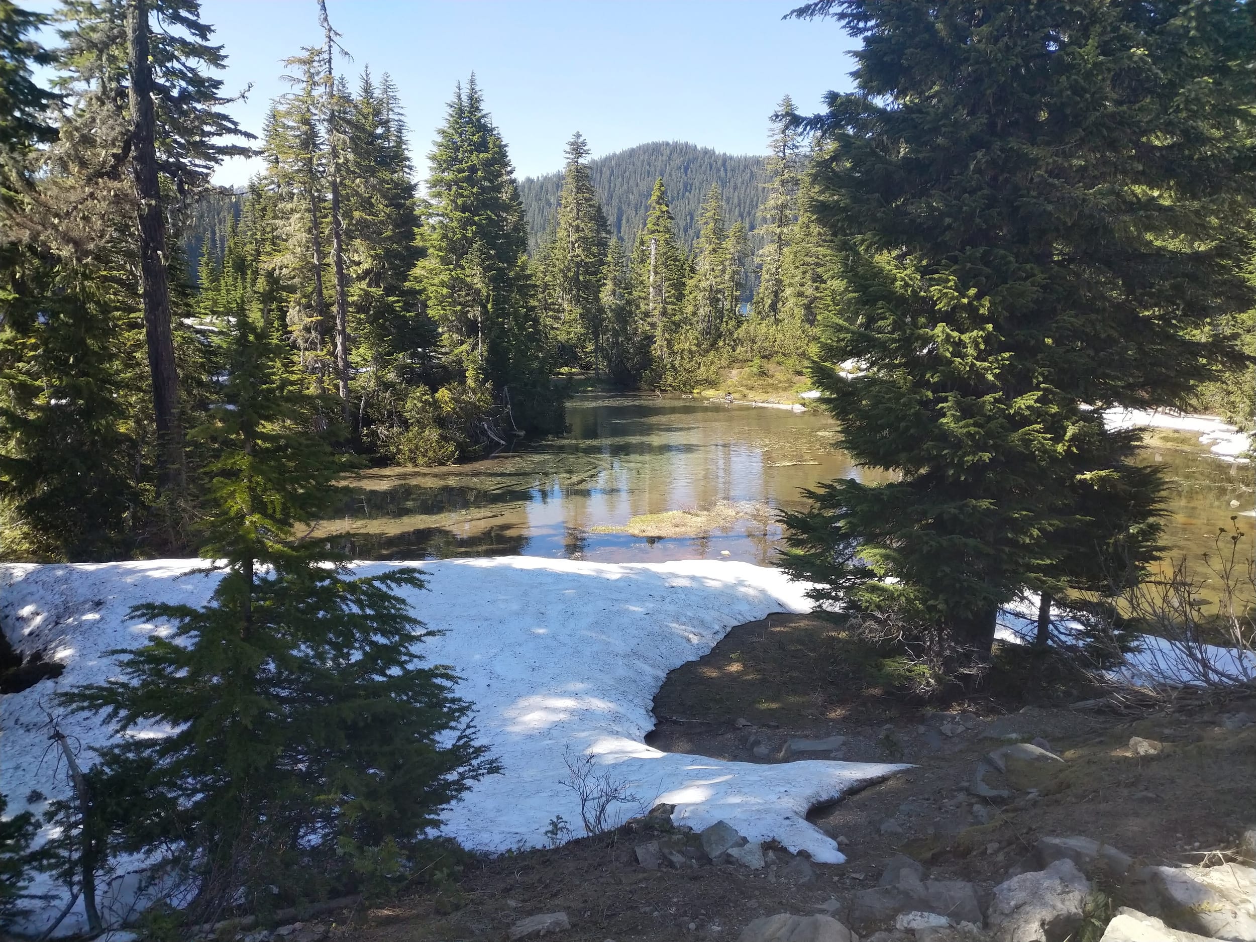 Continuing from frozen lake, we headed down to sunrise lake - where we were slowing introduced back into society, seeing more and more people and more infrastructure (flushing toilets!?!). We continued along the ridge until we found the sunrise overlook - with some larger buildings, helicopter, and maintenance people getting ready for the summer. From here, we dropped down some steep switchbacks into white river - our final (and starting) destination.