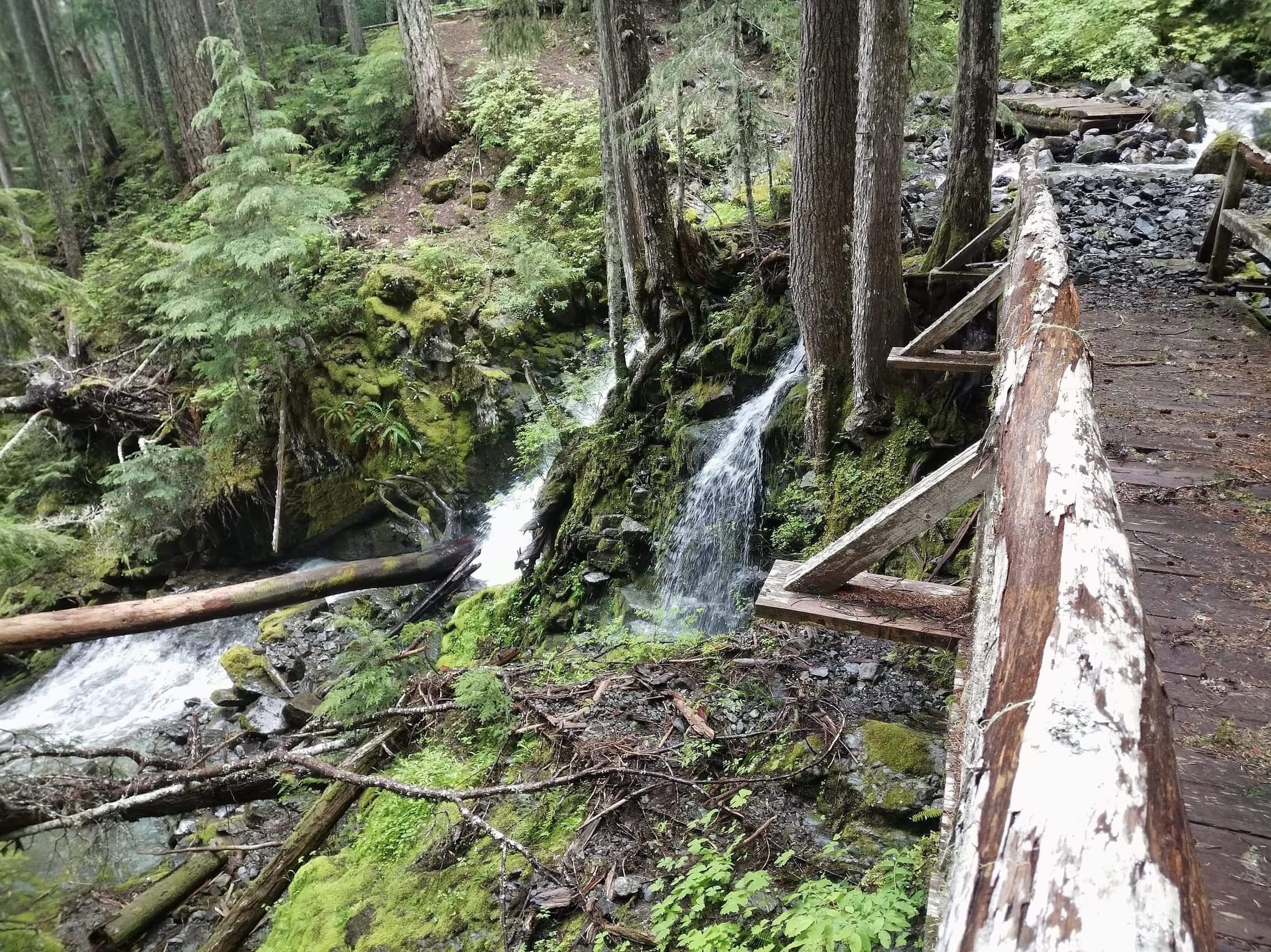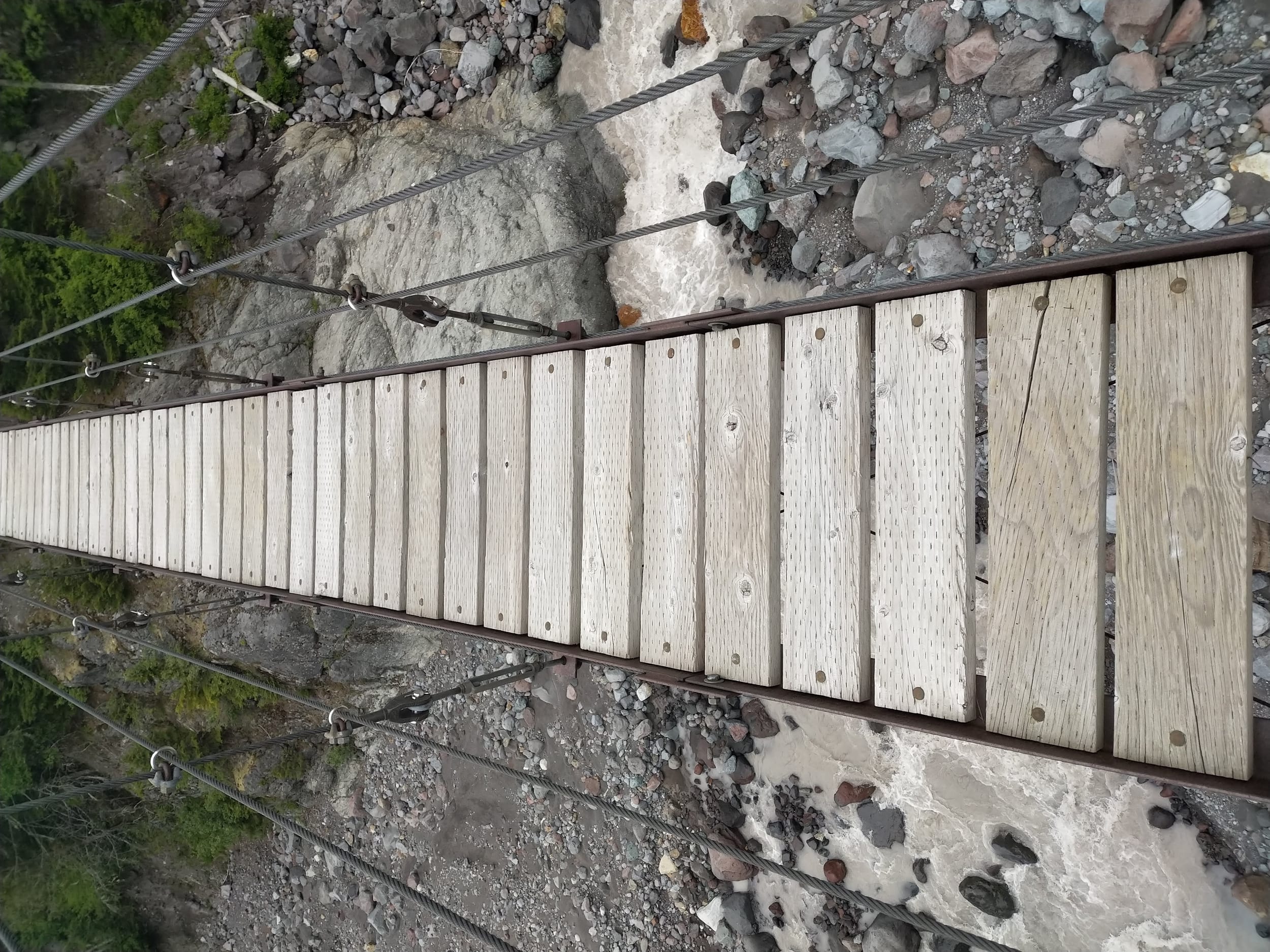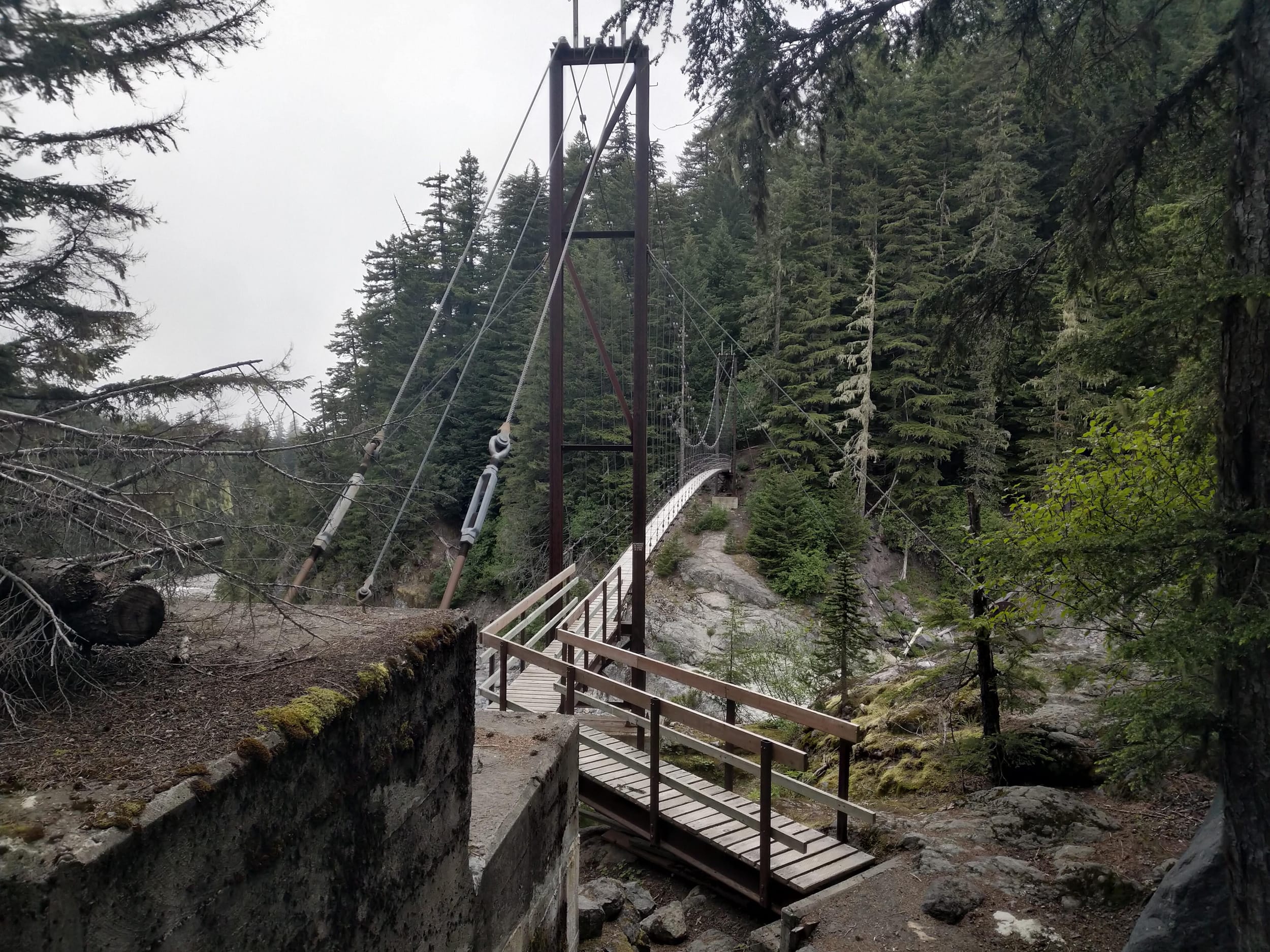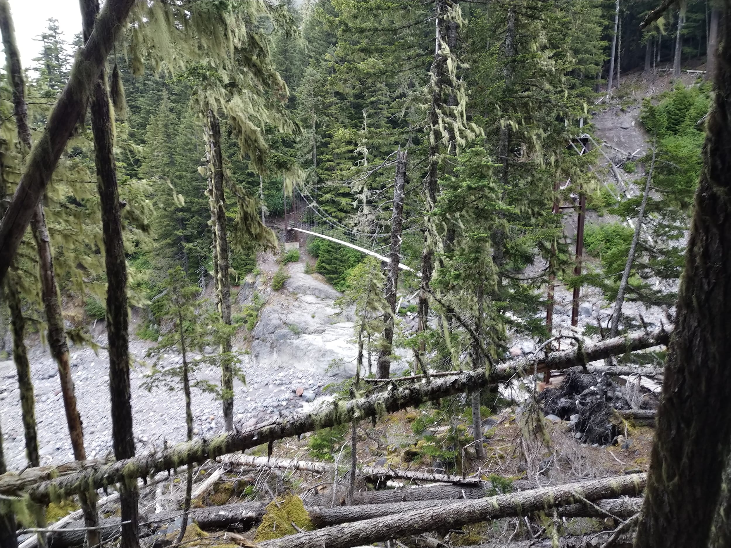 The Carbon river suspension brige (built to avoid washouts that were experienced with previous itterations of the bridge). This was built around the same time as the Tahoma bridge (1994/1995). It’s consierably lower than the Tahoma bridge, but equally impressive.