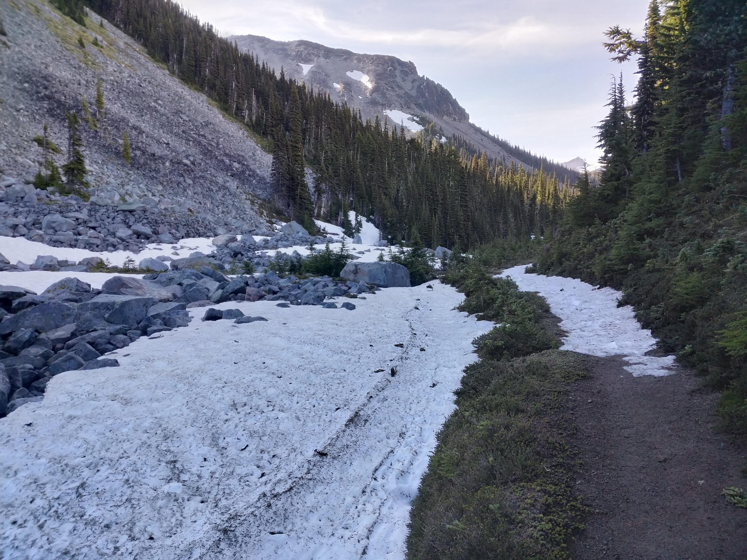 Devil’s dream had a bit of snow given how much it was in the shade, but mostly it was just soggy from all the recent snow melt. We found one dry campsite out of the half dozen or so that were there, so can’t complain too much. And our video recap of the day: